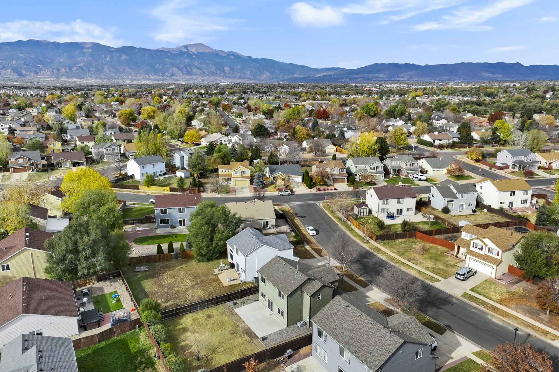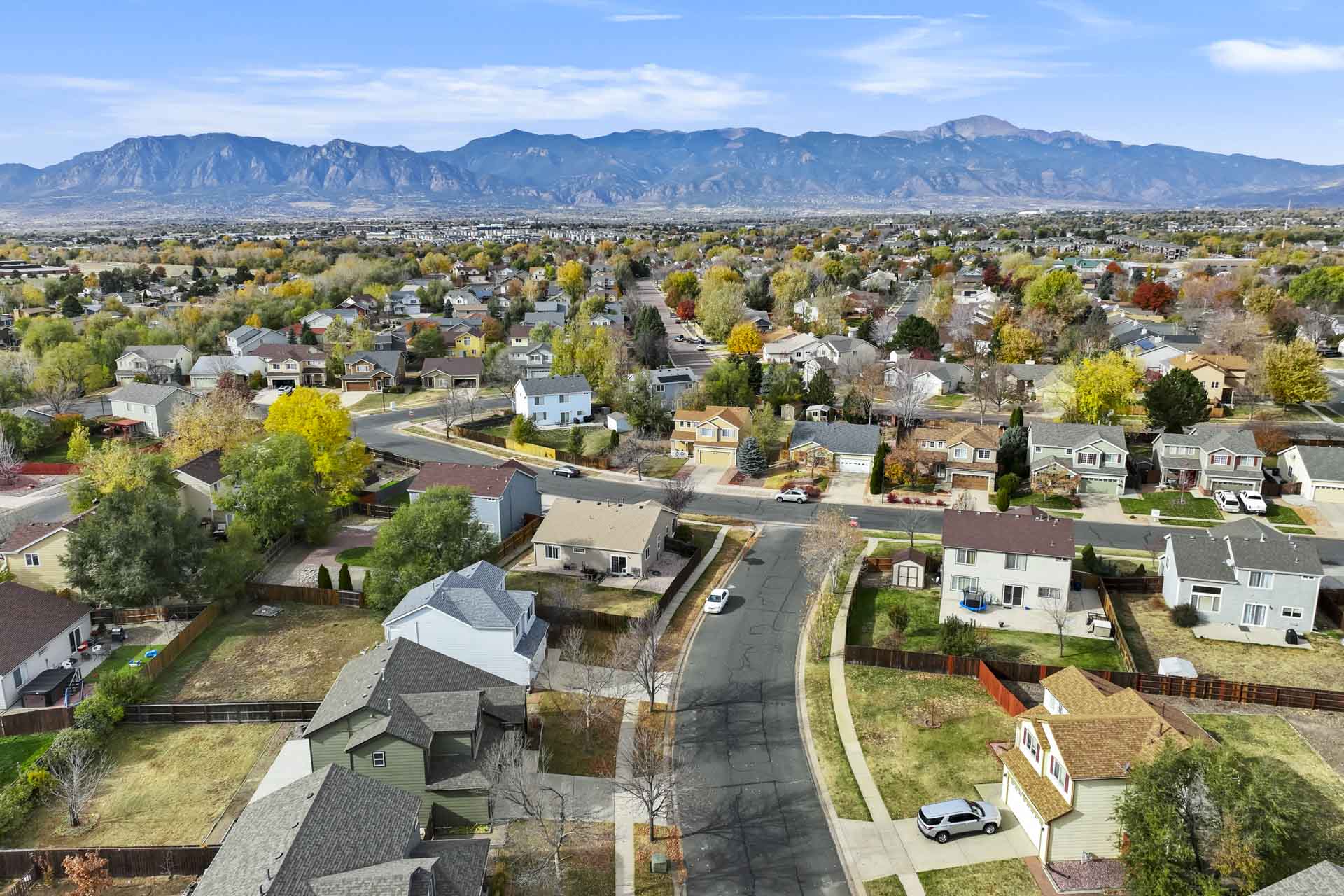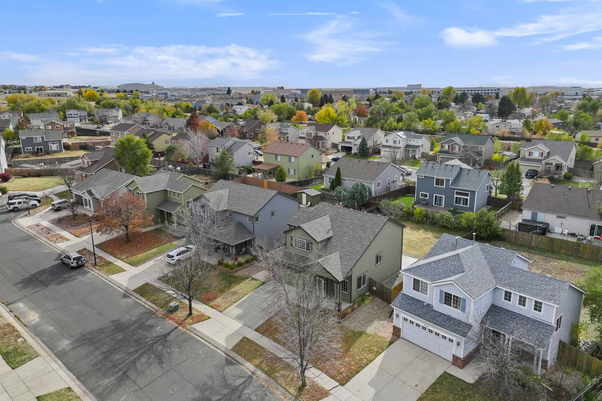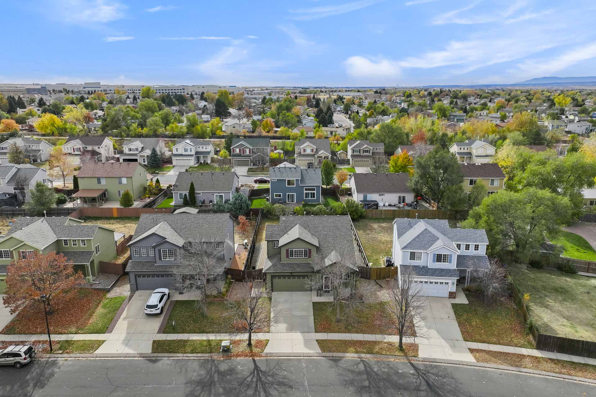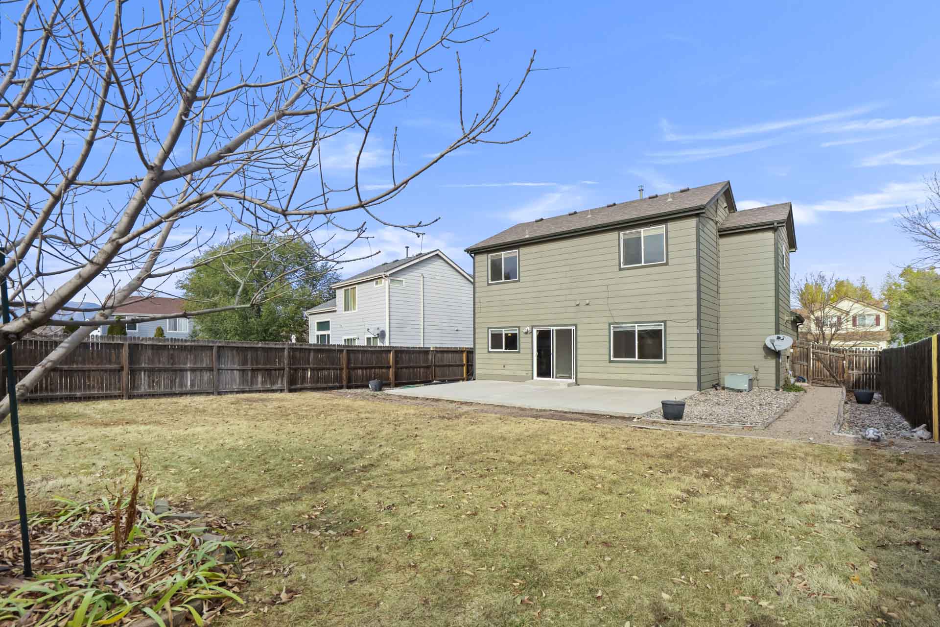 Welcome to this lovely two-story home located in the Villages at Sand Creek a vibrant sub-division in Colorado Springs! This residence is in excellent condition and boasts a beautifully landscaped, fully fenced yard creating an outdoor area perfect for relaxation and entertainment. The main level features beautiful wood laminate flooring and brand-new carpet throughout the home, enhancing the warm and inviting atmosphere throughout the living spaces. The spacious kitchen is equipped with stainless steel appliances, ample cabinetry, and generous counter space, seamlessly opening to the cozy family room, which includes built-in shelving and a charming gas fireplace. Upstairs, you’ll find three well-appointed bedrooms filled with natural light, along with two full bathrooms and a convenient laundry area. Step outside to discover an expansive backyard featuring a sprinkler system and a brand new massive concrete patio providing ideal spaces for outdoor dining and gatherings. The exterior of the home has a nice front porch enhancing its curb appeal, and additional features include central air conditioning for year-round comfort. Located in a wonderful community with easy access to parks, schools, shopping, and dining, this remarkable home combines modern amenities with a charming atmosphere, making it the perfect place to create lasting memories. Schedule your private showing today and experience the lifestyle that awaits you!