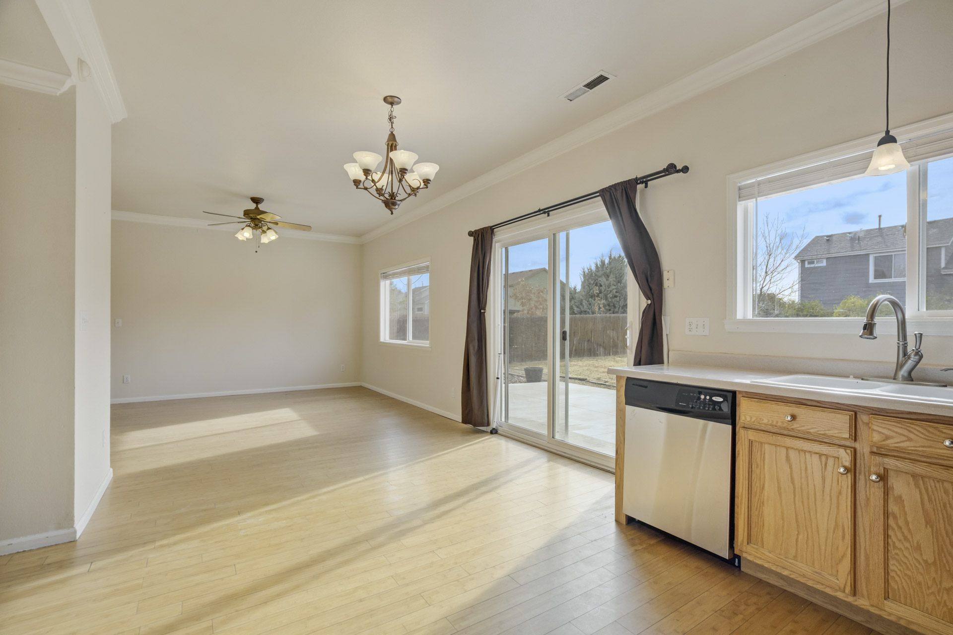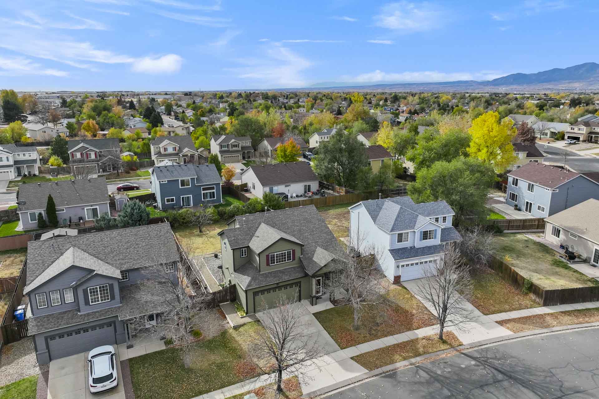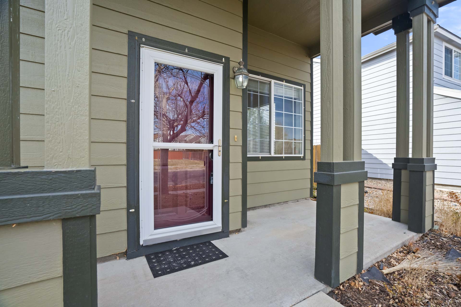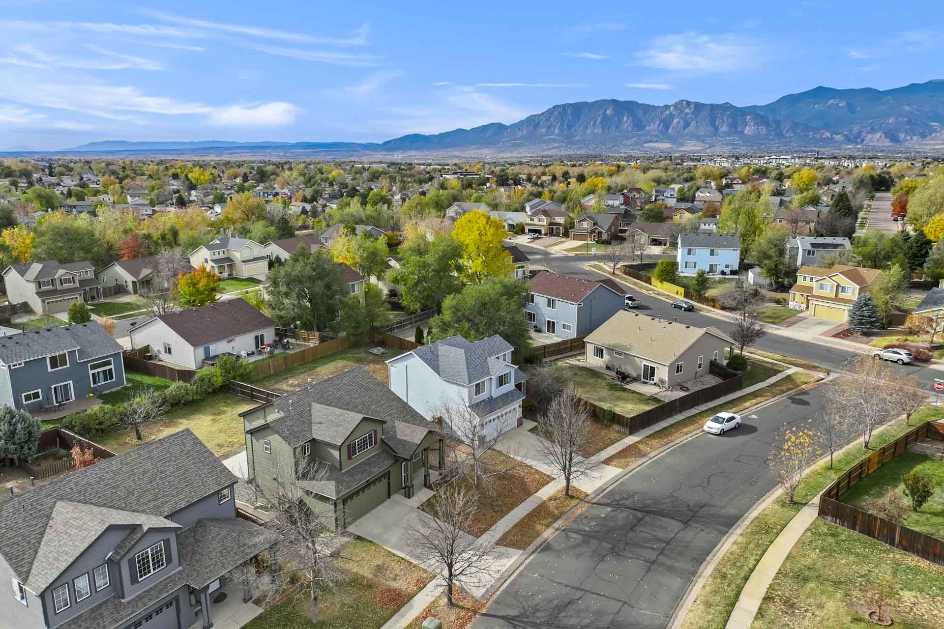 Welcome to this lovely two-story home located in the Villages at Sand Creek a vibrant sub-division in Colorado Springs! This residence is in excellent condition and boasts a beautifully landscaped, fully fenced yard creating an outdoor area perfect for relaxation and entertainment. The main level features beautiful wood laminate flooring and brand-new carpet throughout the home, enhancing the warm and inviting atmosphere throughout the living spaces. The spacious kitchen is equipped with stainless steel appliances, ample cabinetry, and generous counter space, seamlessly opening to the cozy family room, which includes built-in shelving and a charming gas fireplace. Upstairs, you’ll find three well-appointed bedrooms filled with natural light, along with two full bathrooms and a convenient laundry area. Step outside to discover an expansive backyard featuring a sprinkler system and a brand new massive concrete patio providing ideal spaces for outdoor dining and gatherings. The exterior of the home has a nice front porch enhancing its curb appeal, and additional features include central air conditioning for year-round comfort. Located in a wonderful community with easy access to parks, schools, shopping, and dining, this remarkable home combines modern amenities with a charming atmosphere, making it the perfect place to create lasting memories. Schedule your private showing today and experience the lifestyle that awaits you!