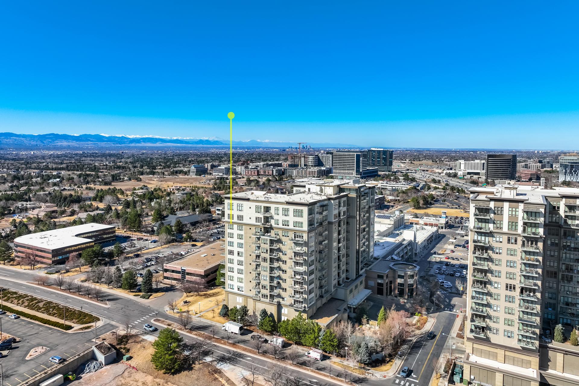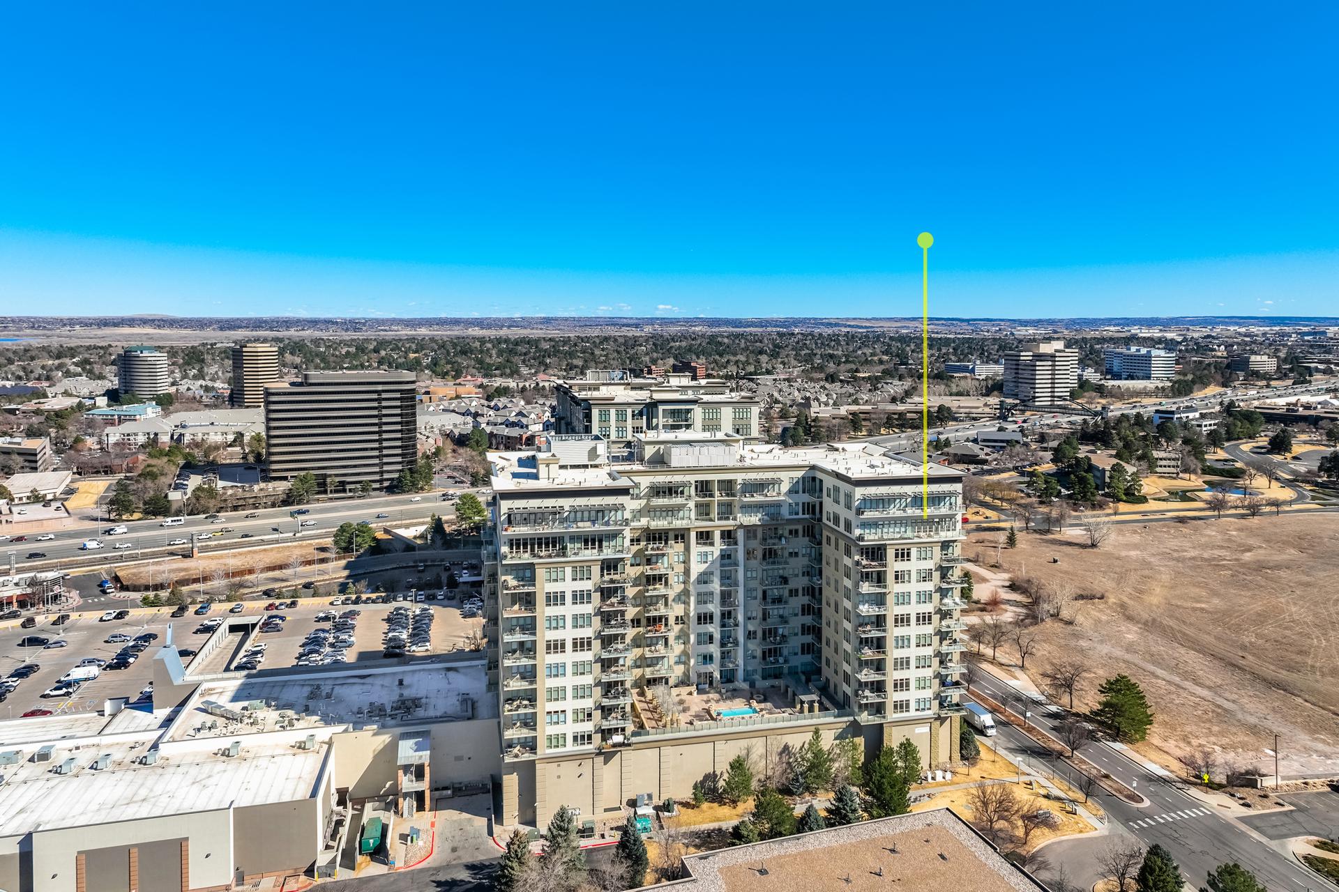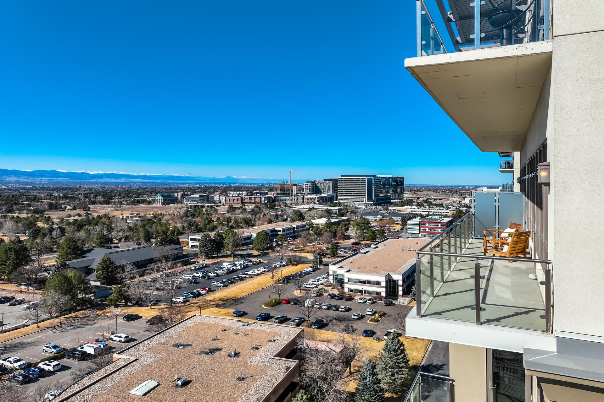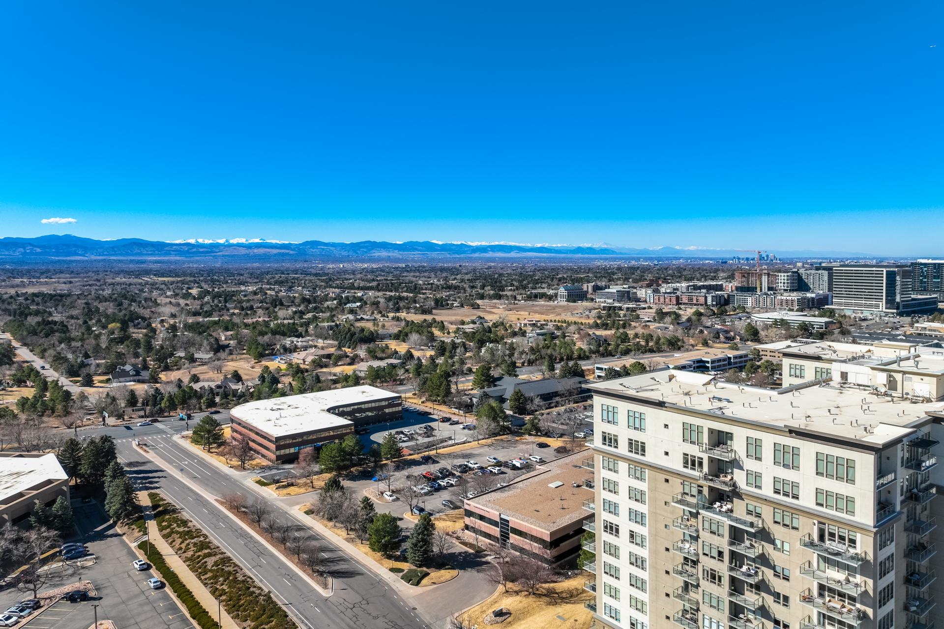 Located on a penthouse level of the West Tower at The Landmark, this southwest corner two-bedroom, two-bath residence offers elevated living with soaring 13-foot ceilings and breathtaking, unobstructed mountain views from the west-facing balcony—stretching from Pikes Peak to Longs Peak. Flooded with natural light, the open-concept layout showcases hardwood floors throughout and a gas fireplace anchoring the great room. The spacious kitchen is designed for both everyday living and entertaining, featuring abundant cabinetry, stainless steel appliances, a gas range, and a wine refrigerator. The primary suite is a private retreat, complete with a luxurious five-piece bath and a generous walk-in closet with extensive built-ins. With two garage spaces (and an option for a 3rd) and two storage spaces, this penthouse combines refined comfort, thoughtful design, and unparalleled convenience. The Landmark offers a refined, resort-inspired way of life, with premium amenities available throughout the towers, including 24/7 concierge and security services, elegant pools and spas, cutting-edge fitness facilities, saunas and steam rooms, business and meeting spaces, a library, resident lounges, guest accommodations, dedicated wine storage, and more. Just moments from the shops, restaurants, and entertainment of Landmark Plaza, and conveniently connected to the Denver Tech Center, major highways, light rail, and downtown Denver. Designed for effortless, lock-and-leave living, this home blends bright and airy interiors and a prime setting—perfect for those who appreciate elevated city living with stunning mountain views.