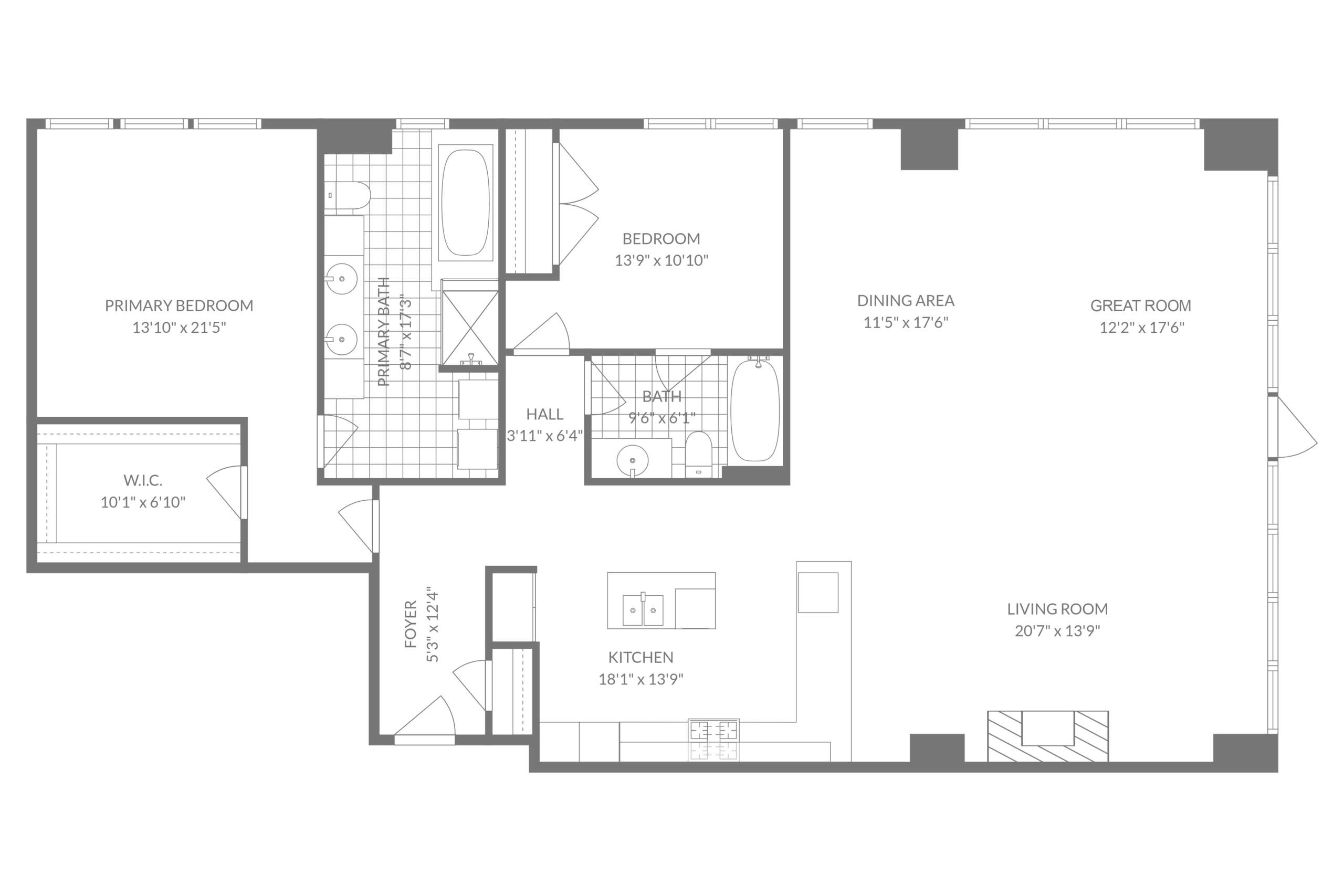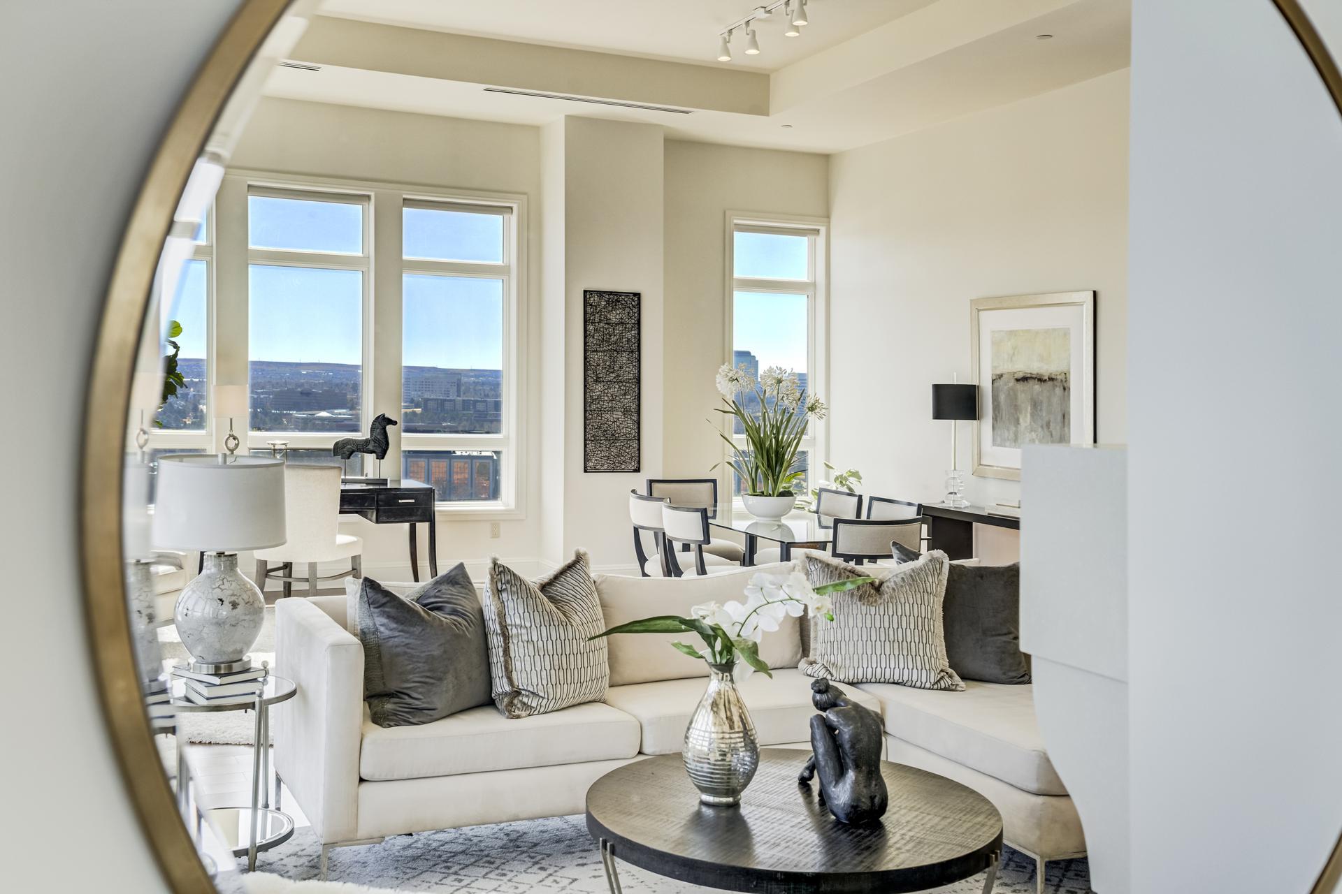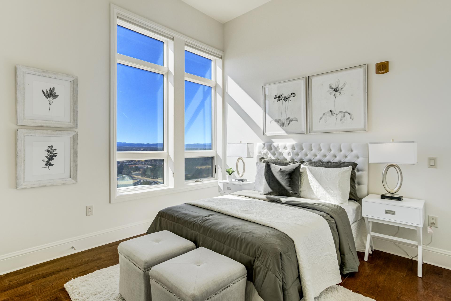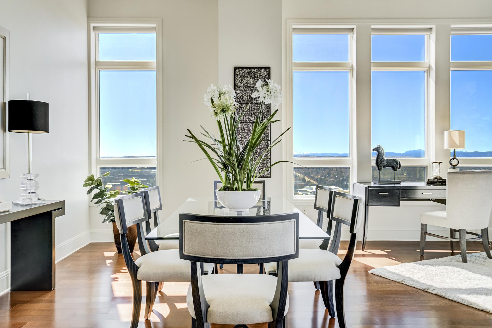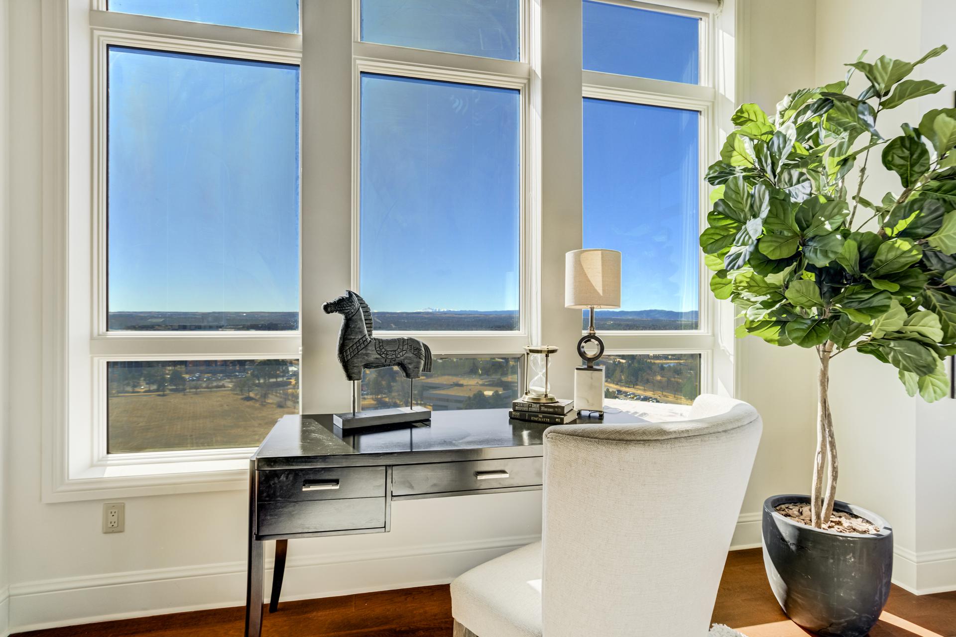 Located on a penthouse level of the West Tower at The Landmark, this southwest corner two-bedroom, two-bath residence offers elevated living with soaring 13-foot ceilings and breathtaking, unobstructed mountain views from the west-facing balcony—stretching from Pikes Peak to Longs Peak. Flooded with natural light, the open-concept layout showcases hardwood floors throughout and a gas fireplace anchoring the great room. The spacious kitchen is designed for both everyday living and entertaining, featuring abundant cabinetry, stainless steel appliances, a gas range, and a wine refrigerator. The primary suite is a private retreat, complete with a luxurious five-piece bath and a generous walk-in closet with extensive built-ins. With two garage spaces (and an option for a 3rd) and two storage spaces, this penthouse combines refined comfort, thoughtful design, and unparalleled convenience. The Landmark offers a refined, resort-inspired way of life, with premium amenities available throughout the towers, including 24/7 concierge and security services, elegant pools and spas, cutting-edge fitness facilities, saunas and steam rooms, business and meeting spaces, a library, resident lounges, guest accommodations, dedicated wine storage, and more. Just moments from the shops, restaurants, and entertainment of Landmark Plaza, and conveniently connected to the Denver Tech Center, major highways, light rail, and downtown Denver. Designed for effortless, lock-and-leave living, this home blends bright and airy interiors and a prime setting—perfect for those who appreciate elevated city living with stunning mountain views.