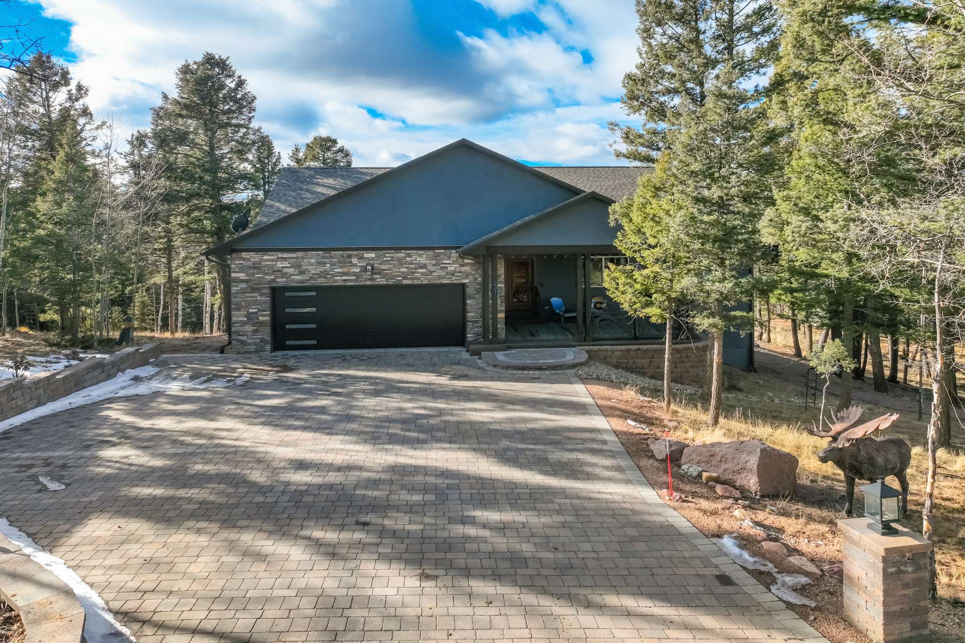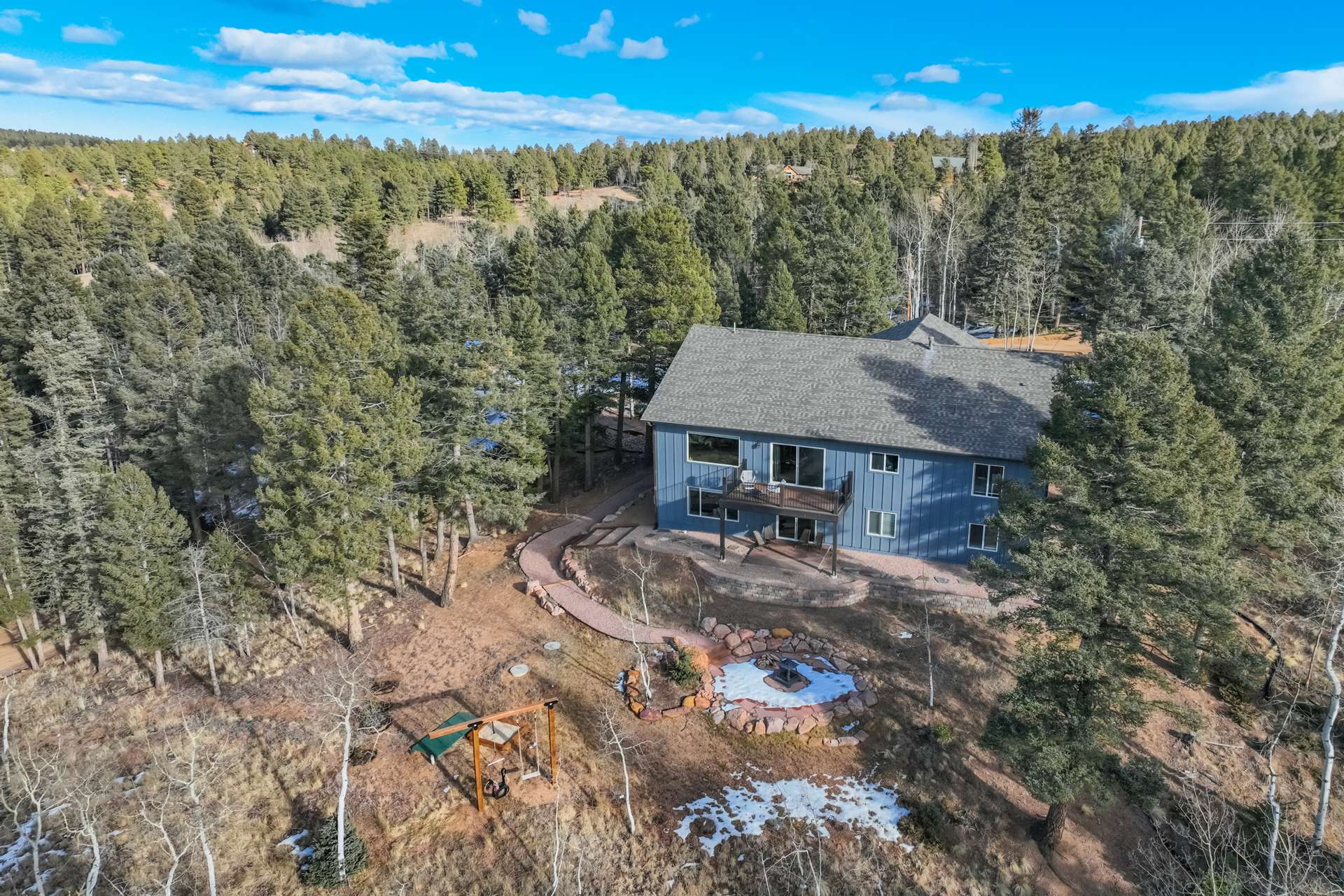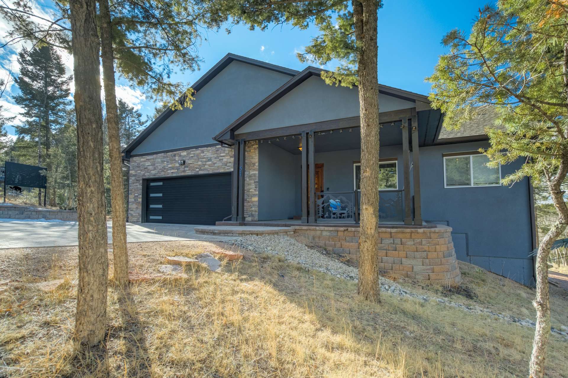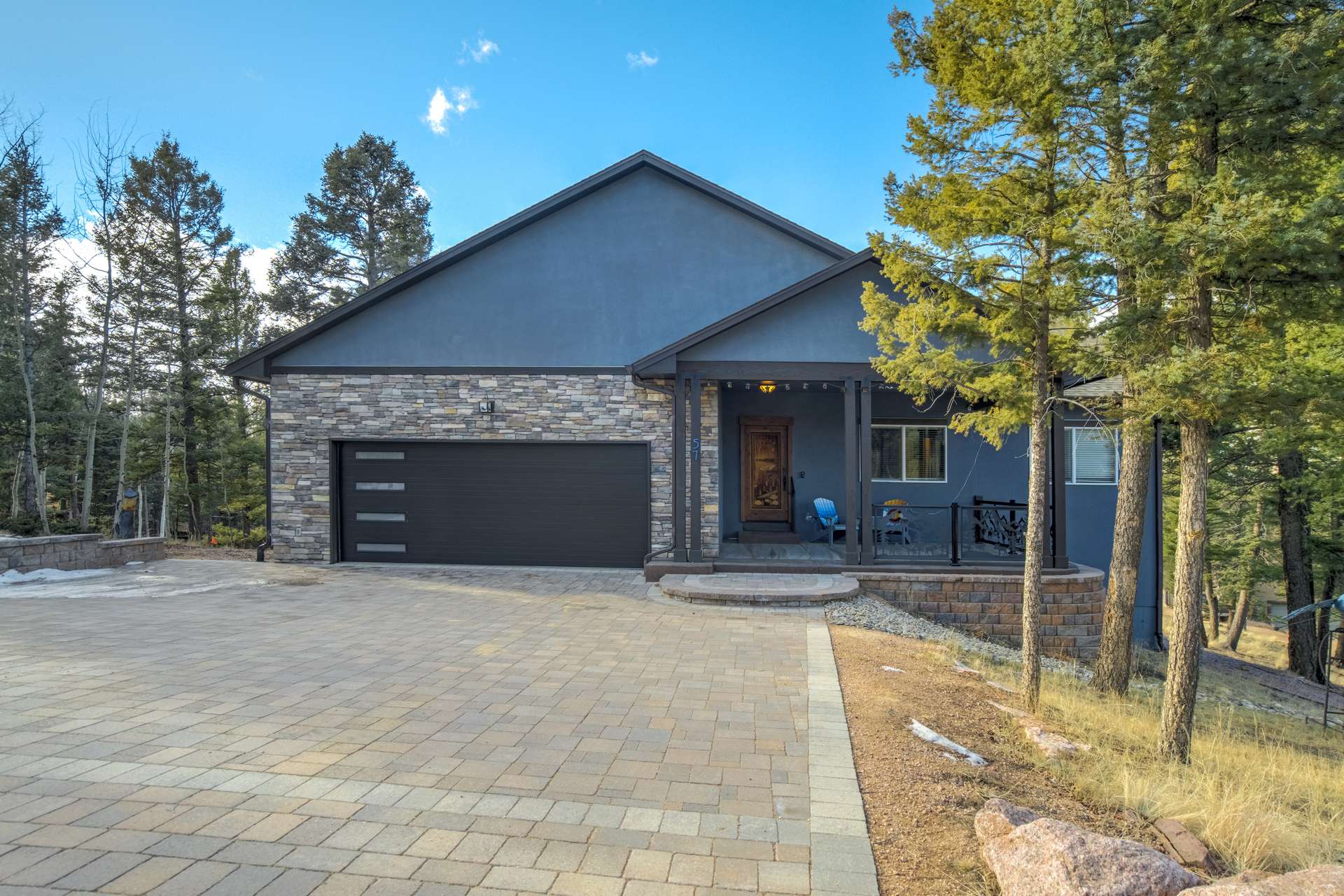Imagine Luxury Living in this Wooded Colorado Dreamscape... It's like a Mountain Vacation Getaway every day of the year! Life is different here, where fresh air, wildlife, and the quiet of nature abound... The perfect setting for the stunning beauty of this custom ranch style home. The appeal is instant with professionally landscaped grounds and the custom driveway, nestled on a private cut-de-sac among the trees. The inviting and spacious covered front porch welcomes you, and is the perfect spot for morning coffees or to watch the stars by night. Step inside to soaring ceilings and gleaming 4-inch natural hardwood floors which guide you through this wide-open floor plan, featuring the perfect blend of elegant sophistication and harmony with nature. Tons of natural light and treetop vistas flood through large windows and showcase the effortless transition from the generous living room to the gourmet kitchen... It's the perfect concept for gatherings, entertaining or cozy nights by the fireplace. Enjoy true one living with the main-level primary suite, two auxiliary bedrooms and an accommodating laundry room, or retire to the massive finished basement featuring huge living spaces, a wet bar, two more bedrooms and a walk-out to your private patio. There's no limit to the pleasure of outdoor living here! The huge deck upstairs offers 360-degree views and may become your favorite quiet spot to unwind. This exclusive community offers nine private fishing lakes and so many trails and adventures to explore. Centrally located to the casinos and cultural history of Cripple Creek, the Florissant Fossil Beds National Monument, and World Class Fly Fishing... It's like your own slice of Colorado Heaven! Dining, Shopping, and Entertainment await just a few minutes away in Woodland Park. This home is a rare and wonderful opportunity for some fortunate buyer... You don't want to miss it! Be sure and check out the 3-D Matterport tour available now.