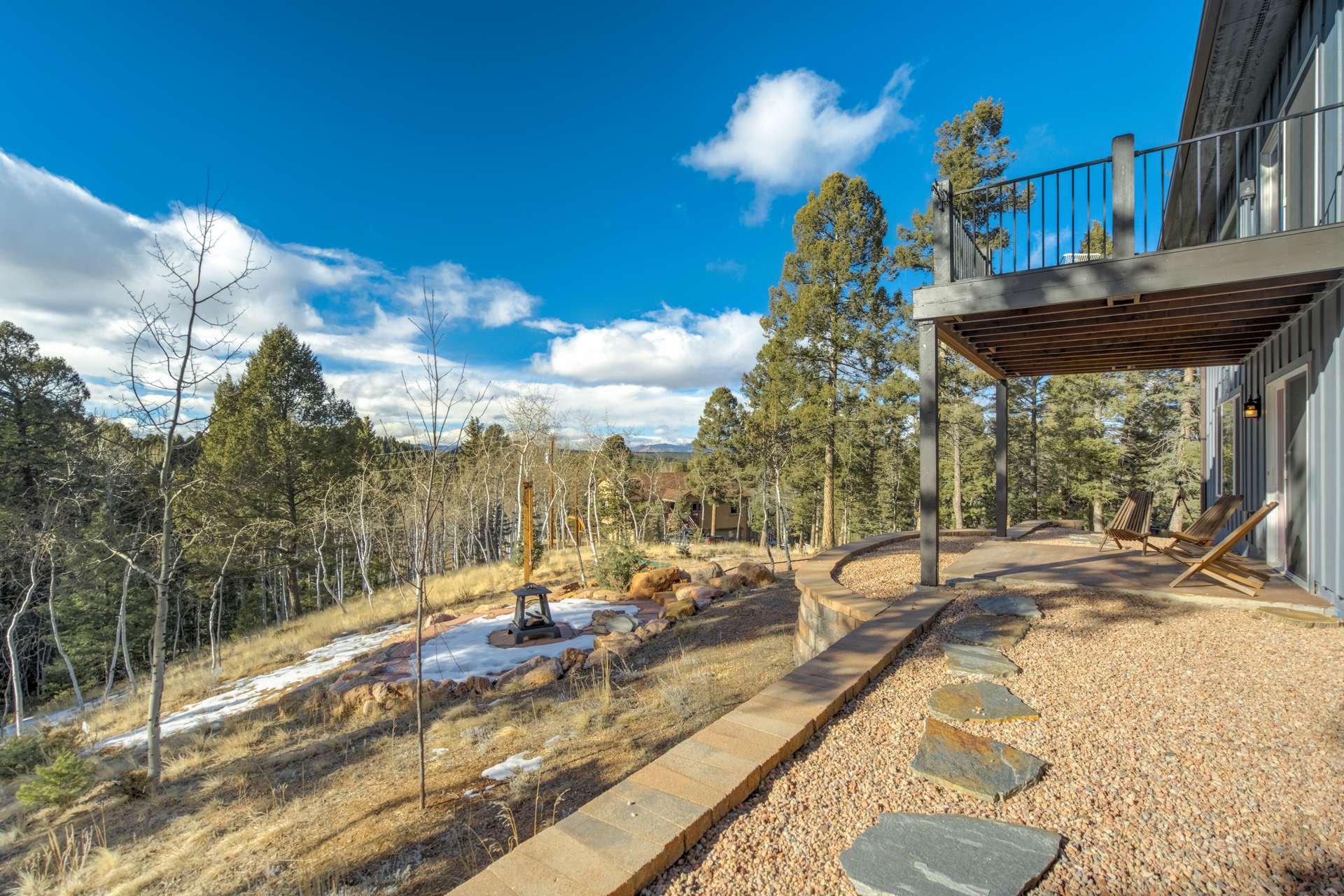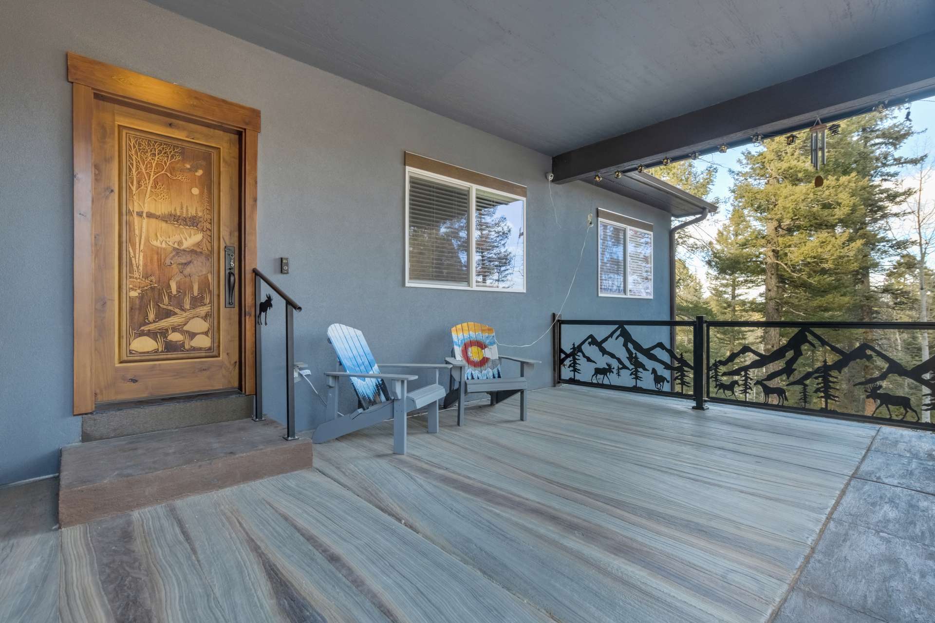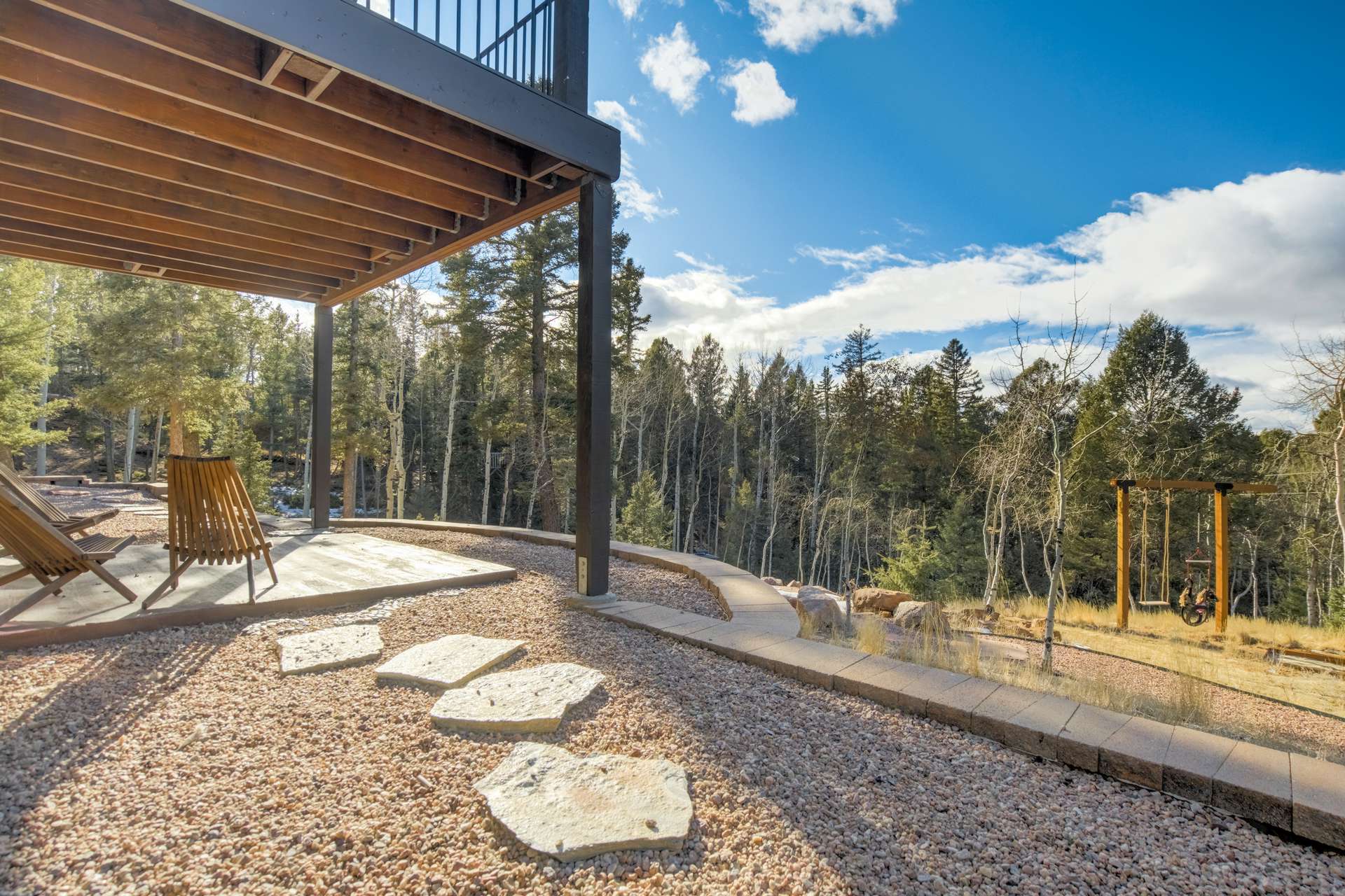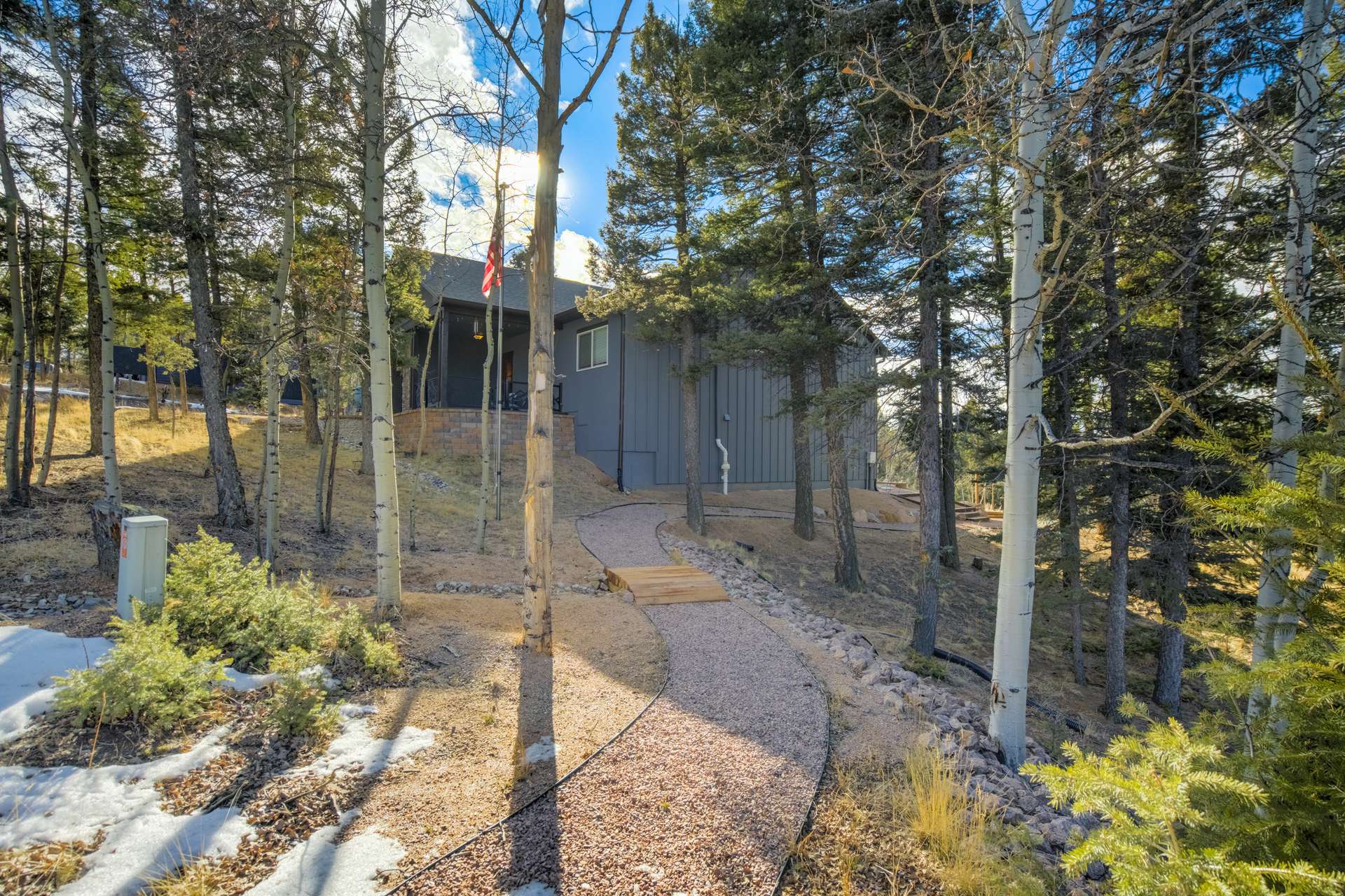 Imagine Luxury Living in this Wooded Colorado Dreamscape... It's like a Mountain Vacation Getaway every day of the year! Life is different here, where fresh air, wildlife, and the quiet of nature abound... The perfect setting for the stunning beauty of this custom ranch style home. The appeal is instant with professionally landscaped grounds and the custom driveway, nestled on a private cut-de-sac among the trees. The inviting and spacious covered front porch welcomes you, and is the perfect spot for morning coffees or to watch the stars by night. Step inside to soaring ceilings and gleaming 4-inch natural hardwood floors which guide you through this wide-open floor plan, featuring the perfect blend of elegant sophistication and harmony with nature. Tons of natural light and treetop vistas flood through large windows and showcase the effortless transition from the generous living room to the gourmet kitchen... It's the perfect concept for gatherings, entertaining or cozy nights by the fireplace. Enjoy true one living with the main-level primary suite, two auxiliary bedrooms and an accommodating laundry room, or retire to the massive finished basement featuring huge living spaces, a wet bar, two more bedrooms and a walk-out to your private patio. There's no limit to the pleasure of outdoor living here! The huge deck upstairs offers 360-degree views and may become your favorite quiet spot to unwind. This exclusive community offers nine private fishing lakes and so many trails and adventures to explore. Centrally located to the casinos and cultural history of Cripple Creek, the Florissant Fossil Beds National Monument, and World Class Fly Fishing... It's like your own slice of Colorado Heaven! Dining, Shopping, and Entertainment await just a few minutes away in Woodland Park. This home is a rare and wonderful opportunity for some fortunate buyer... You don't want to miss it! Be sure and check out the 3-D Matterport tour available now.