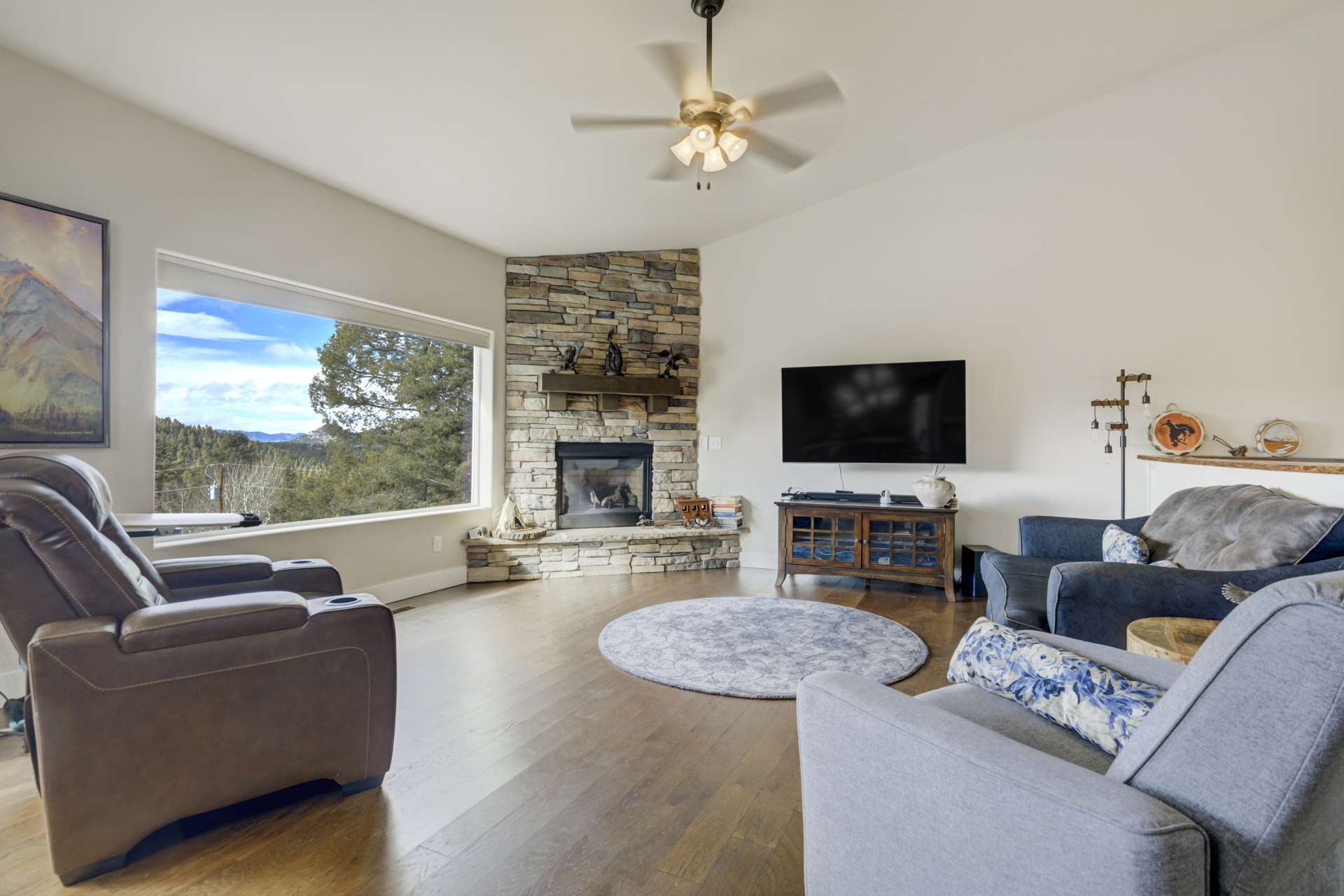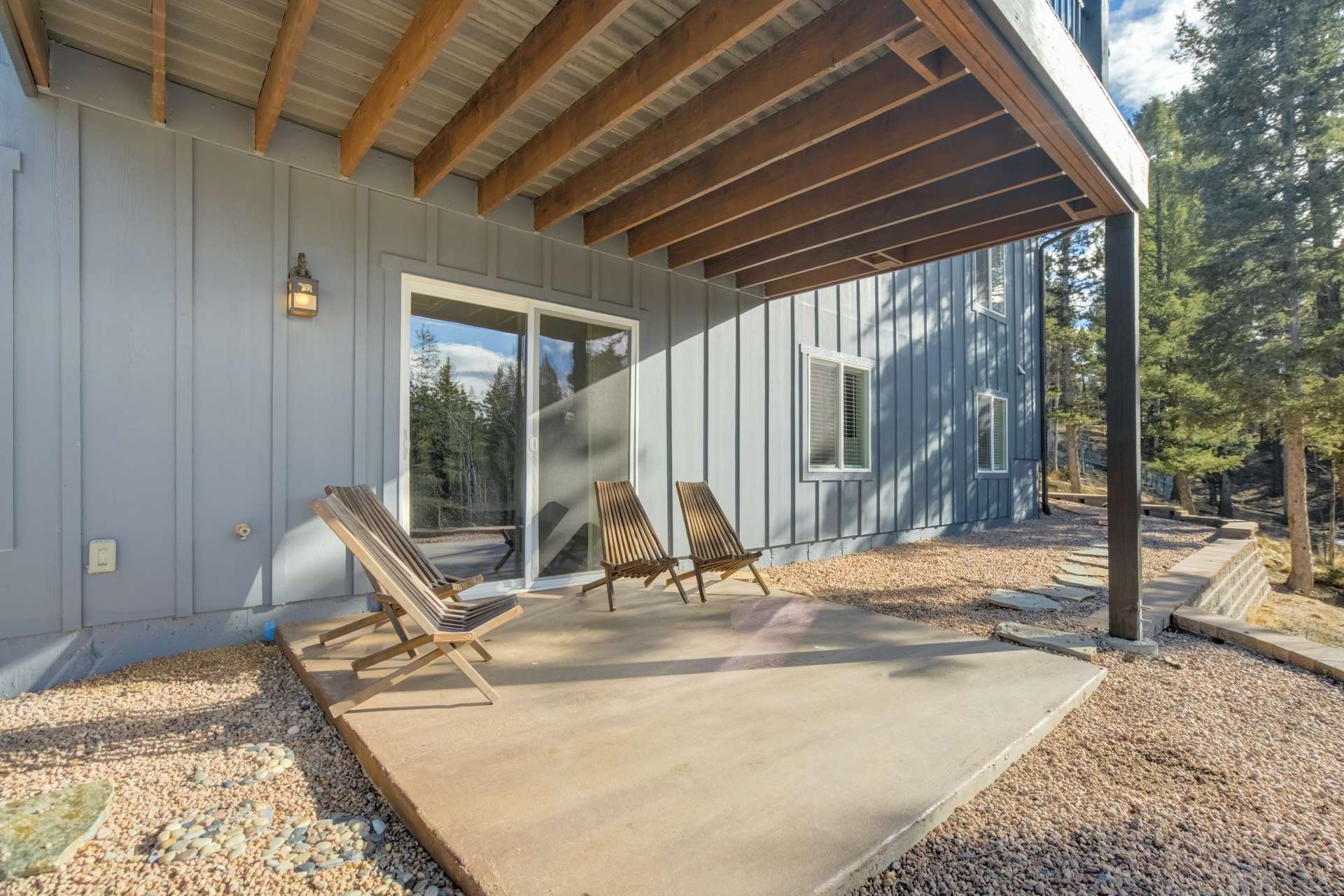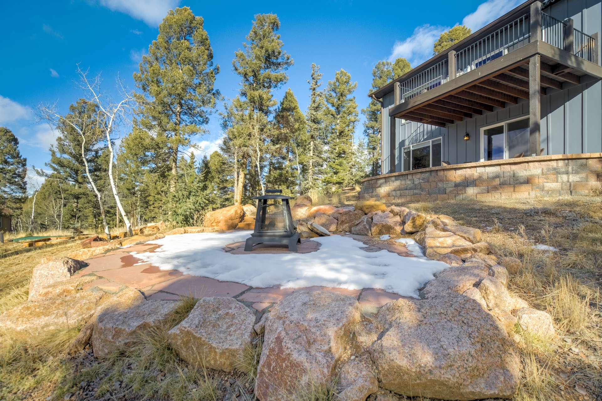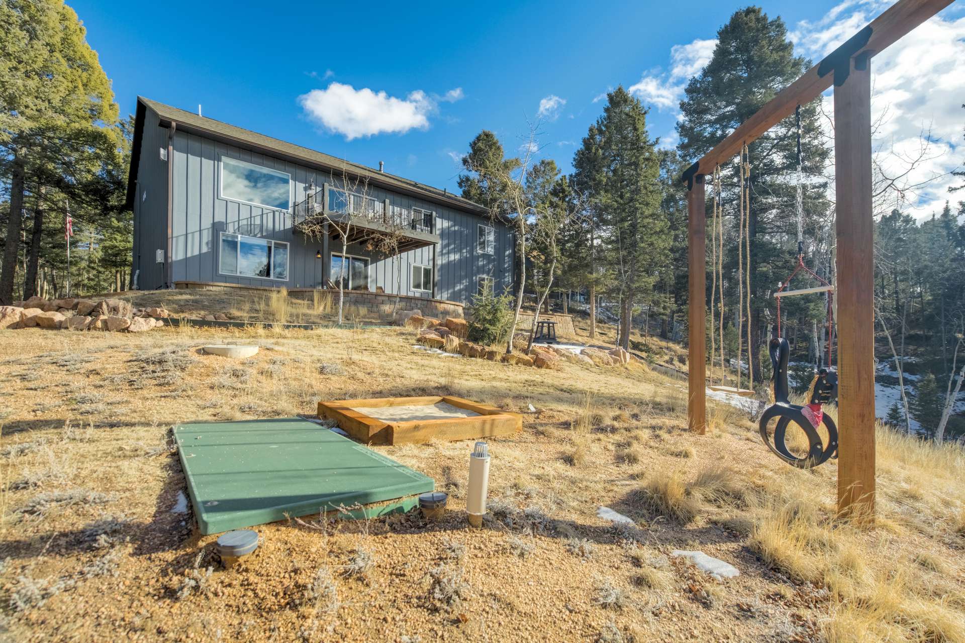 Imagine Luxury Living in this Wooded Colorado Dreamscape... It's like a Mountain Vacation Getaway every day of the year! Life is different here, where fresh air, wildlife, and the quiet of nature abound... The perfect setting for the stunning beauty of this custom ranch style home. The appeal is instant with professionally landscaped grounds and the custom driveway, nestled on a private cut-de-sac among the trees. The inviting and spacious covered front porch welcomes you, and is the perfect spot for morning coffees or to watch the stars by night. Step inside to soaring ceilings and gleaming 4-inch natural hardwood floors which guide you through this wide-open floor plan, featuring the perfect blend of elegant sophistication and harmony with nature. Tons of natural light and treetop vistas flood through large windows and showcase the effortless transition from the generous living room to the gourmet kitchen... It's the perfect concept for gatherings, entertaining or cozy nights by the fireplace. Enjoy true one living with the main-level primary suite, two auxiliary bedrooms and an accommodating laundry room, or retire to the massive finished basement featuring huge living spaces, a wet bar, two more bedrooms and a walk-out to your private patio. There's no limit to the pleasure of outdoor living here! The huge deck upstairs offers 360-degree views and may become your favorite quiet spot to unwind. This exclusive community offers nine private fishing lakes and so many trails and adventures to explore. Centrally located to the casinos and cultural history of Cripple Creek, the Florissant Fossil Beds National Monument, and World Class Fly Fishing... It's like your own slice of Colorado Heaven! Dining, Shopping, and Entertainment await just a few minutes away in Woodland Park. This home is a rare and wonderful opportunity for some fortunate buyer... You don't want to miss it! Be sure and check out the 3-D Matterport tour available now.