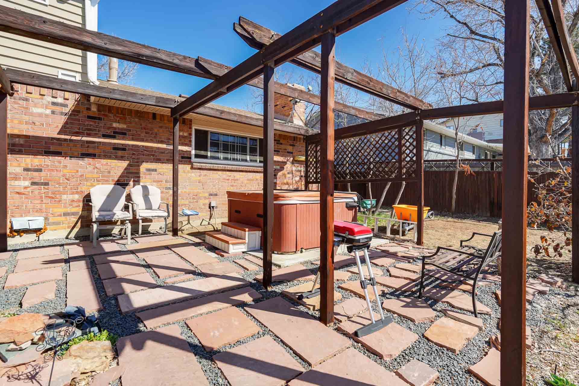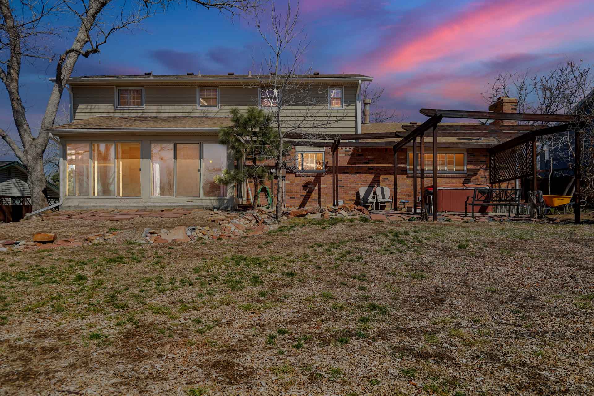 No HOA! Massive lot in the most desirable neighborhood in Centennial Palos Verdes subdivision. This beautiful home features 4 bedrooms and 3 bathrooms with great opportunity in living in Denver Tech Center. The house offers great potential for future updates with ideal listing price. Enjoy the welcome entrance sight of the covered front porch with the gorgeous front yard. As you step inside off the covered front porch you'll be welcomed with Brazilian hardwood flooring in the foyer and formal dining room that provide tons of light through the large bay window. The family room present cozy brick gas fireplace for cooler evenings. The tiled kitchen with the center island has plenty of cabinet space with appliances included and breakfast nook space. The custom warm inviting enclosed sunroom with sliding glass doors offers abundance of natural light for morning coffee. The huge partially finished basement offers plenty of options to be designed the way you want. The upstairs level has 4 bedrooms, full bath for the two adjacent bedrooms, 3/4 bath and walk in closet for the primary suite. Fully fenced massive backyard with hot tub included. This home is nestled at the heart of DTC with great school district of cherry creek and conveniently located near shopping, dining and entertainment centers. Hurry it won't last long!!