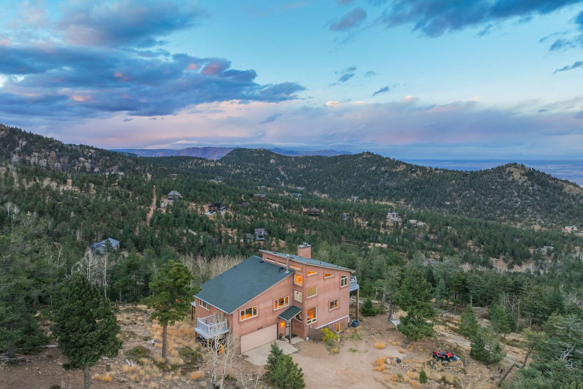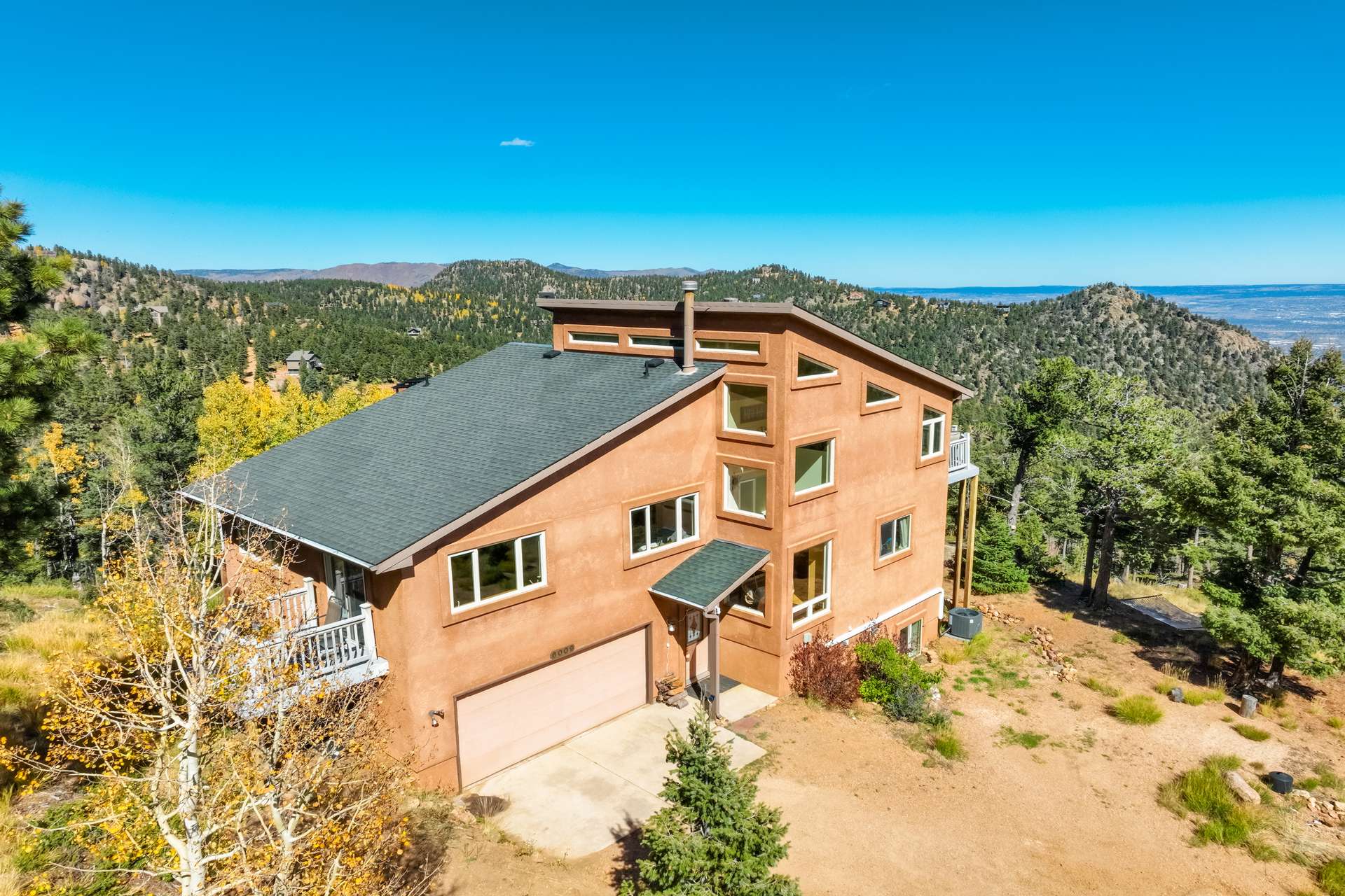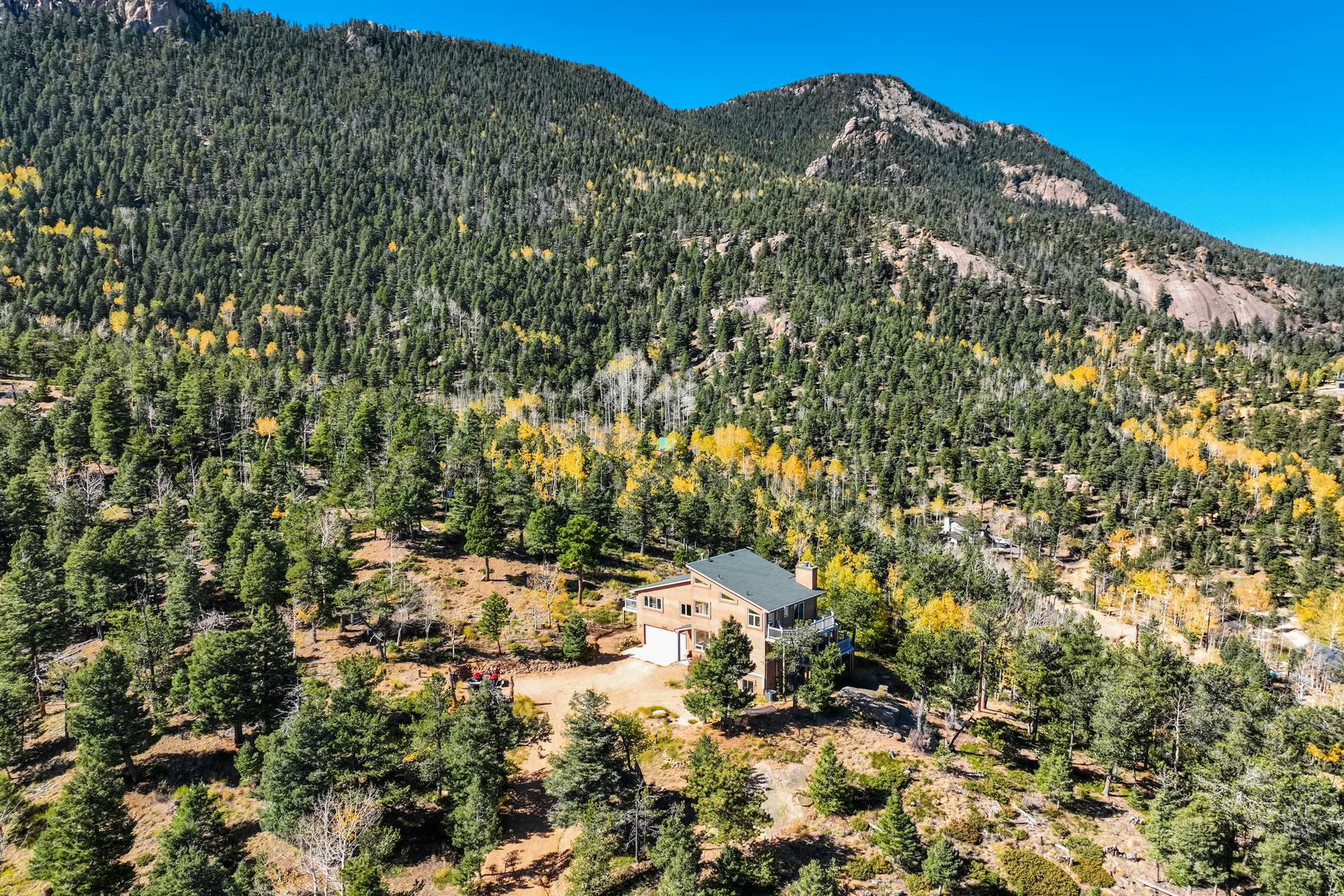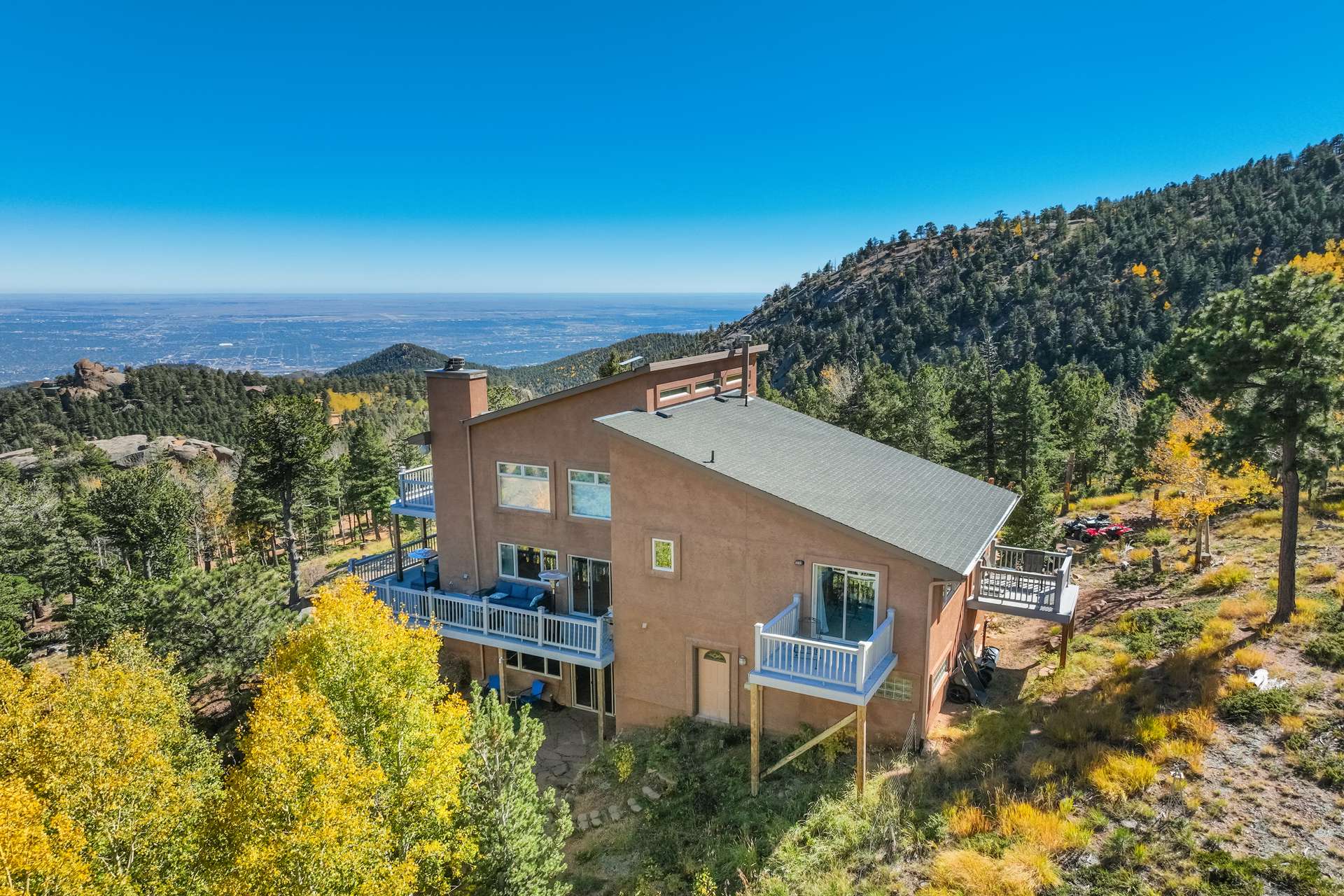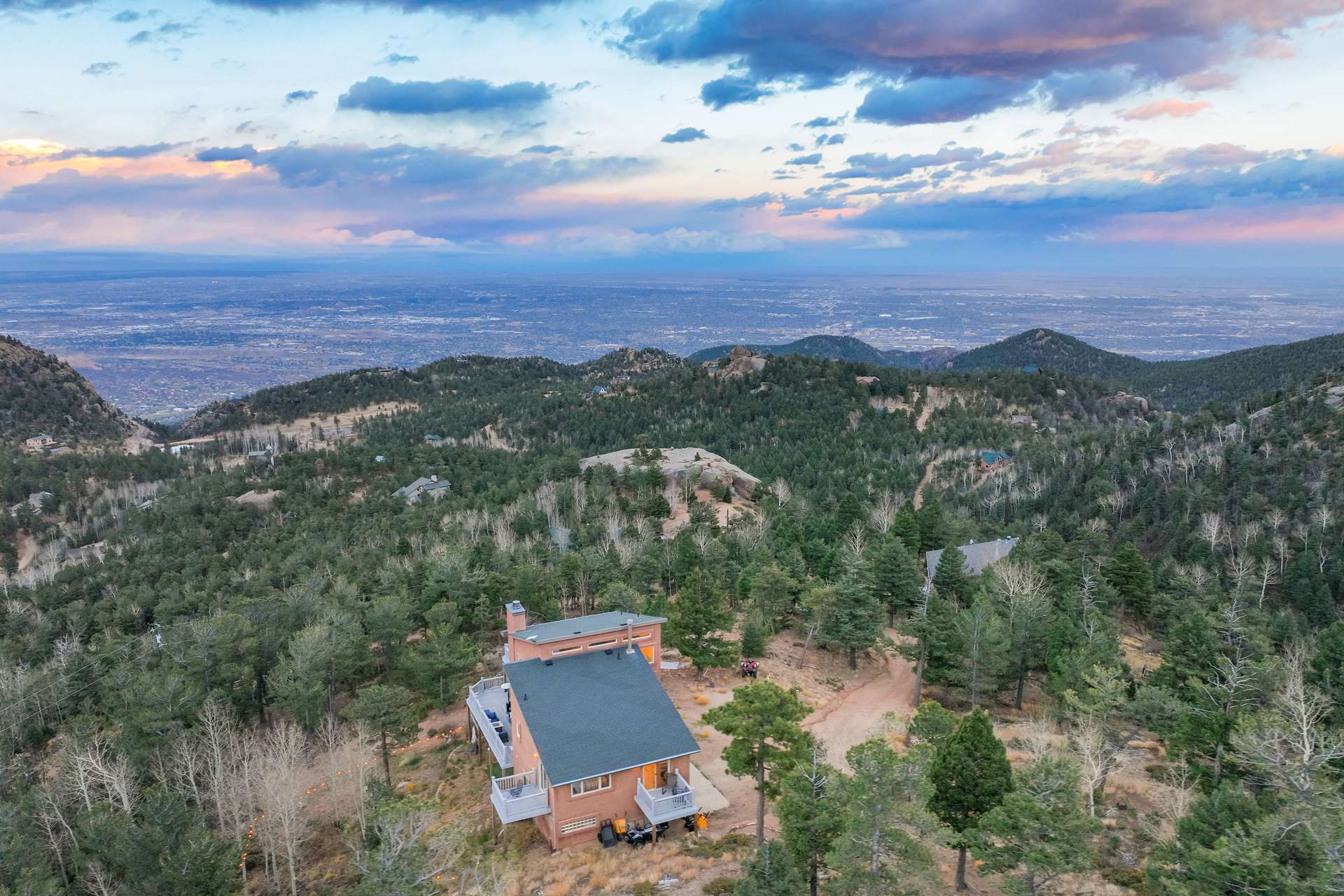Perched high above the clouds in the gated community of Crystal Park, this mountain retreat blends striking modern design w/ the quiet privacy of a true alpine escape. Photos don’t do this one justice, you must see this one in person! Set on nearly 3/4 of an acre the home captures 360-degree views incl Pikes Peak, Garden of the Gods, Cameron Cone & the entire city below, one of the most dramatic vantage points in Manitou Springs. Inside, the entry has new hexagon tile & paneled wall leads you into light-filled living areas, w/walls of glass that bring the landscape in. Wood-burning FP anchors the great rm w/stacked stone surround, while the adj kitchen & dining space flow effortlessly to multiple decks. The kitchen has SST appliances, butcher block island, & pantry. Nearby the living rm boasts new luxury vinyl plank floor, & LED can lighting, expanding the home’s livability. Additionally on this lvl is a bedrm w/priv deck & access to full bath w/dble vanity, tile flr/shower surround. The upper-lvl master bedrm takes advantage of the views, boasting large picture windows & sliding glass dr to deck. Feat new carpet, vaulted ceilings w/transom windows, new accent wall w/electric FP, sitting area, walk-in closet & adj 5pc ba. The bath has jetted tub, mosaic tile, dble vanity, & thoughtful architectural design w/passive solar. Downstairs the walk-out bsmnt offers a family room w/9’ ceilings, woodburning stove, 3rd bedrm, laundry, & ¾ bath. Bonus new carpet throughout, newer vinyl windows, new central A/C, humidifier, radon system, dual-fuel generator, 1,000gal propane tank & more! Outdoors, the setting is extraordinary, backing directly to Pike NF w/ no buildable lots around for complete seclusion. Priv trails that start right off the property, 10-minute walk to a waterfall & nearby area known for natural gemstones. Enjoy a manned gatehouse, clubhouse, heated seasonal pool, trout pond, tennis & pickleball courts, plus HOA-maintained roads for easy year-round access.