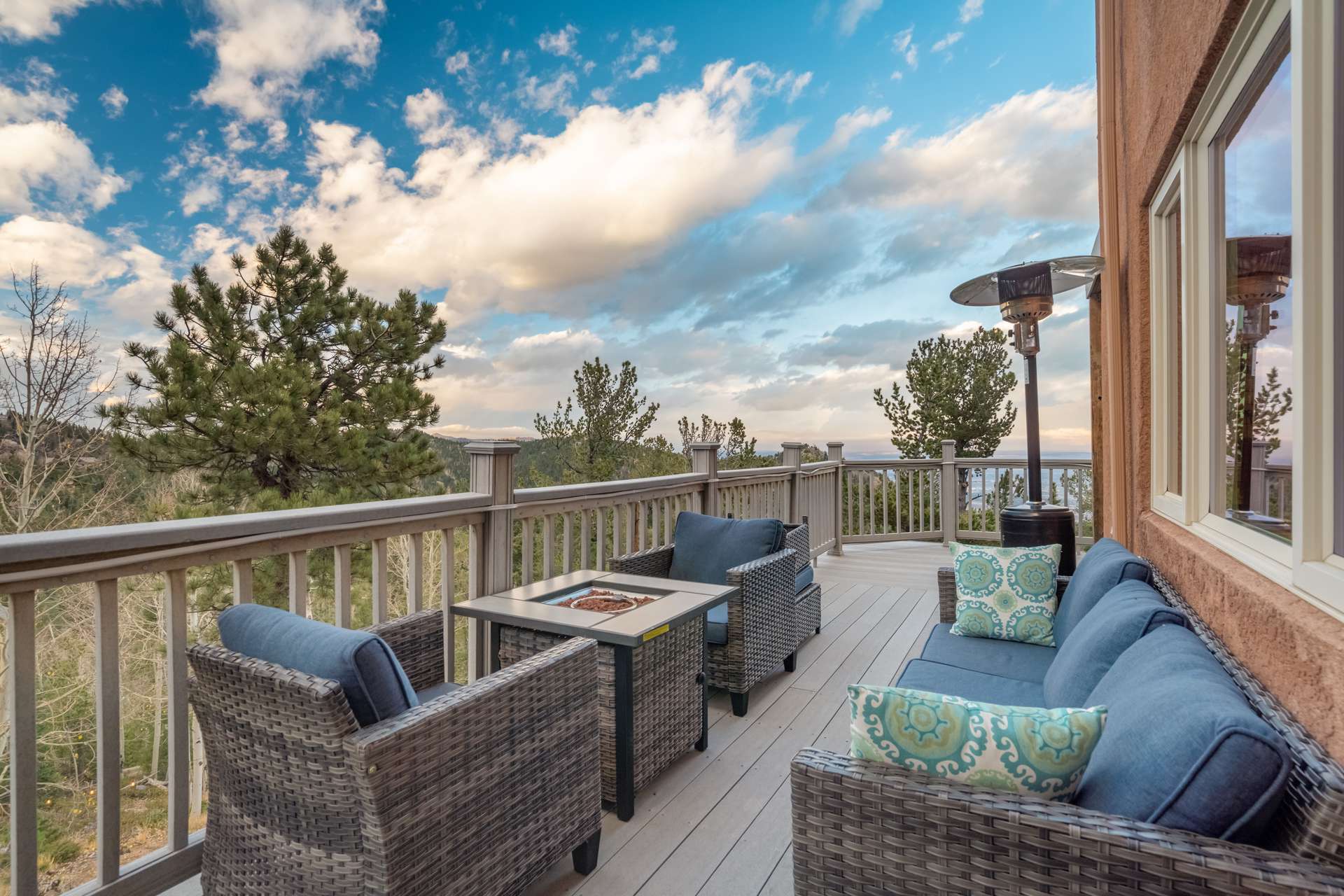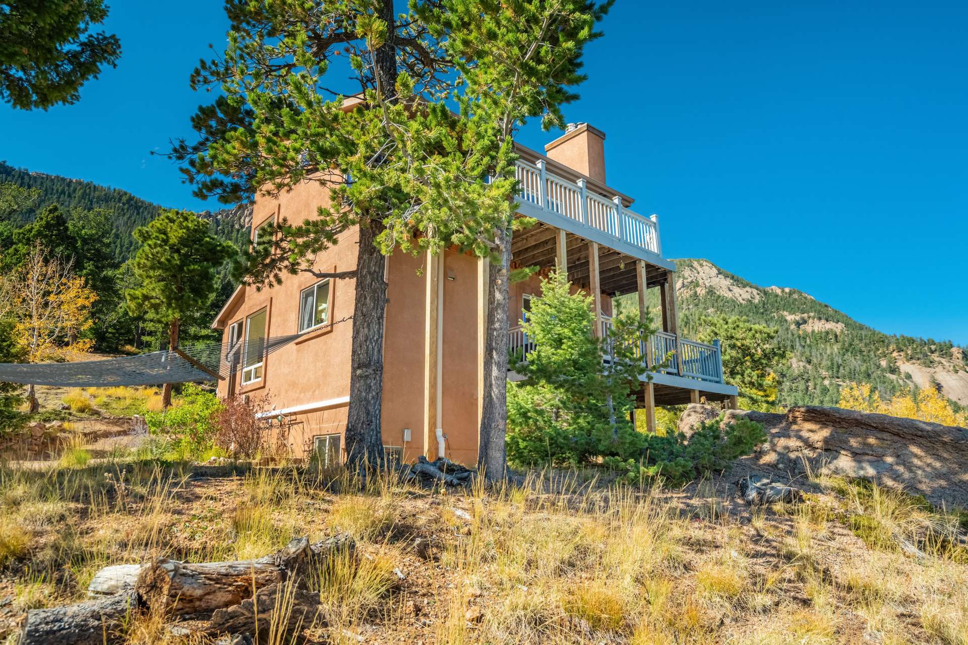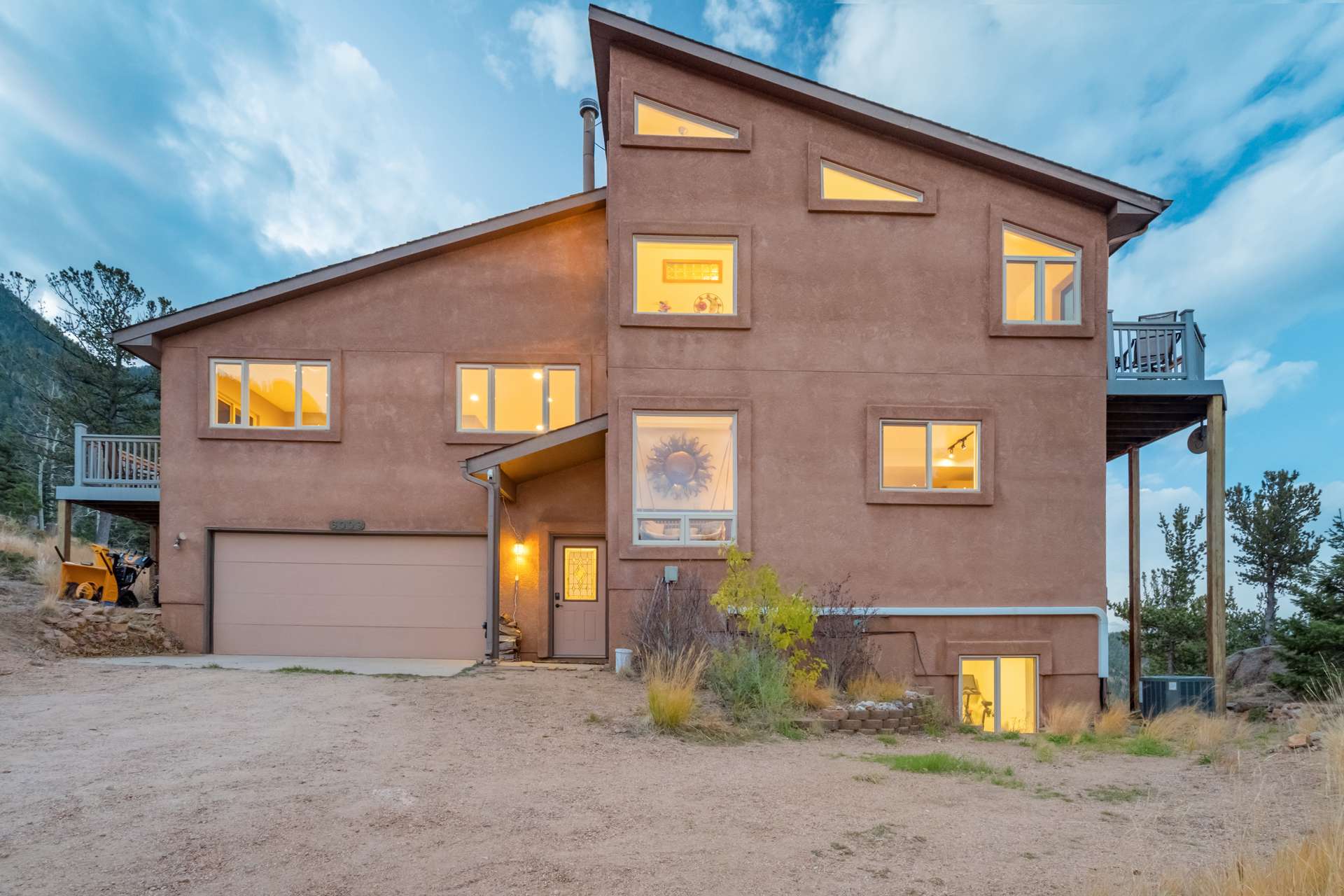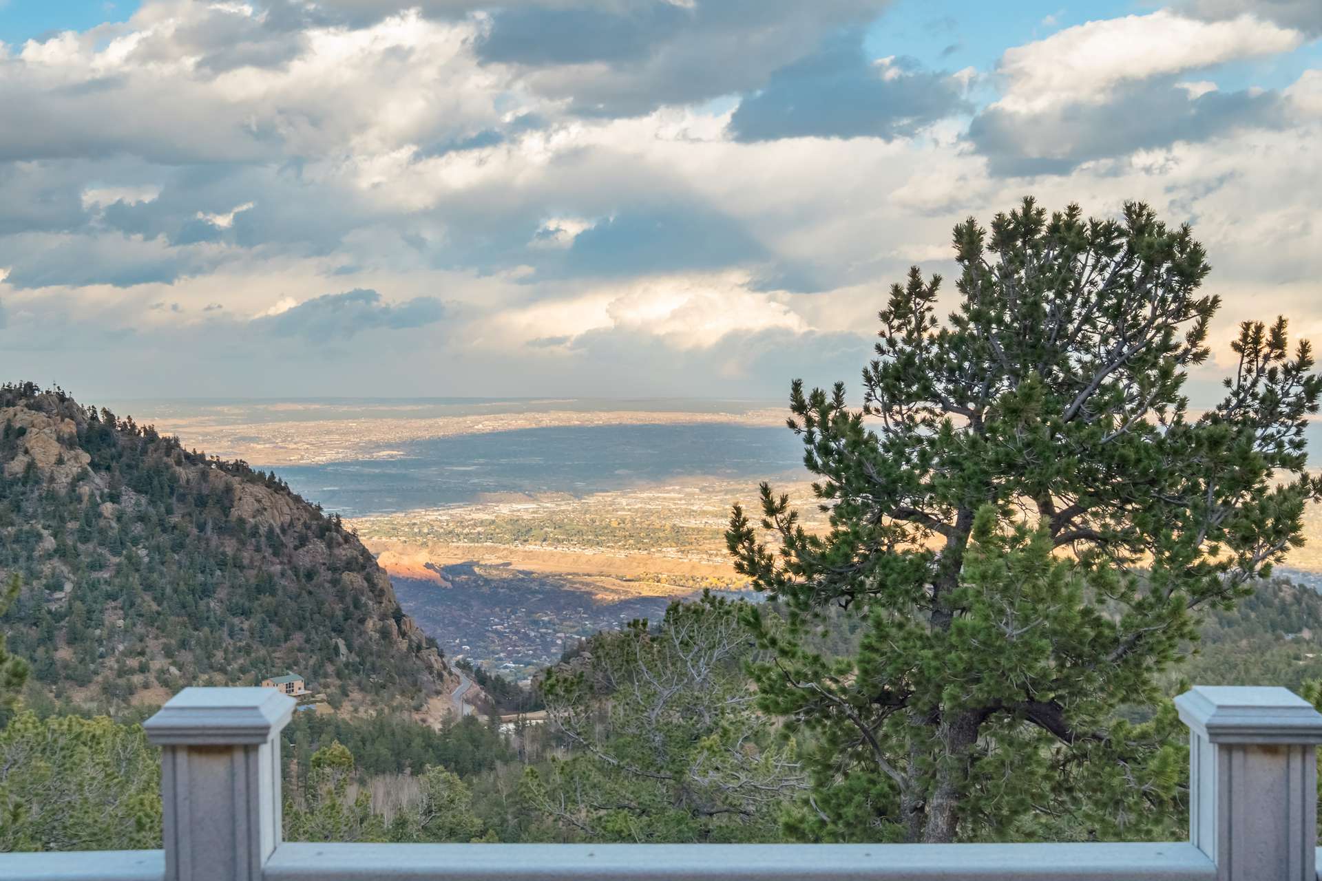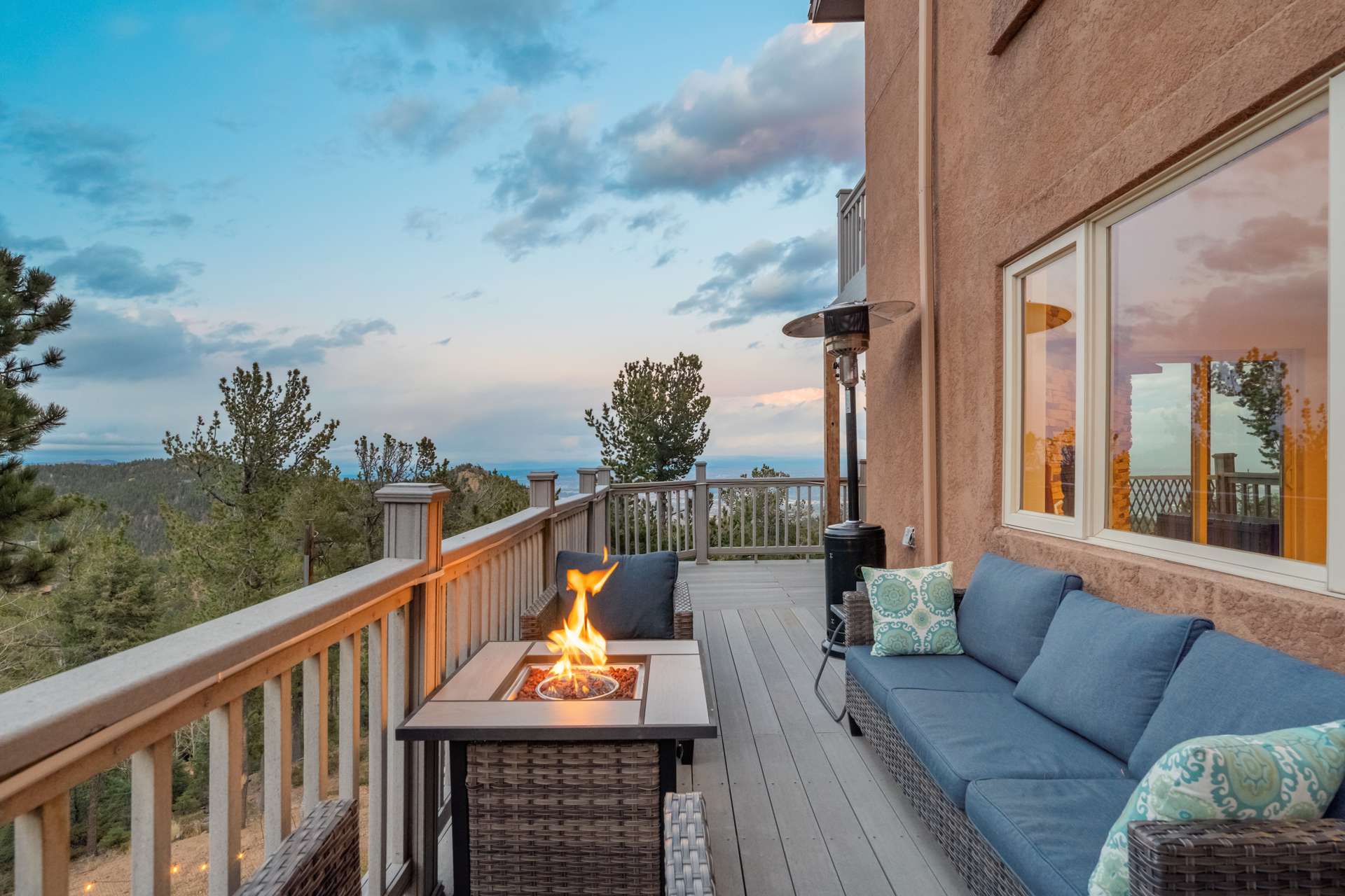 Perched high above the clouds in the gated community of Crystal Park, this mountain retreat blends striking modern design w/ the quiet privacy of a true alpine escape. Photos don’t do this one justice, you must see this one in person! Set on nearly 3/4 of an acre the home captures 360-degree views incl Pikes Peak, Garden of the Gods, Cameron Cone & the entire city below, one of the most dramatic vantage points in Manitou Springs. Inside, the entry has new hexagon tile & paneled wall leads you into light-filled living areas, w/walls of glass that bring the landscape in. Wood-burning FP anchors the great rm w/stacked stone surround, while the adj kitchen & dining space flow effortlessly to multiple decks. The kitchen has SST appliances, butcher block island, & pantry. Nearby the living rm boasts new luxury vinyl plank floor, & LED can lighting, expanding the home’s livability. Additionally on this lvl is a bedrm w/priv deck & access to full bath w/dble vanity, tile flr/shower surround. The upper-lvl master bedrm takes advantage of the views, boasting large picture windows & sliding glass dr to deck. Feat new carpet, vaulted ceilings w/transom windows, new accent wall w/electric FP, sitting area, walk-in closet & adj 5pc ba. The bath has jetted tub, mosaic tile, dble vanity, & thoughtful architectural design w/passive solar. Downstairs the walk-out bsmnt offers a family room w/9’ ceilings, woodburning stove, 3rd bedrm, laundry, & ¾ bath. Bonus new carpet throughout, newer vinyl windows, new central A/C, humidifier, radon system, dual-fuel generator, 1,000gal propane tank & more! Outdoors, the setting is extraordinary, backing directly to Pike NF w/ no buildable lots around for complete seclusion. Priv trails that start right off the property, 10-minute walk to a waterfall & nearby area known for natural gemstones. Enjoy a manned gatehouse, clubhouse, heated seasonal pool, trout pond, tennis & pickleball courts, plus HOA-maintained roads for easy year-round access.