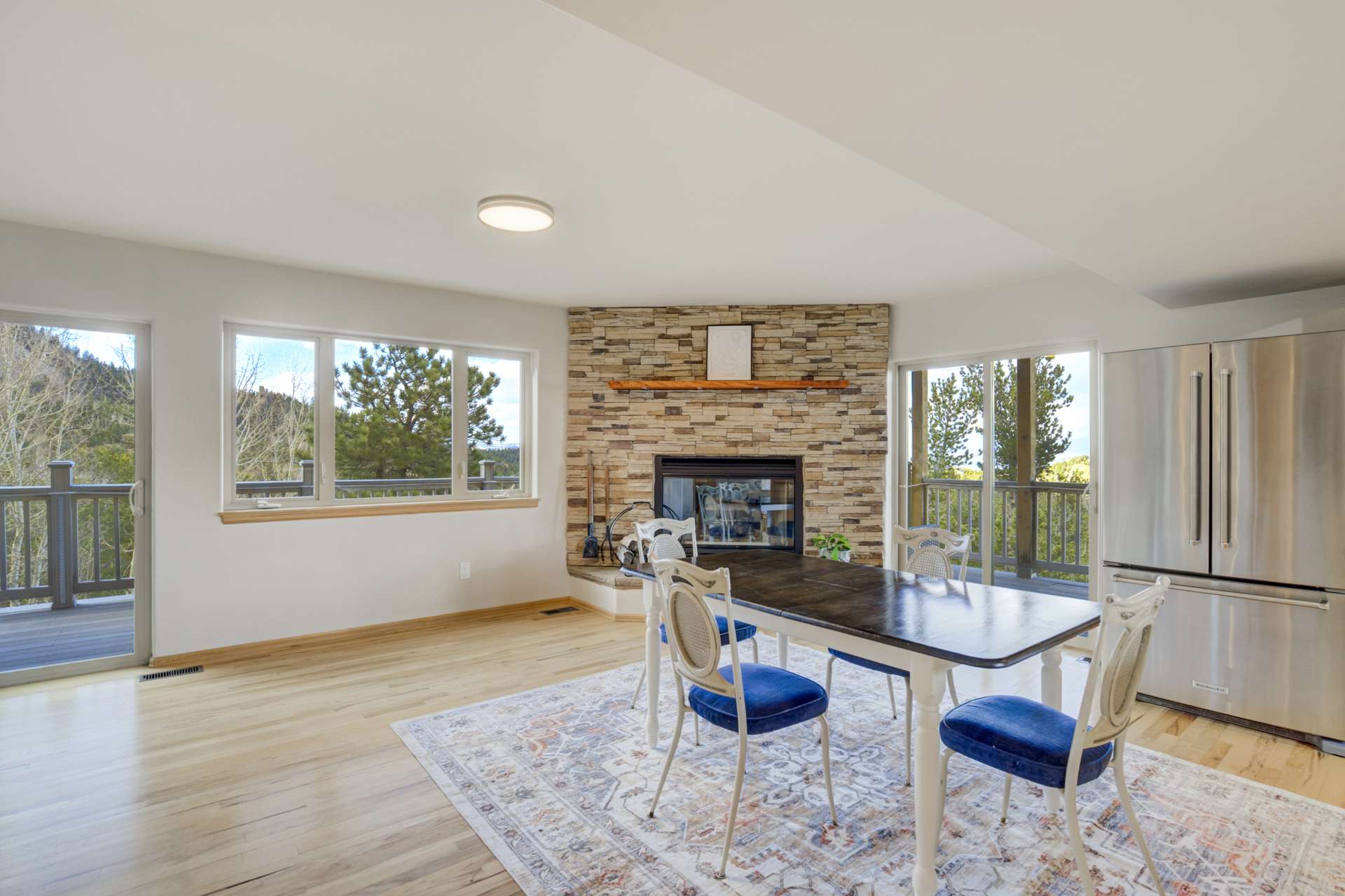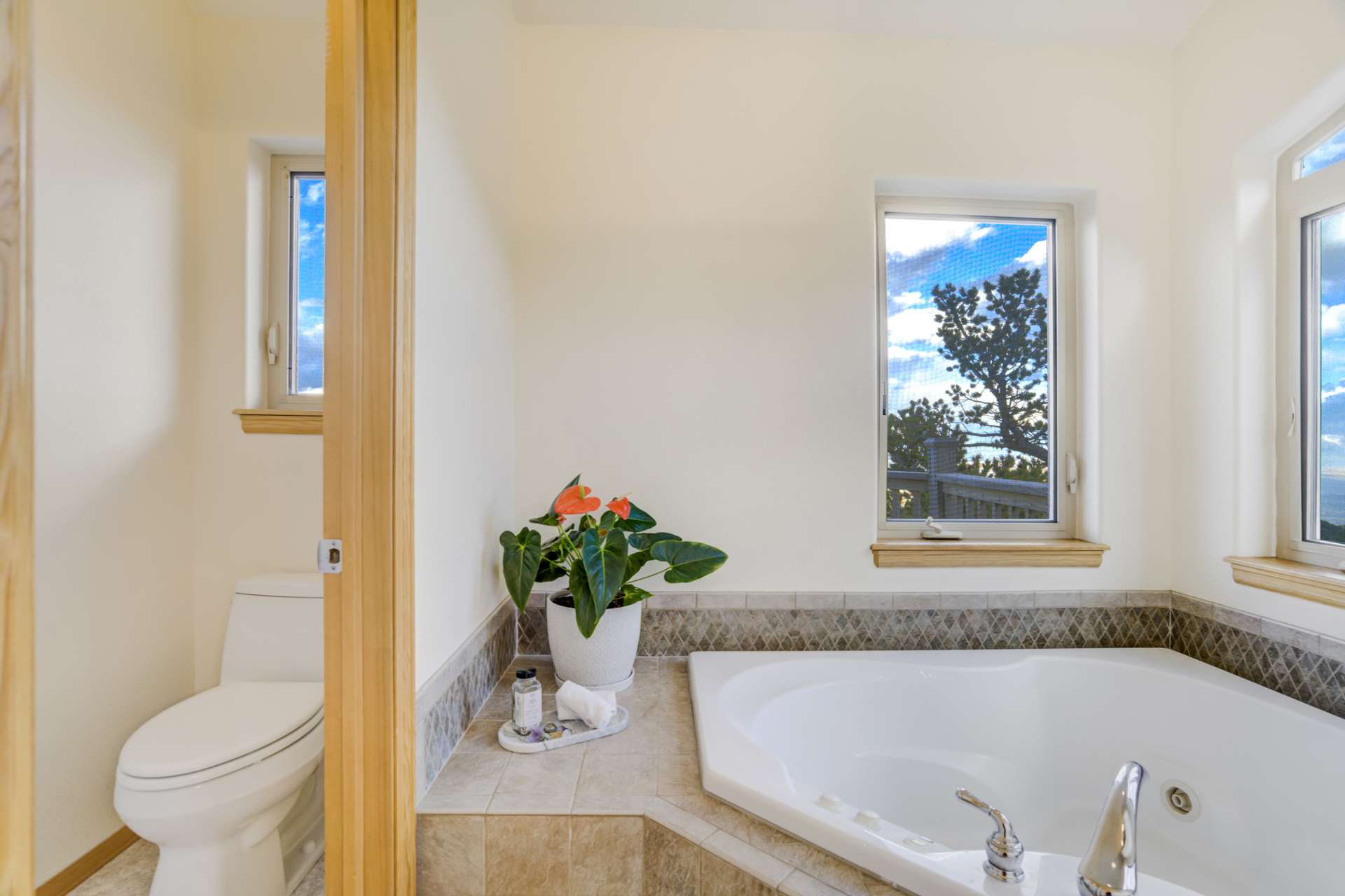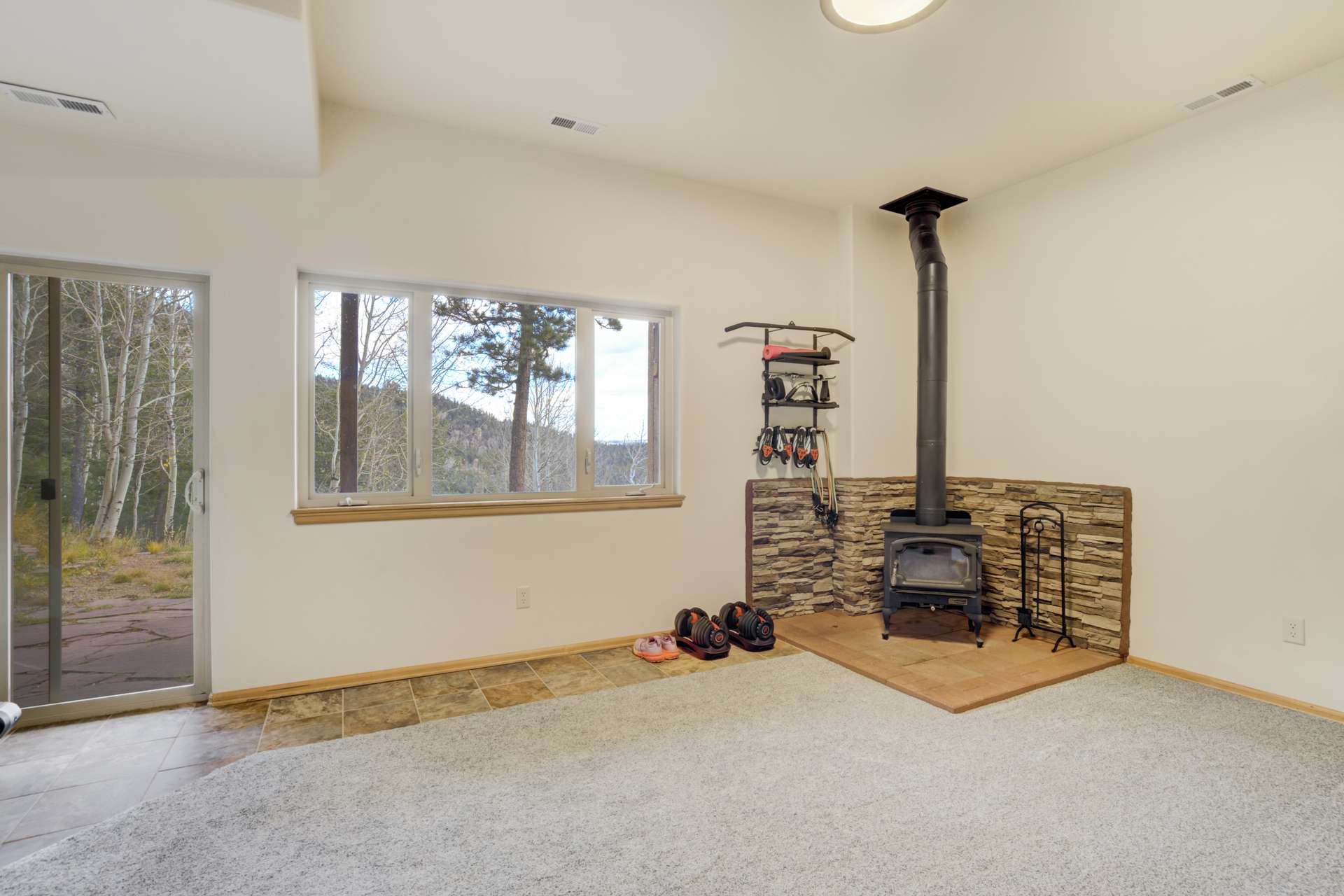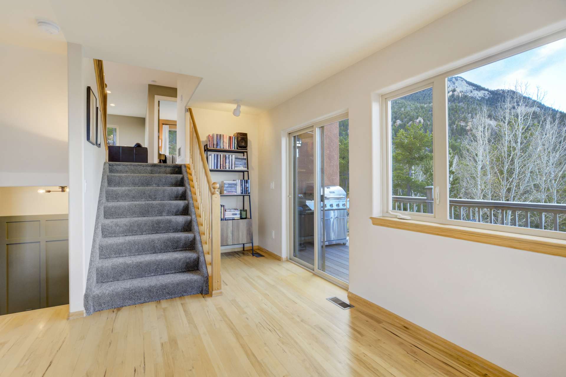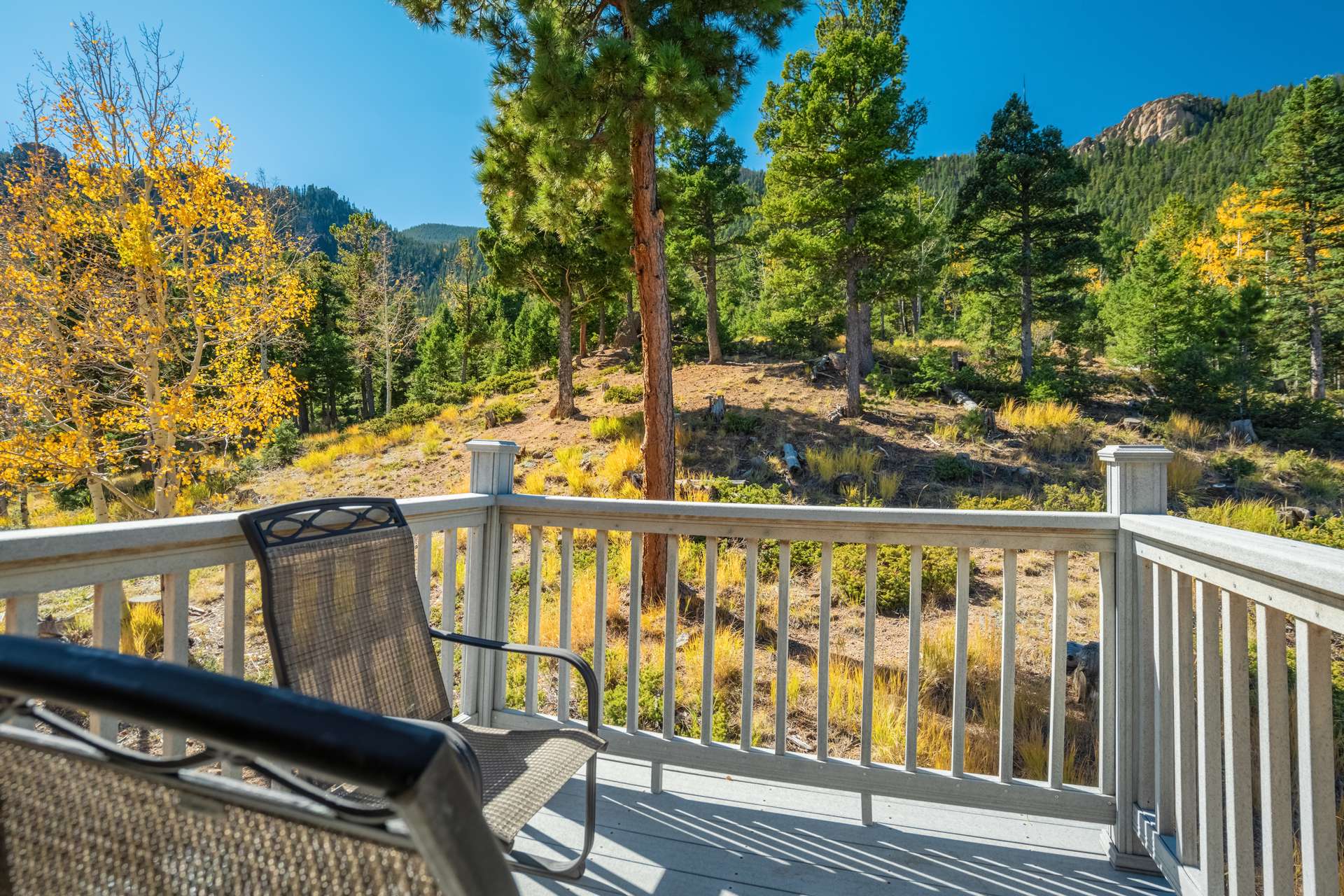 Perched high above the clouds in the gated community of Crystal Park, this mountain retreat blends striking modern design w/ the quiet privacy of a true alpine escape. Photos don’t do this one justice, you must see this one in person! Set on nearly 3/4 of an acre the home captures 360-degree views incl Pikes Peak, Garden of the Gods, Cameron Cone & the entire city below, one of the most dramatic vantage points in Manitou Springs. Inside, the entry has new hexagon tile & paneled wall leads you into light-filled living areas, w/walls of glass that bring the landscape in. Wood-burning FP anchors the great rm w/stacked stone surround, while the adj kitchen & dining space flow effortlessly to multiple decks. The kitchen has SST appliances, butcher block island, & pantry. Nearby the living rm boasts new luxury vinyl plank floor, & LED can lighting, expanding the home’s livability. Additionally on this lvl is a bedrm w/priv deck & access to full bath w/dble vanity, tile flr/shower surround. The upper-lvl master bedrm takes advantage of the views, boasting large picture windows & sliding glass dr to deck. Feat new carpet, vaulted ceilings w/transom windows, new accent wall w/electric FP, sitting area, walk-in closet & adj 5pc ba. The bath has jetted tub, mosaic tile, dble vanity, & thoughtful architectural design w/passive solar. Downstairs the walk-out bsmnt offers a family room w/9’ ceilings, woodburning stove, 3rd bedrm, laundry, & ¾ bath. Bonus new carpet throughout, newer vinyl windows, new central A/C, humidifier, radon system, dual-fuel generator, 1,000gal propane tank & more! Outdoors, the setting is extraordinary, backing directly to Pike NF w/ no buildable lots around for complete seclusion. Priv trails that start right off the property, 10-minute walk to a waterfall & nearby area known for natural gemstones. Enjoy a manned gatehouse, clubhouse, heated seasonal pool, trout pond, tennis & pickleball courts, plus HOA-maintained roads for easy year-round access.