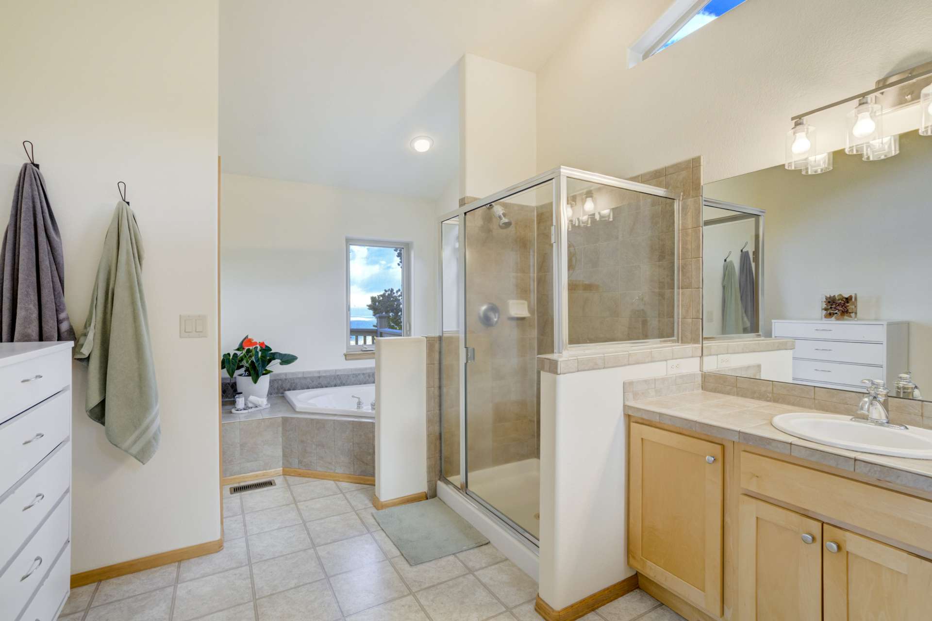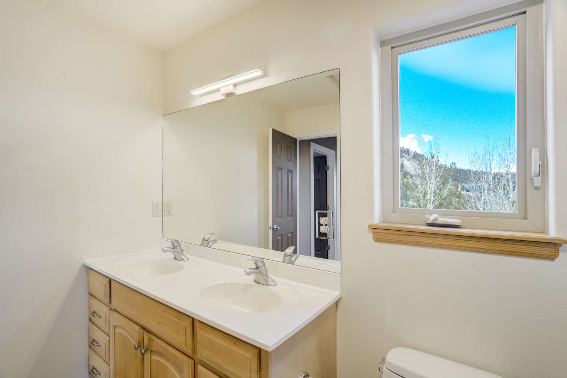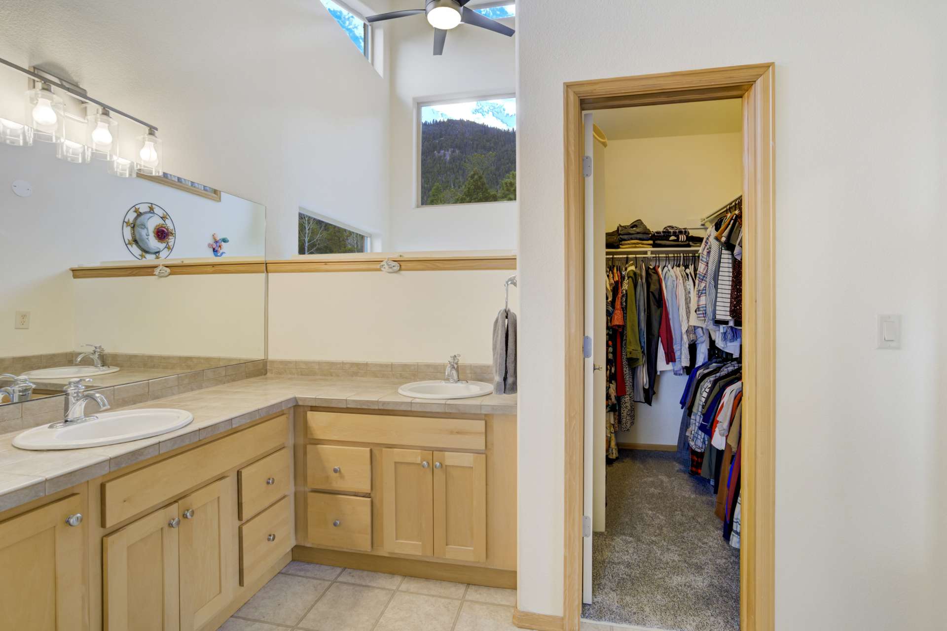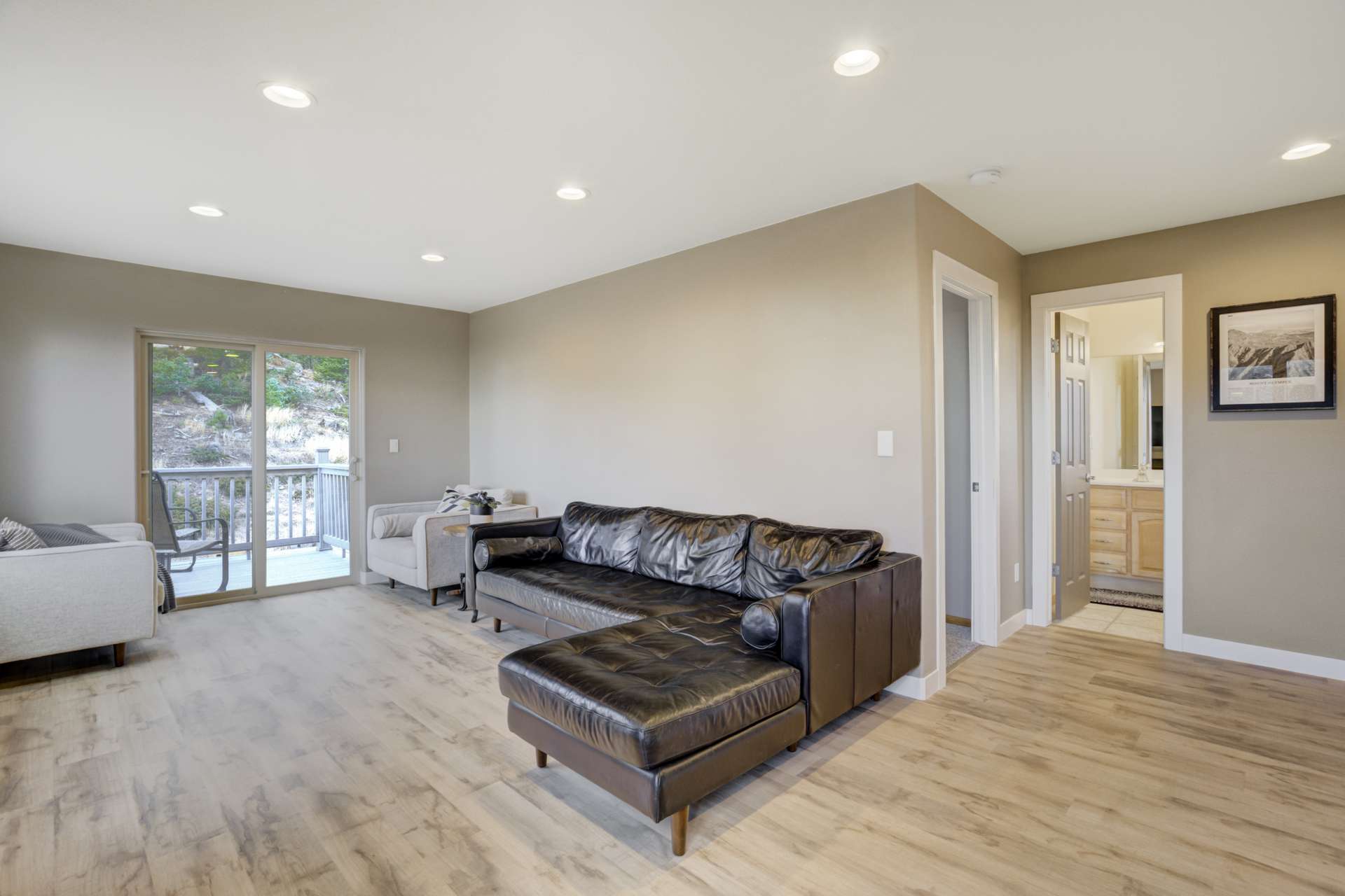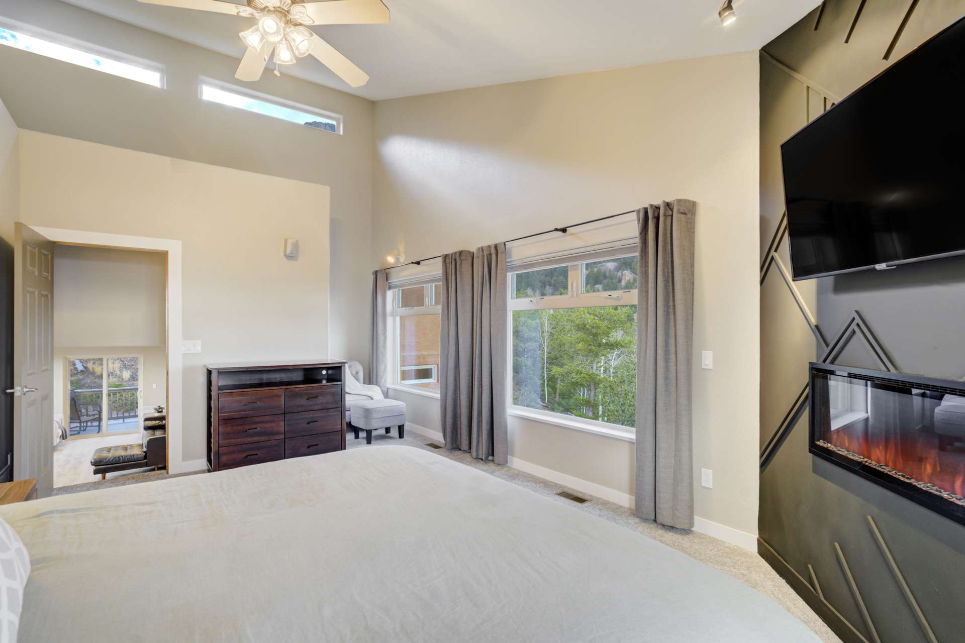 Perched high above the clouds in the gated community of Crystal Park, this mountain retreat blends striking modern design w/ the quiet privacy of a true alpine escape. Photos don’t do this one justice, you must see this one in person! Set on nearly 3/4 of an acre the home captures 360-degree views incl Pikes Peak, Garden of the Gods, Cameron Cone & the entire city below, one of the most dramatic vantage points in Manitou Springs. Inside, the entry has new hexagon tile & paneled wall leads you into light-filled living areas, w/walls of glass that bring the landscape in. Wood-burning FP anchors the great rm w/stacked stone surround, while the adj kitchen & dining space flow effortlessly to multiple decks. The kitchen has SST appliances, butcher block island, & pantry. Nearby the living rm boasts new luxury vinyl plank floor, & LED can lighting, expanding the home’s livability. Additionally on this lvl is a bedrm w/priv deck & access to full bath w/dble vanity, tile flr/shower surround. The upper-lvl master bedrm takes advantage of the views, boasting large picture windows & sliding glass dr to deck. Feat new carpet, vaulted ceilings w/transom windows, new accent wall w/electric FP, sitting area, walk-in closet & adj 5pc ba. The bath has jetted tub, mosaic tile, dble vanity, & thoughtful architectural design w/passive solar. Downstairs the walk-out bsmnt offers a family room w/9’ ceilings, woodburning stove, 3rd bedrm, laundry, & ¾ bath. Bonus new carpet throughout, newer vinyl windows, new central A/C, humidifier, radon system, dual-fuel generator, 1,000gal propane tank & more! Outdoors, the setting is extraordinary, backing directly to Pike NF w/ no buildable lots around for complete seclusion. Priv trails that start right off the property, 10-minute walk to a waterfall & nearby area known for natural gemstones. Enjoy a manned gatehouse, clubhouse, heated seasonal pool, trout pond, tennis & pickleball courts, plus HOA-maintained roads for easy year-round access.