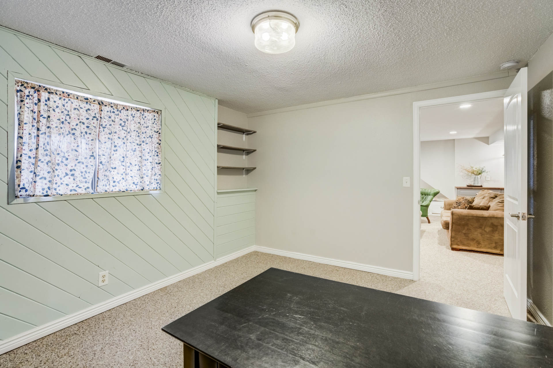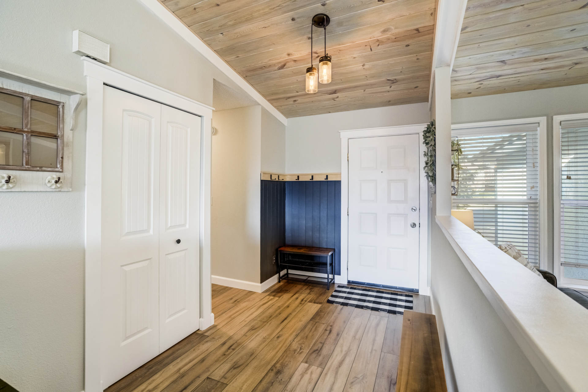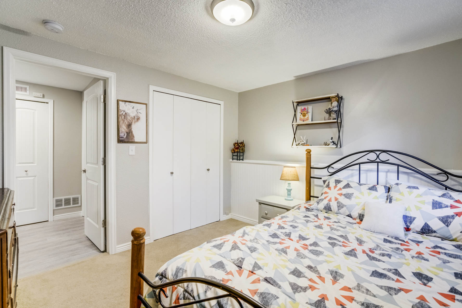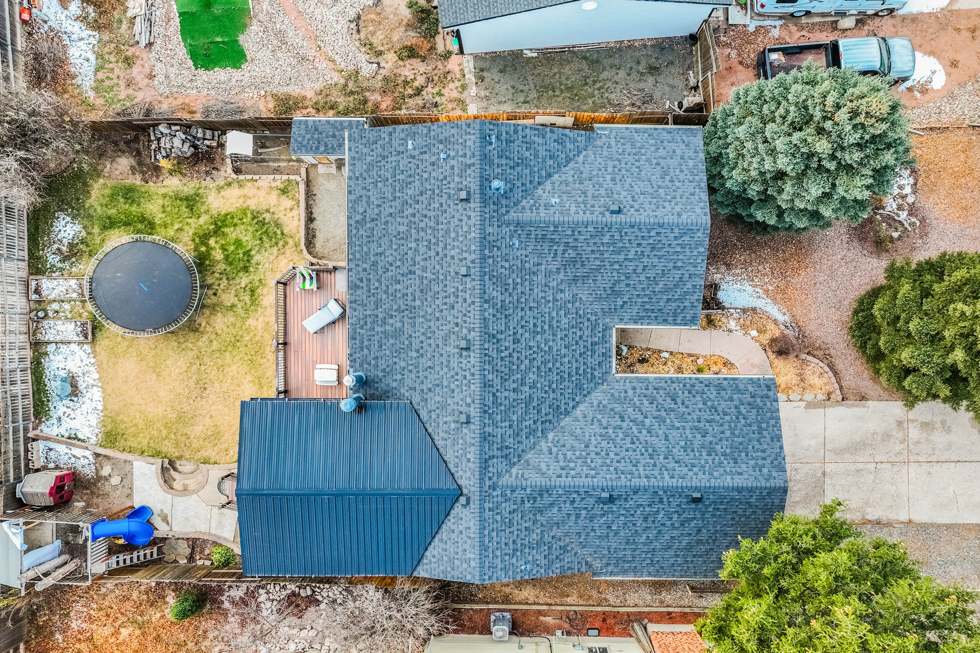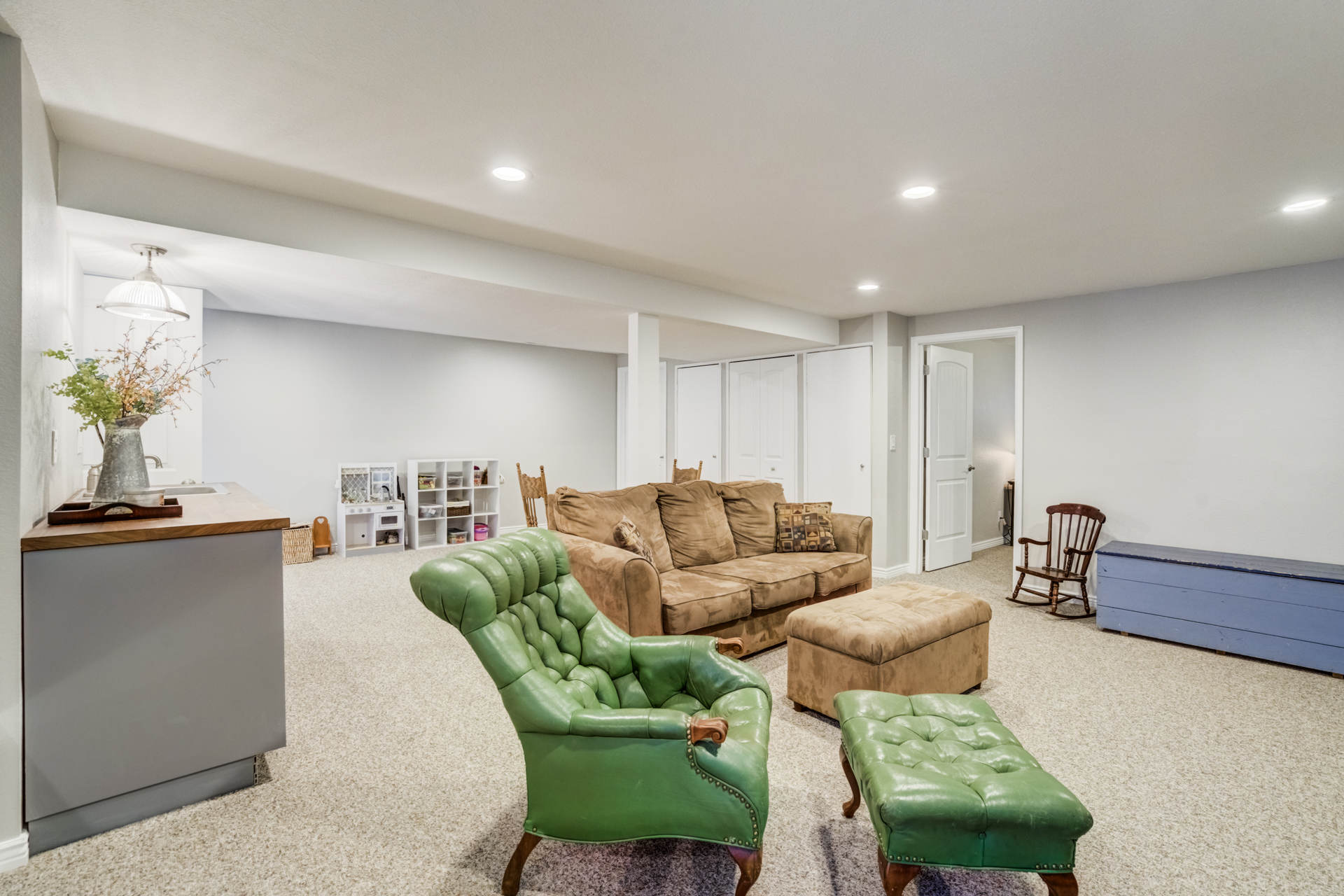 Welcome to this beautifully updated ranch, perfectly situated in a central location! From the freshly painted exterior to the brand-new (Class 4) roof and interior upgrades, this move-in ready home is sure to impress. Step inside to discover luxury CoreTec vinyl flooring throughout the main level, vaulted beetle-kill pine ceilings, and a wood-burning fireplace. The chef’s kitchen boasts white cabinetry, granite countertops, a breakfast bar, double oven, gas range, and counter-depth refrigerator. Adjacent, the dining room offers walkout access to the covered composite deck, ideal for entertaining or relaxing while enjoying breathtaking Pikes Peak views. The master suite features crown molding, a walk-in closet w/built-in shelving, and a fully remodeled ensuite with walk-in shower, heated tile flooring, and a custom pocket door. Two additional main-level bedrooms share a full bath with a new vanity and lighting. New doors, trim, interior paint, light fixtures and upgraded Milgard vinyl windows. A laundry room located on the main level includes a custom folding shelf and convenient storage. The finished basement offers a spacious family room with gas fireplace, cozy reading nook, and built-in wet bar, plus a recreation room with walkout access to the fenced backyard and playhouse. Two more bedrooms, an office, a 3/4 bathroom, and a storage room complete this level. Additional highlights include a 2-car garage with a tool bench, a chicken coop w/full run, and an auto sprinkler system. Don’t miss this rare opportunity to own a fully renovated, move-in ready home with incredible views and thoughtful upgrades!