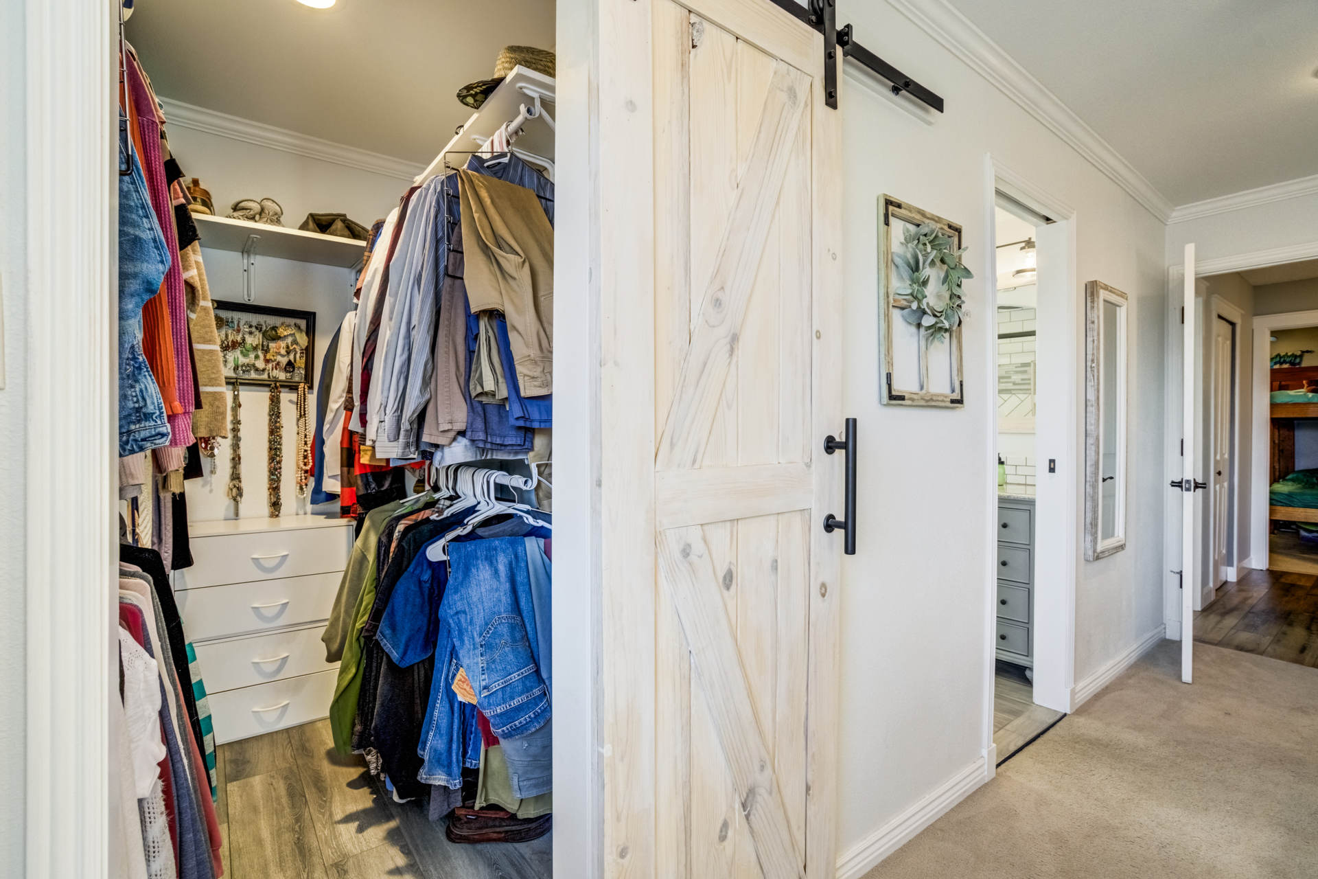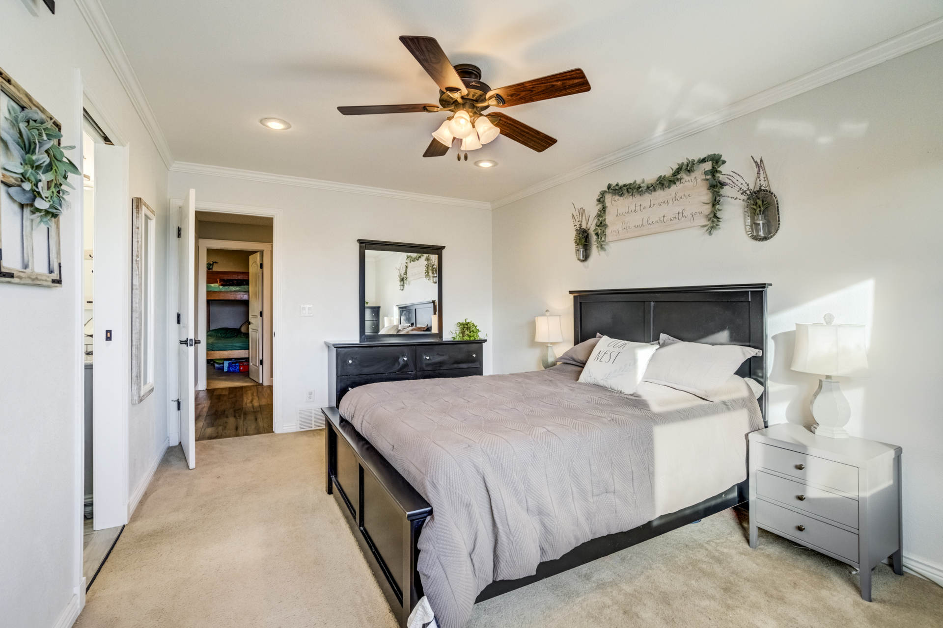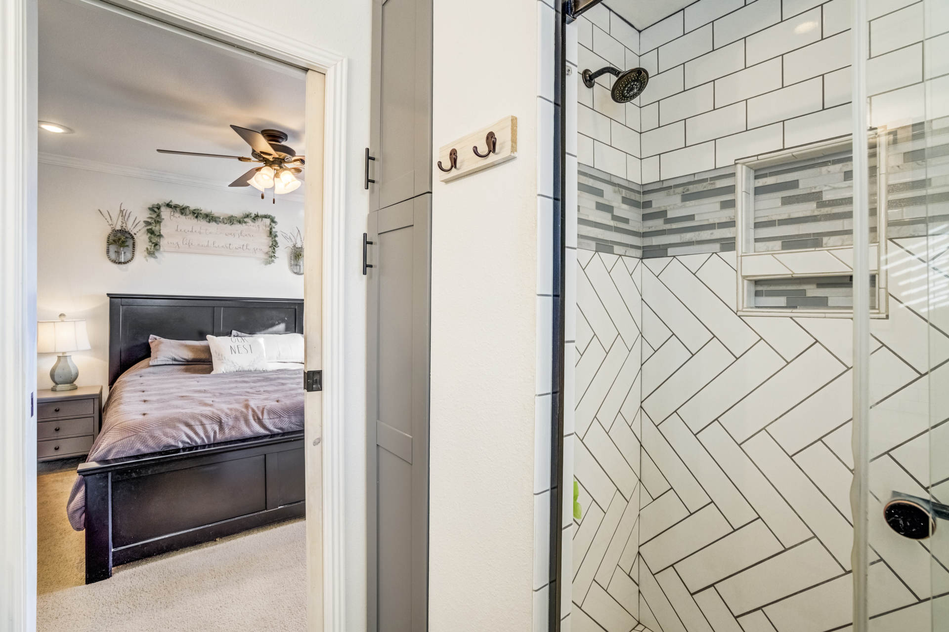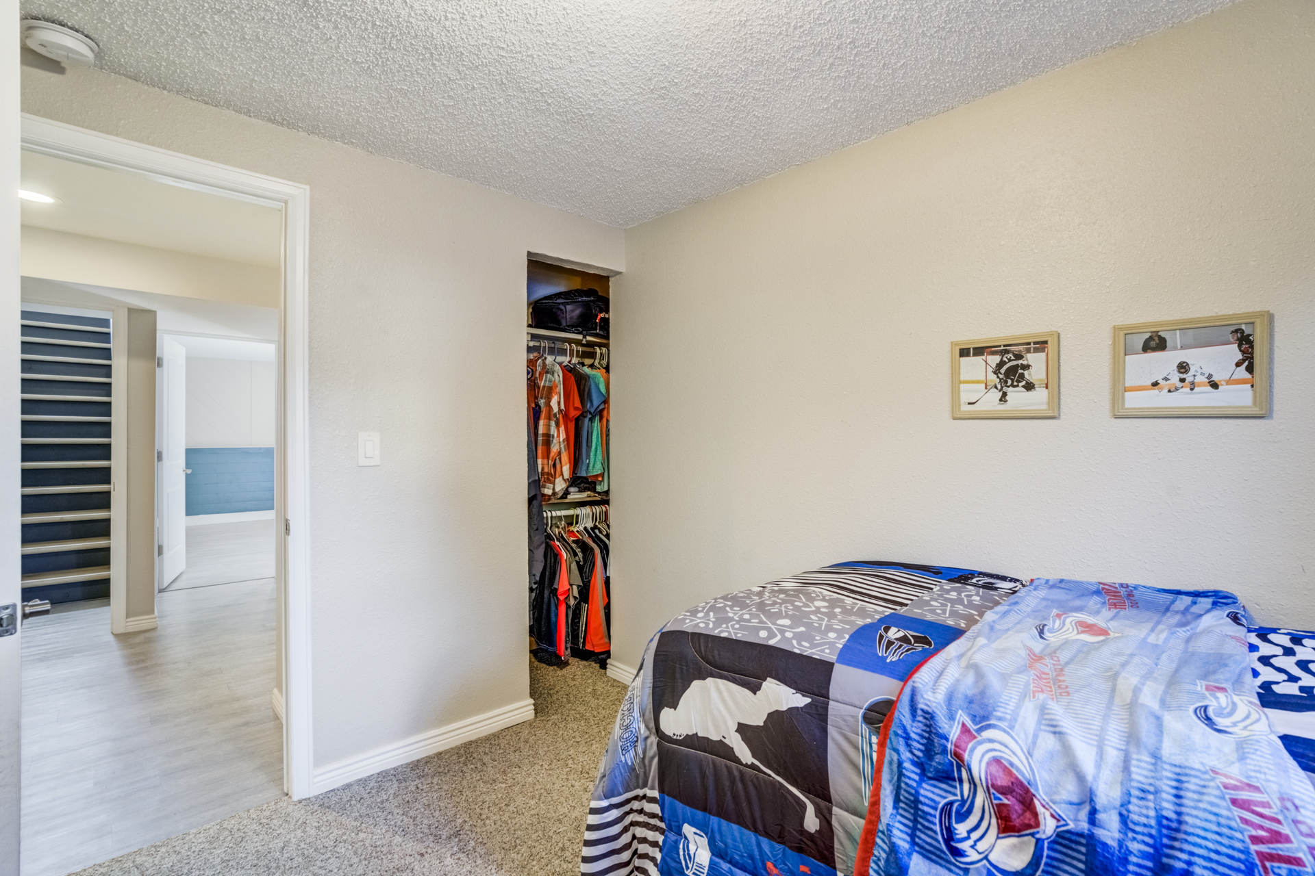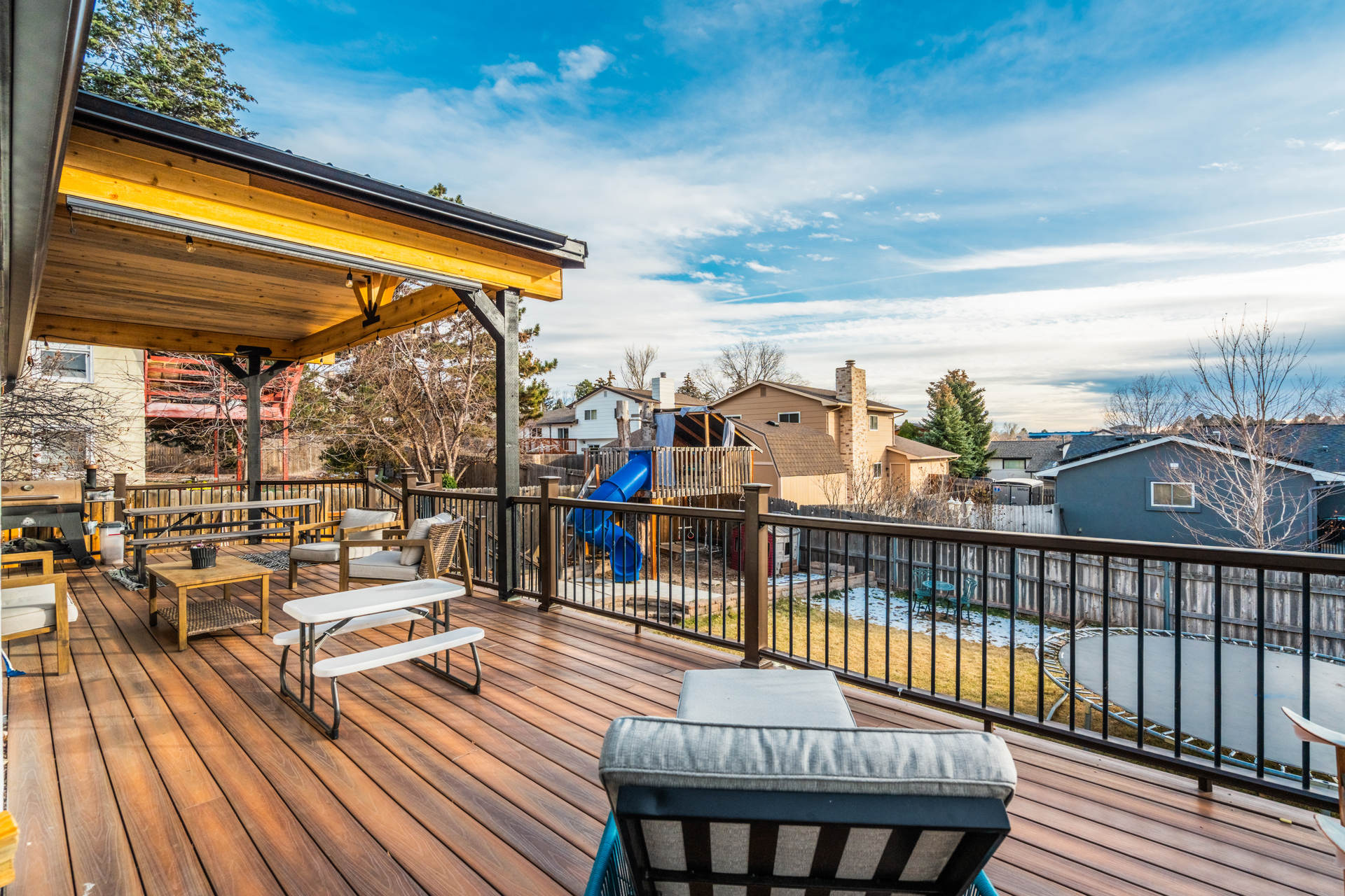 Welcome to this beautifully updated ranch, perfectly situated in a central location! From the freshly painted exterior to the brand-new (Class 4) roof and interior upgrades, this move-in ready home is sure to impress. Step inside to discover luxury CoreTec vinyl flooring throughout the main level, vaulted beetle-kill pine ceilings, and a wood-burning fireplace. The chef’s kitchen boasts white cabinetry, granite countertops, a breakfast bar, double oven, gas range, and counter-depth refrigerator. Adjacent, the dining room offers walkout access to the covered composite deck, ideal for entertaining or relaxing while enjoying breathtaking Pikes Peak views. The master suite features crown molding, a walk-in closet w/built-in shelving, and a fully remodeled ensuite with walk-in shower, heated tile flooring, and a custom pocket door. Two additional main-level bedrooms share a full bath with a new vanity and lighting. New doors, trim, interior paint, light fixtures and upgraded Milgard vinyl windows. A laundry room located on the main level includes a custom folding shelf and convenient storage. The finished basement offers a spacious family room with gas fireplace, cozy reading nook, and built-in wet bar, plus a recreation room with walkout access to the fenced backyard and playhouse. Two more bedrooms, an office, a 3/4 bathroom, and a storage room complete this level. Additional highlights include a 2-car garage with a tool bench, a chicken coop w/full run, and an auto sprinkler system. Don’t miss this rare opportunity to own a fully renovated, move-in ready home with incredible views and thoughtful upgrades!