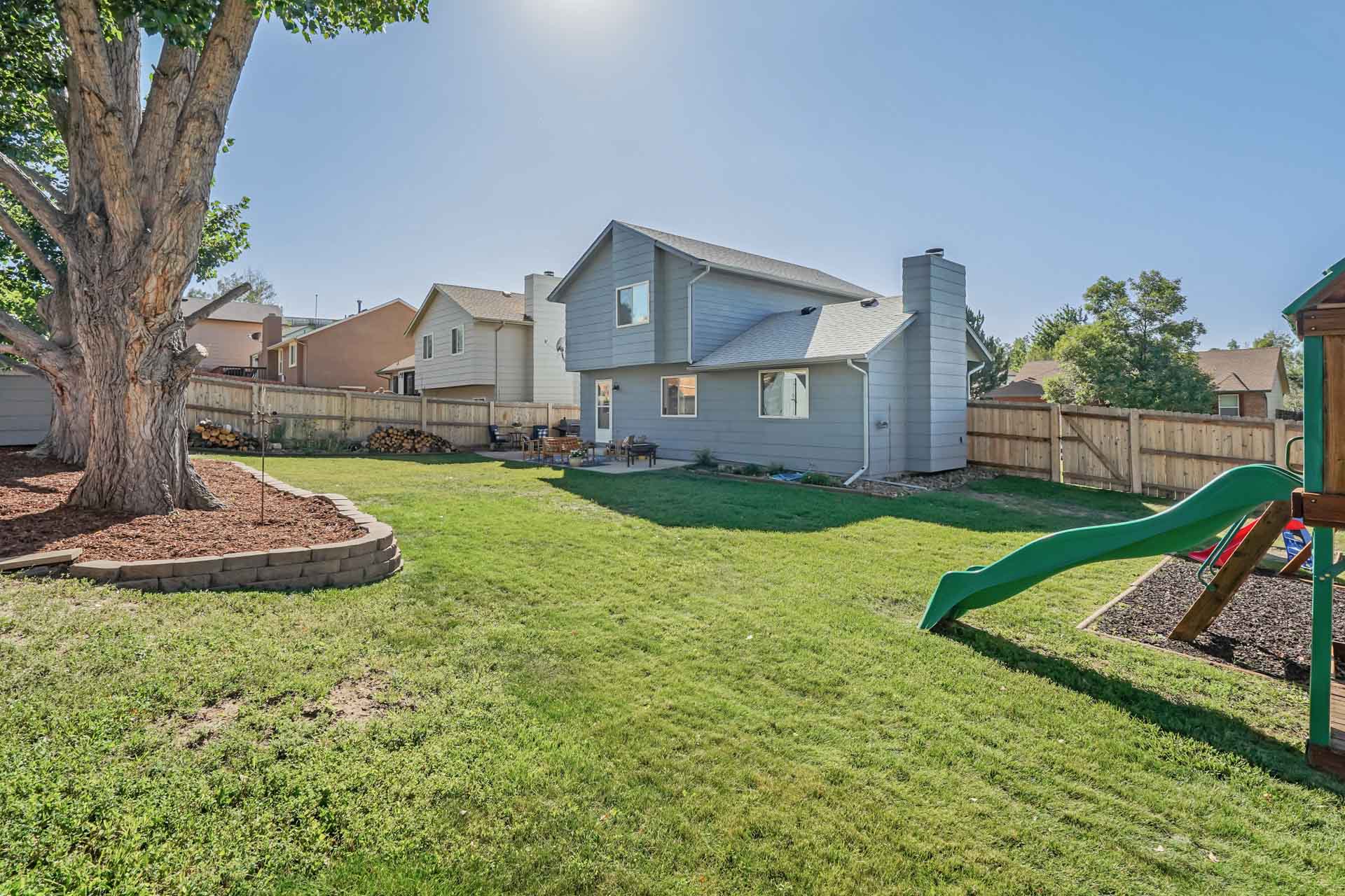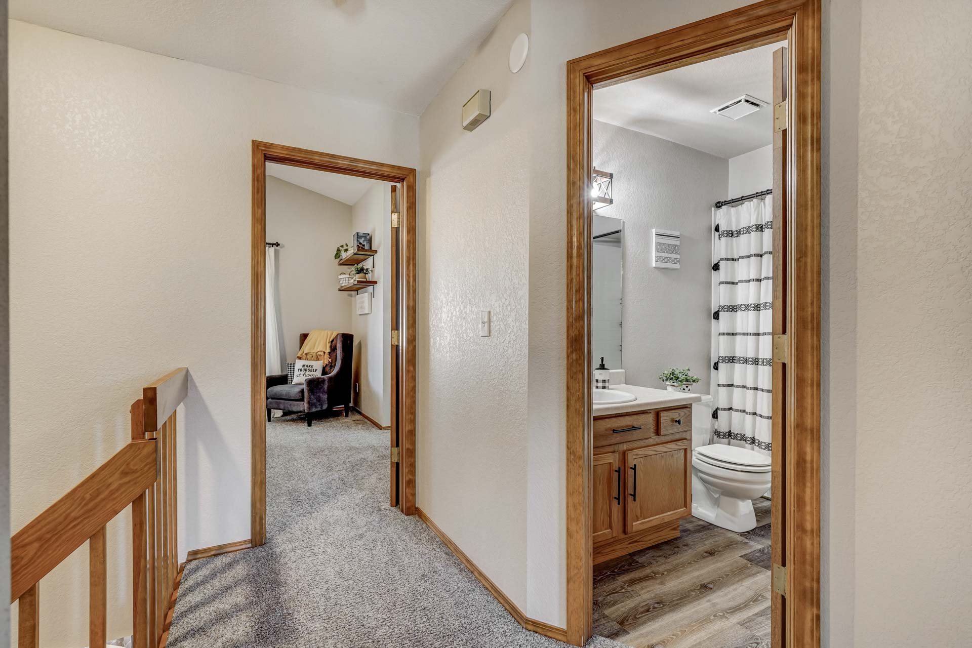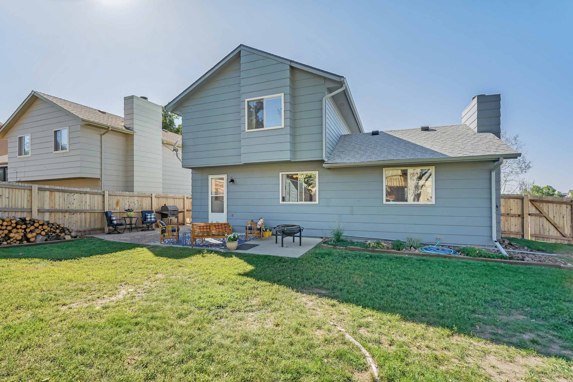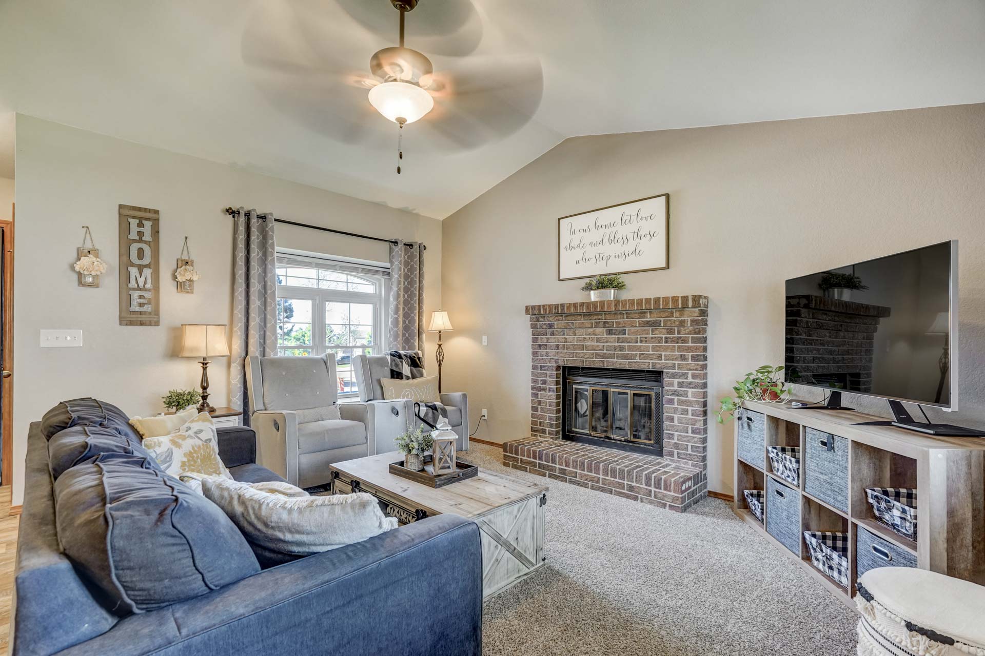 Updated 2-story home with modern finishes. Offering a large yard on a cul-de-sac, surrounded by comfort & convenience. Located in the desirable Northwind neighborhood w/easy access to schools, shopping, entertainment, Cottonwood Creek Park/trails, & main roads. As you enter updated luxury vinyl plank wood floors greet you and flow throughout the main level. The great room draws you in boasting vaulted ceilings, wood burning fireplace w/ brick surround & large windows letting the natural light pour in illuminating the open space. The dining space has newer chandelier and can accommodate a large table for those formal occasions. The nearby updated kitchen opens to the great room creating the perfect layout to entertain friends & family. Featuring solid wood cabinets w/ oil bronzed hardware, expansive peninsula w/breakfast bar, modern pendant lighting, & stainless-steel appliances. From here step out to the incredible fenced backyard, w/ concrete patio, mature trees, storage shed, garden beds & more. Completing the main level is the laundry room w/ updated ½ bath boasting decorative wall and custom shelf. Head upstairs to the primary bedroom boasting sitting area, vaulted ceilings, walk-in closet & updated private 3/4 bath w/floor to ceiling tile, LVP flooring, custom mirror, new lighting & hardware. 2 additional upper bedrooms both have ceiling fans plush carpet & easy access to hall full bath w/new lighting, newer lvp floor & tile tub/shower surround. Downstairs the finished basement presents an open family room or 4th bedroom w/ newer carpet, new LED lighting &, walk-in closet/storage room. Bonus: modern paint colors, energy efficient vinyl windows, & more. See it today!