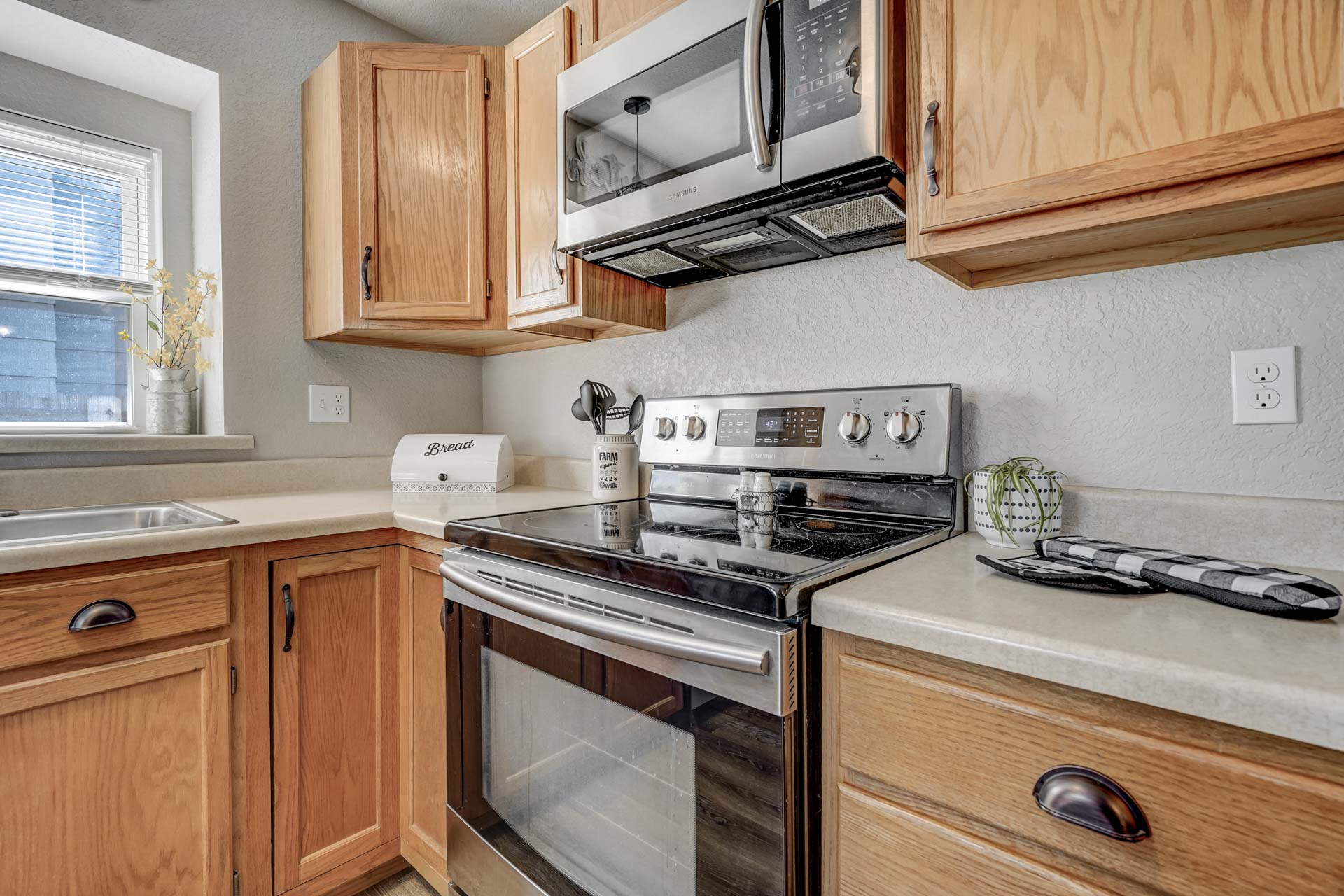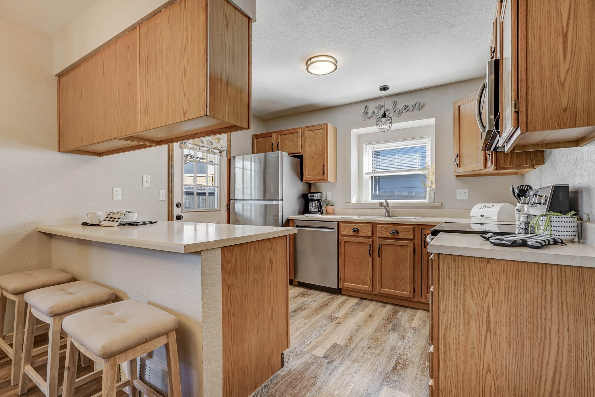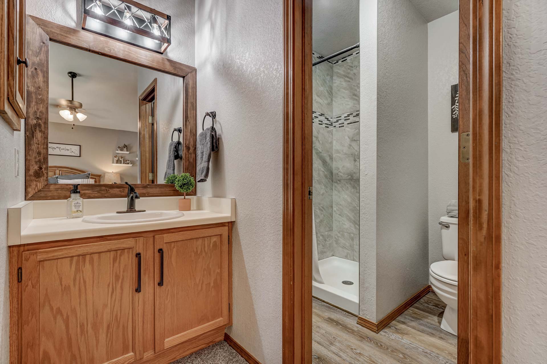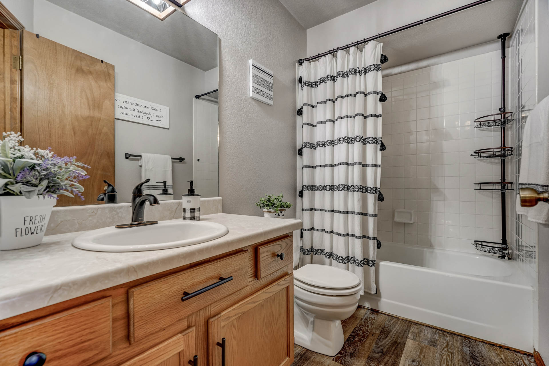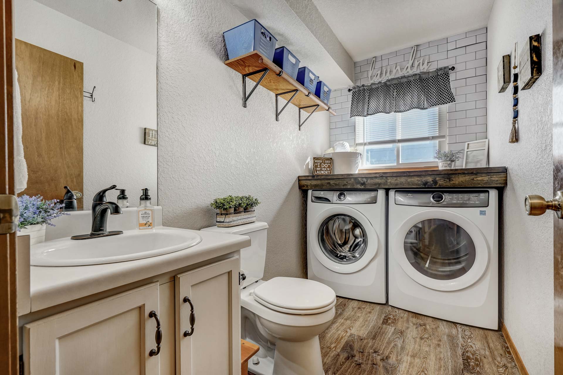 Updated 2-story home with modern finishes. Offering a large yard on a cul-de-sac, surrounded by comfort & convenience. Located in the desirable Northwind neighborhood w/easy access to schools, shopping, entertainment, Cottonwood Creek Park/trails, & main roads. As you enter updated luxury vinyl plank wood floors greet you and flow throughout the main level. The great room draws you in boasting vaulted ceilings, wood burning fireplace w/ brick surround & large windows letting the natural light pour in illuminating the open space. The dining space has newer chandelier and can accommodate a large table for those formal occasions. The nearby updated kitchen opens to the great room creating the perfect layout to entertain friends & family. Featuring solid wood cabinets w/ oil bronzed hardware, expansive peninsula w/breakfast bar, modern pendant lighting, & stainless-steel appliances. From here step out to the incredible fenced backyard, w/ concrete patio, mature trees, storage shed, garden beds & more. Completing the main level is the laundry room w/ updated ½ bath boasting decorative wall and custom shelf. Head upstairs to the primary bedroom boasting sitting area, vaulted ceilings, walk-in closet & updated private 3/4 bath w/floor to ceiling tile, LVP flooring, custom mirror, new lighting & hardware. 2 additional upper bedrooms both have ceiling fans plush carpet & easy access to hall full bath w/new lighting, newer lvp floor & tile tub/shower surround. Downstairs the finished basement presents an open family room or 4th bedroom w/ newer carpet, new LED lighting &, walk-in closet/storage room. Bonus: modern paint colors, energy efficient vinyl windows, & more. See it today!