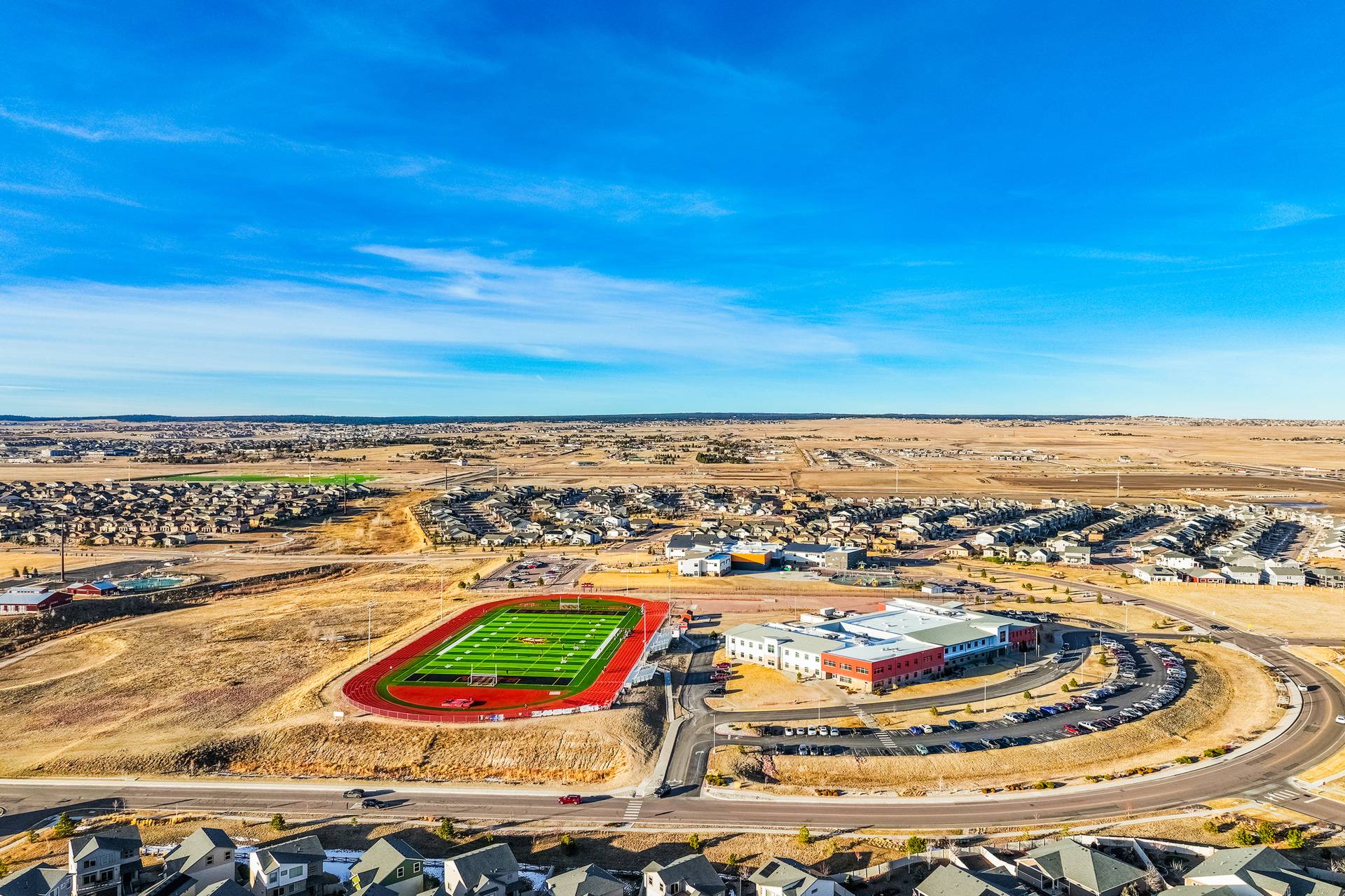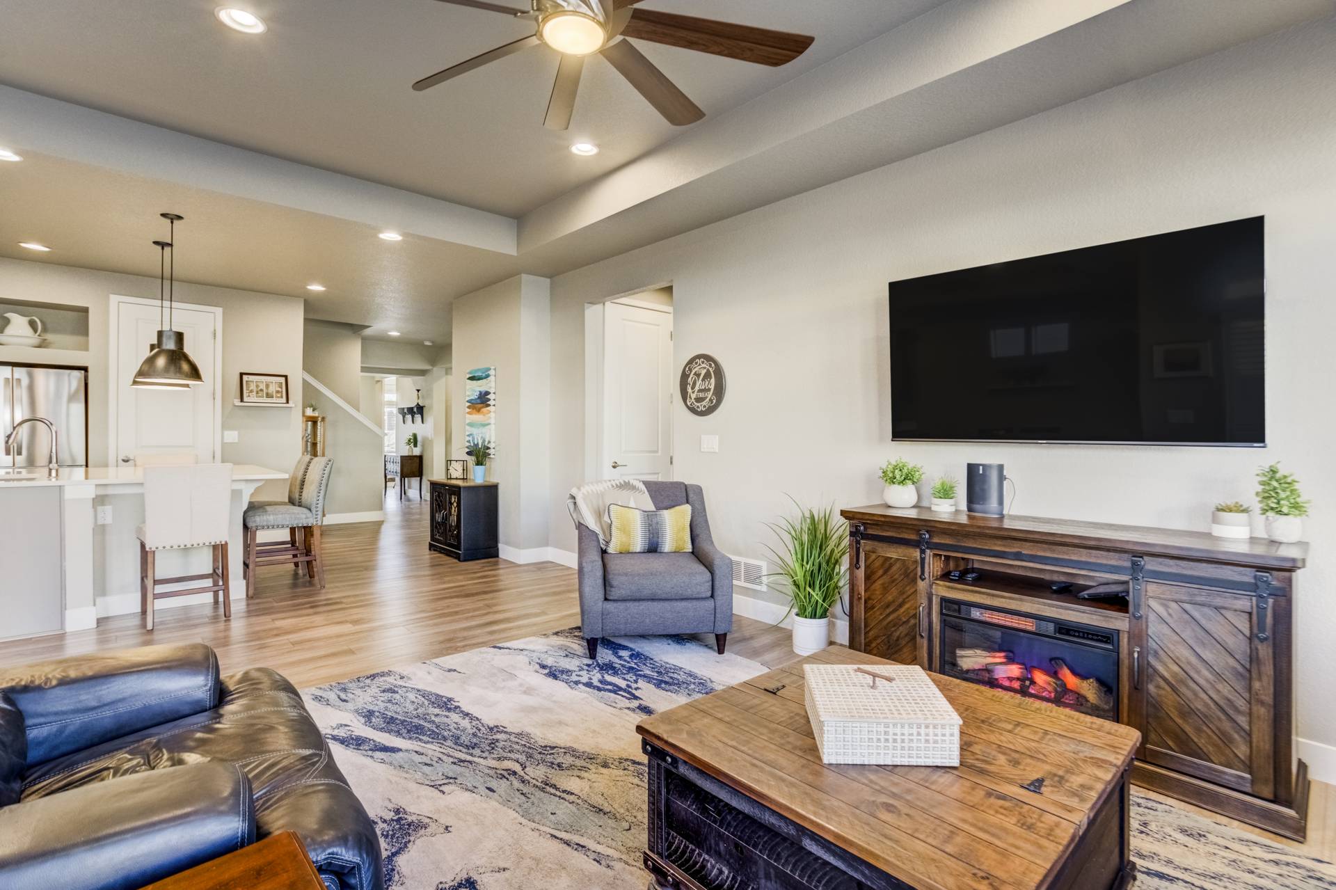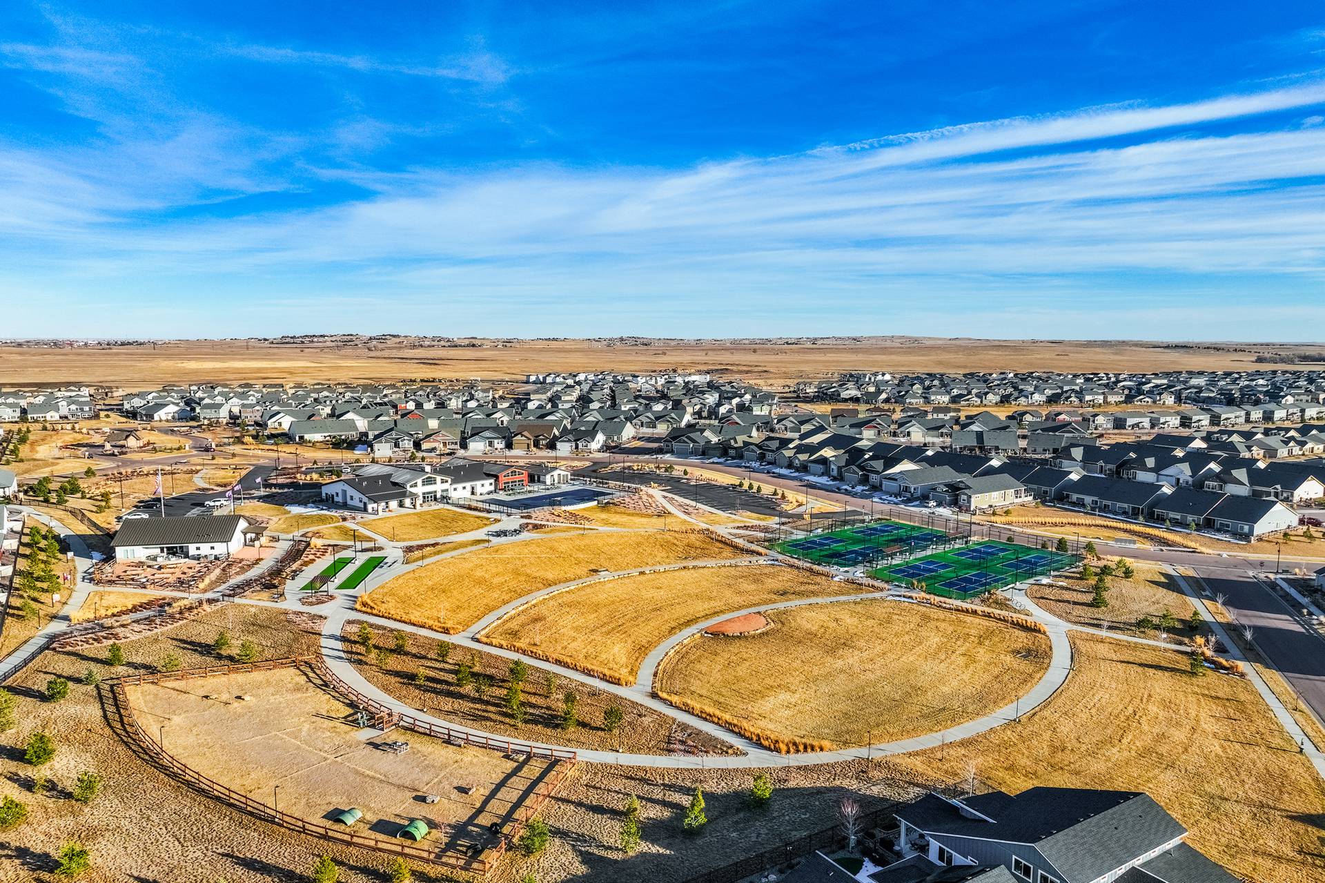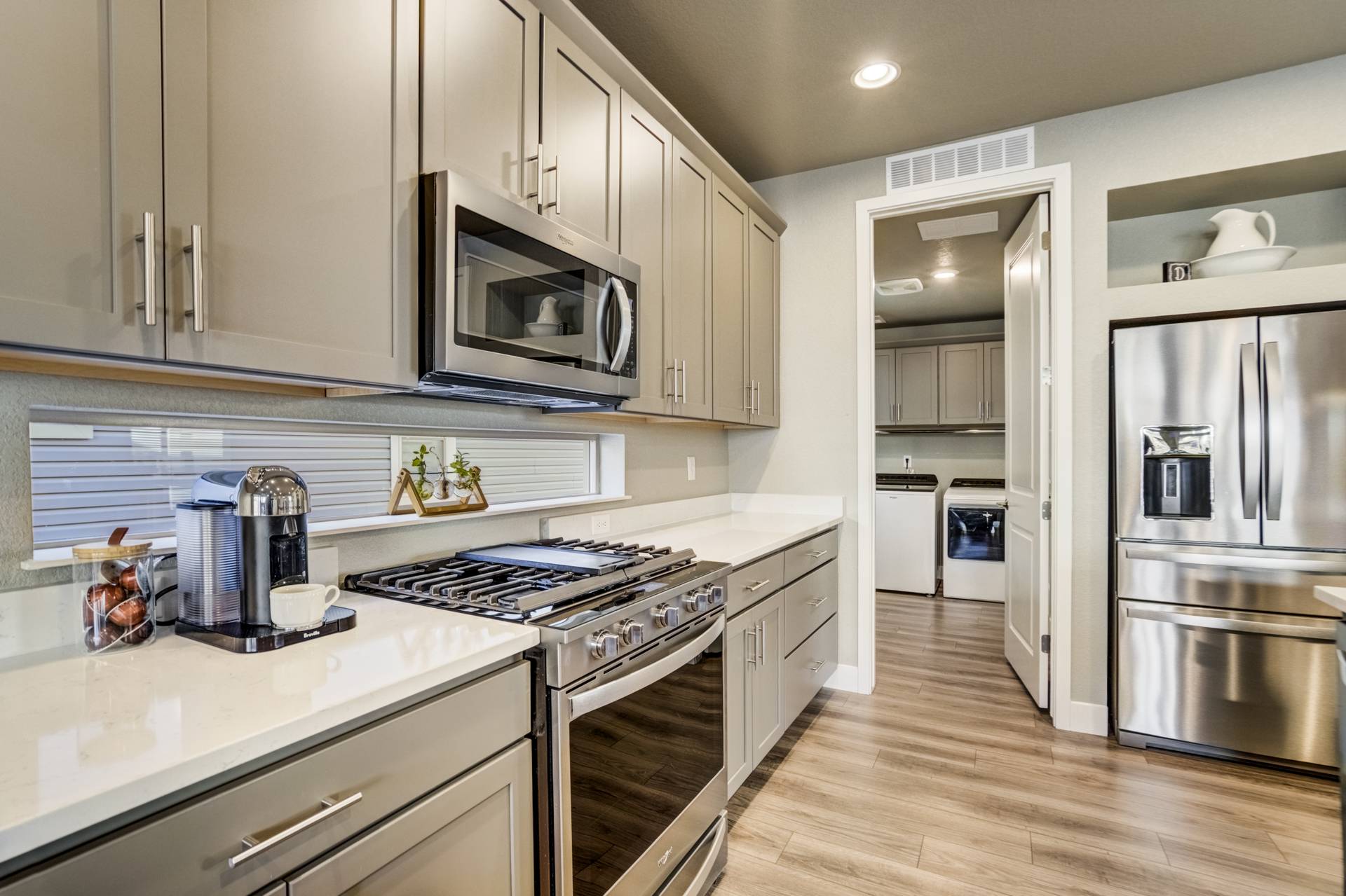 Beautifully upgraded two-story home located in The Retreat, a gated 55+ community within Banning Lewis Ranch, where thoughtful design meets effortless, low-maintenance living. Impeccably maintained, this 3-bedroom, 3-bathroom residence offers the ease of main-level living with modern finishes throughout. The inviting stucco exterior sets the tone as you arrive, while inside you’ll find luxury vinyl plank flooring throughout an open-concept layout that seamlessly connects the living room, dining area, and kitchen—perfect for both everyday living and entertaining. The kitchen is a true centerpiece, featuring a large island, quartz countertops, a walk-in pantry, stainless steel appliances, and gas range. The spacious main-level primary suite boasts elegant coffered ceilings and an en-suite bathroom with a curbless walk-in shower, double vanity, and walk-in closet. A secondary bedroom with its own walk-in closet, a dedicated office or study, and laundry room with extra cabinetry complete the main floor, offering exceptional functionality and storage. Upstairs, you’ll find an additional bedroom with a walk-in closet, a full bathroom, and an oversized loft—providing flex space for a media room, or play area. The fully finished garage features epoxy floors, a bike mount, workbench, additional cabinets/outlets, and even a conveniently located hose bib. Step outside to enjoy the extended patio and covered porch with a gas hardline—perfect for grilling and outdoor entertaining. The backyard is fully fenced, landscaped, and finished with artificial turf, while the HOA handles front lawn maintenance for truly low-maintenance living. Banning Lewis Ranch provides exceptional community amenities, including a community center with events, fitness center, pool, and an extensive network of hiking & biking trails. With main-level living, modern upgrades, and resort-style amenities, this home offers comfort, convenience, and lifestyle all in one.