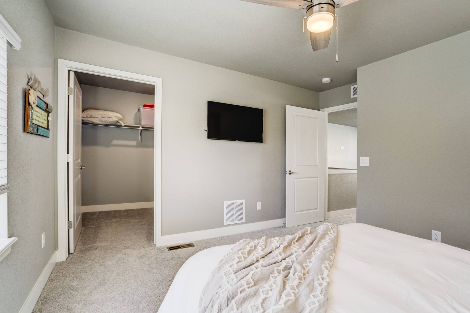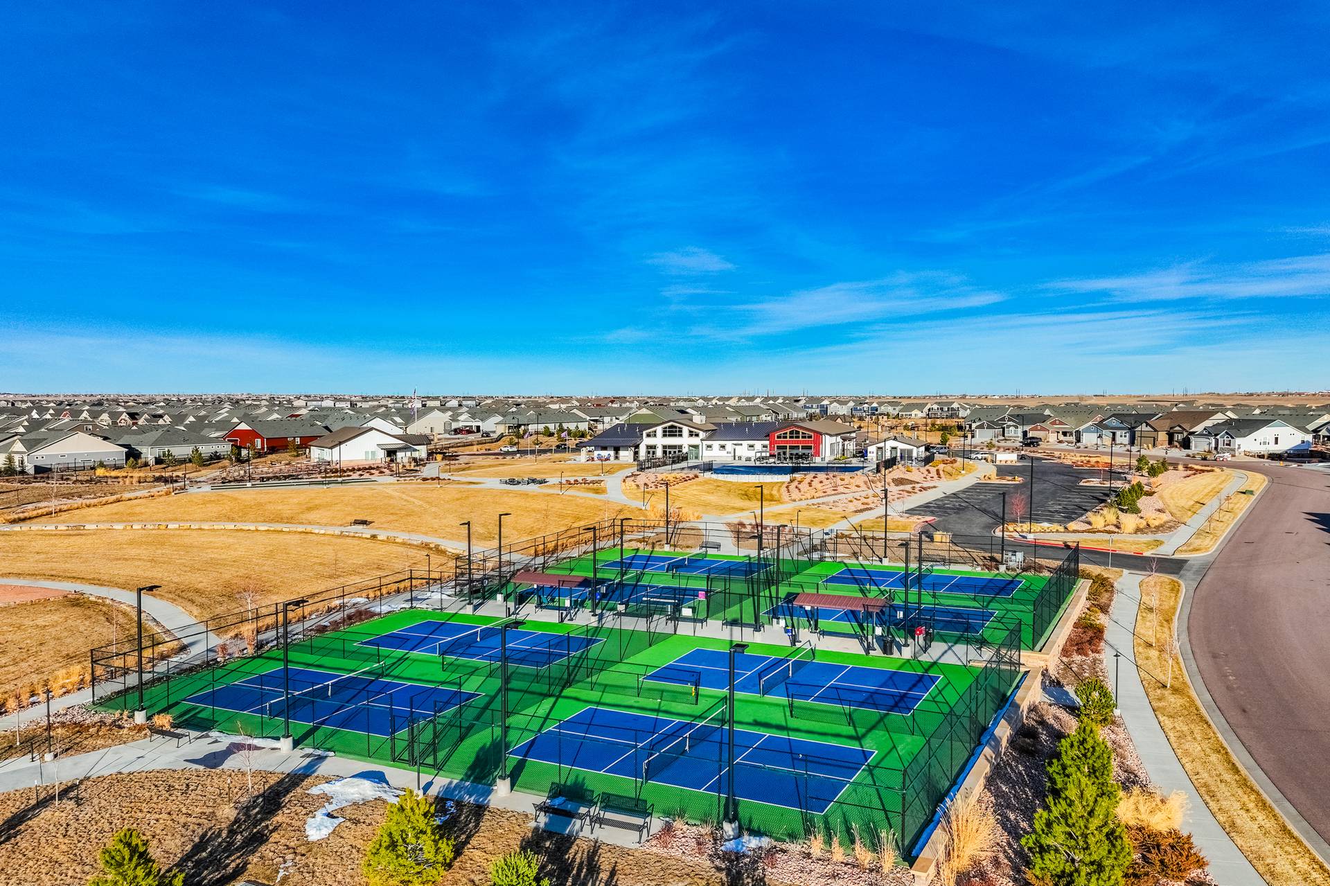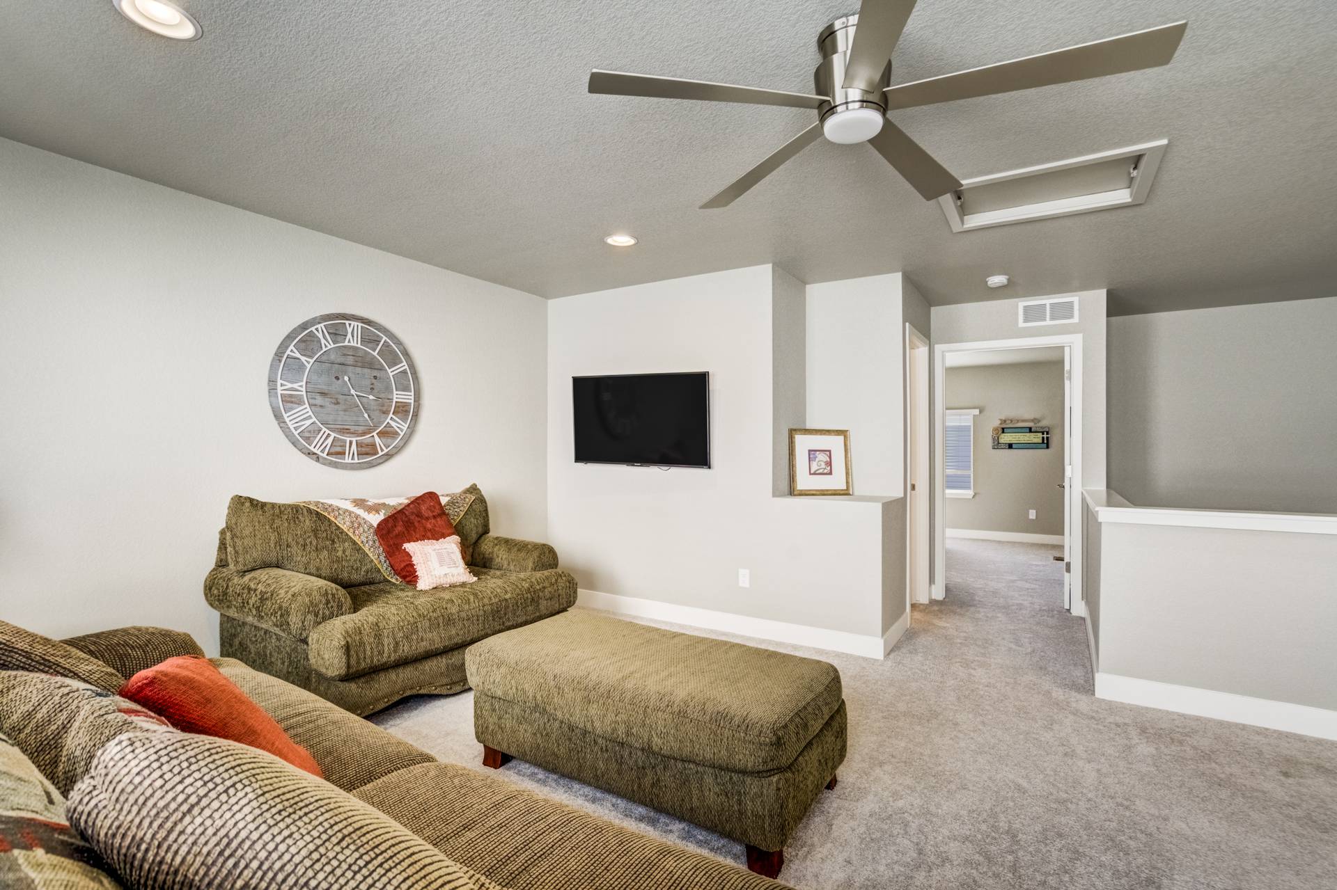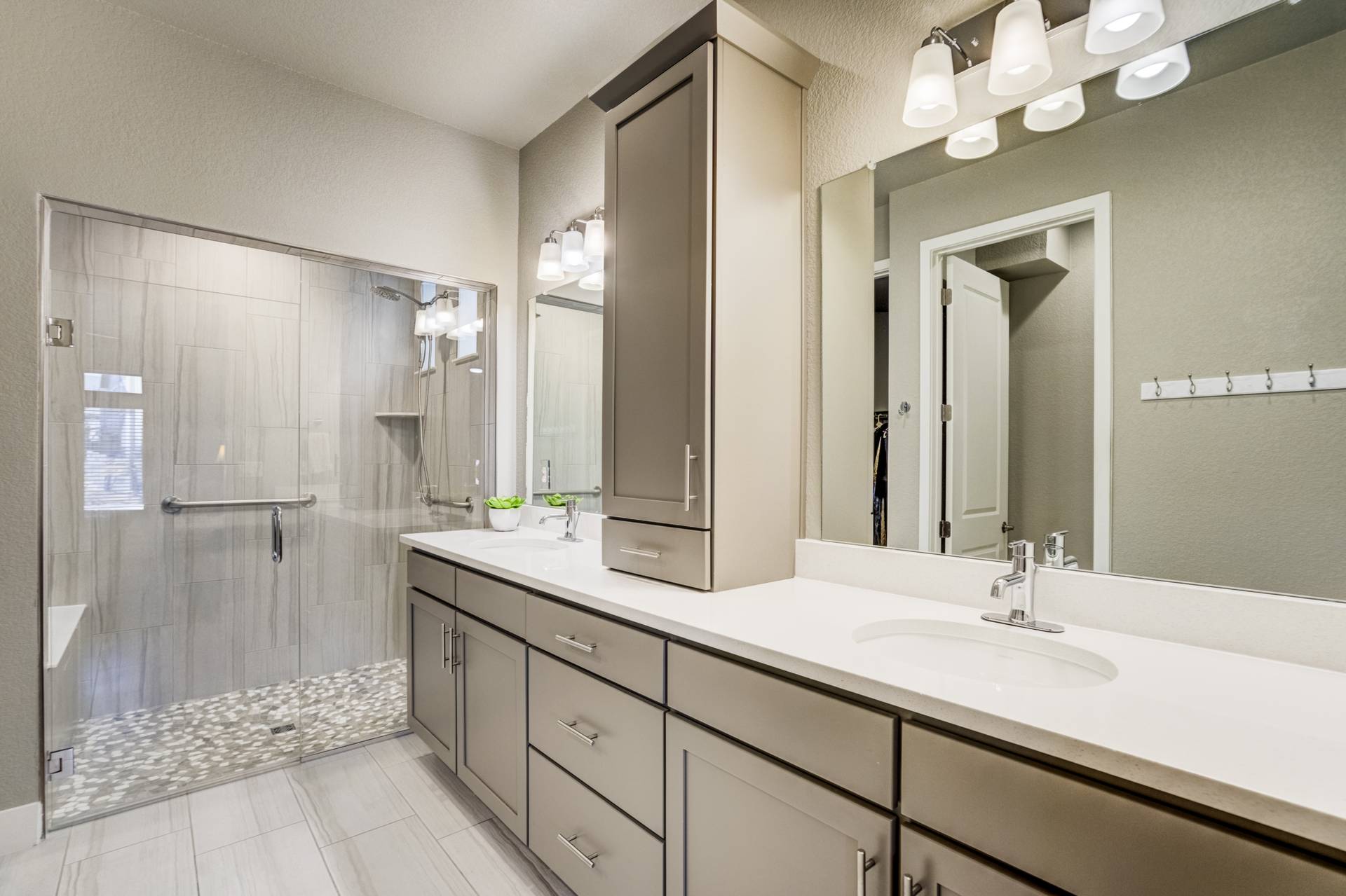Beautifully upgraded two-story home located in The Retreat, a gated 55+ community within Banning Lewis Ranch, where thoughtful design meets effortless, low-maintenance living. Impeccably maintained, this 3-bedroom, 3-bathroom residence offers the ease of main-level living with modern finishes throughout. The inviting stucco exterior sets the tone as you arrive, while inside you’ll find luxury vinyl plank flooring throughout an open-concept layout that seamlessly connects the living room, dining area, and kitchen—perfect for both everyday living and entertaining. The kitchen is a true centerpiece, featuring a large island, quartz countertops, a walk-in pantry, stainless steel appliances, and gas range. The spacious main-level primary suite boasts elegant coffered ceilings and an en-suite bathroom with a curbless walk-in shower, double vanity, and walk-in closet. A secondary bedroom with its own walk-in closet, a dedicated office or study, and laundry room with extra cabinetry complete the main floor, offering exceptional functionality and storage. Upstairs, you’ll find an additional bedroom with a walk-in closet, a full bathroom, and an oversized loft—providing flex space for a media room, or play area. The fully finished garage features epoxy floors, a bike mount, workbench, additional cabinets/outlets, and even a conveniently located hose bib. Step outside to enjoy the extended patio and covered porch with a gas hardline—perfect for grilling and outdoor entertaining. The backyard is fully fenced, landscaped, and finished with artificial turf, while the HOA handles front lawn maintenance for truly low-maintenance living. Banning Lewis Ranch provides exceptional community amenities, including a community center with events, fitness center, pool, and an extensive network of hiking & biking trails. With main-level living, modern upgrades, and resort-style amenities, this home offers comfort, convenience, and lifestyle all in one.