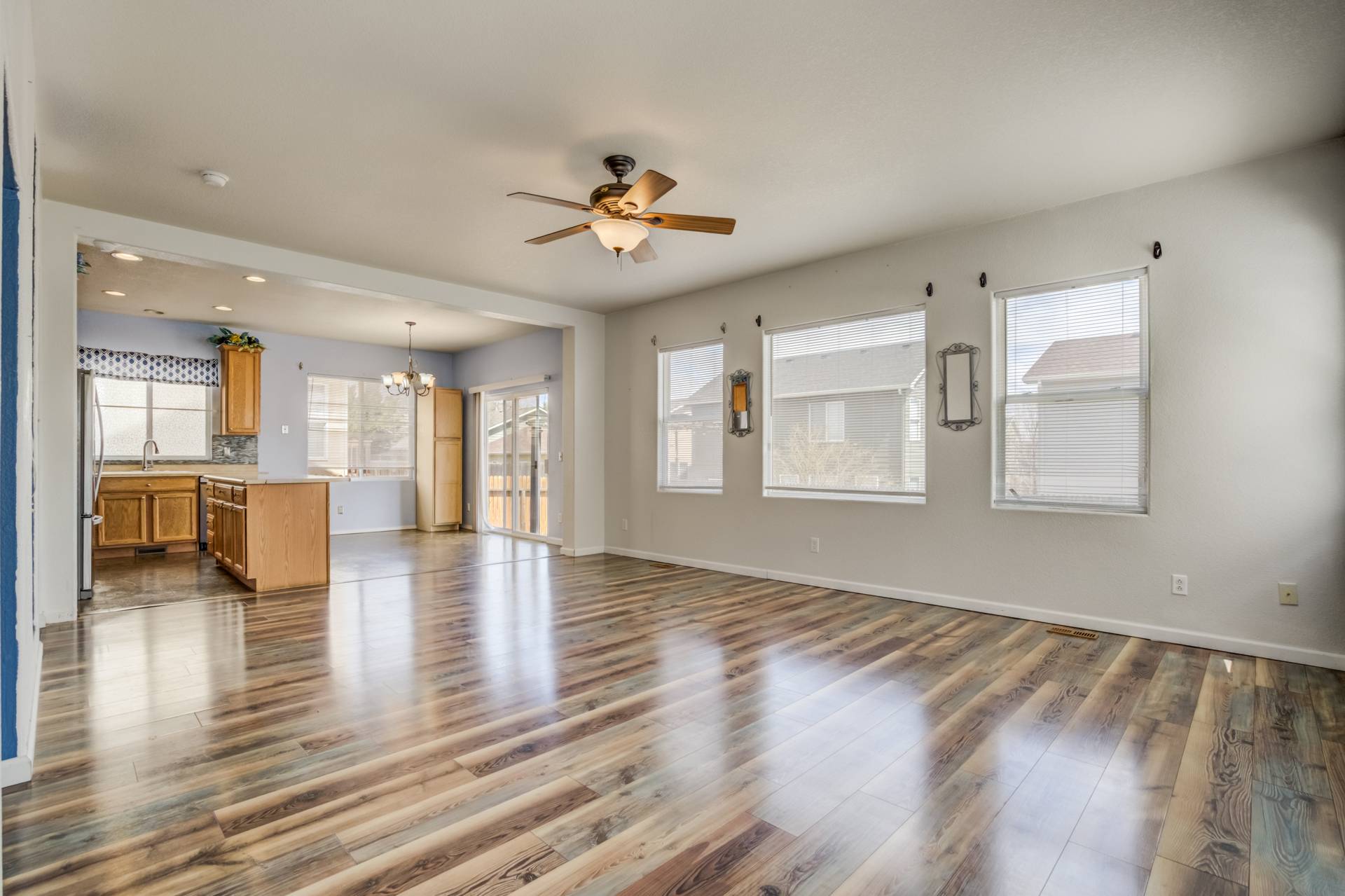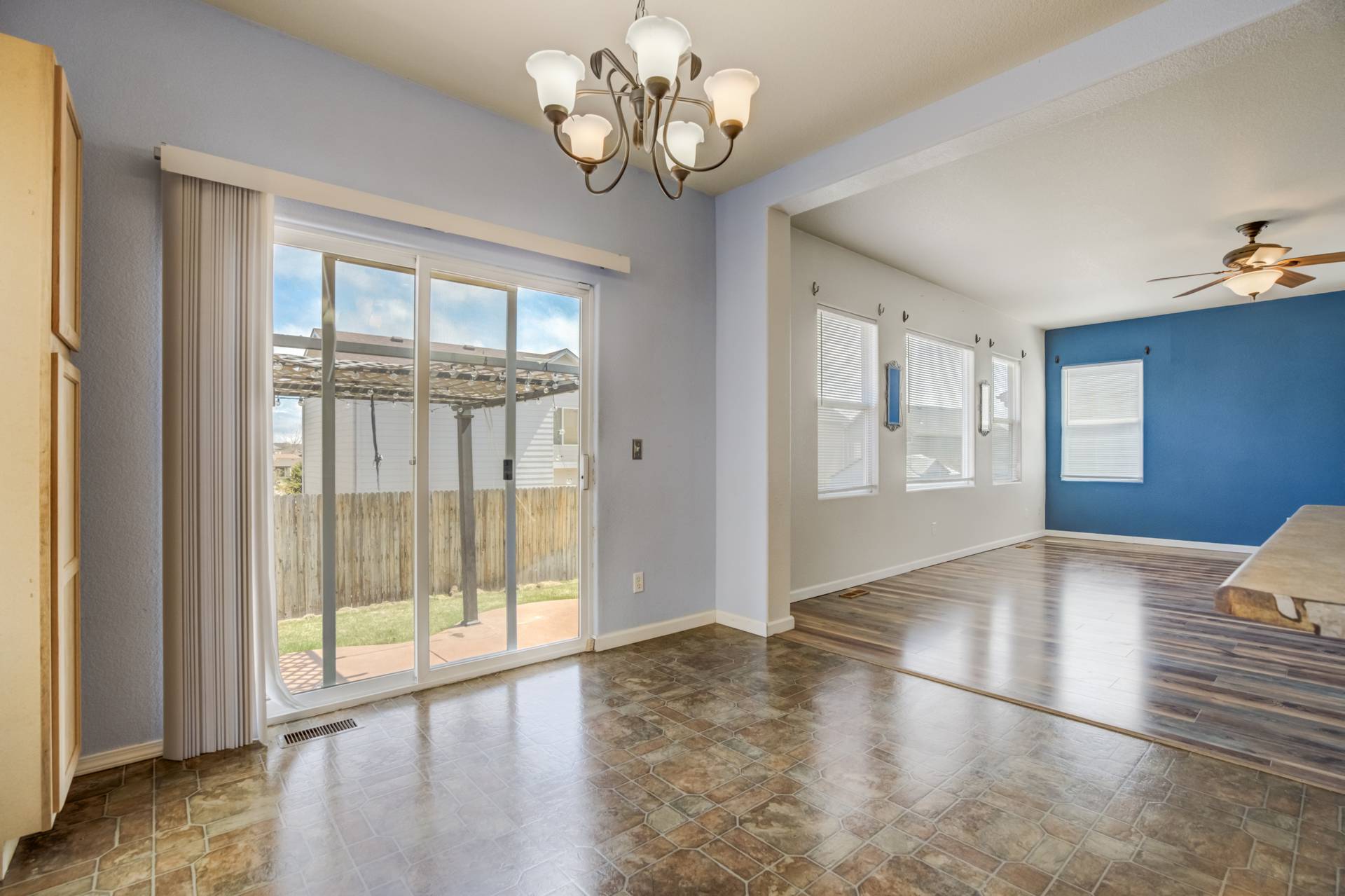 Welcome to this inviting two-story home nestled in the serene neighborhood of Stetson Hills, Colorado. Boasting a spacious layout with 3 bedrooms and 3 bathrooms, this residence offers comfort and functionality across its well-designed floors. Upon entering, you are greeted by an open main level that seamlessly connects the living, dining, and kitchen areas. The modern kitchen features sleek countertops, ample cabinet space, and stainless steel appliances, perfect for culinary enthusiasts and casual dining alike. Upstairs, you will find three cozy bedrooms, each offering privacy and comfort. The primary bedroom includes an en-suite bathroom for added convenience, while the remaining bedrooms share a well-appointed full bathroom. A highlight of this home is its partially finished basement, providing extra space for a home office, entertainment area, or gym, catering to various lifestyle needs. Additionally, a small open backyard with a privacy fence offers a serene outdoor retreat, ideal for relaxing evenings or hosting intimate gatherings. Conveniently located in Stetson Hills, residents enjoy easy access to local parks, schools, shopping centers, and dining options, making it a desirable location for families and professionals alike.