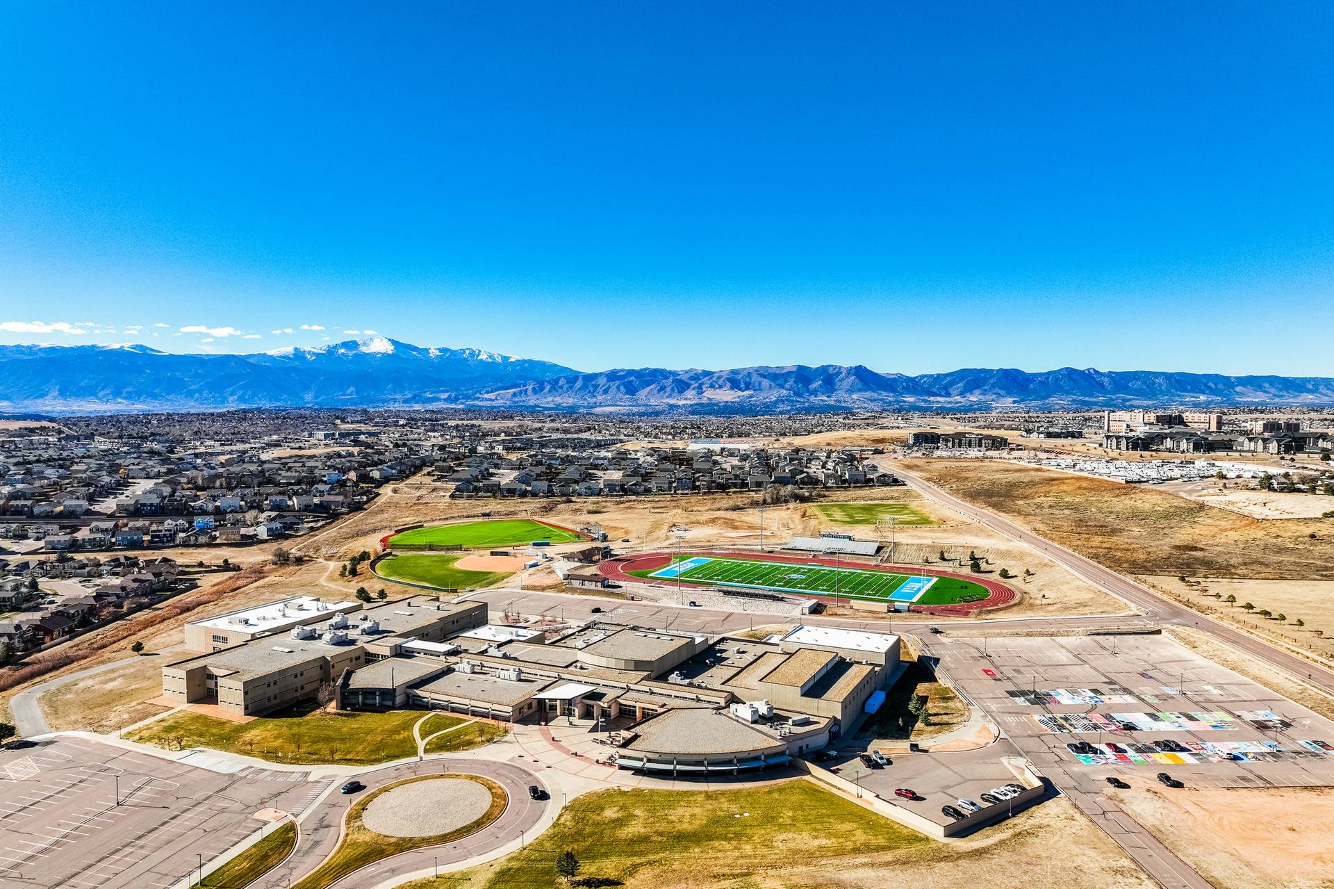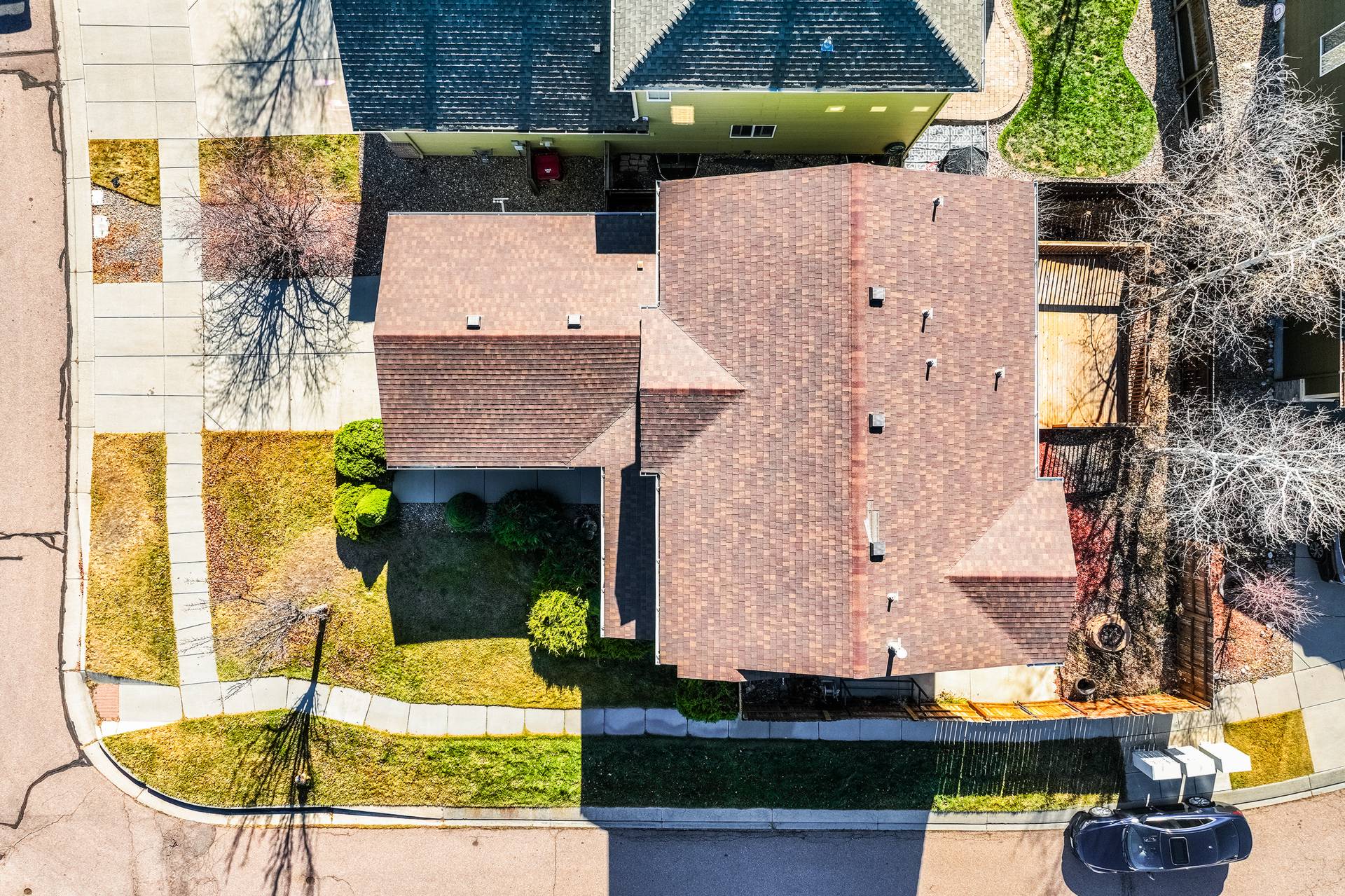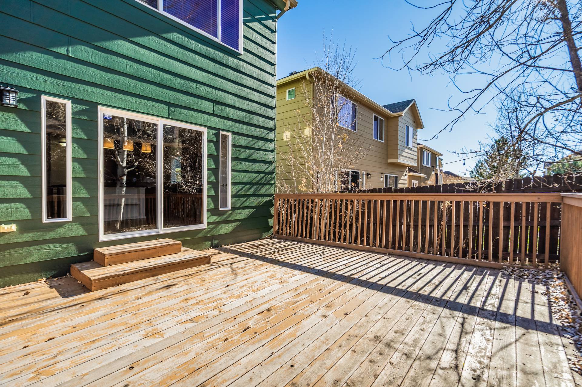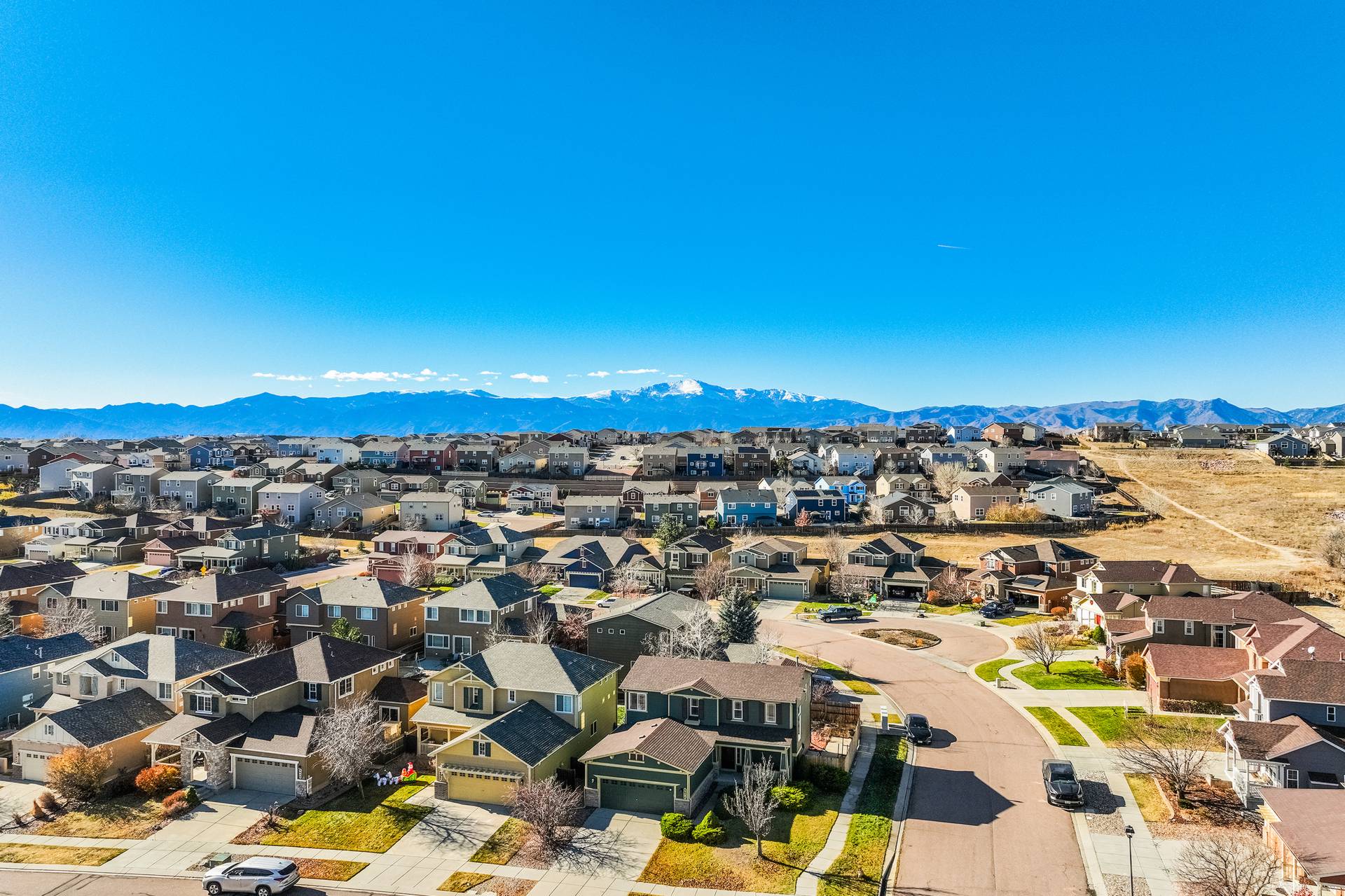 Set in Greenhaven w/ quick access to Powers, major shopping, restaurants, D49 schools & nearby hospitals, this 4-bed, 4-bath home sits on a corner lot offering easy connectivity to everyday amenities. The covered front entry leads into a bright foyer framed by high ceilings, arched openings & a layout that flows naturally across the main level. The great room centers around a gas fireplace w/mantel, entertainment niche & large windows that bring in soft natural light. Wood flooring runs through the high-traffic areas, connecting the living space to the kitchen & dining nook. The kitchen offers 42" uppers, granite-tile counters, full tile backsplash, an island w/built-in shelving, generous cabinetry, pantry storage & direct access to the dining area. The main level is completed by a laundry room w/electric hook-ups & a convenient half bath. Upstairs, the primary suite feels spacious w/its cove ceiling, ceiling fan, walk-in closet & a 5-pc bath featuring double vanities, a free-standing shower & soaking tub. 2 additional upper-level bedrooms maintain great separation from the main living areas, with a nearby full bath. Bonus loft space has built-in desk and workstation w/cabinets. The basement expands the home’s versatility w/a large family room, built-in kitchenette w/sink, refrigerator & cabinetry, ideal for extended-stay guests or rec room, plus an additional bedroom, full bath & under-stair storage. Outside, the backyard is designed for easy maintenance w/a large deck & concrete patio, mulch beds, landscape pavers. Rear fencing, mature trees & corner lot adds to privacy. A solid two-story floor plan in a convenient Powers corridor location w/central air, energy efficient vinyl windows, attached 2-car garage.