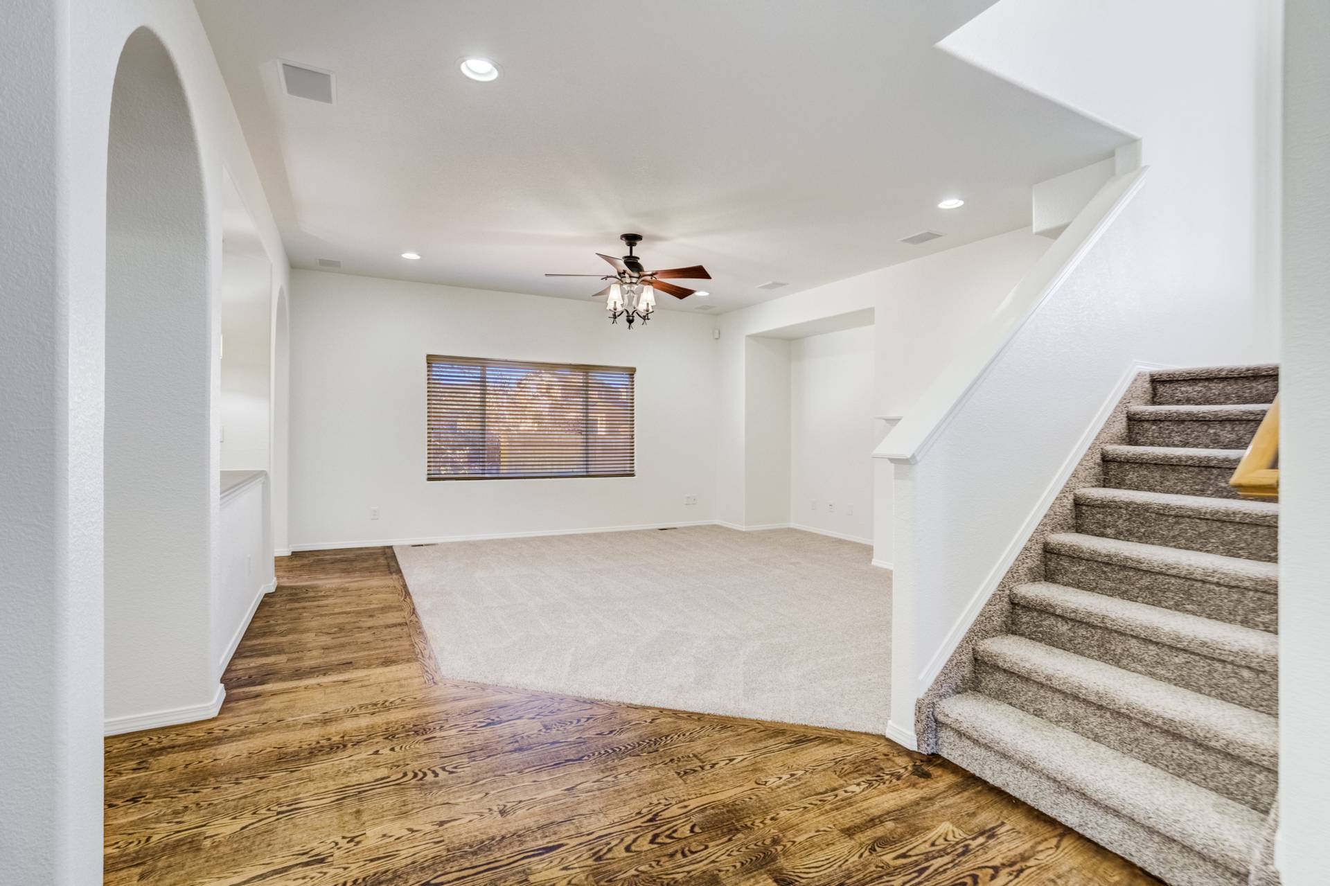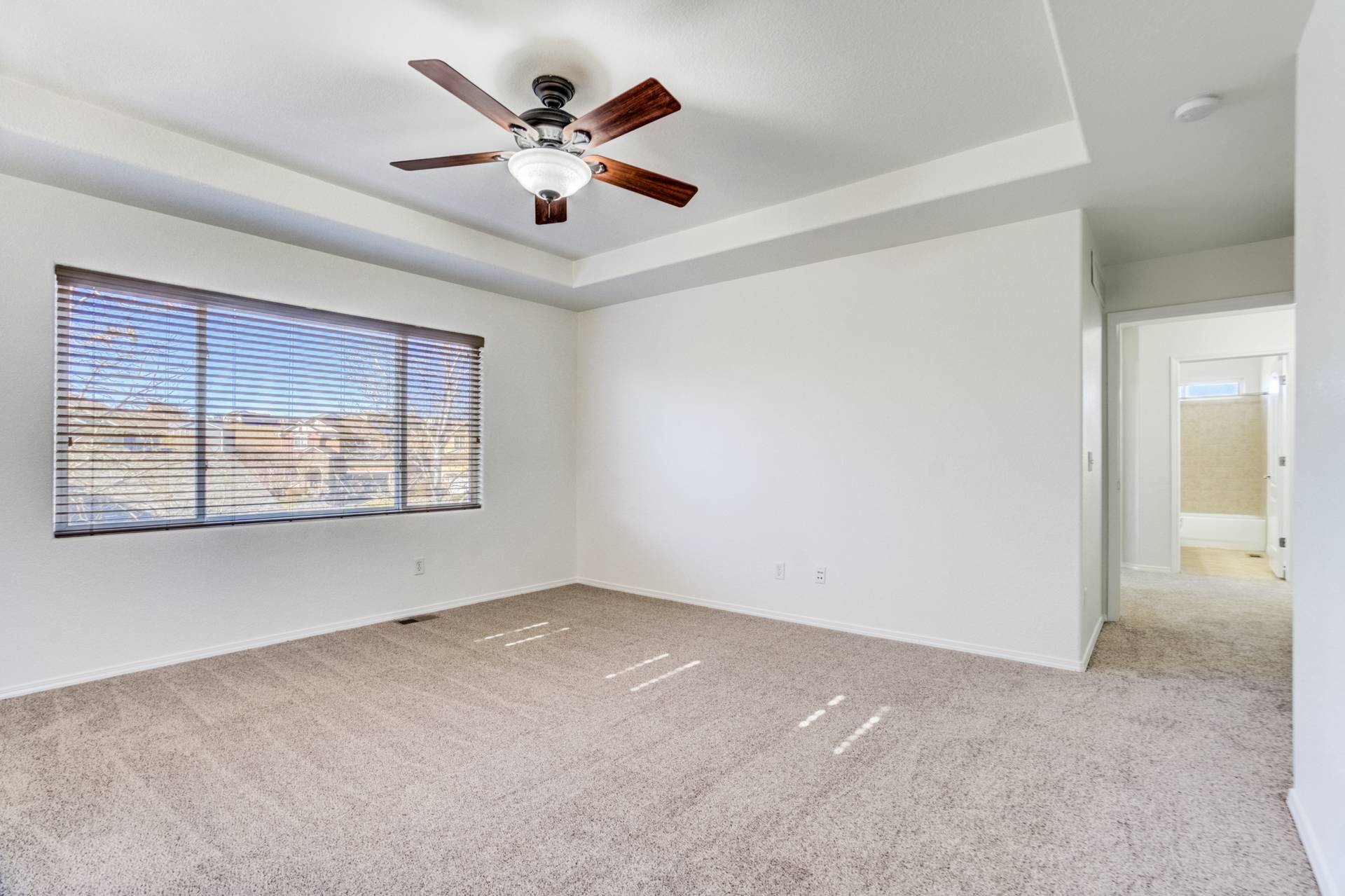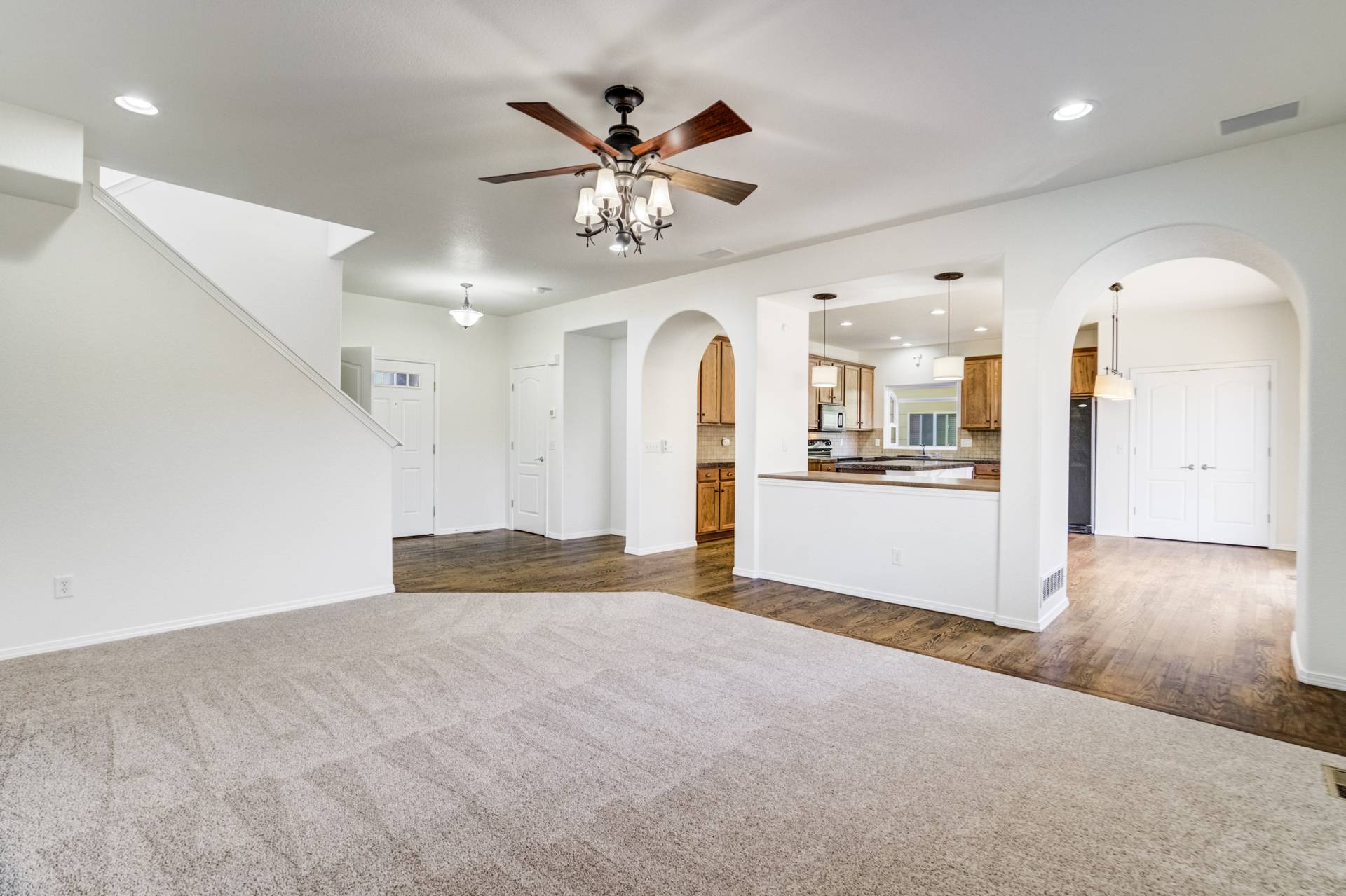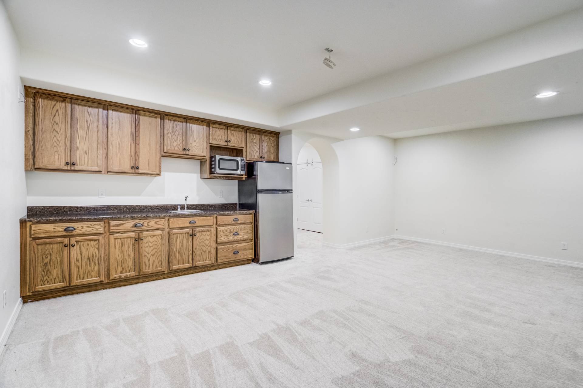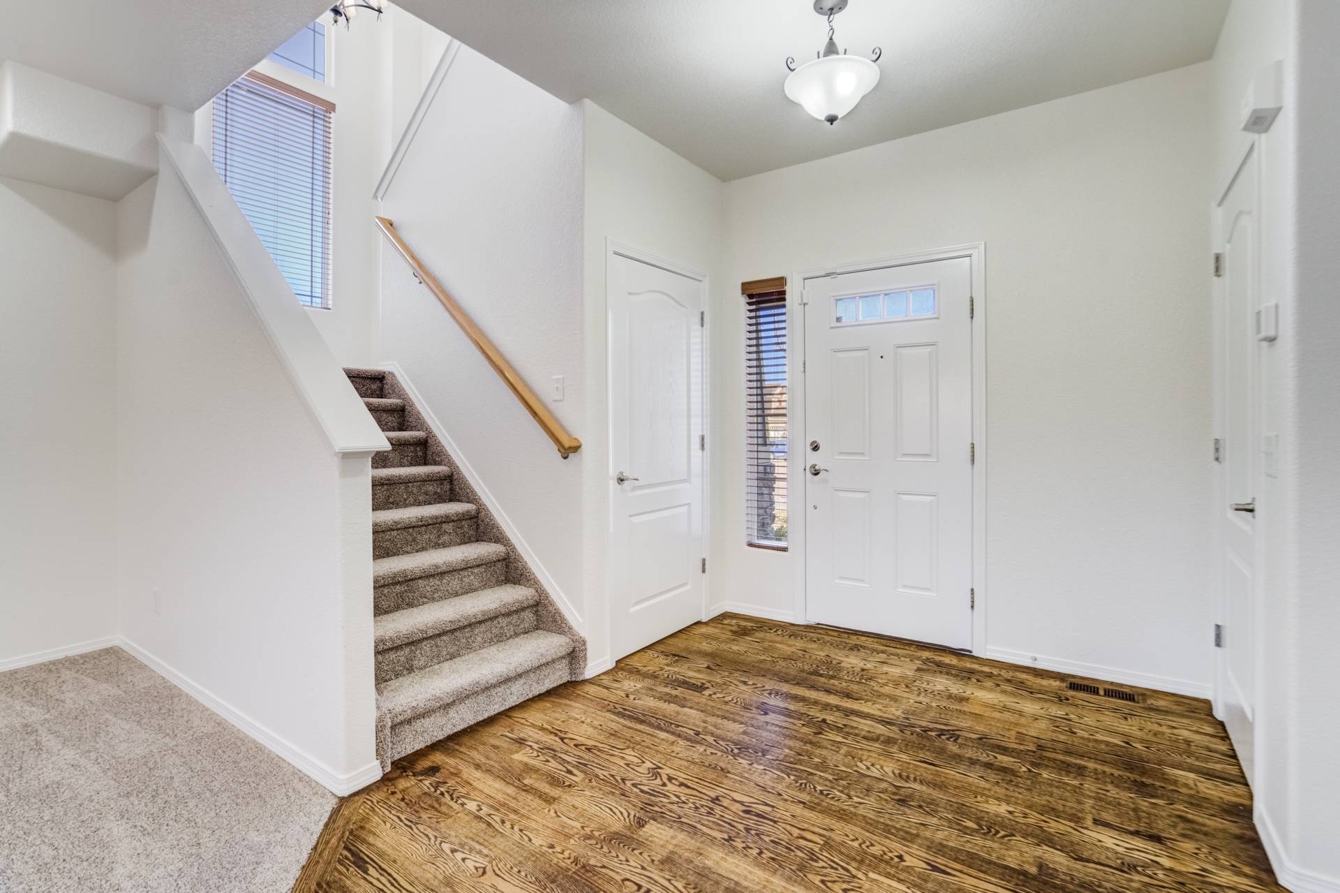 Set in Greenhaven w/ quick access to Powers, major shopping, restaurants, D49 schools & nearby hospitals, this 4-bed, 4-bath home sits on a corner lot offering easy connectivity to everyday amenities. The covered front entry leads into a bright foyer framed by high ceilings, arched openings & a layout that flows naturally across the main level. The great room centers around a gas fireplace w/mantel, entertainment niche & large windows that bring in soft natural light. Wood flooring runs through the high-traffic areas, connecting the living space to the kitchen & dining nook. The kitchen offers 42" uppers, granite-tile counters, full tile backsplash, an island w/built-in shelving, generous cabinetry, pantry storage & direct access to the dining area. The main level is completed by a laundry room w/electric hook-ups & a convenient half bath. Upstairs, the primary suite feels spacious w/its cove ceiling, ceiling fan, walk-in closet & a 5-pc bath featuring double vanities, a free-standing shower & soaking tub. 2 additional upper-level bedrooms maintain great separation from the main living areas, with a nearby full bath. Bonus loft space has built-in desk and workstation w/cabinets. The basement expands the home’s versatility w/a large family room, built-in kitchenette w/sink, refrigerator & cabinetry, ideal for extended-stay guests or rec room, plus an additional bedroom, full bath & under-stair storage. Outside, the backyard is designed for easy maintenance w/a large deck & concrete patio, mulch beds, landscape pavers. Rear fencing, mature trees & corner lot adds to privacy. A solid two-story floor plan in a convenient Powers corridor location w/central air, energy efficient vinyl windows, attached 2-car garage.