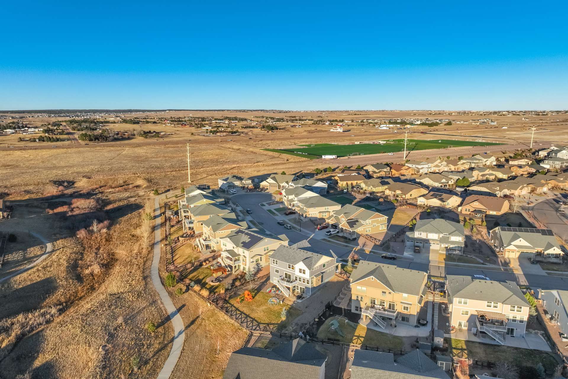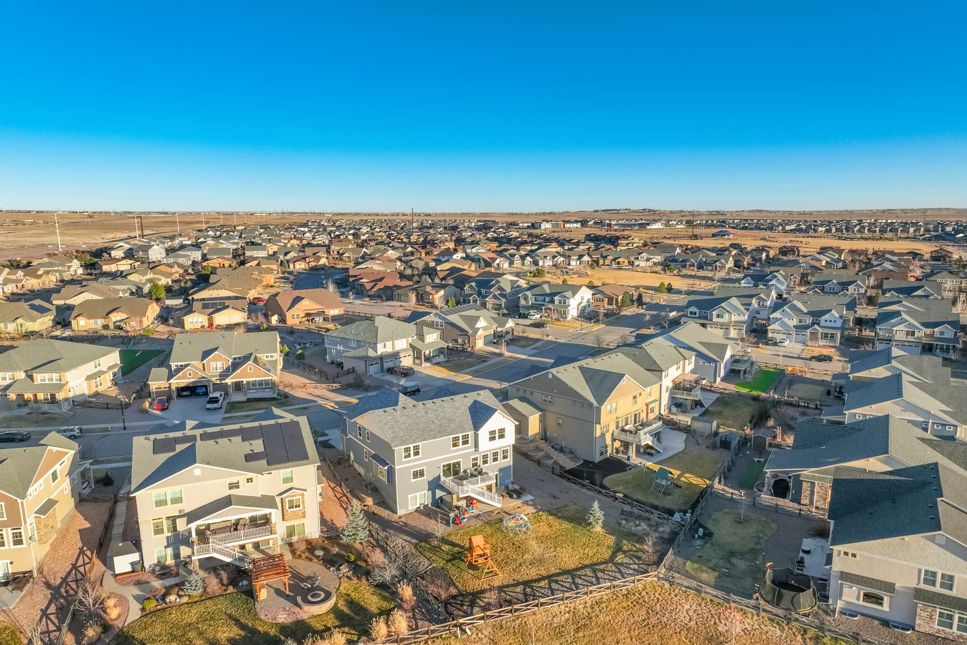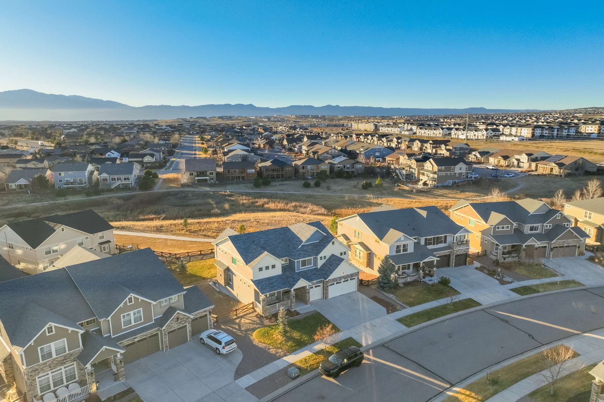 This home clearly understood the assignment: look amazing, live comfortably, and never sacrifice the view. Nestled in Banning Lewis Ranch and backing to open space, this beauty delivers spectacular views that make even a quick glance out the window feel like a moment. No direct rear neighbors, just fresh air, Colorado skies, and a whole lot of “wow.” Step inside and you’re greeted by soaring ceilings and an open floor plan that flows effortlessly—perfect for entertaining, relaxing, or dramatically announcing dinner is ready. The luxury kitchen is a showstopper, featuring stunning finishes like Brazilian Quartz, high-end cabinetry, and a walk-in pantry with barn doors. The layout checks every box: main-level office for productivity without the commute; upstairs loft that flexes as a playroom, or second living space; finished walk-out basement ready for whatever your lifestyle demands; and a 3-car garage, because storage and parking peace matter. Every inch of this home feels polished, purposeful, and just the right amount of indulgent. It’s spacious without feeling oversized, stylish without being stuffy, and designed for real life—with a little flair. With five generously sized bedrooms all with walk-in closets, there’s room for everyone—and then some. The outdoor space is just as impressive, with a hot tub to enjoy while soaking in those Colorado sunsets, and a deck perfect for grilling. And the location? Chef’s kiss. Close to walking trails, parks, playgrounds, schools, and all the perks of Banning Lewis Ranch—including a clubhouse, pool, and fitness center.