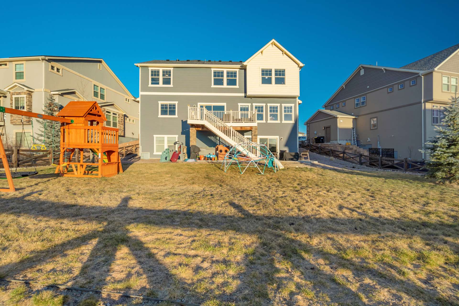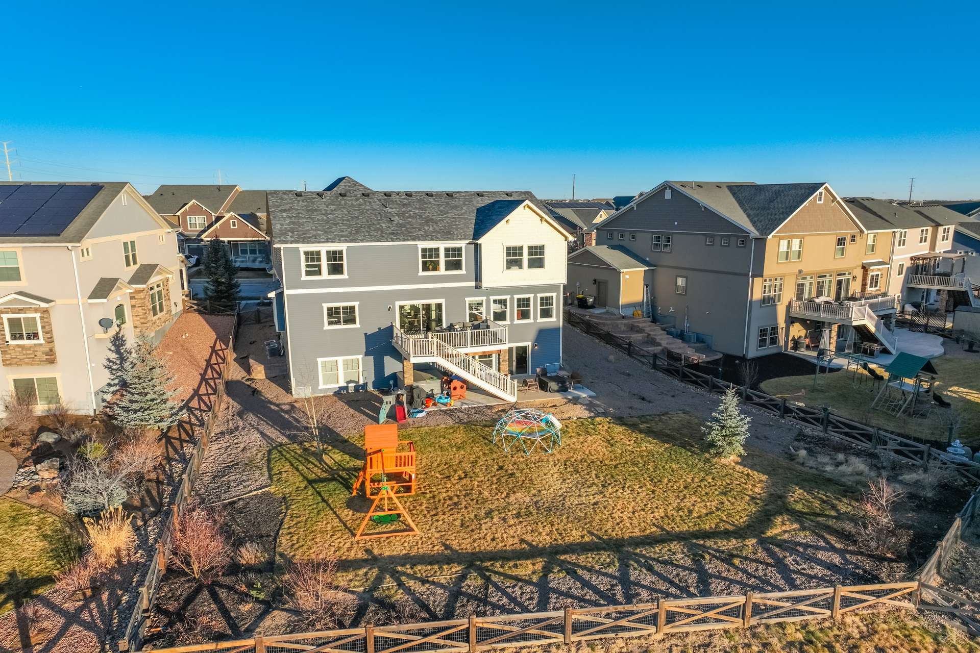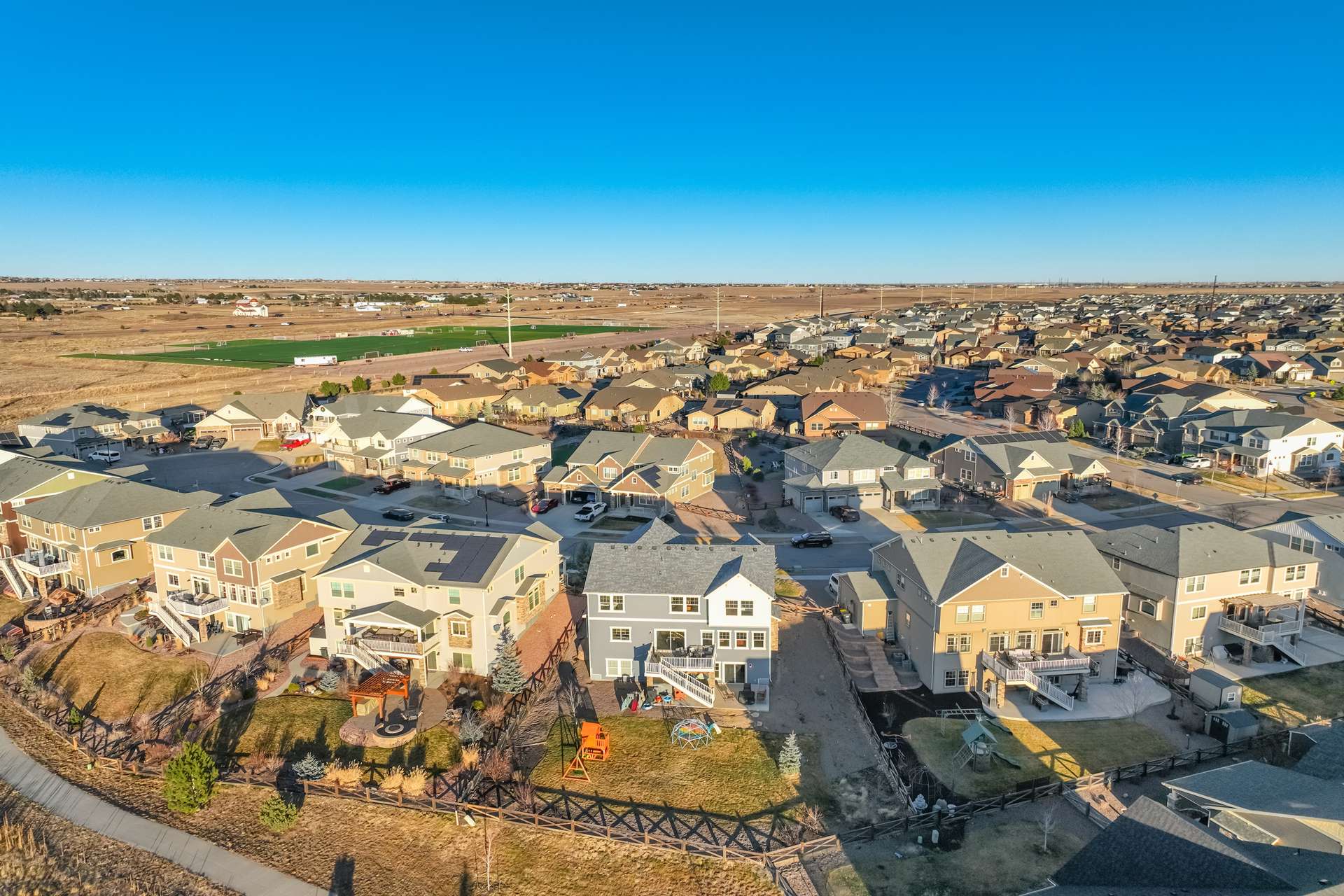 This home clearly understood the assignment: look amazing, live comfortably, and never sacrifice the view. Nestled in Banning Lewis Ranch and backing to open space, this beauty delivers spectacular views that make even a quick glance out the window feel like a moment. No direct rear neighbors, just fresh air, Colorado skies, and a whole lot of “wow.” Step inside and you’re greeted by soaring ceilings and an open floor plan that flows effortlessly—perfect for entertaining, relaxing, or dramatically announcing dinner is ready. The luxury kitchen is a showstopper, featuring stunning finishes like Brazilian Quartz, high-end cabinetry, and a walk-in pantry with barn doors. The layout checks every box: main-level office for productivity without the commute; upstairs loft that flexes as a playroom, or second living space; finished walk-out basement ready for whatever your lifestyle demands; and a 3-car garage, because storage and parking peace matter. Every inch of this home feels polished, purposeful, and just the right amount of indulgent. It’s spacious without feeling oversized, stylish without being stuffy, and designed for real life—with a little flair. With five generously sized bedrooms all with walk-in closets, there’s room for everyone—and then some. The outdoor space is just as impressive, with a hot tub to enjoy while soaking in those Colorado sunsets, and a deck perfect for grilling. And the location? Chef’s kiss. Close to walking trails, parks, playgrounds, schools, and all the perks of Banning Lewis Ranch—including a clubhouse, pool, and fitness center.