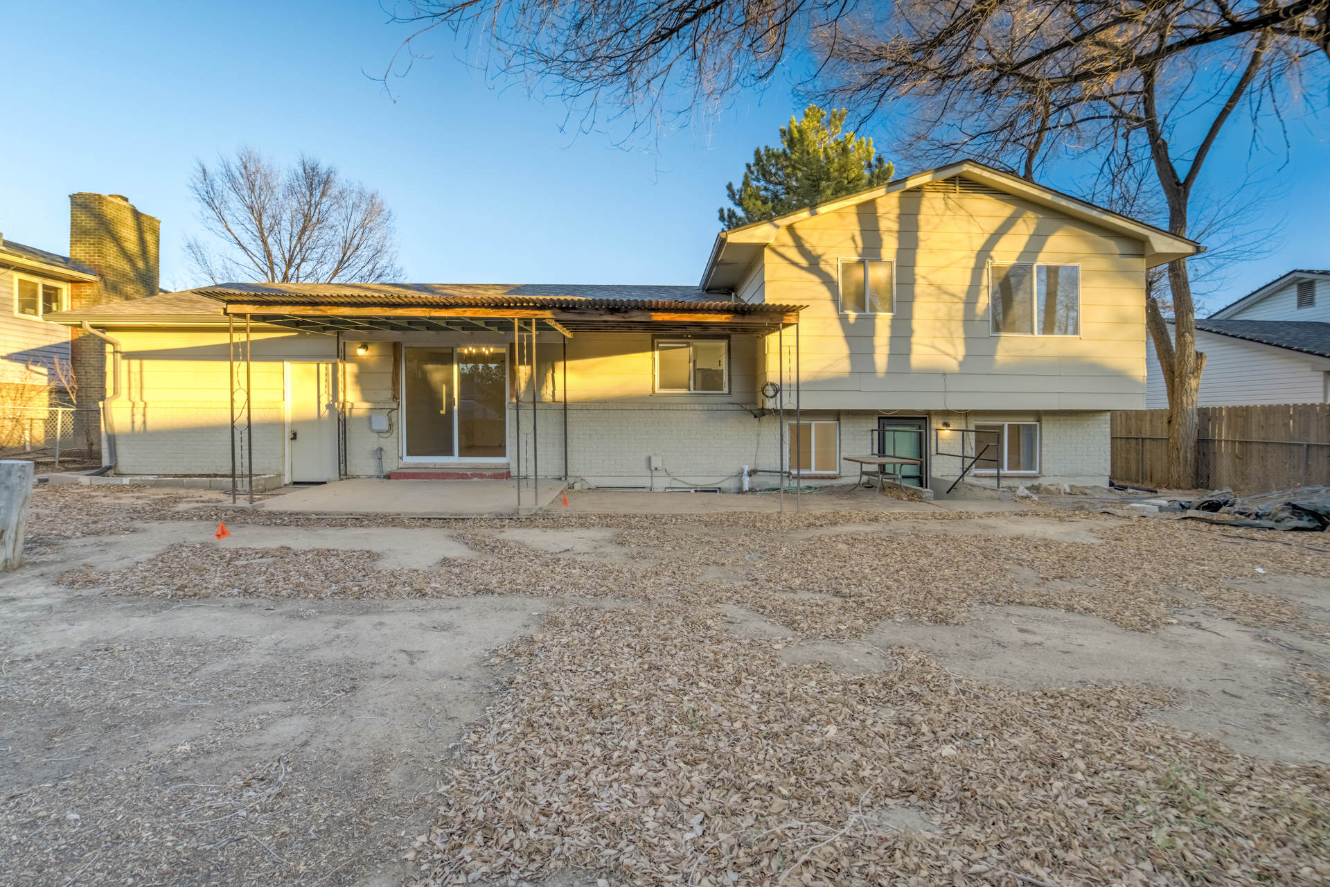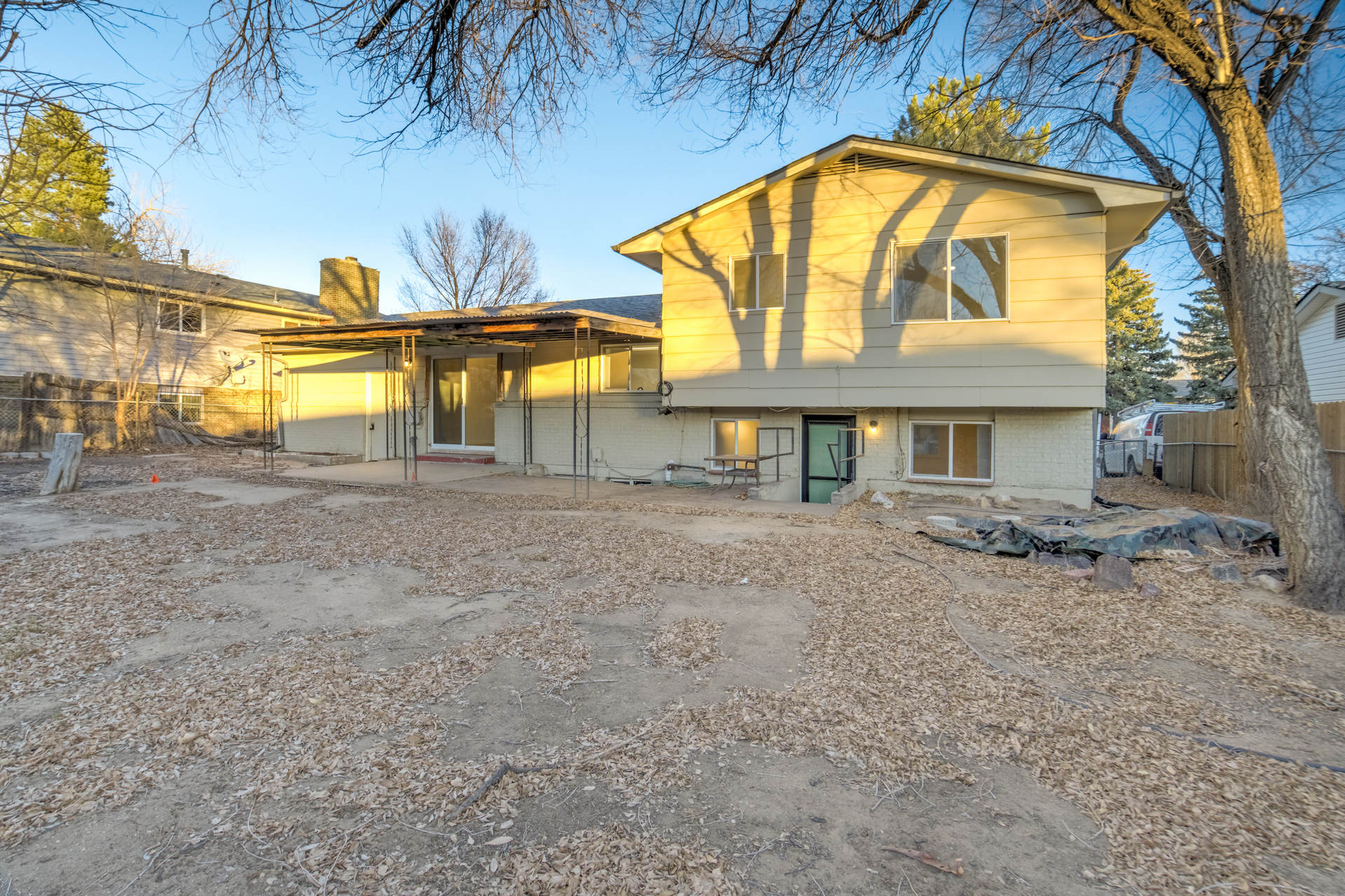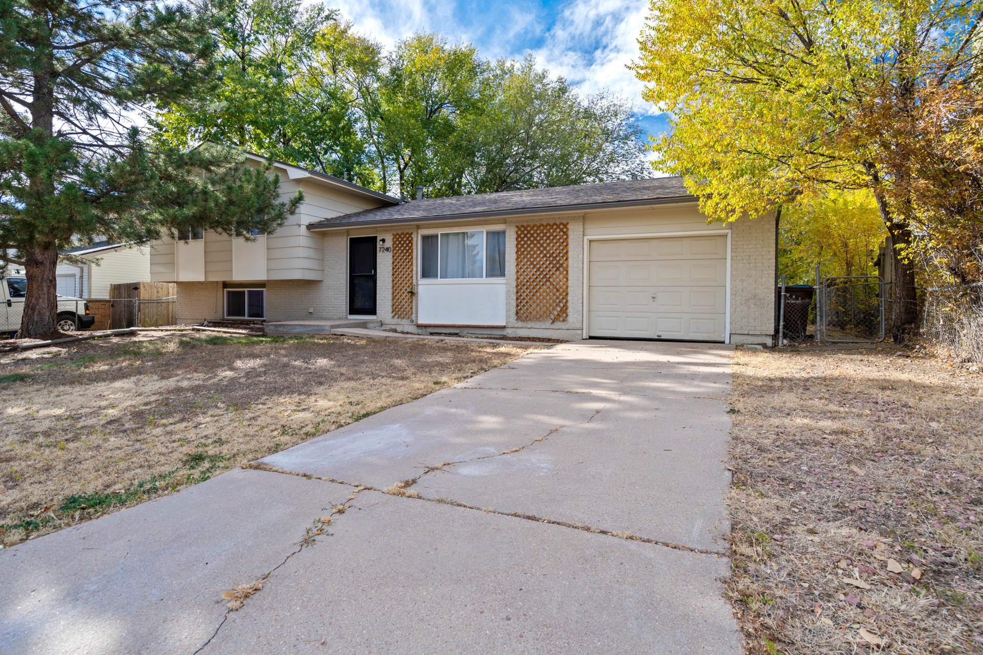 Newly remodeled kitchen, like new: SST appliances, luxury vinyl plank flooring, new modern light fixtures & LED lighting, upgraded Class 4 roof, updated baths. Updated throughout, this is a must see! This home sits in an established neighborhood w/ mature trees, nearby parks, schools, shopping centers, public transit, & convenient access to Fort Carson & major north–south corridors. The setting offers a practical lifestyle balance w/ easy connectivity. This spacious home offers a functional layout w/finished basement, boasting generous living, sleeping, & flex spaces. As you enter the main lvl its anchored by the open great rm that flows directly into the dining area w/ new chandelier & walk-out access, creating an easy connection for everyday living. The luxury like new kitchen is nearby, positioned to stay open to the main living areas. Modern paint throughout paired w/luxury vinyl plank flooring in the dining & both living areas, & cozy carpeted upper level. The kitchen has been remodeled w/ new cabinetry, subway tile backsplash, black metal hardware, a breakfast bar, pantry storage, tile floor, butcher block bar & stainless steel appliances including range, oven, microwave, dishwasher, disposal, & refrigerator. The upper level hosts the primary suite w/ an adj. bath featuring a free-standing shower & new vanity w/designer mirror. The 2 add upper bedrms have easy access to hall full bath w/tile floor, new vanity & skylight. The garden-level walkout expands the living space w/ a large great room centered around a wood-burning FP, creating a comfortable gathering area. This lvl also incl an additional 3/4 bath & a dedicated laundry closet ready to accommodate a full-sized washer & dryer. The basement adds finished space w/ a fourth bedroom w/new flooring & paint & large storage room ready for a multitude of uses. The large backyard has a covered concrete patio & fenced rear yard. Bonus items incl; sump pump, window coverings, ceiling fans