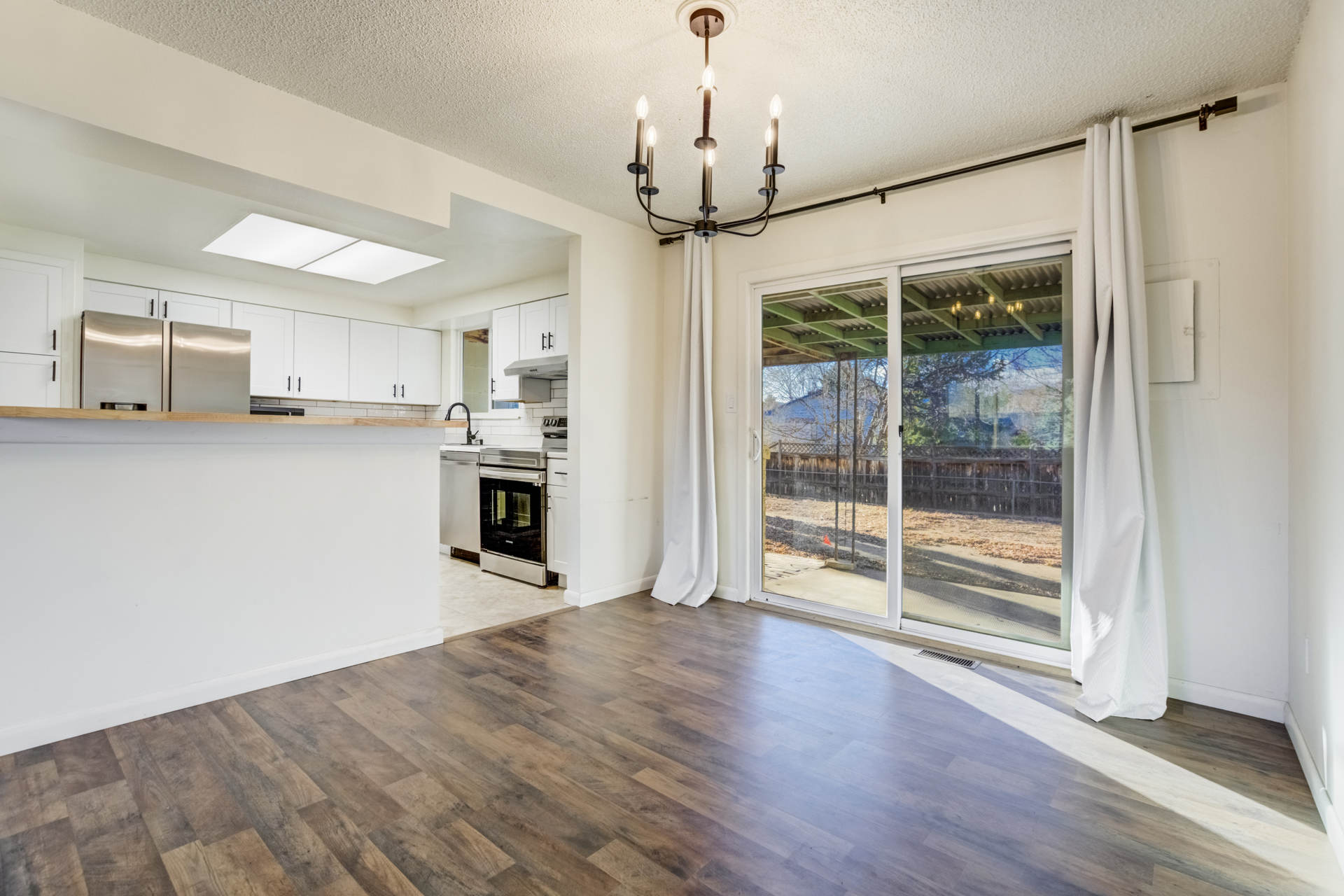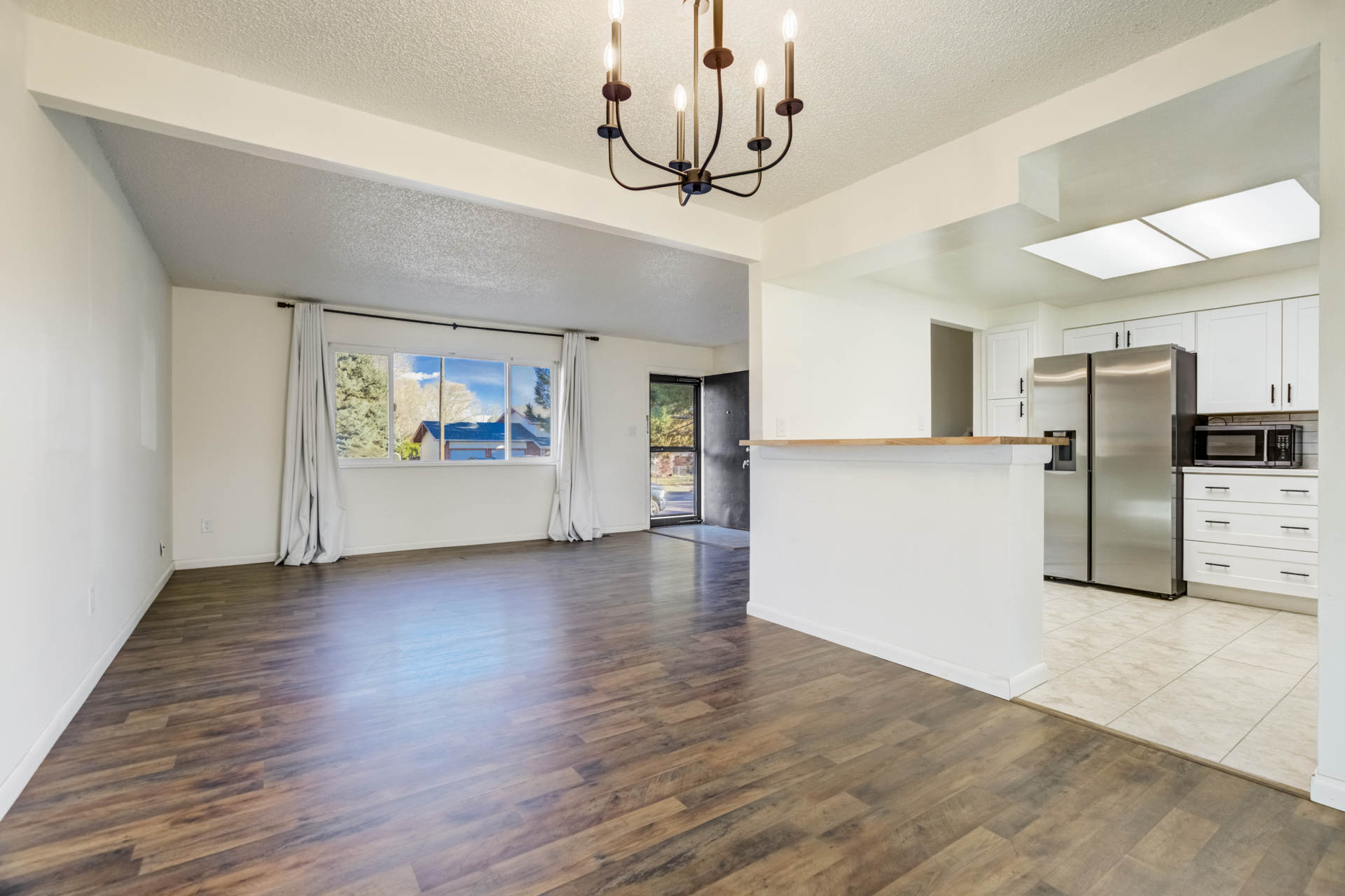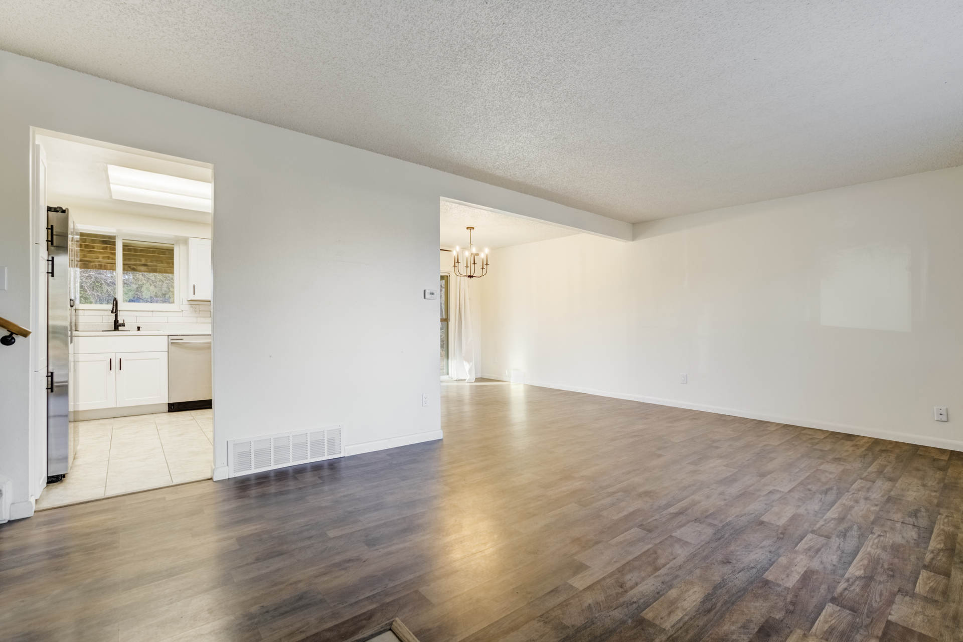 Newly remodeled kitchen, like new: SST appliances, luxury vinyl plank flooring, new modern light fixtures & LED lighting, upgraded Class 4 roof, updated baths. Updated throughout, this is a must see! This home sits in an established neighborhood w/ mature trees, nearby parks, schools, shopping centers, public transit, & convenient access to Fort Carson & major north–south corridors. The setting offers a practical lifestyle balance w/ easy connectivity. This spacious home offers a functional layout w/finished basement, boasting generous living, sleeping, & flex spaces. As you enter the main lvl its anchored by the open great rm that flows directly into the dining area w/ new chandelier & walk-out access, creating an easy connection for everyday living. The luxury like new kitchen is nearby, positioned to stay open to the main living areas. Modern paint throughout paired w/luxury vinyl plank flooring in the dining & both living areas, & cozy carpeted upper level. The kitchen has been remodeled w/ new cabinetry, subway tile backsplash, black metal hardware, a breakfast bar, pantry storage, tile floor, butcher block bar & stainless steel appliances including range, oven, microwave, dishwasher, disposal, & refrigerator. The upper level hosts the primary suite w/ an adj. bath featuring a free-standing shower & new vanity w/designer mirror. The 2 add upper bedrms have easy access to hall full bath w/tile floor, new vanity & skylight. The garden-level walkout expands the living space w/ a large great room centered around a wood-burning FP, creating a comfortable gathering area. This lvl also incl an additional 3/4 bath & a dedicated laundry closet ready to accommodate a full-sized washer & dryer. The basement adds finished space w/ a fourth bedroom w/new flooring & paint & large storage room ready for a multitude of uses. The large backyard has a covered concrete patio & fenced rear yard. Bonus items incl; sump pump, window coverings, ceiling fans