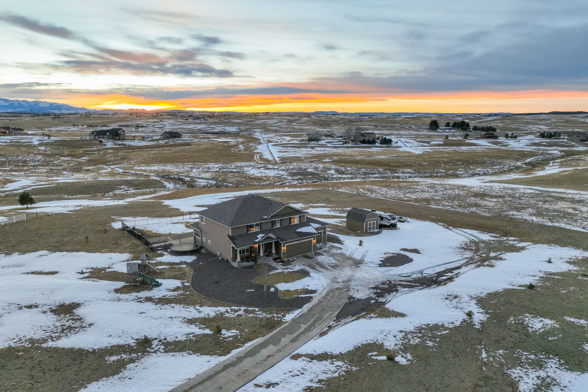 If you’ve been dreaming of a place where life is a little more natural, a little quieter, and significantly more entertaining—this is it. This isn’t just a home. It’s a lifestyle shift. This private home on five acres is located in the Black Forest Community of Cherry Creek Springs has the most spetactular views of the Colorado Rockies. It also backs to 40 acres of Open Space with access to the creek. Inside the home is just as impressive, with five bedrooms, four of which are on the same level and have attached bathrooms. The entire home has been updated with plenty of character & charm. The main level living room has a beautiful stone surround fireplace, with an office separated by doors. The mud room is a dream. The finished basement is ready for shenanigans and/or sophistication—pre-plumbed for a wet bar (because priorities) and equipped with secondary washer & dryer hookups, since laundry waits for no one. Stay comfortable with the dual zone HVAC system & water heaters. You also get a three-car garage plus a large storage shed for vehicles, hobbies, unfinished projects, or things you swear are “investments.” Want fresh eggs? Done. Want a horse? Emotionally encouraged. Want to park an RV because you’re that person now? There’s RV parking as you wish. The entire home is in great condition, so you can focus on the important stuff—like naming your chickens, building a fire pit, and reminding yourself that yes, this is really your house.