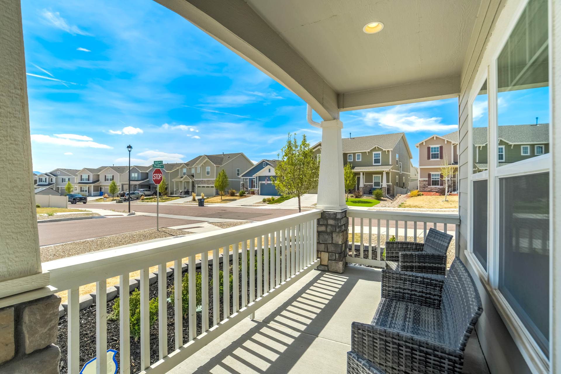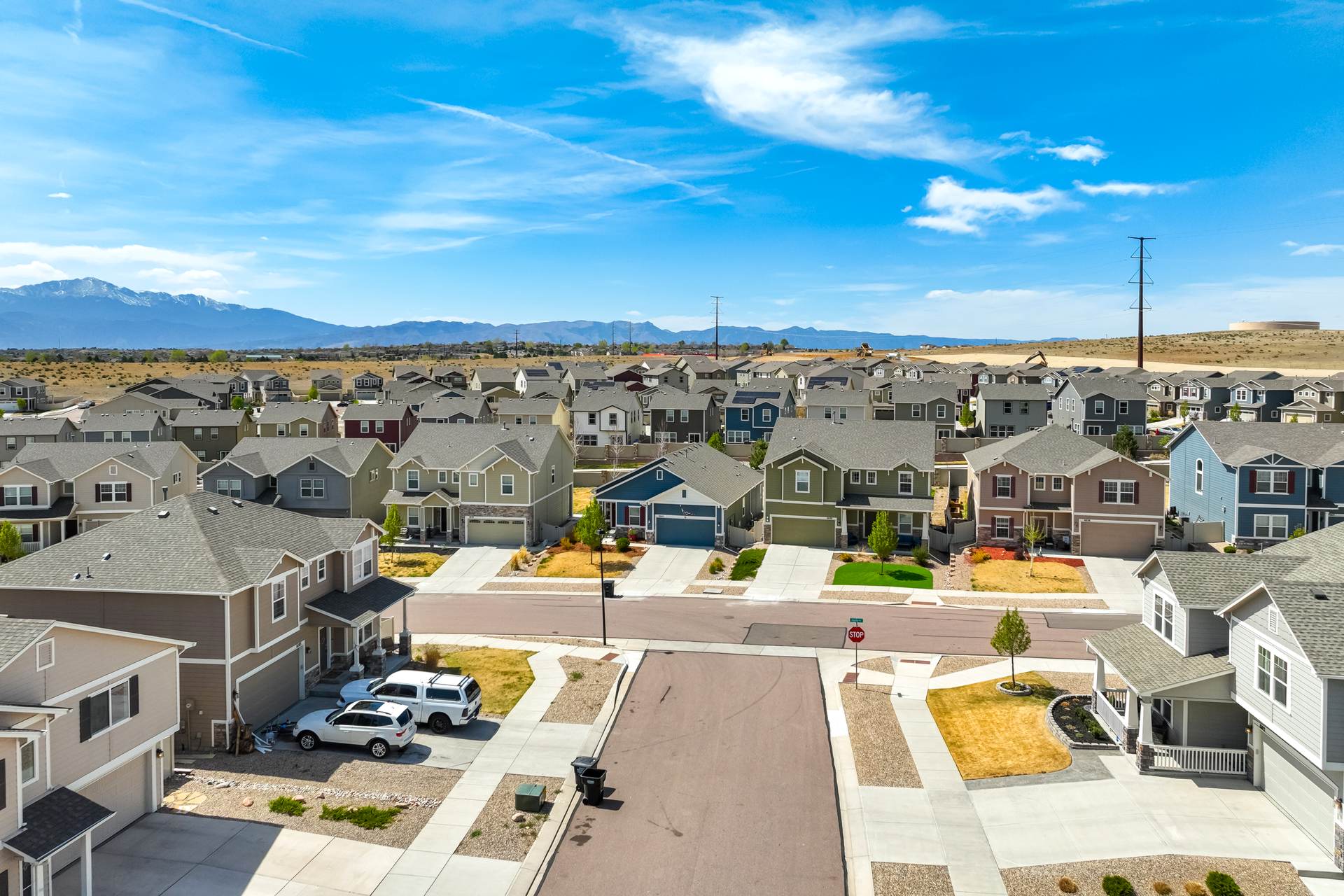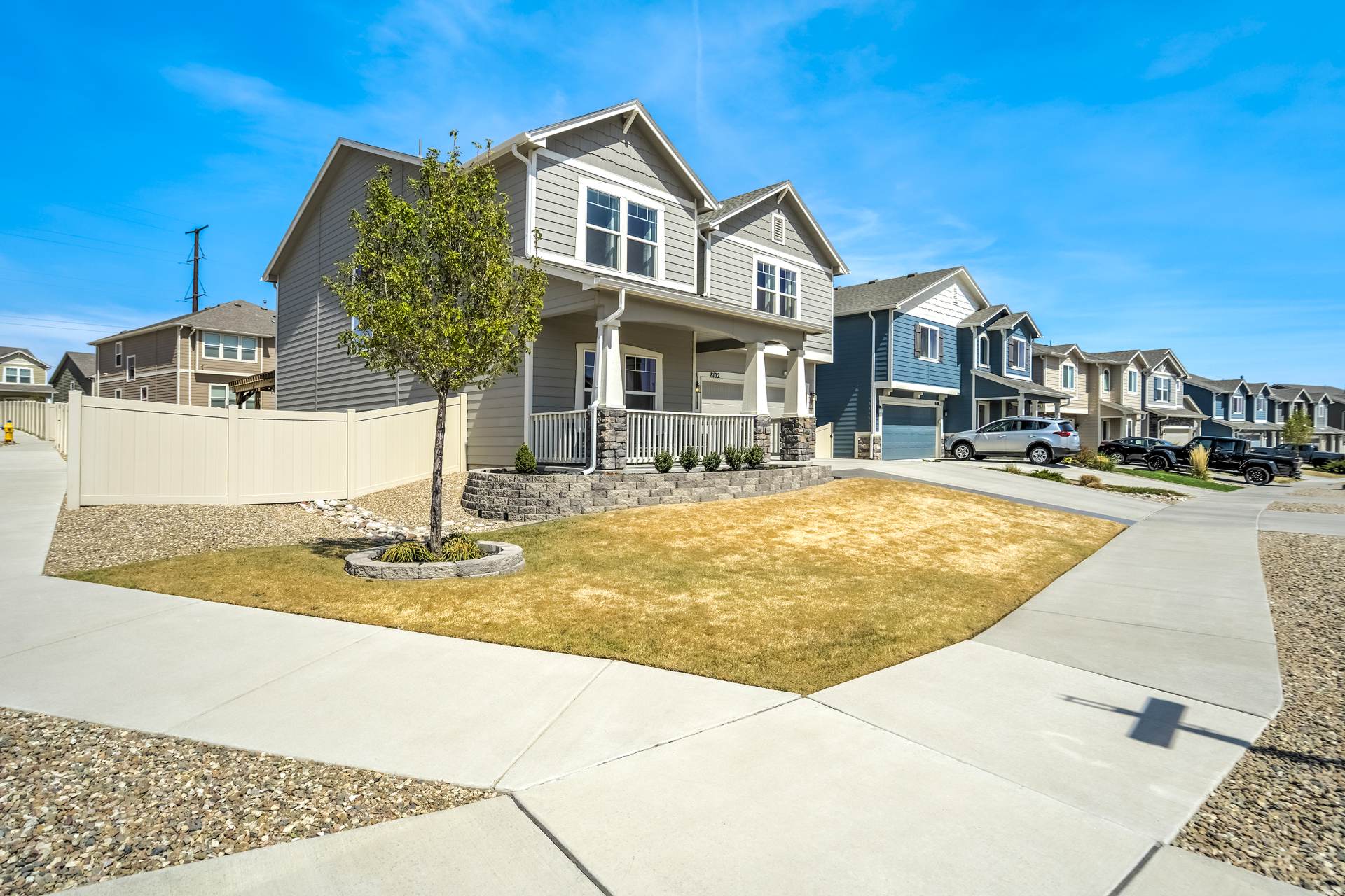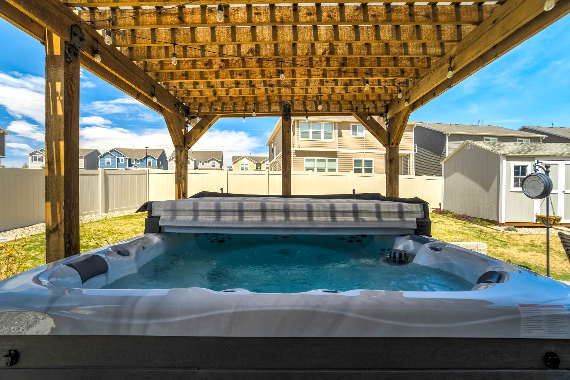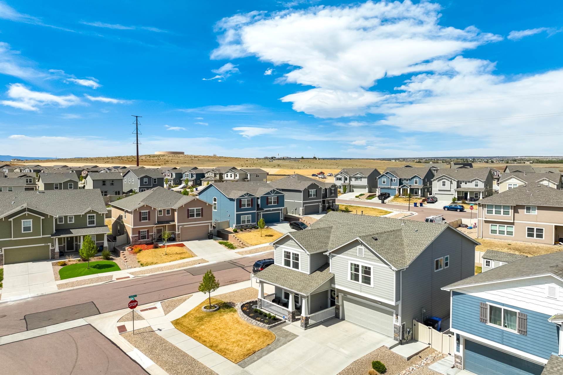 Move-In Ready Home with Backyard Oasis, Hot Tub & Upgrades! This stunning 5-bedroom, 3-bath home features a spacious open floor plan, and an upper-level loft—designed for flexible living and everyday comfort. This open-concept design feels spacious and inviting, offering plenty of room to relax or entertain. The kitchen features a large island, pantry and a walkout to the backyard—perfect for seamless indoor-outdoor living. The front main level bedroom includes shelving, making it perfect for a guest room or home office. Several light fixures have been upgraded! Upstairs, you’ll find generously sized bedrooms along with a spacious loft. The oversized primary suite features a double vanity, soaking tub, separate shower, and walk-in closet. The additional bedrooms are well-sized and share a full bath. Laundry is conveniently located on the upper level near all bedrooms. Step outside to your private backyard oasis, complete with a large pergola, private large hot tub - perfect for families or taller individuals, cement walkways, storage shed, and upgraded brickwork will add to your enjoyment. Situated on a desirable corner lot with charming front flower beds and excellent curb appeal, this home offers both beauty and function—inside and out. You are truly able to relax as you have extra assurance with this nearly new home! Additionally, this is a perfect location as it is close to parks, schools, walking trails, access to Peterson Space Force, Powers Corridor, and all the shopping.