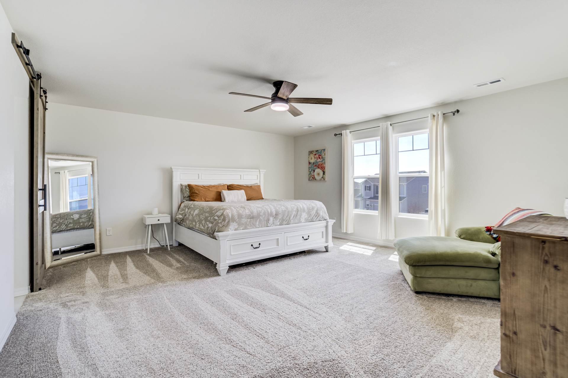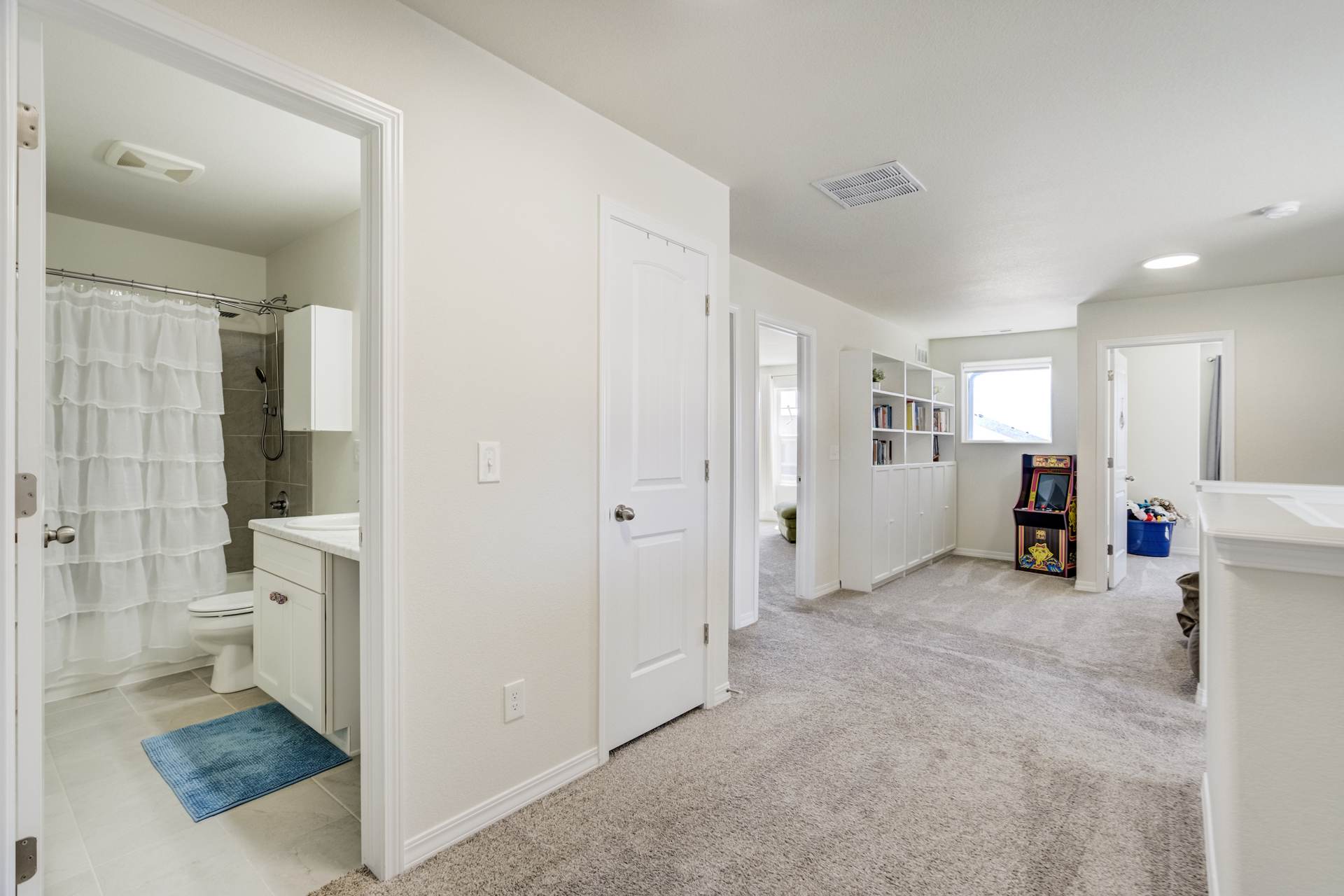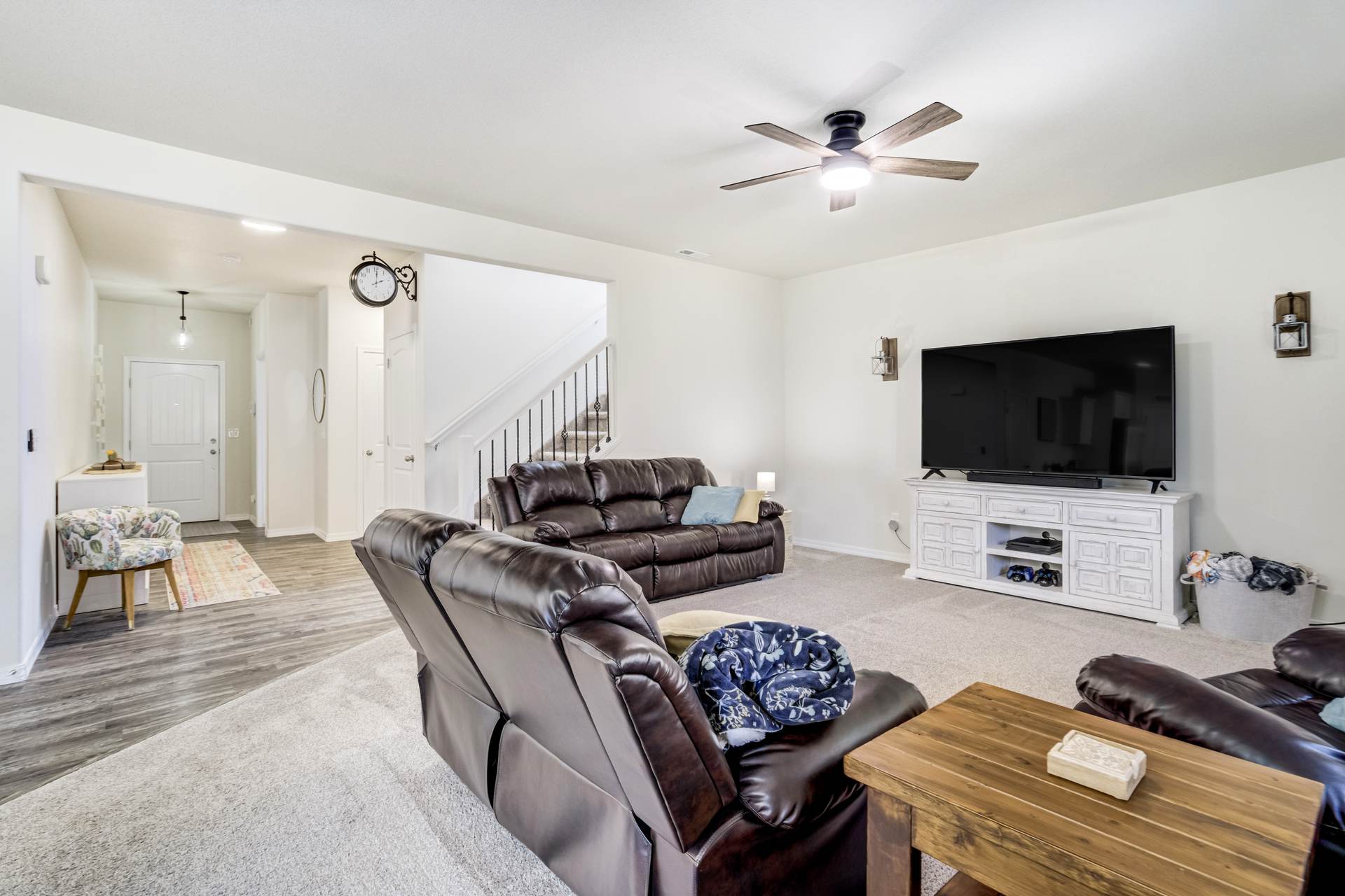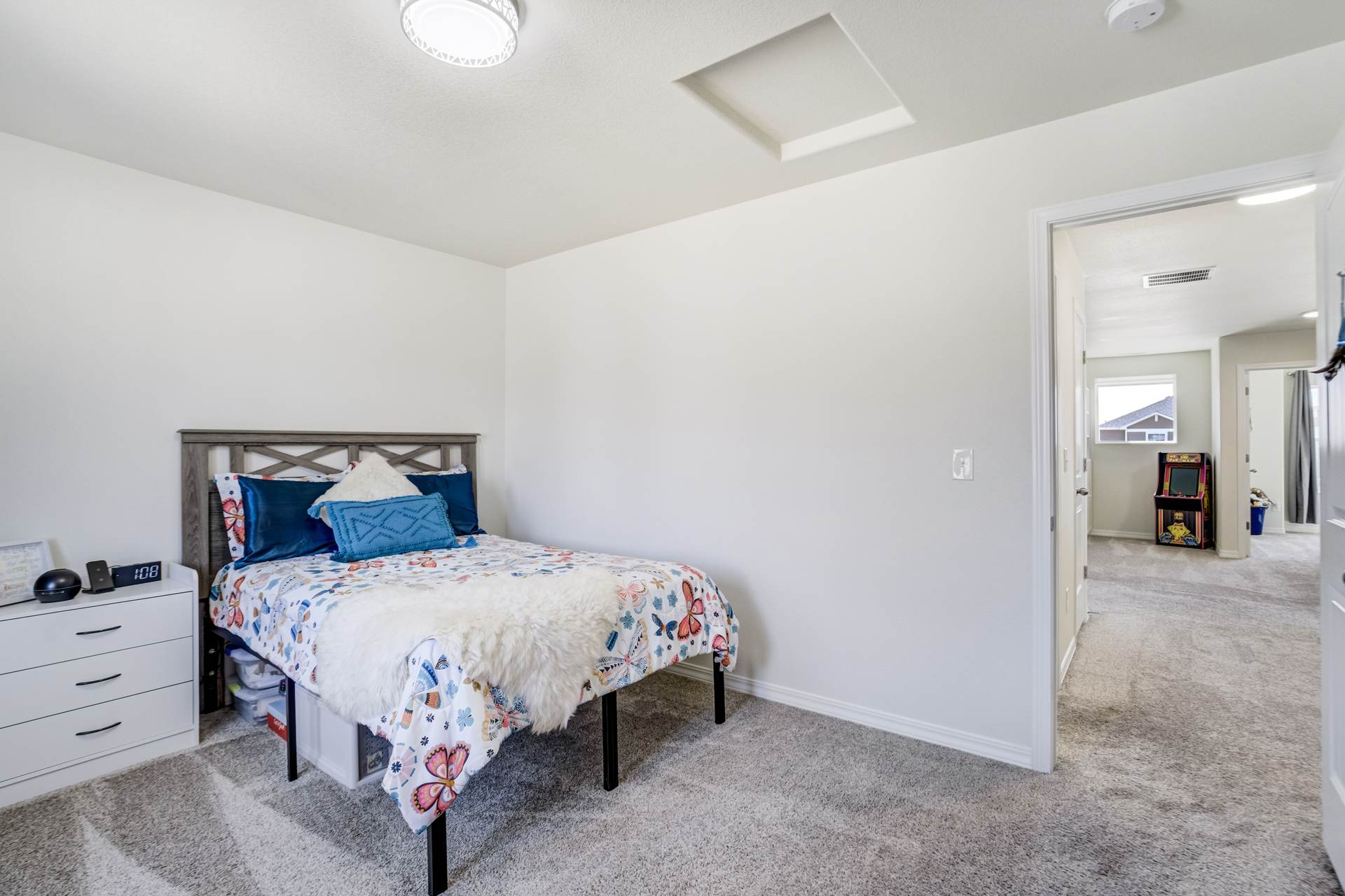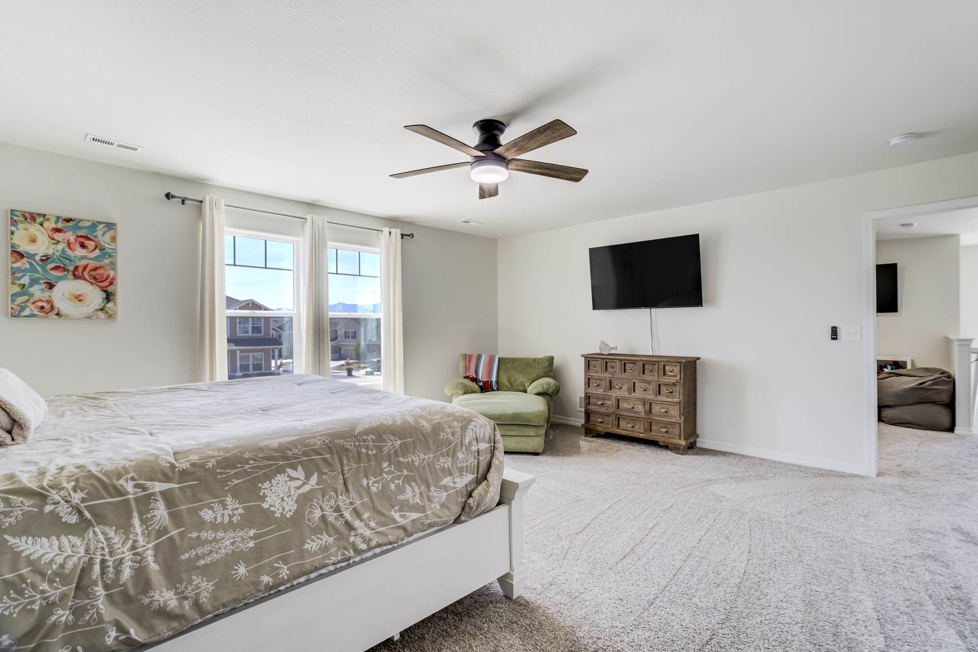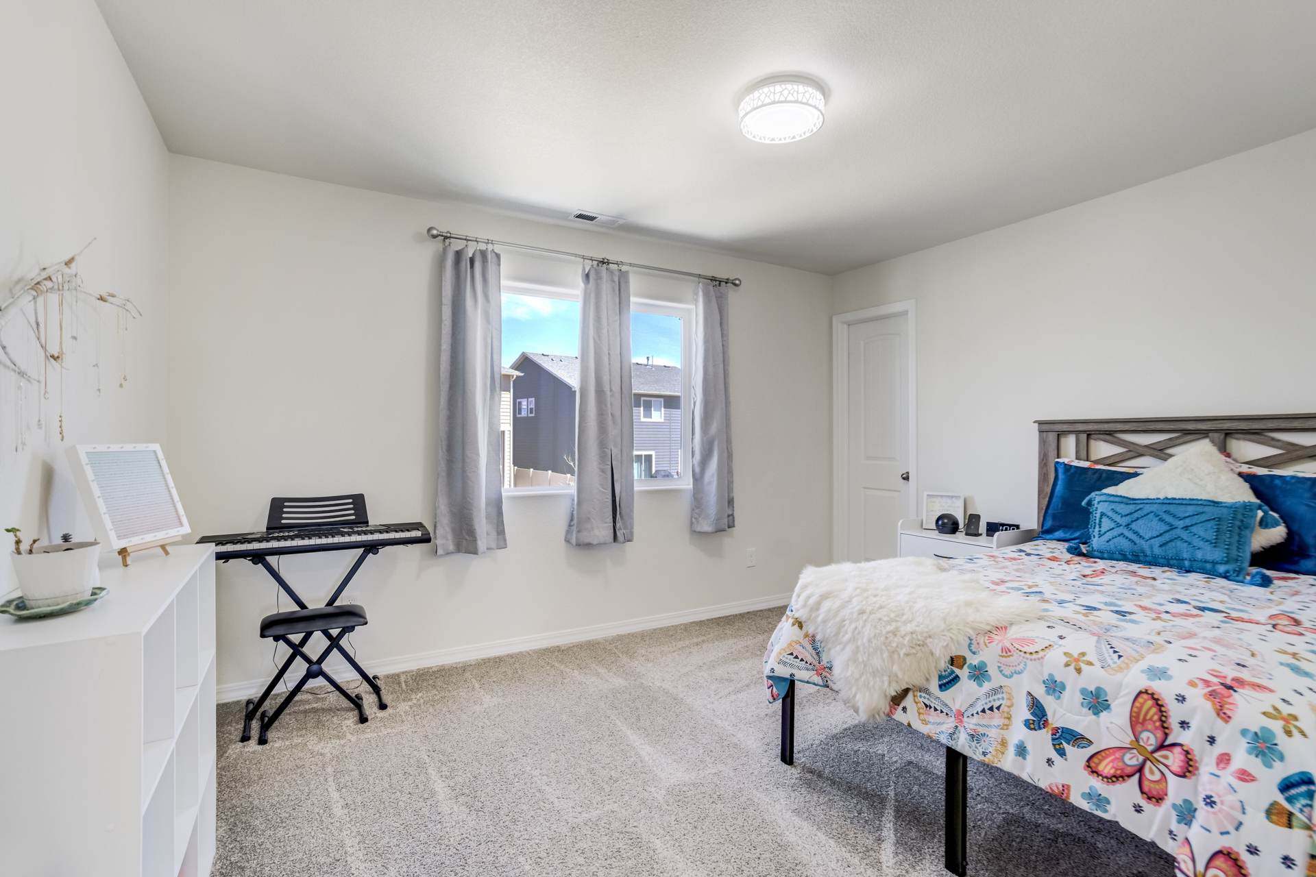 Move-In Ready Home with Backyard Oasis, Hot Tub & Upgrades! This stunning 5-bedroom, 3-bath home features a spacious open floor plan, and an upper-level loft—designed for flexible living and everyday comfort. This open-concept design feels spacious and inviting, offering plenty of room to relax or entertain. The kitchen features a large island, pantry and a walkout to the backyard—perfect for seamless indoor-outdoor living. The front main level bedroom includes shelving, making it perfect for a guest room or home office. Several light fixures have been upgraded! Upstairs, you’ll find generously sized bedrooms along with a spacious loft. The oversized primary suite features a double vanity, soaking tub, separate shower, and walk-in closet. The additional bedrooms are well-sized and share a full bath. Laundry is conveniently located on the upper level near all bedrooms. Step outside to your private backyard oasis, complete with a large pergola, private large hot tub - perfect for families or taller individuals, cement walkways, storage shed, and upgraded brickwork will add to your enjoyment. Situated on a desirable corner lot with charming front flower beds and excellent curb appeal, this home offers both beauty and function—inside and out. You are truly able to relax as you have extra assurance with this nearly new home! Additionally, this is a perfect location as it is close to parks, schools, walking trails, access to Peterson Space Force, Powers Corridor, and all the shopping.