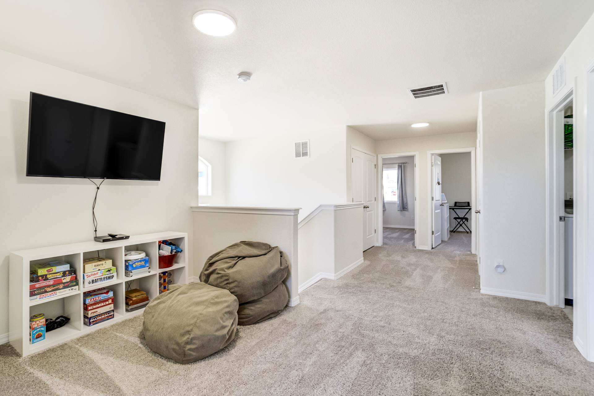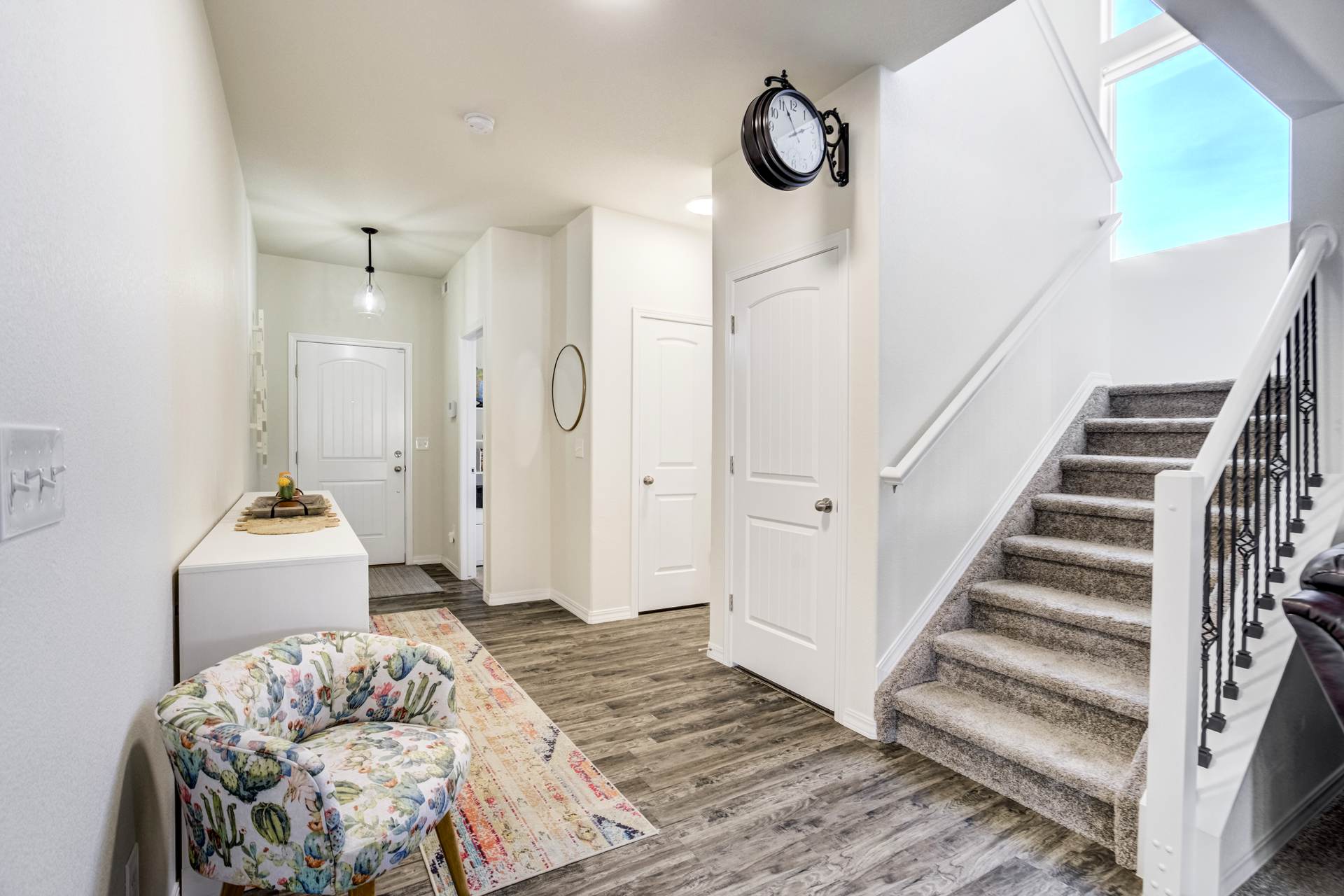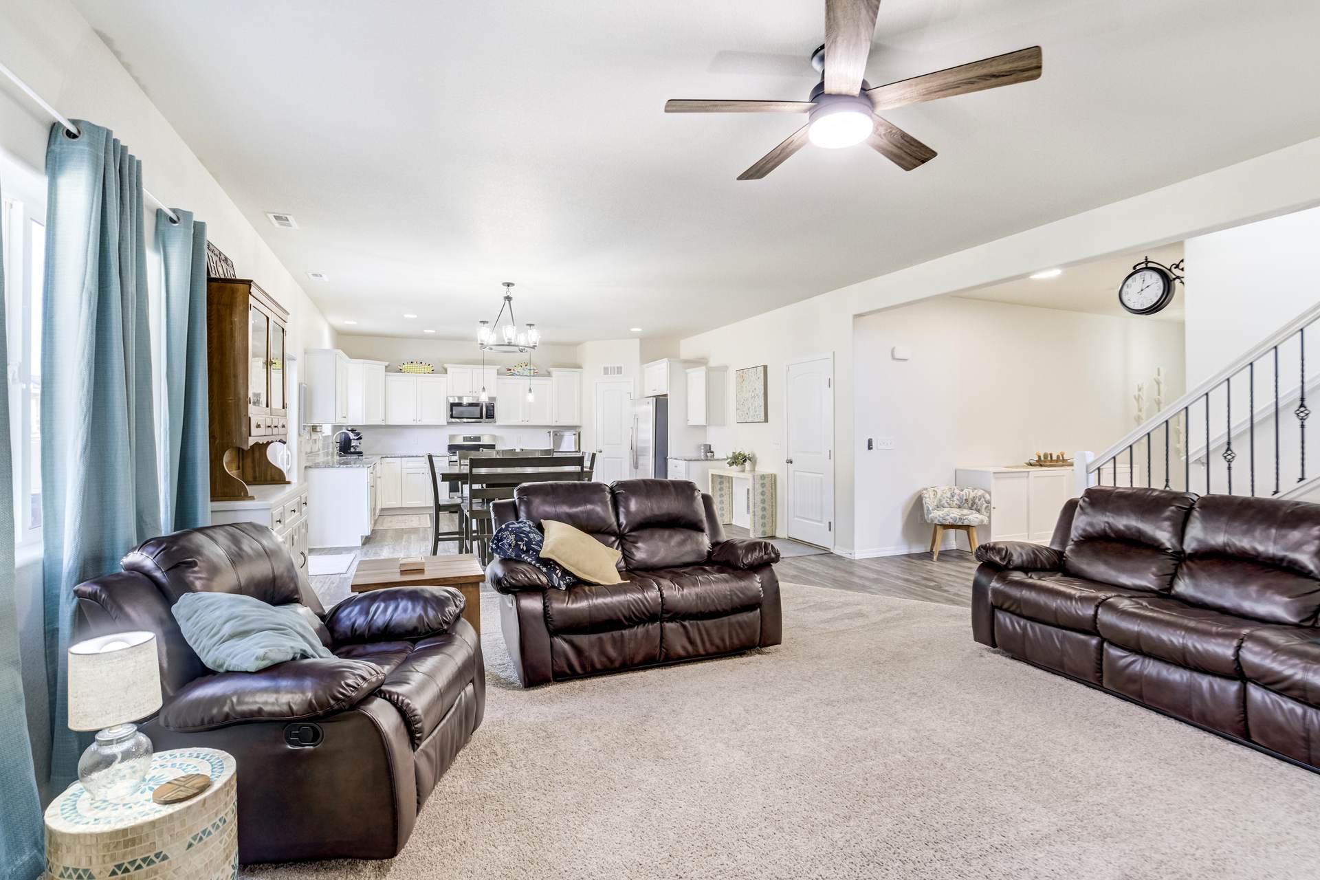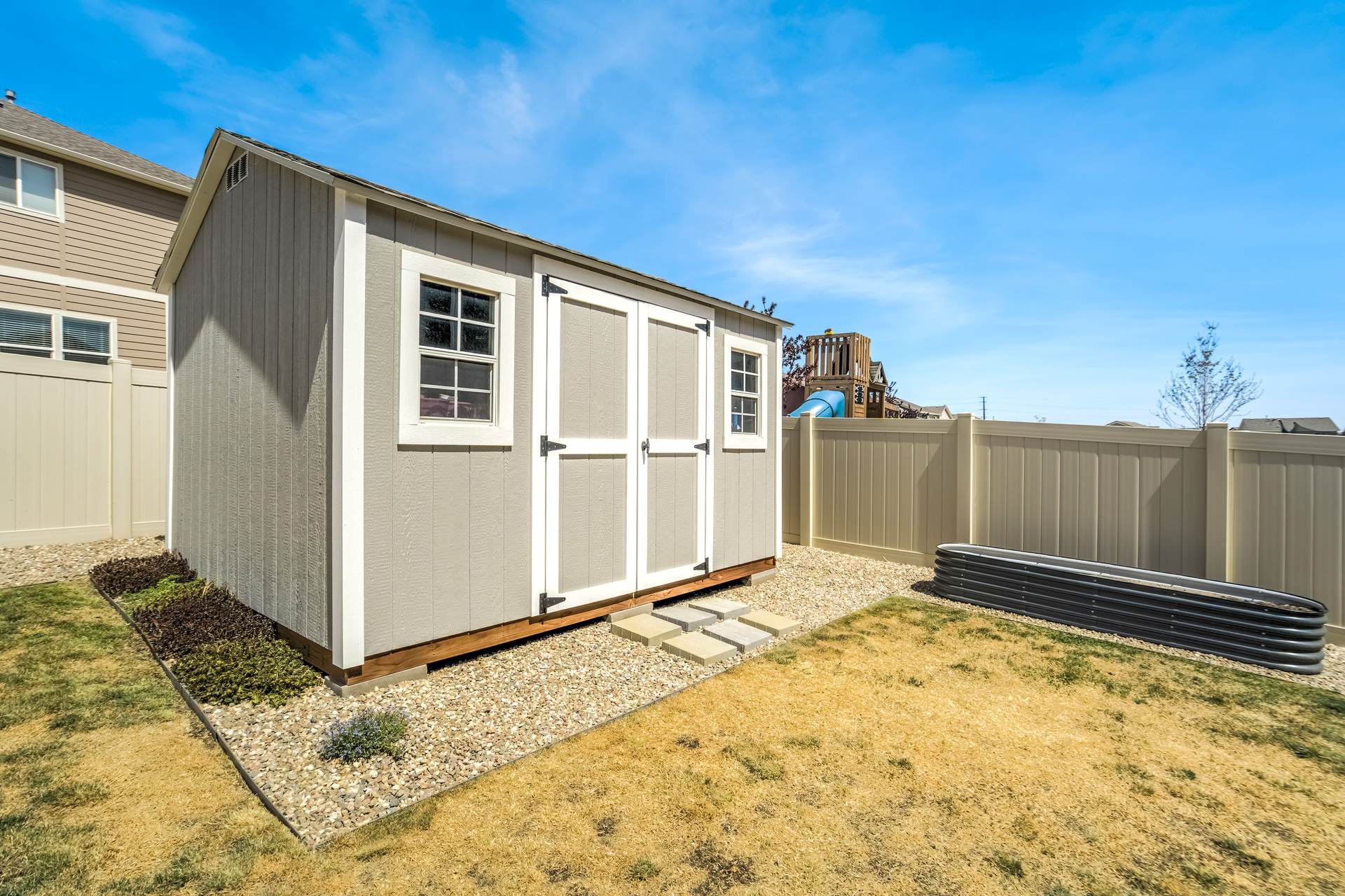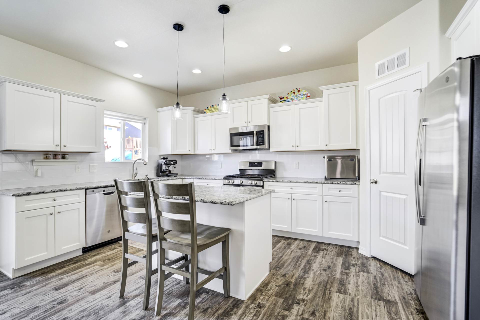 Move-In Ready Home with Backyard Oasis, Hot Tub & Upgrades! This stunning 5-bedroom, 3-bath home features a spacious open floor plan, and an upper-level loft—designed for flexible living and everyday comfort. This open-concept design feels spacious and inviting, offering plenty of room to relax or entertain. The kitchen features a large island, pantry and a walkout to the backyard—perfect for seamless indoor-outdoor living. The front main level bedroom includes shelving, making it perfect for a guest room or home office. Several light fixures have been upgraded! Upstairs, you’ll find generously sized bedrooms along with a spacious loft. The oversized primary suite features a double vanity, soaking tub, separate shower, and walk-in closet. The additional bedrooms are well-sized and share a full bath. Laundry is conveniently located on the upper level near all bedrooms. Step outside to your private backyard oasis, complete with a large pergola, private large hot tub - perfect for families or taller individuals, cement walkways, storage shed, and upgraded brickwork will add to your enjoyment. Situated on a desirable corner lot with charming front flower beds and excellent curb appeal, this home offers both beauty and function—inside and out. You are truly able to relax as you have extra assurance with this nearly new home! Additionally, this is a perfect location as it is close to parks, schools, walking trails, access to Peterson Space Force, Powers Corridor, and all the shopping.