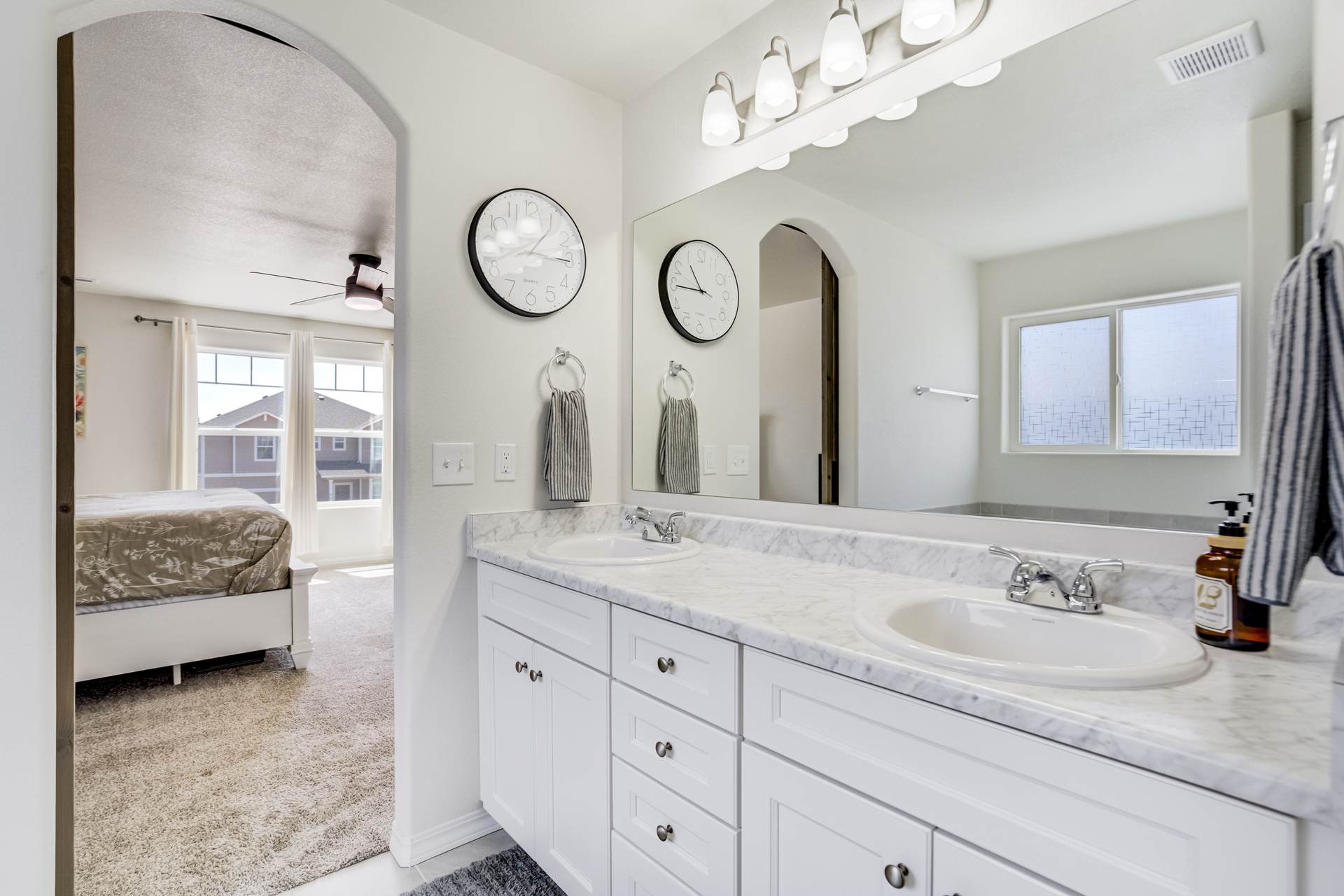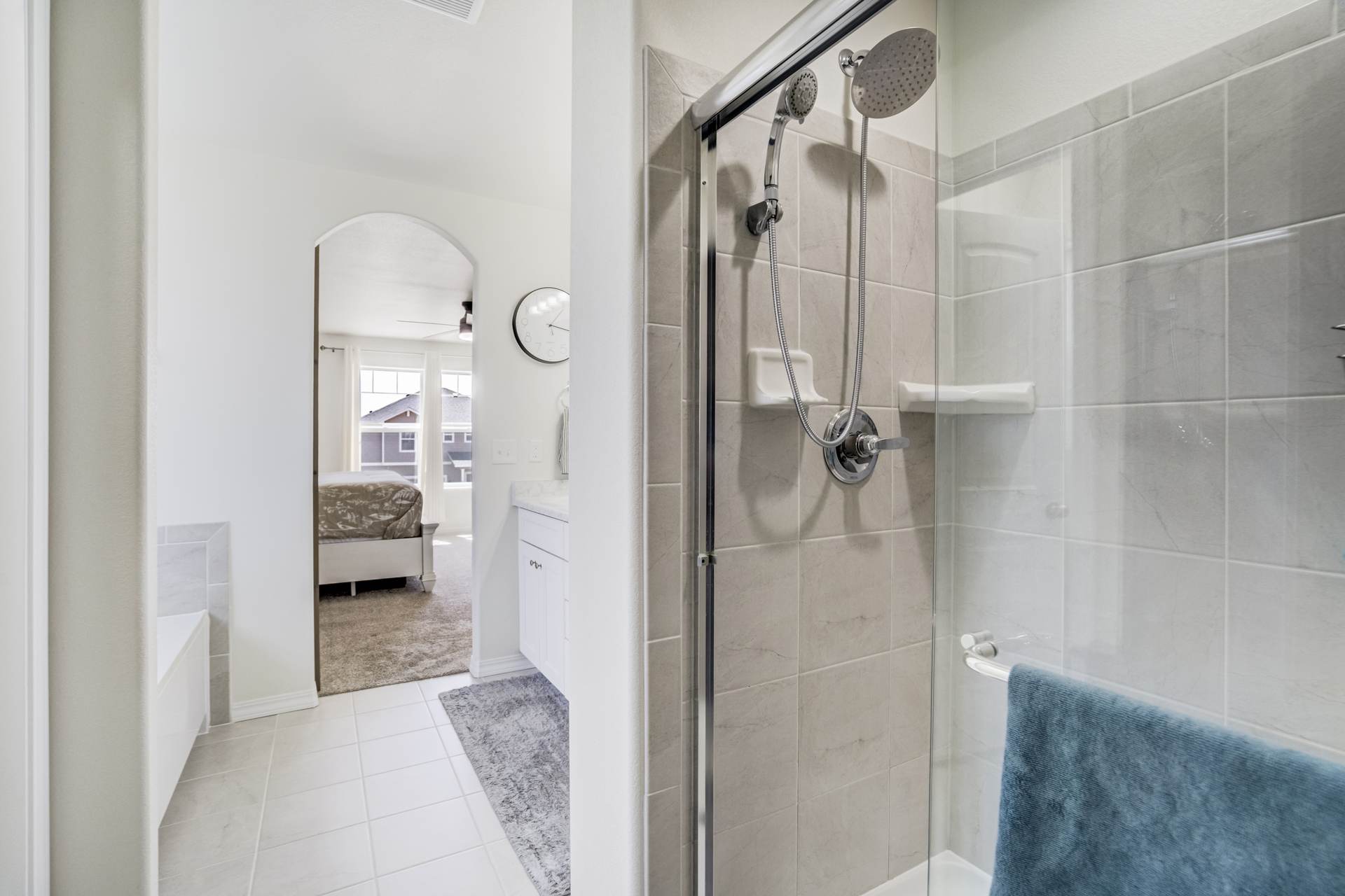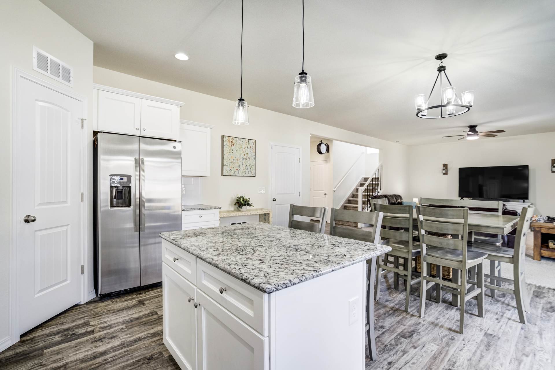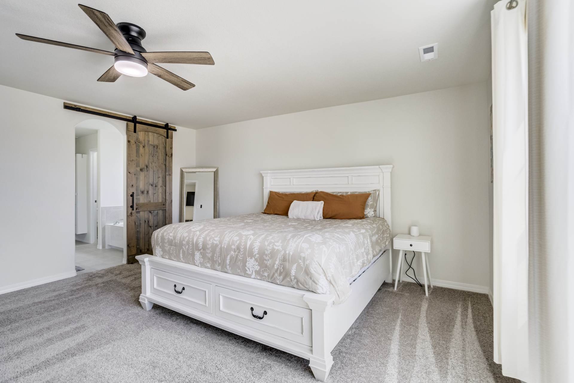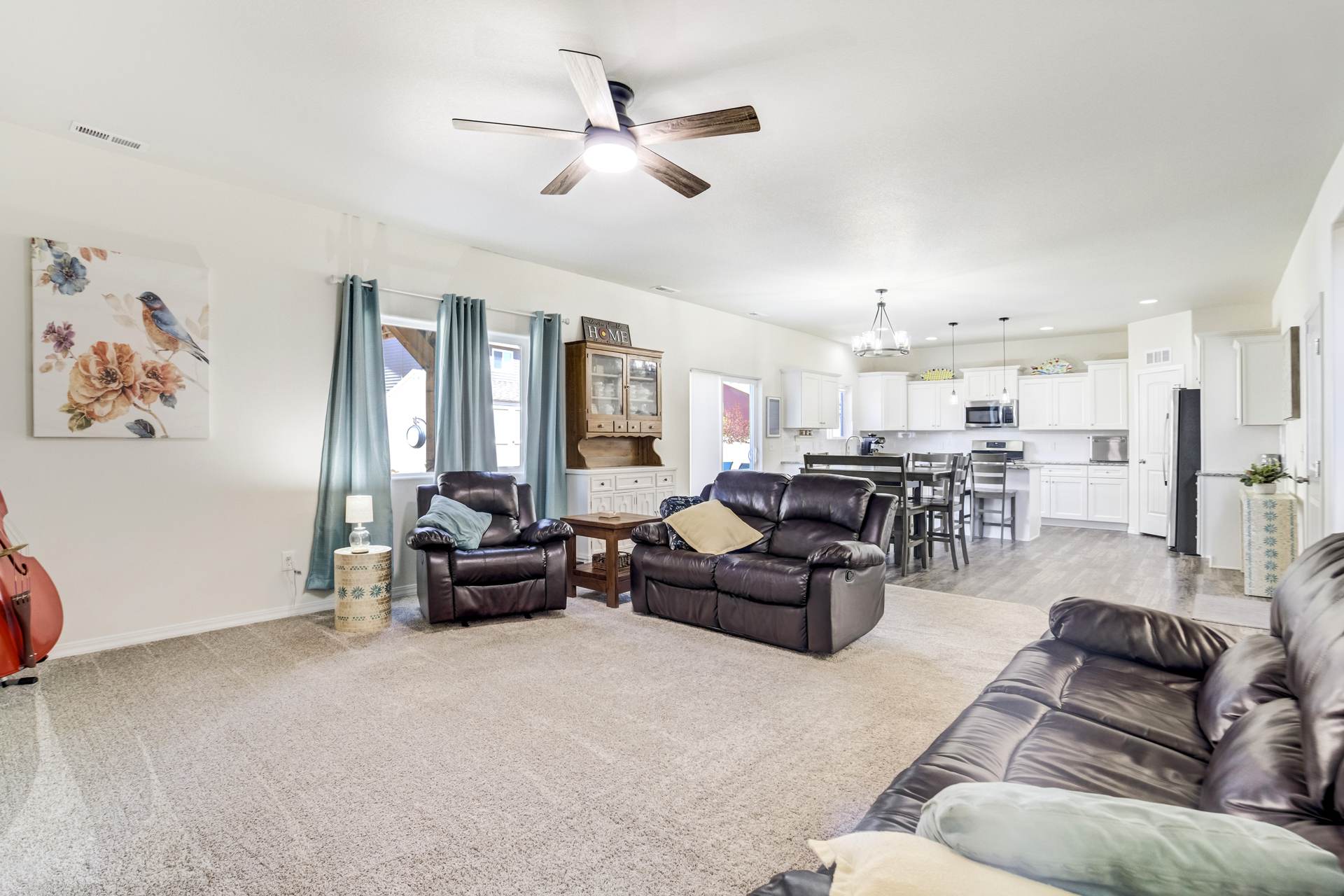 Move-In Ready Home with Backyard Oasis, Hot Tub & Upgrades! This stunning 5-bedroom, 3-bath home features a spacious open floor plan, and an upper-level loft—designed for flexible living and everyday comfort. This open-concept design feels spacious and inviting, offering plenty of room to relax or entertain. The kitchen features a large island, pantry and a walkout to the backyard—perfect for seamless indoor-outdoor living. The front main level bedroom includes shelving, making it perfect for a guest room or home office. Several light fixures have been upgraded! Upstairs, you’ll find generously sized bedrooms along with a spacious loft. The oversized primary suite features a double vanity, soaking tub, separate shower, and walk-in closet. The additional bedrooms are well-sized and share a full bath. Laundry is conveniently located on the upper level near all bedrooms. Step outside to your private backyard oasis, complete with a large pergola, private large hot tub - perfect for families or taller individuals, cement walkways, storage shed, and upgraded brickwork will add to your enjoyment. Situated on a desirable corner lot with charming front flower beds and excellent curb appeal, this home offers both beauty and function—inside and out. You are truly able to relax as you have extra assurance with this nearly new home! Additionally, this is a perfect location as it is close to parks, schools, walking trails, access to Peterson Space Force, Powers Corridor, and all the shopping.