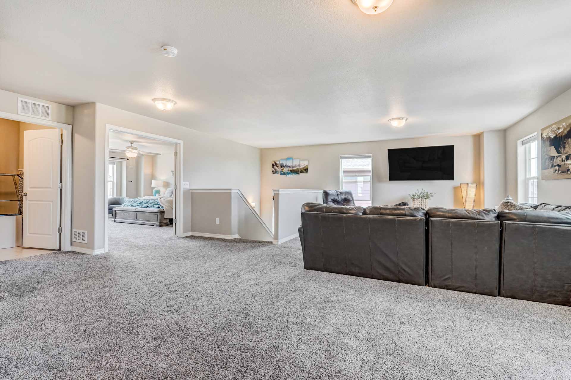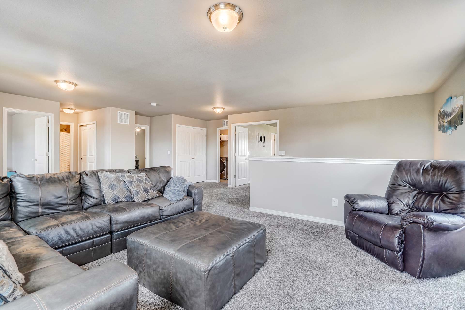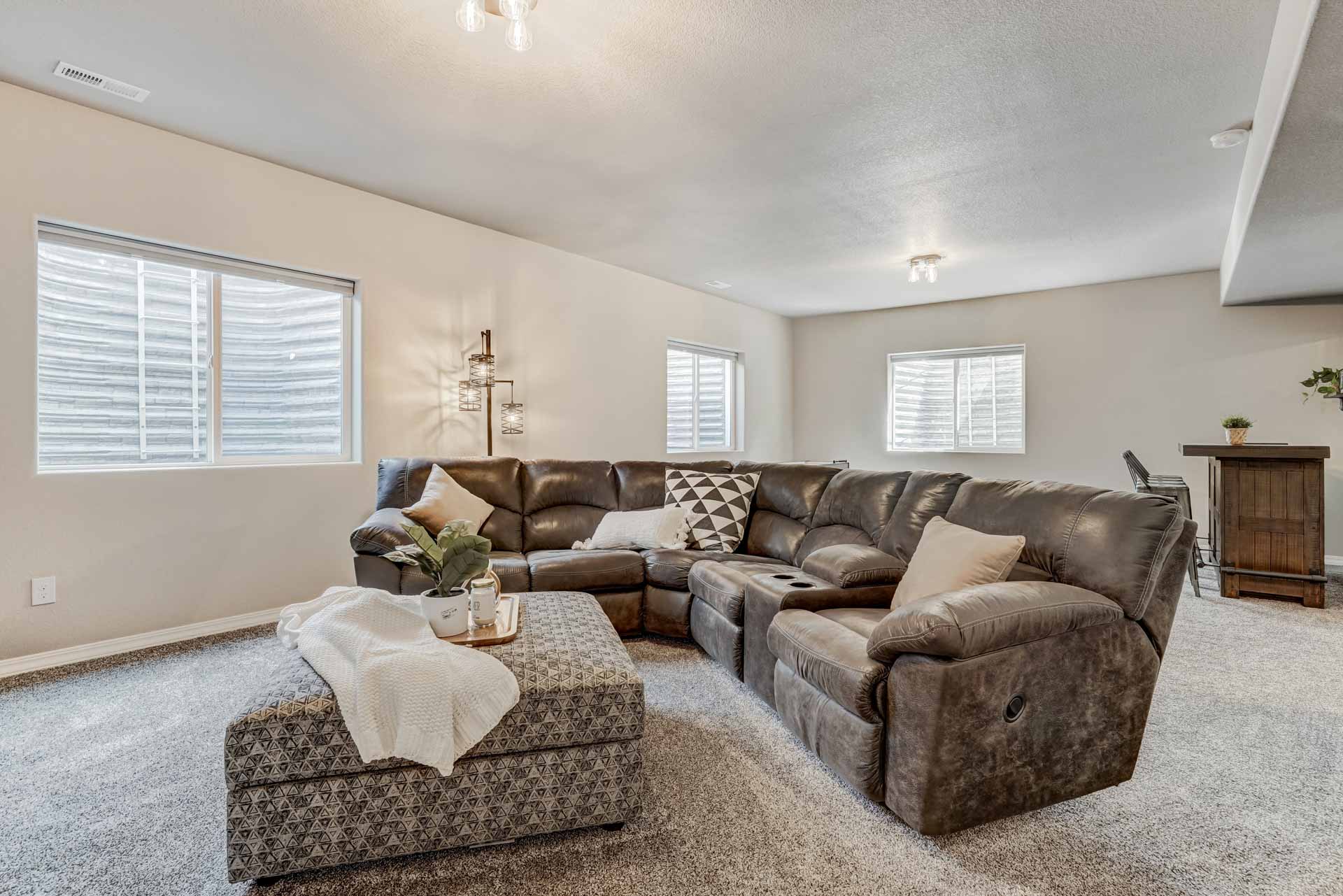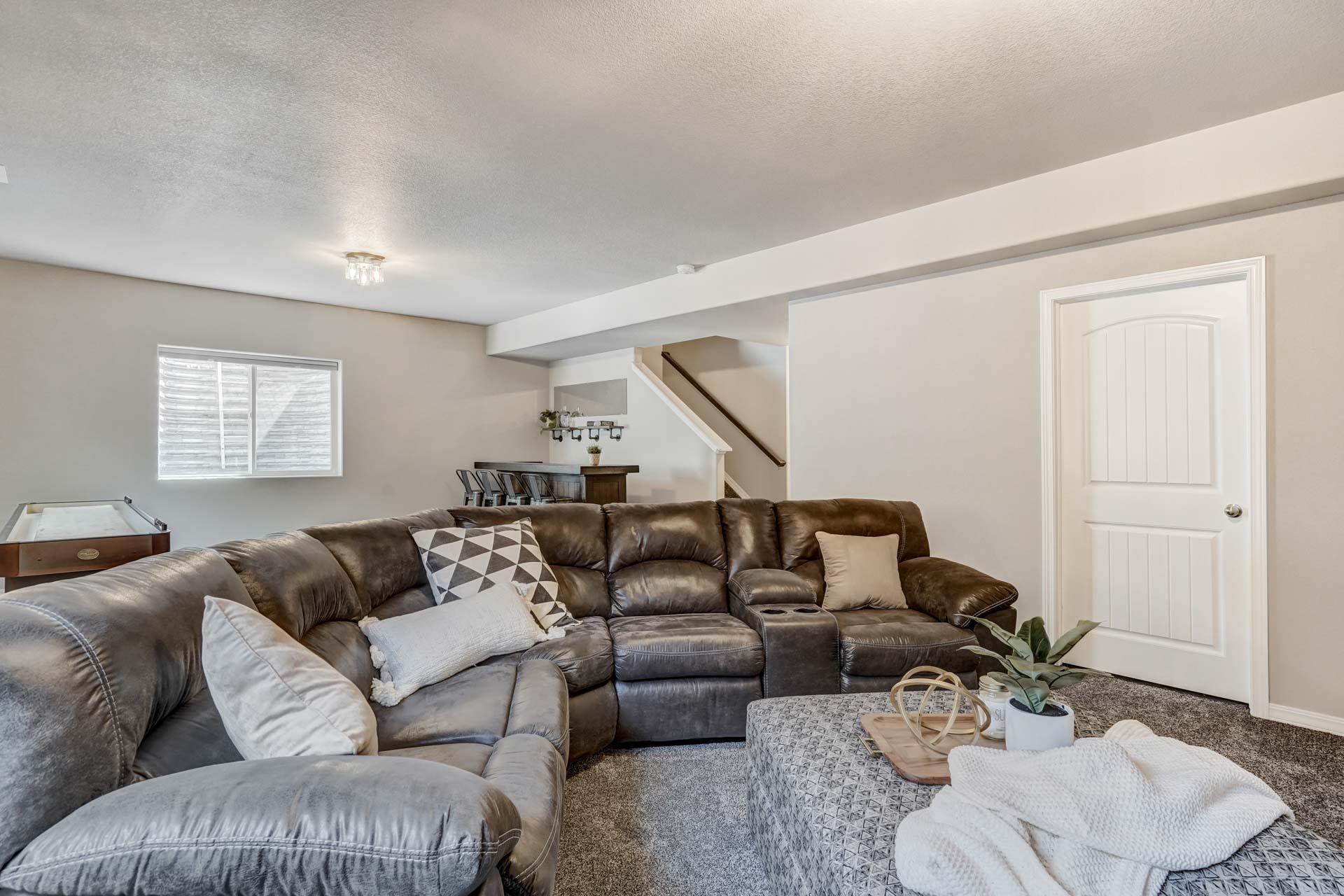 Welcome! This beautiful home offers all the comforts and oversized spaces your family is craving! From the large open floor plan of the main level to the oversized master suite and loft upstairs, there's no shortage of rooms to hang out in. The double doors at the entrance of the home give into a comfortable, large, and quiet office space, while the finished basement gives the family yet another area to entertain family and friends. The kitchen has a large island which opens onto the formal dinning space as well as a walk-in pantry. Upstairs, the sprawling Master Suite has all the space you need to relax, along with a 5-piece master bath and walk-in closet. With walk-in closets in all the upstairs bedrooms, an additional walk in closet off the loft area, a large upstairs Laundry Room, and a storage shed in the backyard, this home provides all the storage you'll need. Conveniently located close to shopping areas and restaurants, the neighborhood also offers trails and playgrounds to explore close to home!