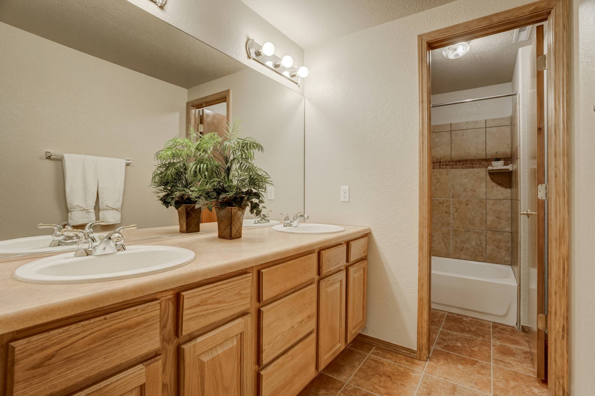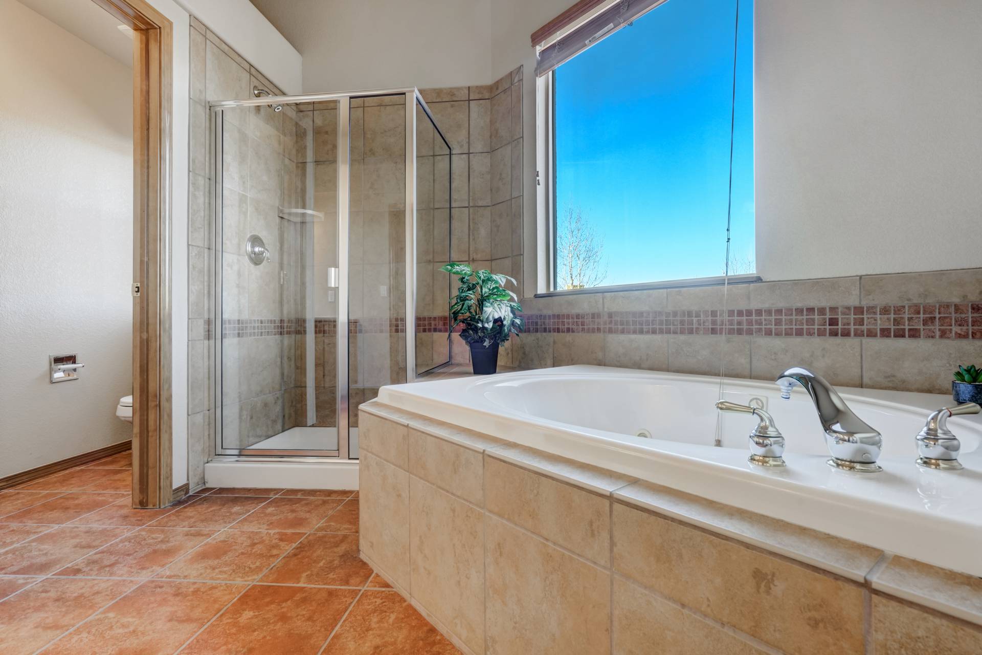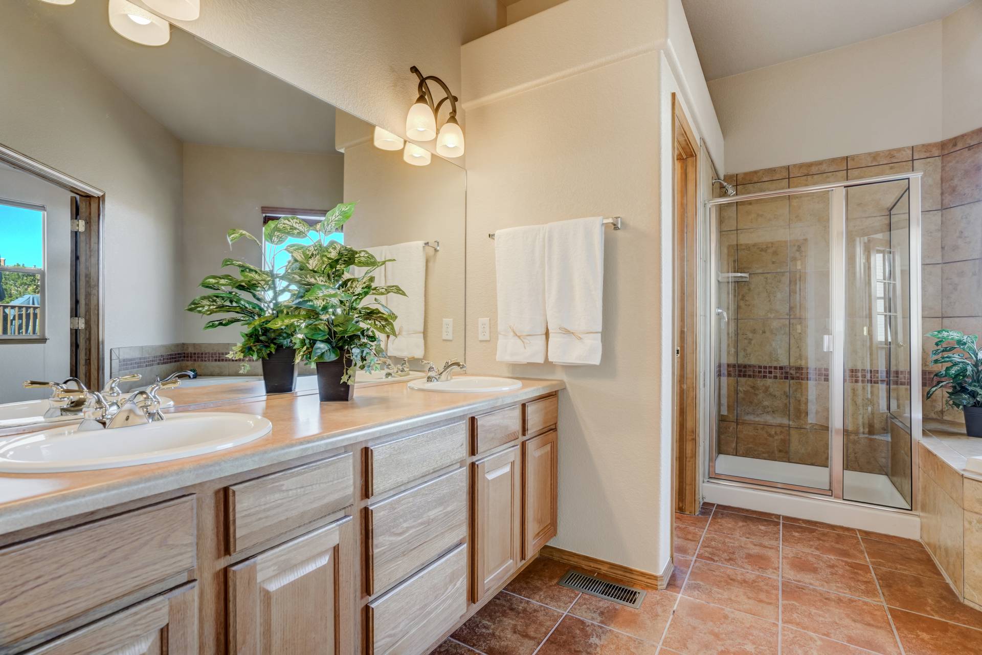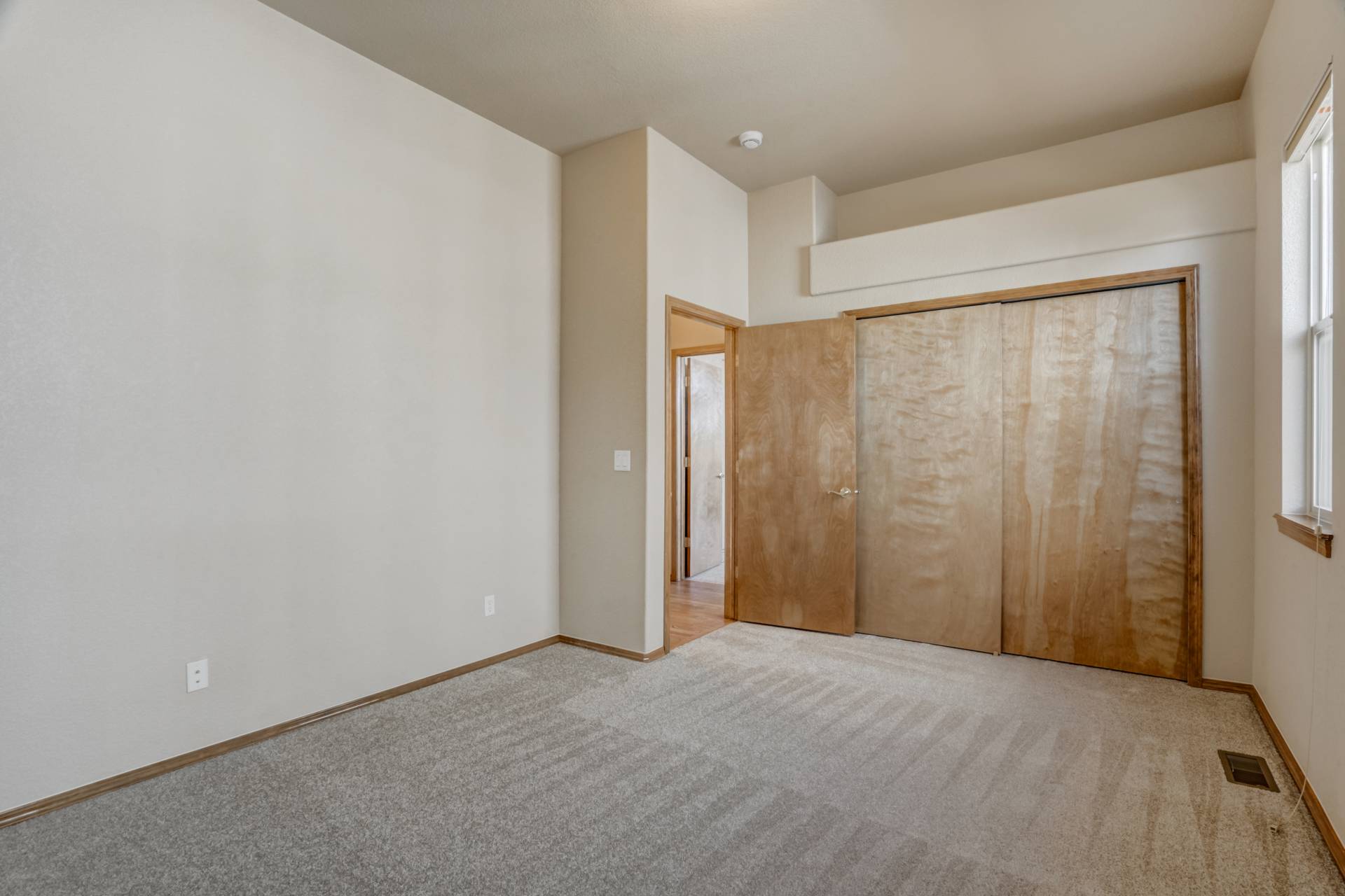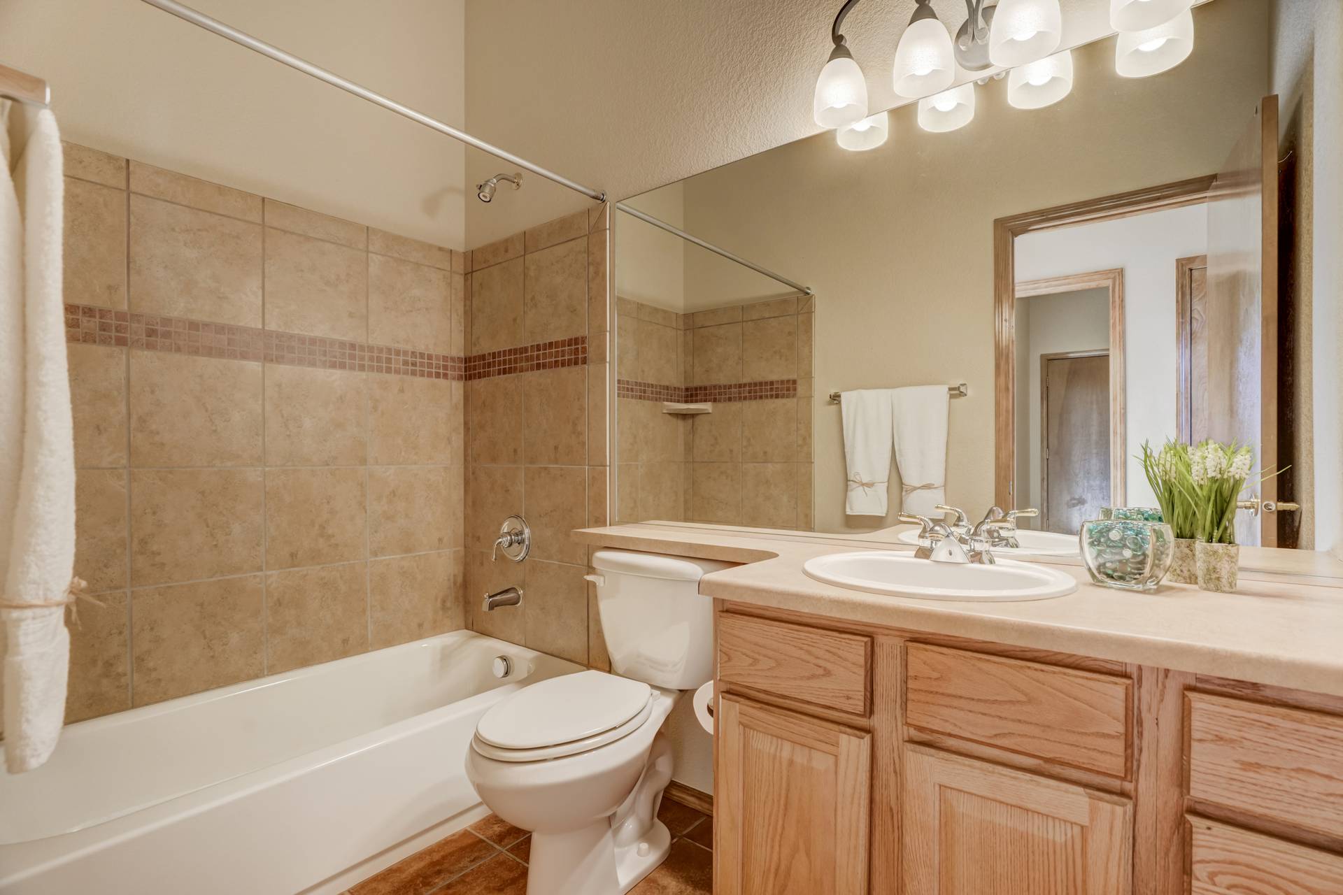 Superb Pikes Peak VIEWS from this ranch floor plan with walkout basement! Home is open, bright and inviting with plenty of windows, high ceilings and LED lights throughout. Gleaming hardwood floors flow from the entry through the living room, hallway, dining room, family room and kitchen—freshly refinished January 2025. Plus, NEW carpet, NEW furnace and NEW air conditioner—January 2025. Views from Family Room, Kitchen, 15x10 Deck, Rec Room and Master Bedroom. Family Room and Dining Room share a see-through fireplace for a cozy home feel. The Living Room is a flex space, perfect for sitting room, office, formal living, play room, etc. Spacious rooms throughout the home, lots of kitchen cabinets and a nice-sized pantry. The huge L-shaped Rec Room features a second fireplace, walkout to 10x9 concrete patio and backyard, garden level windows and a large 14x9 wet bar area with tile countertops and tile floor. All the bedrooms are spacious, and three feature large walk-in closets. Master Bedroom with plenty of windows, walkout to private balcony, 7x8 cedar-lined walk-in closet, and adjoining 5-piece bath with tile floor, double vanity, soaking tub and separate shower. Recently freshened landscaping. Low-maintenance stucco siding. Additional features include modern-design wrought iron spindles, new (2025) smoke and CO detectors, sump pump and plenty of storage with storage room and large closets. Great location just one block from Wolf Ranch Dog Park and Recreation Center Swimming Pool (membership access with extra fee). Academy District 20 schools. Great property!