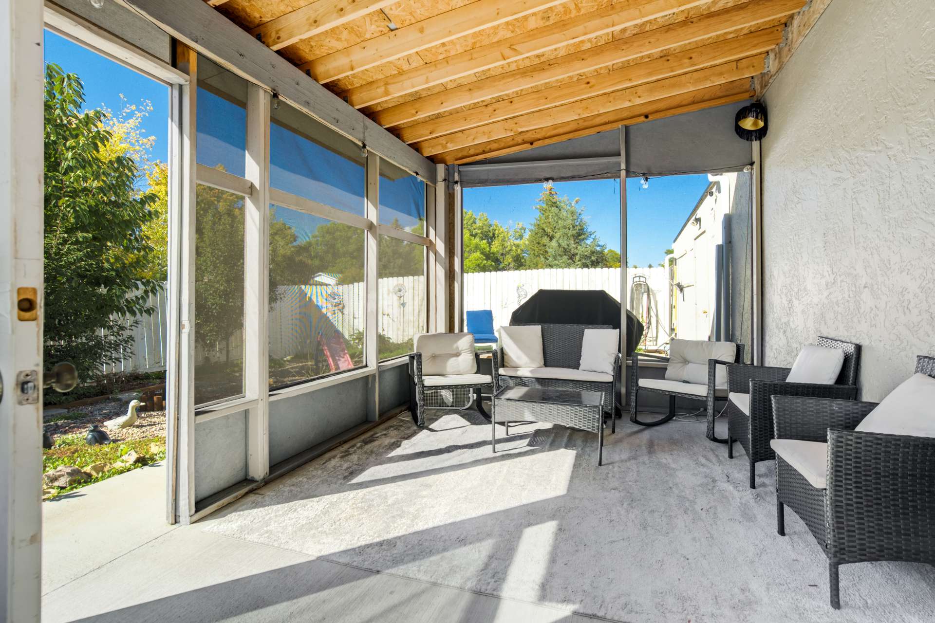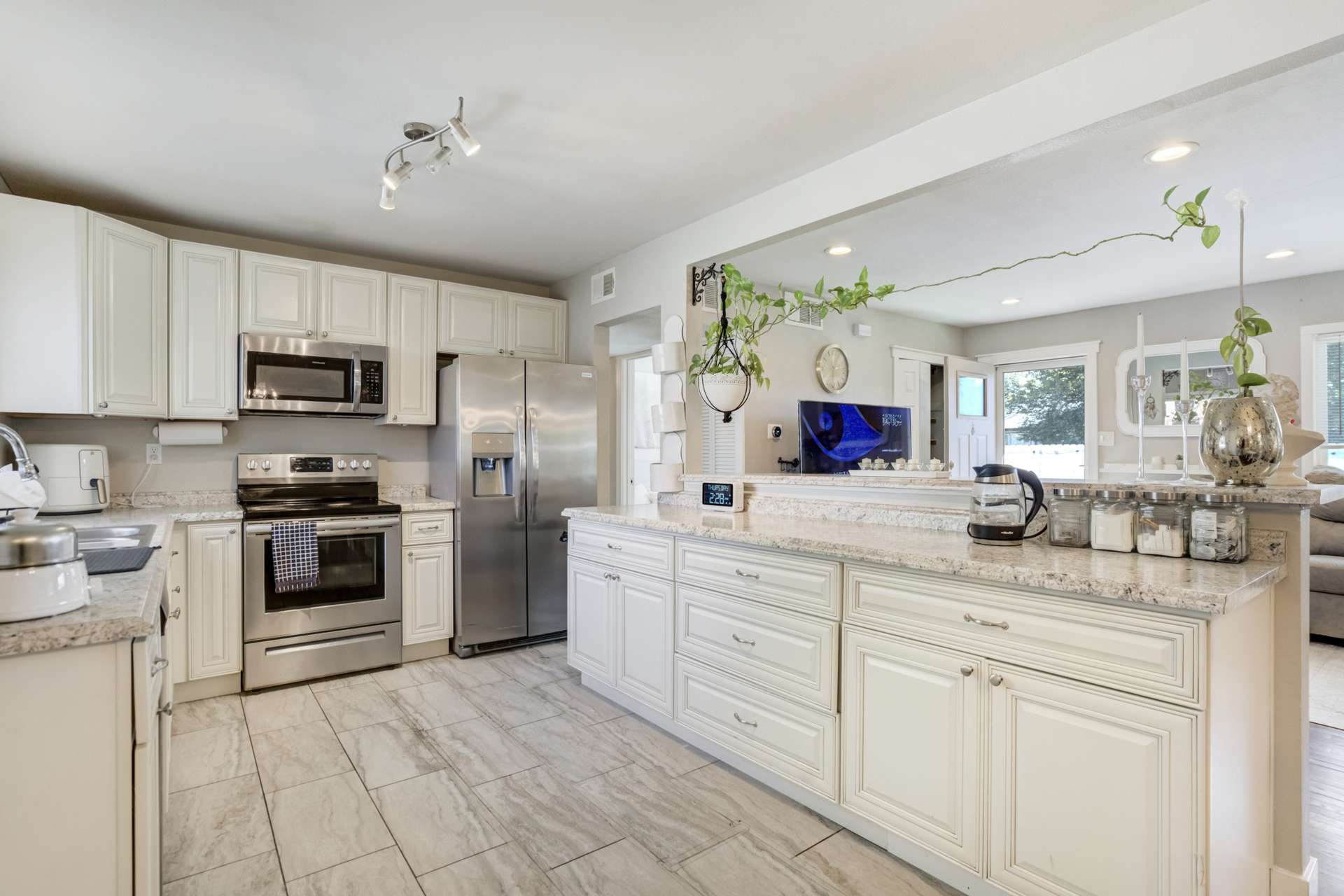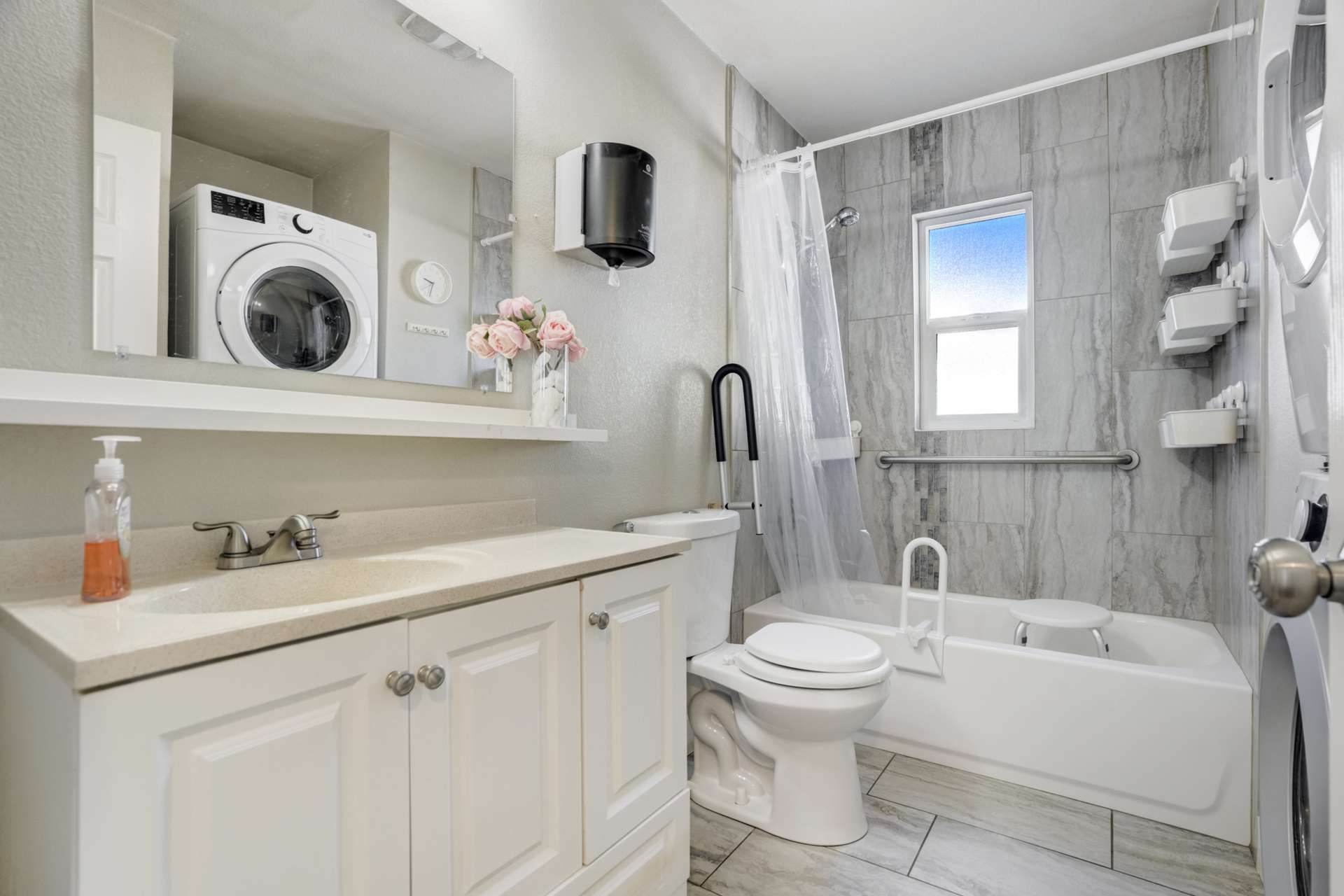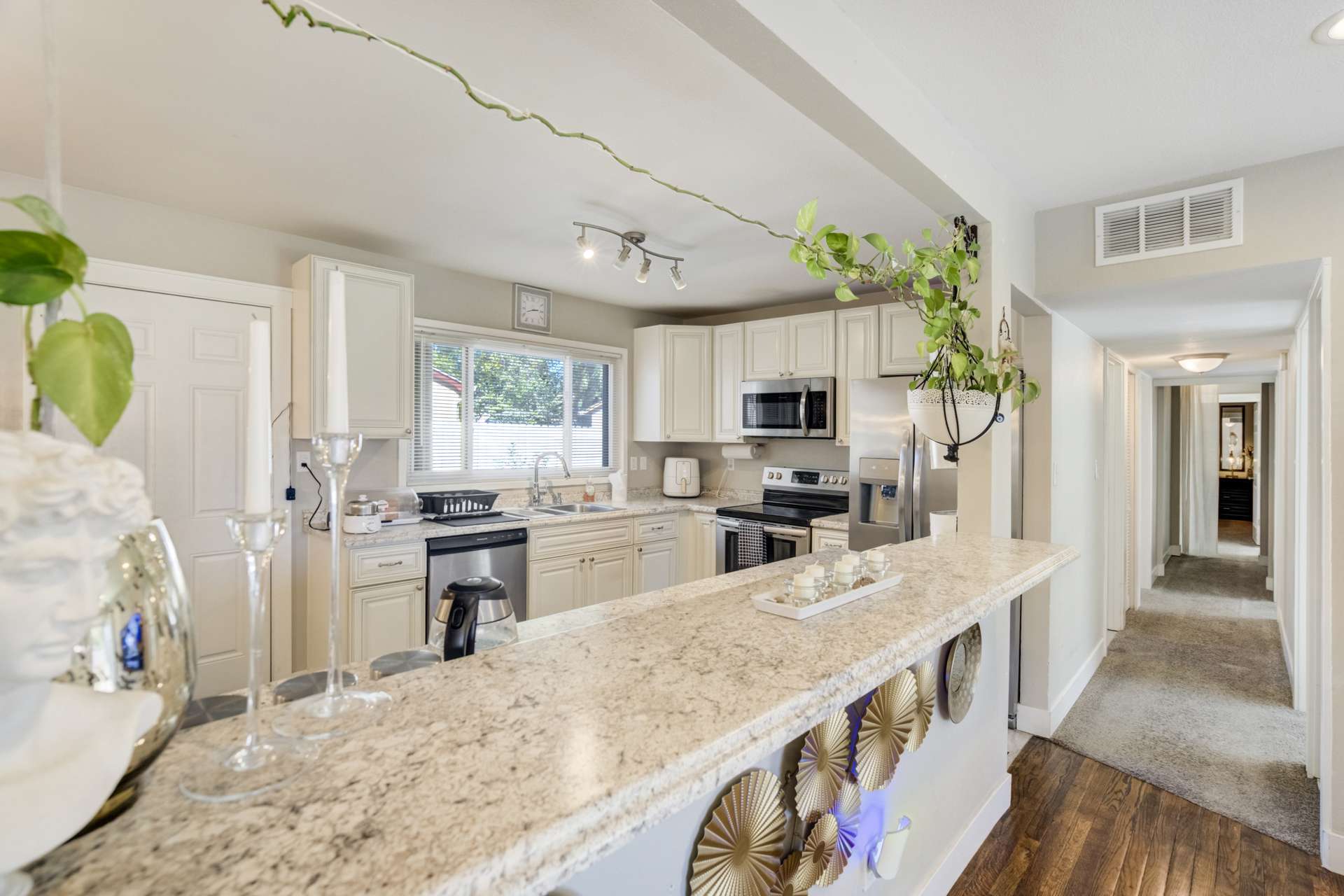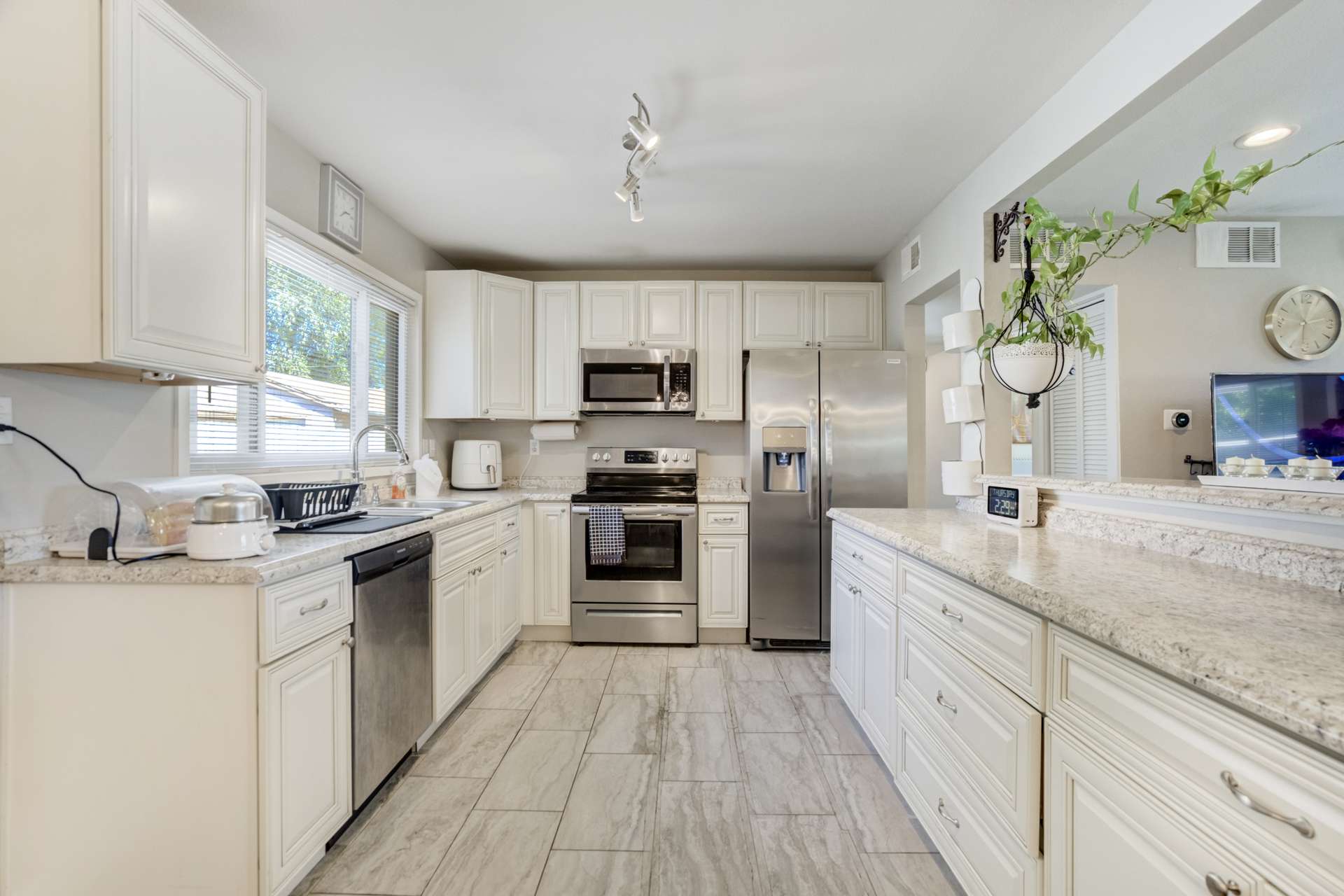 Welcome Home to this beautiful, accessible, private, main-level living gem! Situated on a large corner lot, the fence in front of the home gives you the privacy you deserve.. Enter the home into the spacious and open living room that connects into the gorgeous kitchen with stainless steel appliances and cabinet space for days.. All 5, yes 5! Bedrooms are down the hallway, ending at the master with adjoining bathroom and walk in closets.. Enjoy central a/c throughout the home PLUS a window a/c unit in the master bedroom for those extra hot days.. Stacked washer and dryer (included!) in the hallway full bathroom.. The entire home is wheelchair accessible with wide hallway and doors, roll in shower in the master, handrails, ramps, and more.. Additional mudroom/storage room has been built off the entrance into the kitchen, with two entries into the backyard.. Speaking of backyard, it's your own private oasis! The garden features mint, parsley, apples, cherries, pears, and more.. Lay out in the sun chairs, entertain at the grill, or relax in your very own Sunroom! And guess what? ALL furniture you see is included in the sale.. Yes - couches, beds, televisions, outdoor furniture, grill, can all stay with the home! There are also 8 Wi-Fi enabled security cameras for your protection.. What are you waiting for?? Run, don't walk, to schedule your showing today!