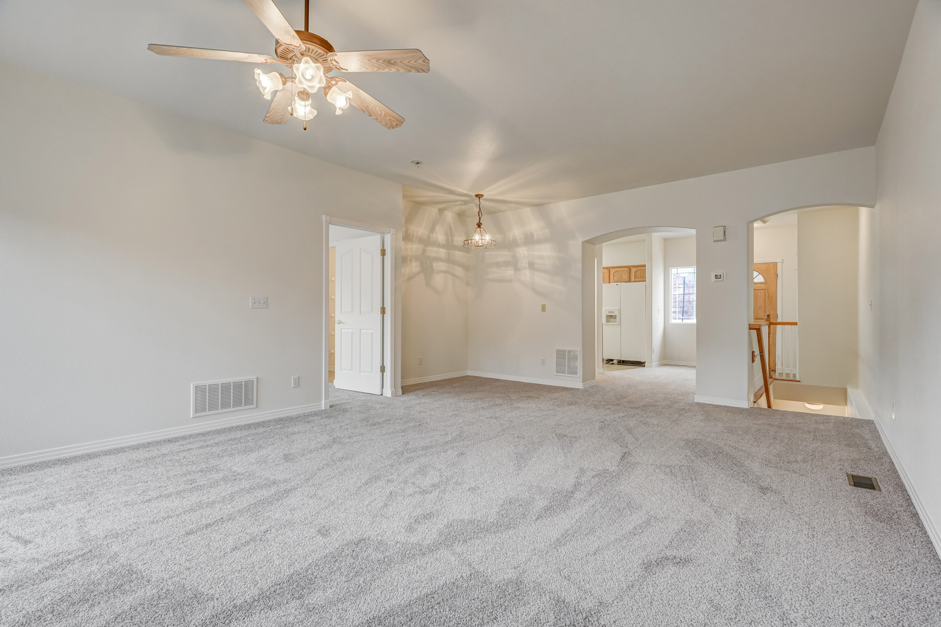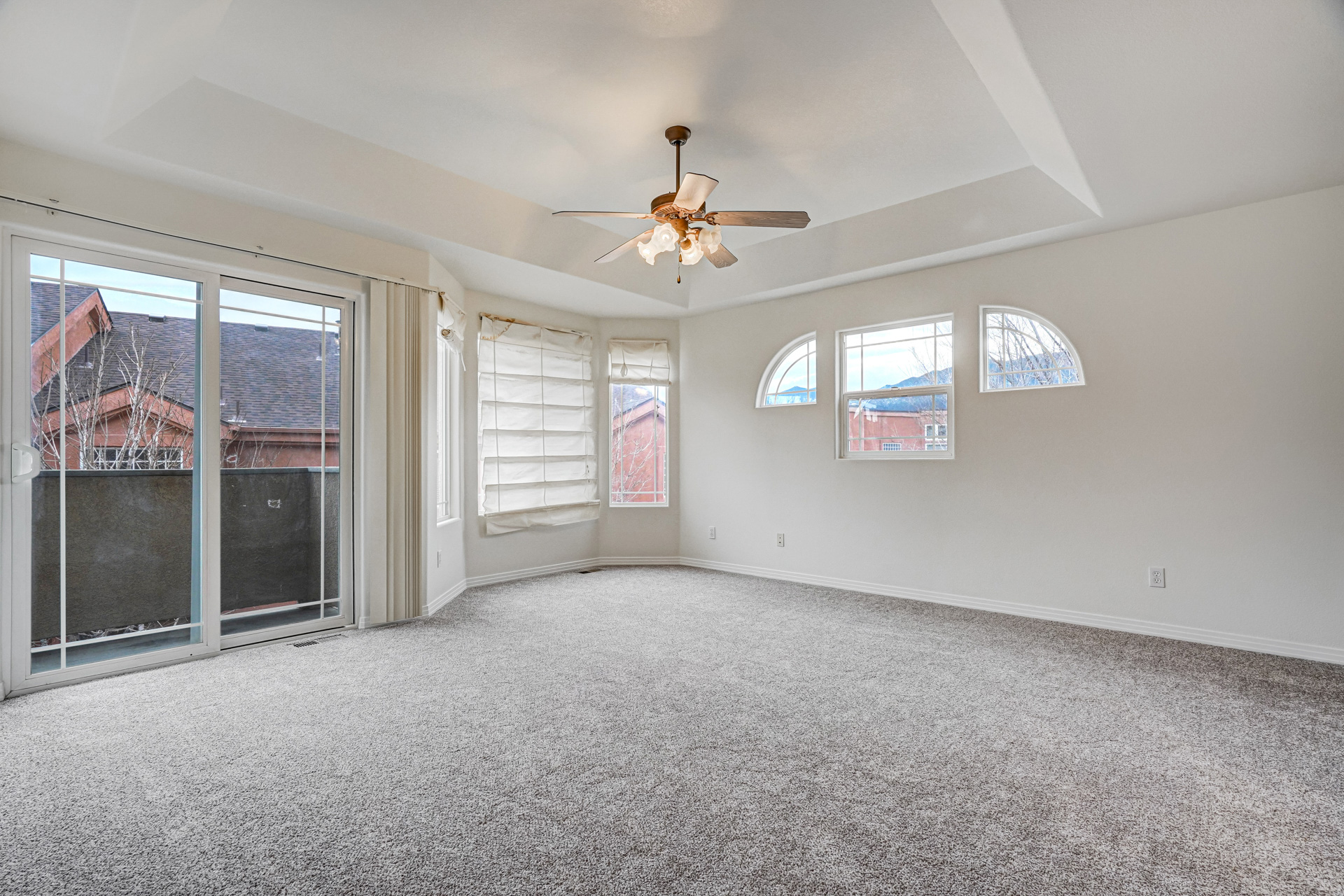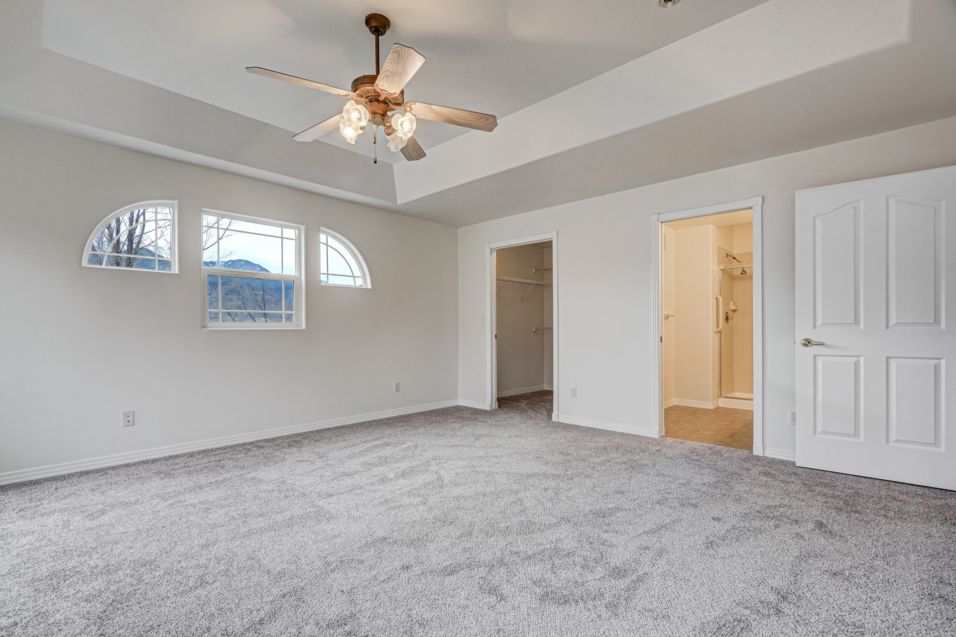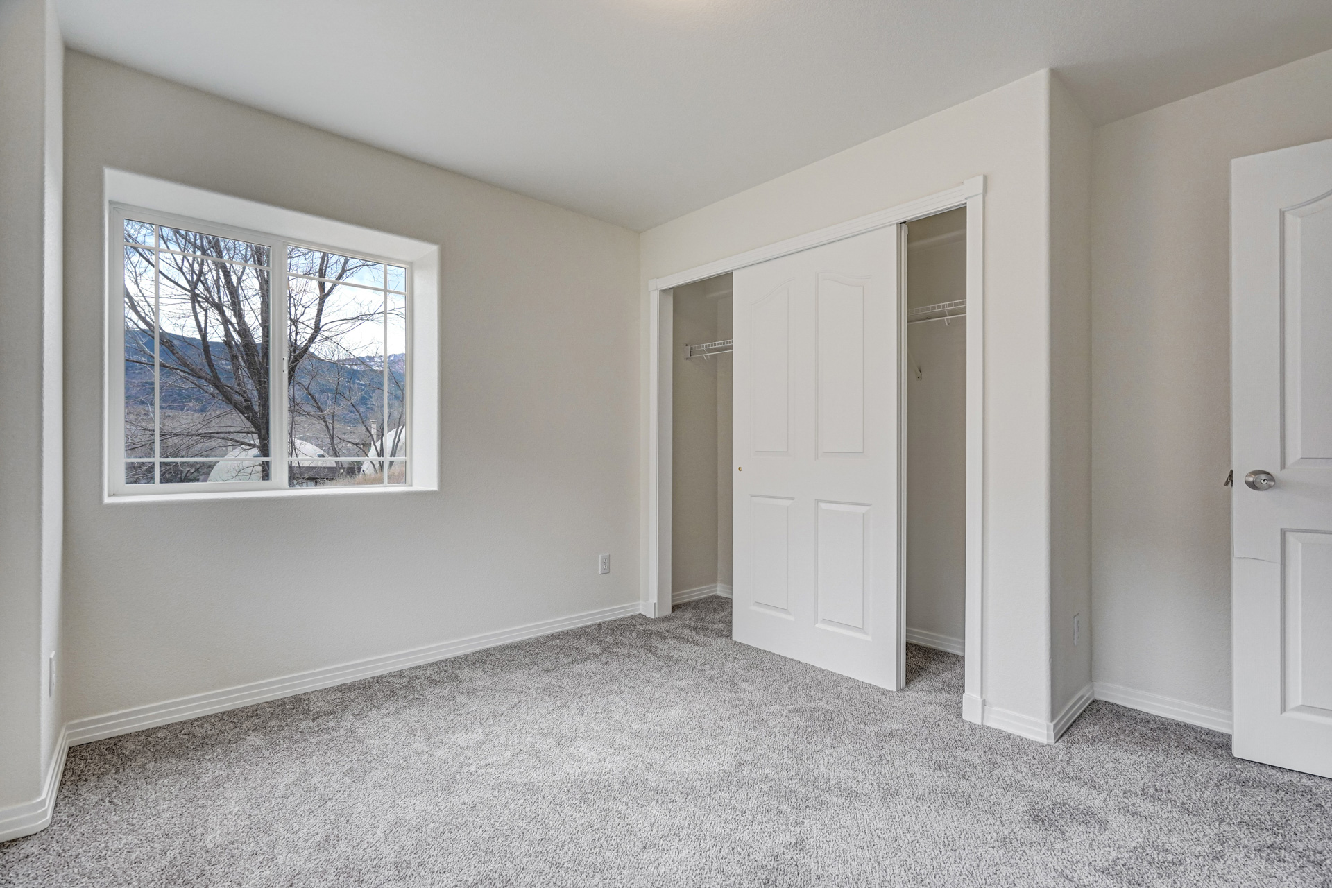 Upgraded luxury town home located in Madison Ridge Heights on the west side. Perched on top of the hill capturing incredible mountain views, striking the perfect blend of comfort & elegance. Walking distance to Thorndale Park, easy access to historic Old Colorado City shopping, dining & entertainment. Ground level entry opens to landing with coat closet. From here you can access the kitchen & great room. All new carpet and interior paint throughout the entire home! The light & bright great room features gas fireplace w/tile surround, south facing windows, & walk-out access to deck. The natural light continues in the kitchen. Enjoy stylish laminate countertops, solid wood cabinets, tile backsplash, includes appliances, large walk-in pantry & newer laminate flooring. The dining space has chandelier lighting & can accommodate large tables. The main lvl primary suite is loaded w/amenities & panoramic mountain views, walk-out to balcony, tray ceiling w/fan, bay window, walk-in closet, adjoining private bath w/ double vanities, large shower & vinyl tile floor. Head down to the walk-out basement with oversized family room boasting new carpet & paint. The 2 lower-lvl bedrooms both have views of the mountains, good sizes, & easy access to hallway full bath. Lower-level laundry for convenience. Outside the backyard has room for a grill & maintenance free landscaping. Relax & enjoy the proximity to the outdoors. Bonus items incl; window coverings, covered parking & more. See it today!