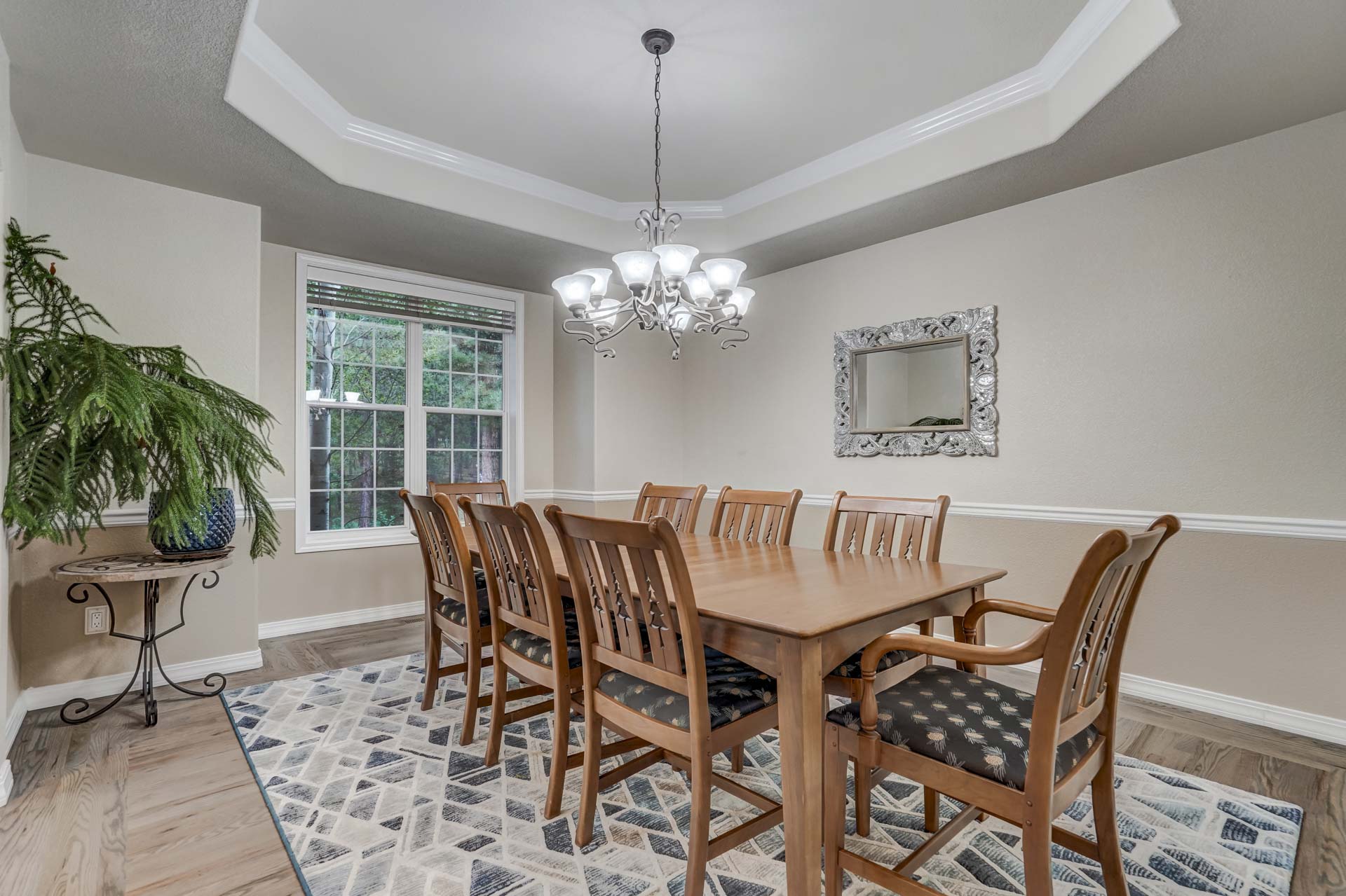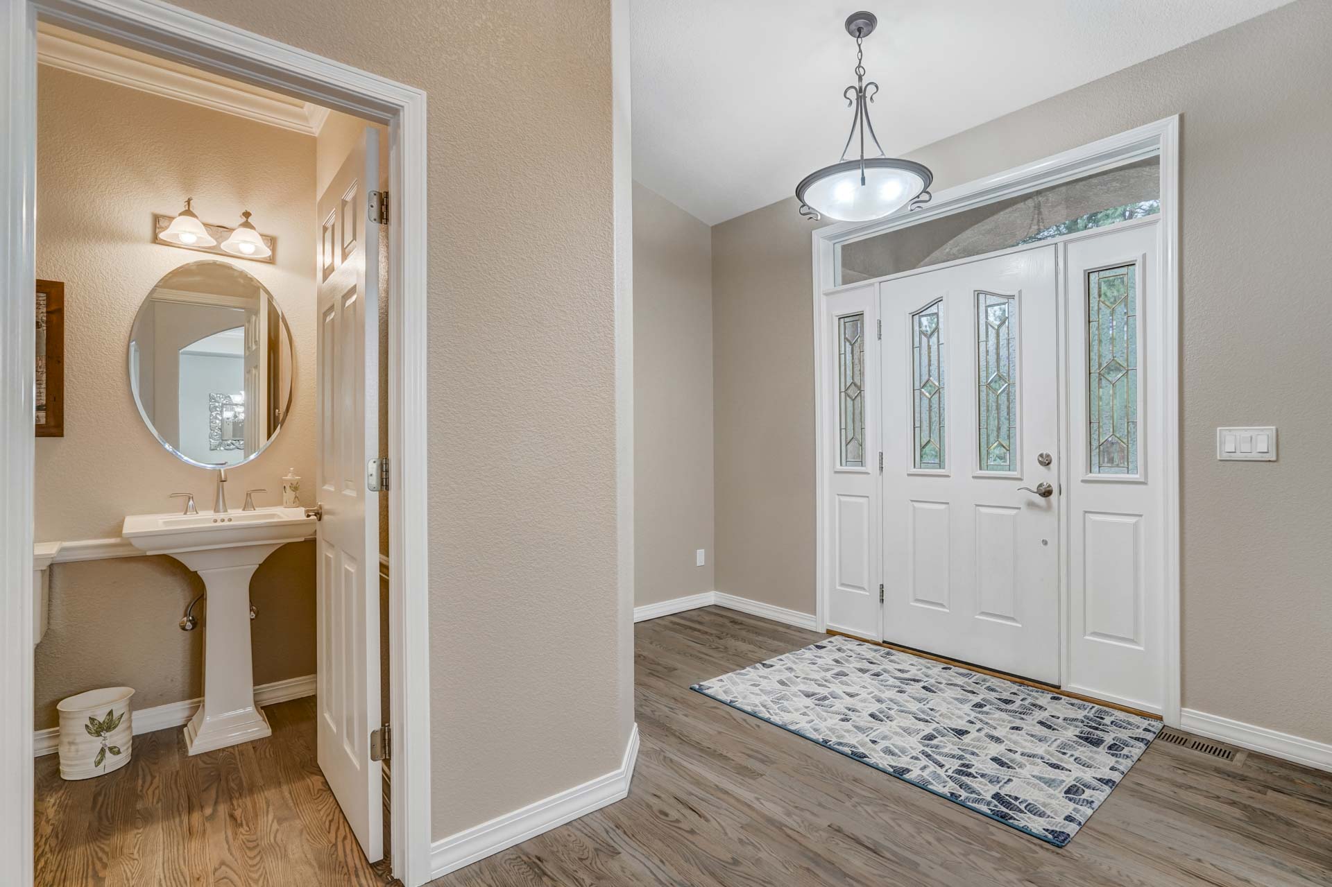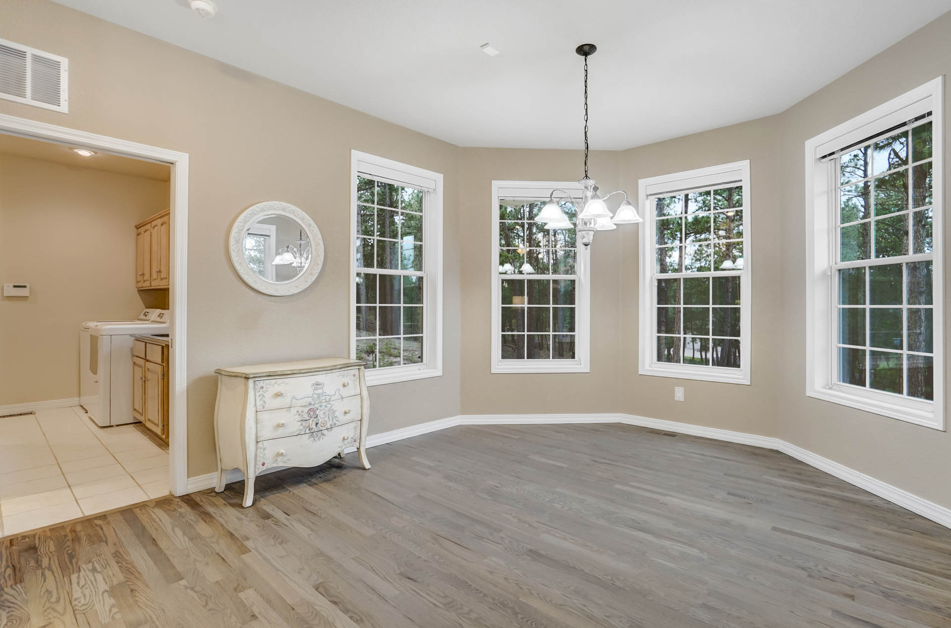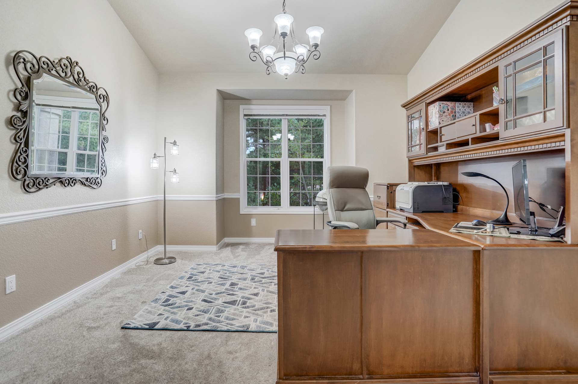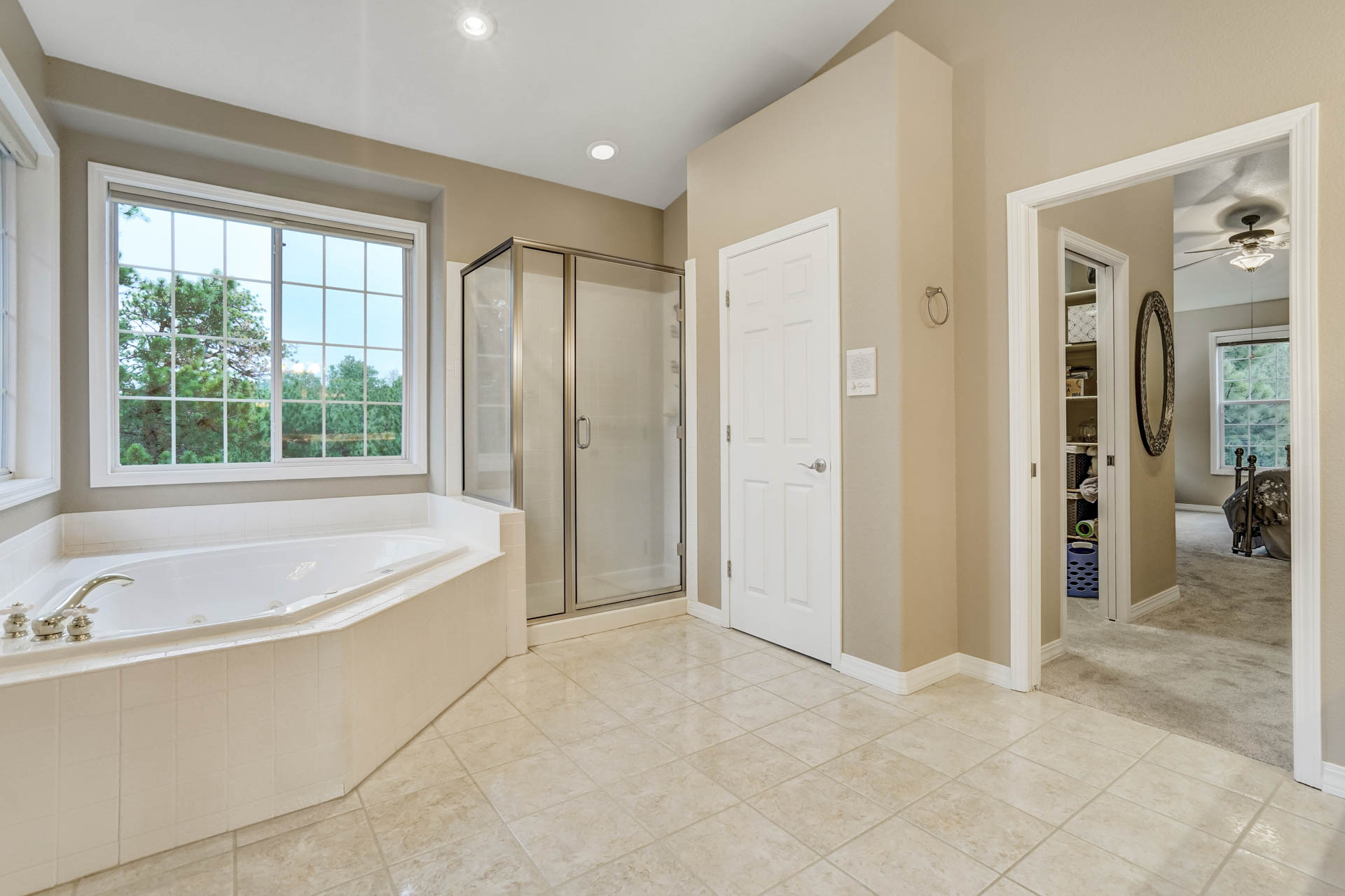 Stately updated rancher perfectly positioned on 2.5 acres with mature Ponderosa Pines in the sought after community of Higby Estates! Convenient Monument location with quick access to I-25, Highway 83 and the amenities of Monument and Northgate. Stucco pillars greet you as you arrive at the property. The acreage is treed, mitigated and offers great privacy, mountain views and serenity. Over 4,400 sq ft, 4 bedrooms, an office, 4 baths and a 3 car garage. Awesome outdoor entertaining space with a brand new composite and metal deck with built in lighting, stair lighting and great views. Newer AC unit. The home is filled with natural light, has vaulted ceilings, tons of large windows, three fireplaces and recently refinished hardwood floors and updated lighting throughout. Expansive and open great room with hardwood floors, wood burning fireplace w/ river rock surround, a walk-out to the back deck. Updated kitchen with maple cabinets, an island, slab granite counters, huge pantry, eat-in kitchen nook, hardwood floors, newer appliances and under cabinet lighting. Formal dining room w/ coffered ceilings, hardwood floors, chair rail and space for a large dining table. Main level primary suite with walk-in closet, gas fireplace, walk-out to the back deck and a 5 piece bath w/ jetted tub and double vanity. Main level office w/ french doors and built-in bookcases. Fully finished walk-out basement with a secondary primary suite w/ walk-in closet and private bath. The basement has three additional bedrooms, two full baths, a theater room and family room. The family room has a secondary kitchen area w/ beautiful maple cabinetry, wine rack, slab granite counters, marble backsplash, under cabinet lighting, full size refrigerator and 2 burner cook-top. The family room also features a gas fireplace and walks out to the backyard with a covered seating area with built-in LED lighting above. Circular concrete driveway with tons of parking available. Award winning School District 38.