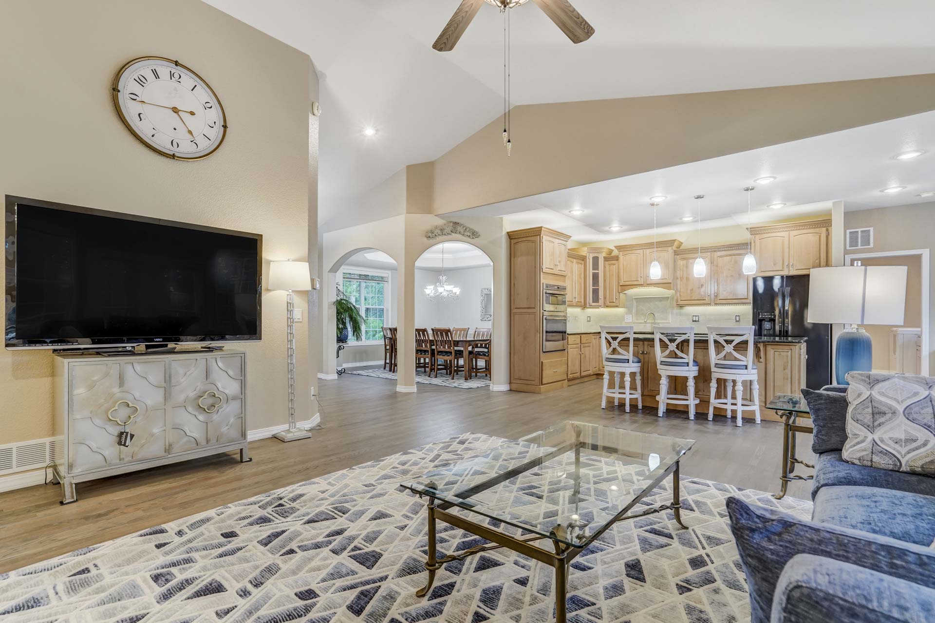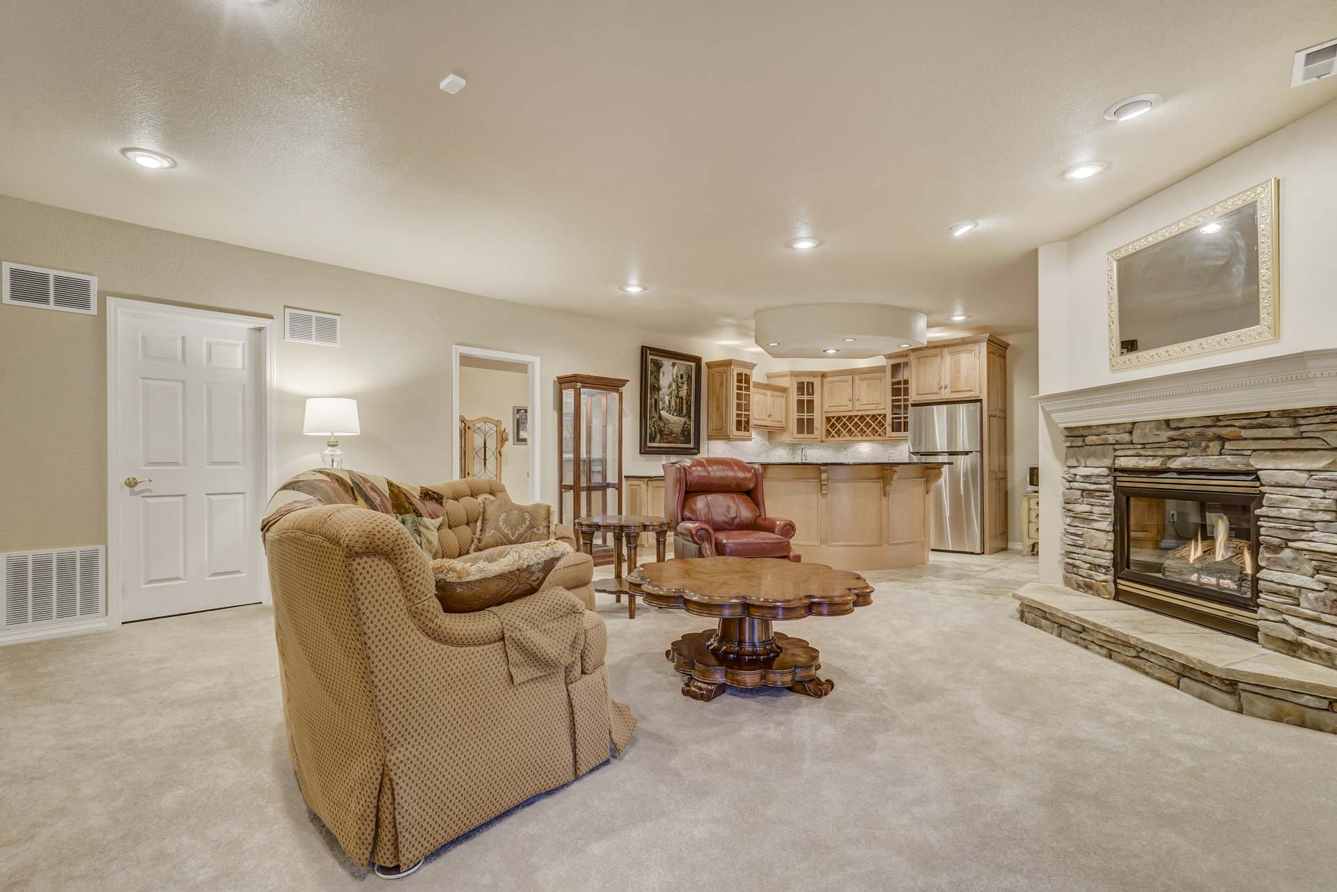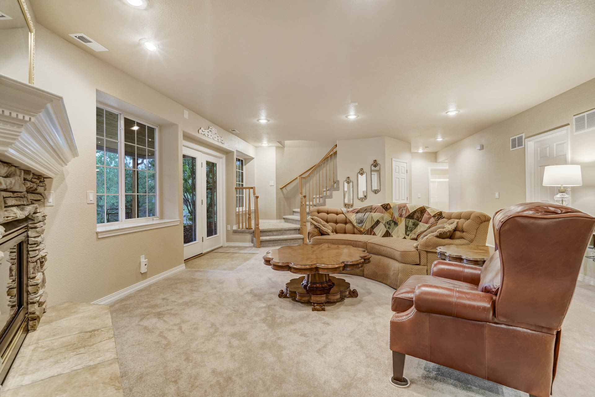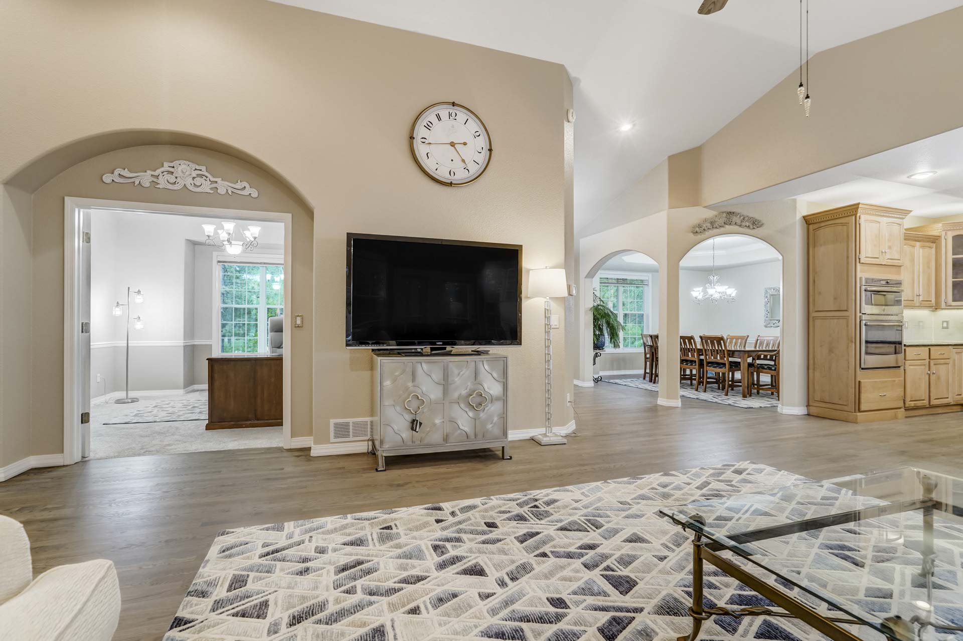 Stately updated rancher perfectly positioned on 2.5 acres with mature Ponderosa Pines in the sought after community of Higby Estates! Convenient Monument location with quick access to I-25, Highway 83 and the amenities of Monument and Northgate. Stucco pillars greet you as you arrive at the property. The acreage is treed, mitigated and offers great privacy, mountain views and serenity. Over 4,400 sq ft, 4 bedrooms, an office, 4 baths and a 3 car garage. Awesome outdoor entertaining space with a brand new composite and metal deck with built in lighting, stair lighting and great views. Newer AC unit. The home is filled with natural light, has vaulted ceilings, tons of large windows, three fireplaces and recently refinished hardwood floors and updated lighting throughout. Expansive and open great room with hardwood floors, wood burning fireplace w/ river rock surround, a walk-out to the back deck. Updated kitchen with maple cabinets, an island, slab granite counters, huge pantry, eat-in kitchen nook, hardwood floors, newer appliances and under cabinet lighting. Formal dining room w/ coffered ceilings, hardwood floors, chair rail and space for a large dining table. Main level primary suite with walk-in closet, gas fireplace, walk-out to the back deck and a 5 piece bath w/ jetted tub and double vanity. Main level office w/ french doors and built-in bookcases. Fully finished walk-out basement with a secondary primary suite w/ walk-in closet and private bath. The basement has three additional bedrooms, two full baths, a theater room and family room. The family room has a secondary kitchen area w/ beautiful maple cabinetry, wine rack, slab granite counters, marble backsplash, under cabinet lighting, full size refrigerator and 2 burner cook-top. The family room also features a gas fireplace and walks out to the backyard with a covered seating area with built-in LED lighting above. Circular concrete driveway with tons of parking available. Award winning School District 38.