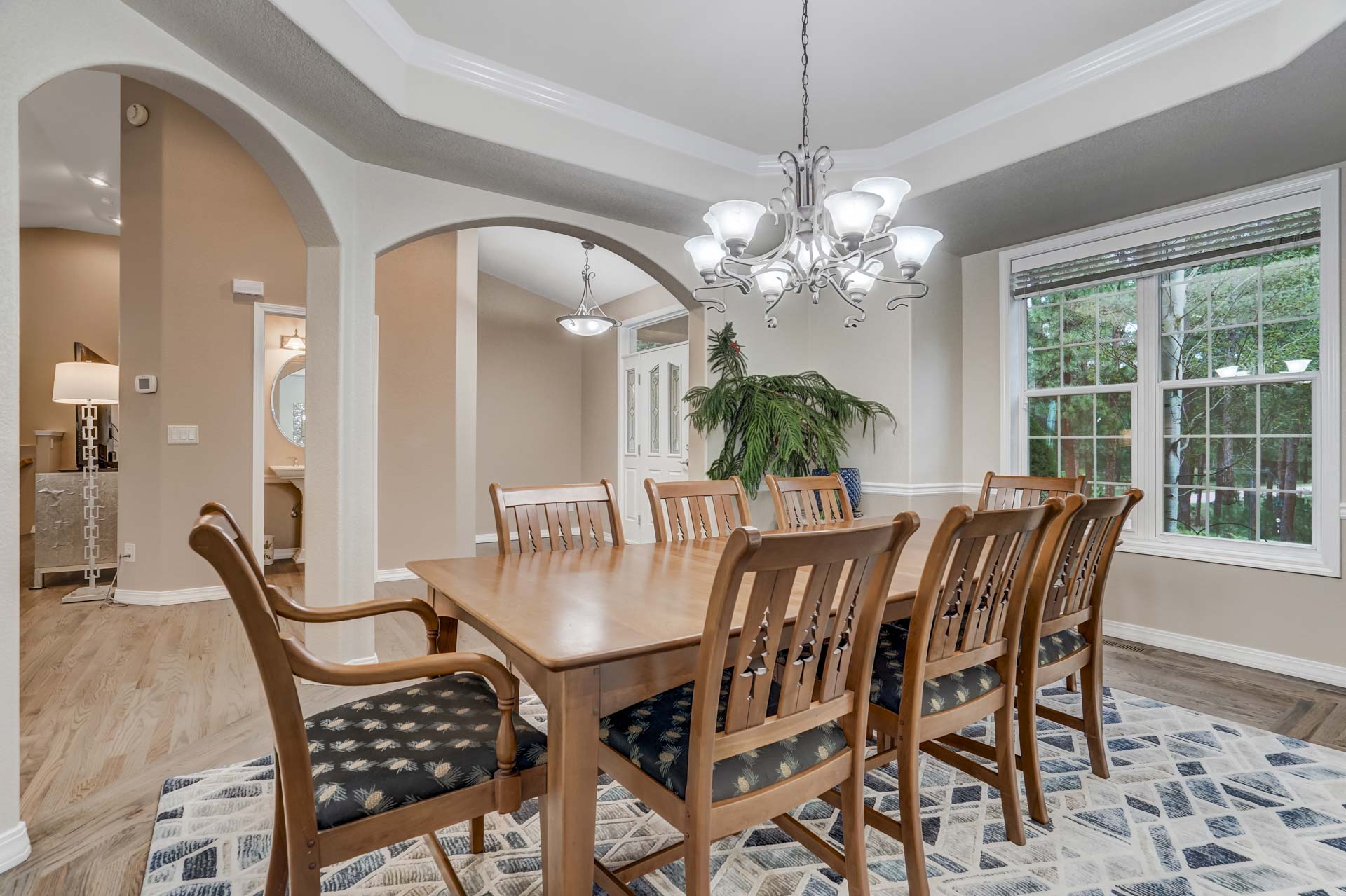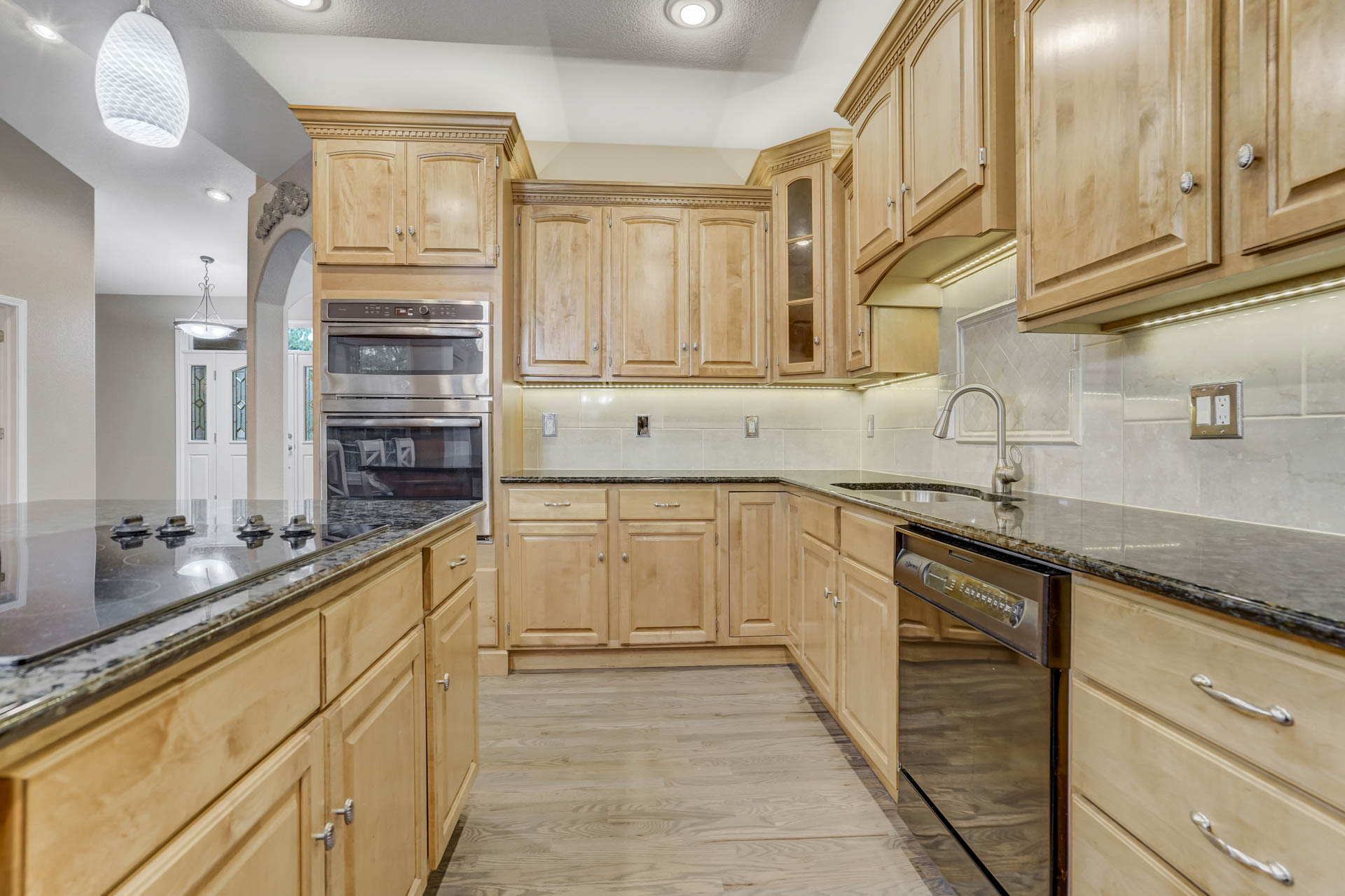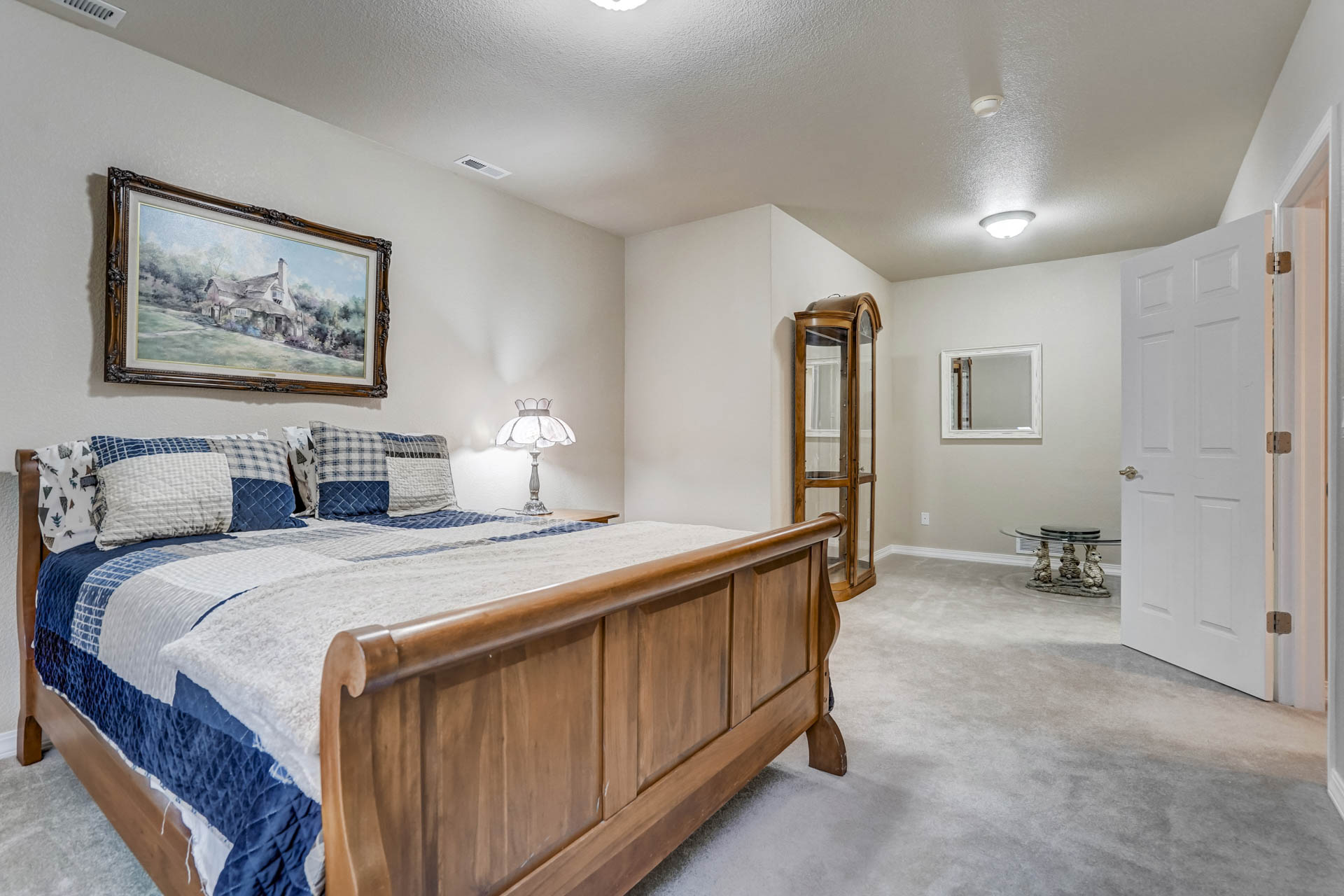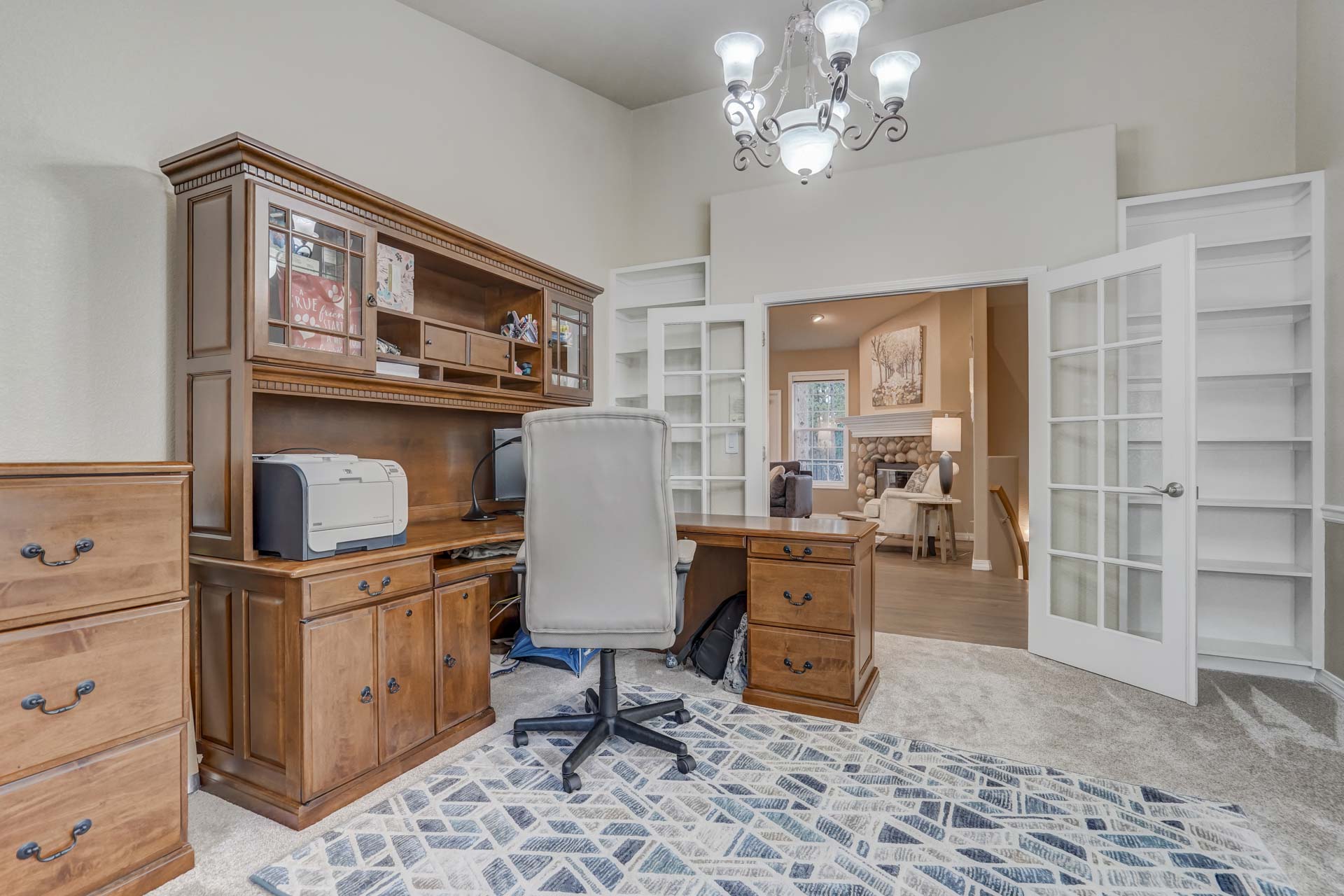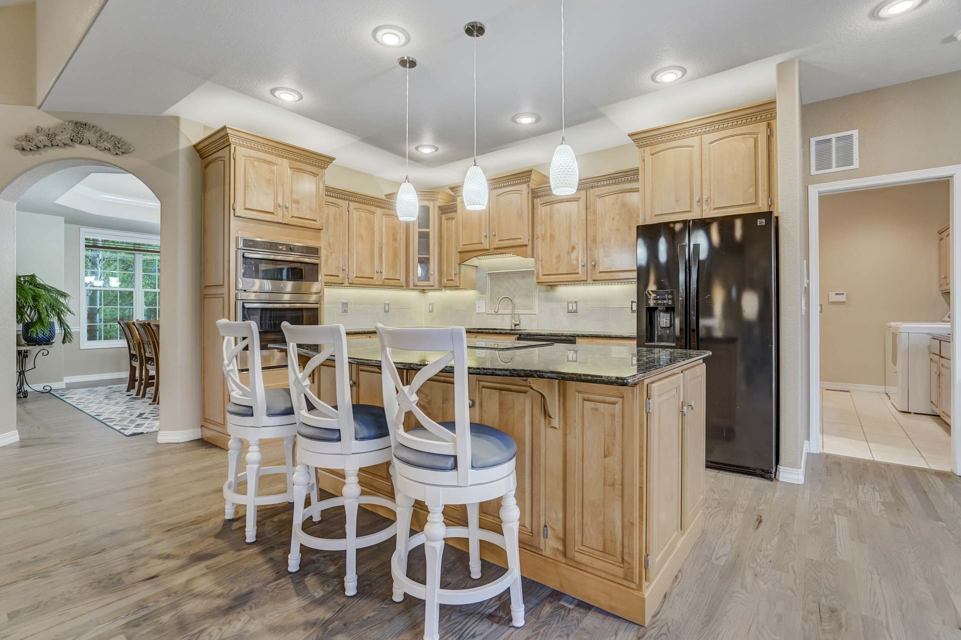 Stately updated rancher perfectly positioned on 2.5 acres with mature Ponderosa Pines in the sought after community of Higby Estates! Convenient Monument location with quick access to I-25, Highway 83 and the amenities of Monument and Northgate. Stucco pillars greet you as you arrive at the property. The acreage is treed, mitigated and offers great privacy, mountain views and serenity. Over 4,400 sq ft, 4 bedrooms, an office, 4 baths and a 3 car garage. Awesome outdoor entertaining space with a brand new composite and metal deck with built in lighting, stair lighting and great views. Newer AC unit. The home is filled with natural light, has vaulted ceilings, tons of large windows, three fireplaces and recently refinished hardwood floors and updated lighting throughout. Expansive and open great room with hardwood floors, wood burning fireplace w/ river rock surround, a walk-out to the back deck. Updated kitchen with maple cabinets, an island, slab granite counters, huge pantry, eat-in kitchen nook, hardwood floors, newer appliances and under cabinet lighting. Formal dining room w/ coffered ceilings, hardwood floors, chair rail and space for a large dining table. Main level primary suite with walk-in closet, gas fireplace, walk-out to the back deck and a 5 piece bath w/ jetted tub and double vanity. Main level office w/ french doors and built-in bookcases. Fully finished walk-out basement with a secondary primary suite w/ walk-in closet and private bath. The basement has three additional bedrooms, two full baths, a theater room and family room. The family room has a secondary kitchen area w/ beautiful maple cabinetry, wine rack, slab granite counters, marble backsplash, under cabinet lighting, full size refrigerator and 2 burner cook-top. The family room also features a gas fireplace and walks out to the backyard with a covered seating area with built-in LED lighting above. Circular concrete driveway with tons of parking available. Award winning School District 38.