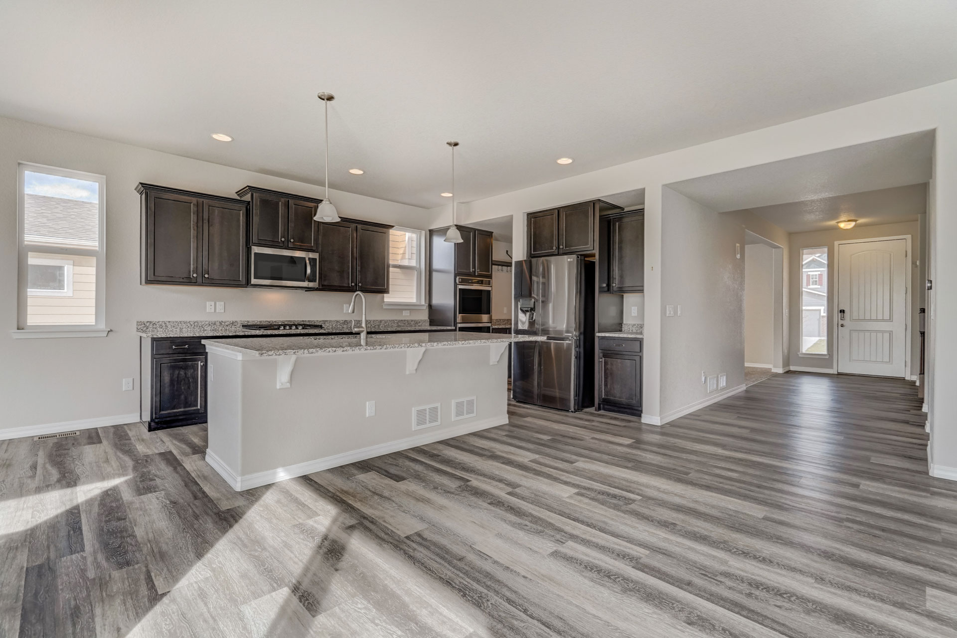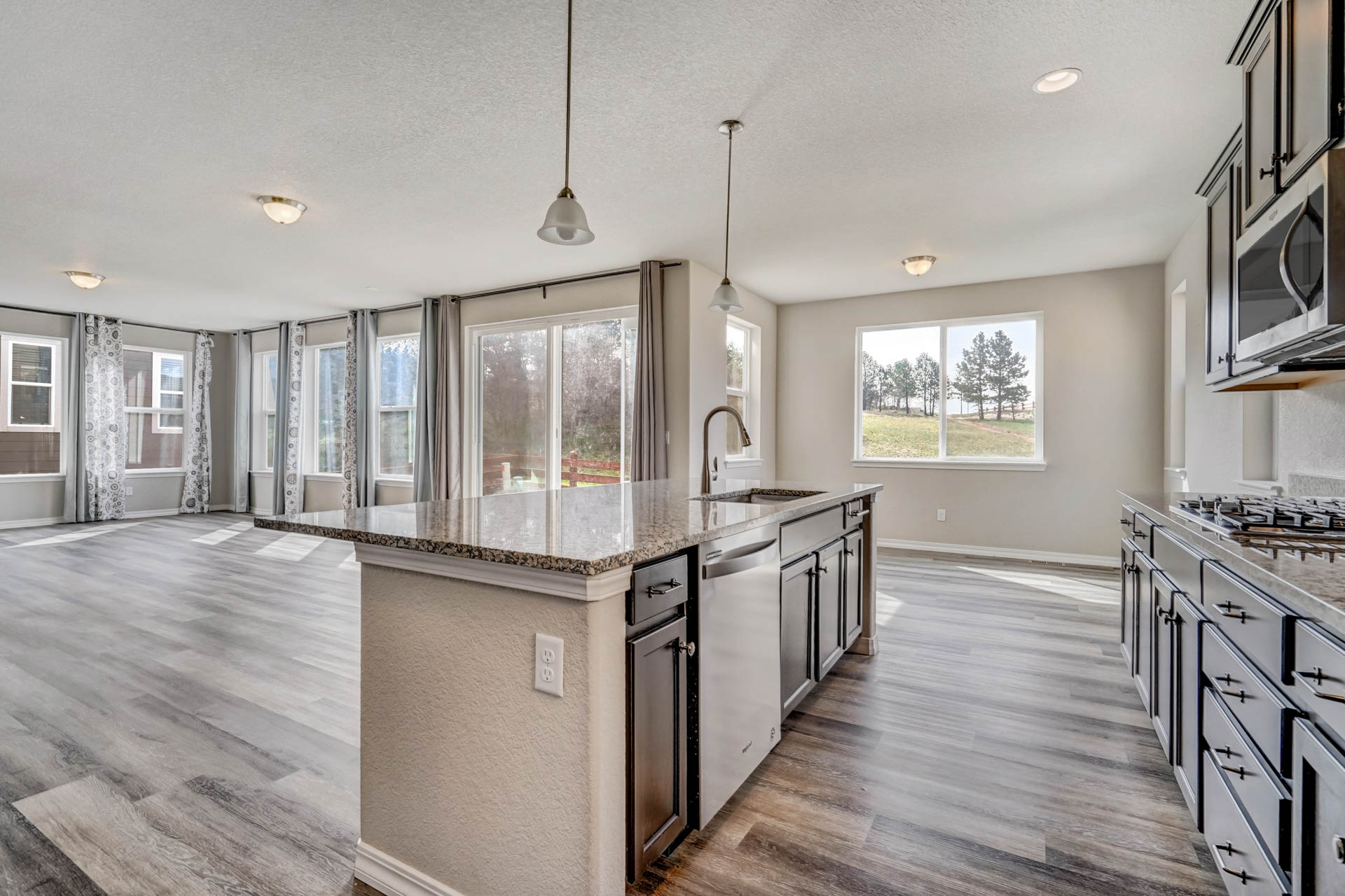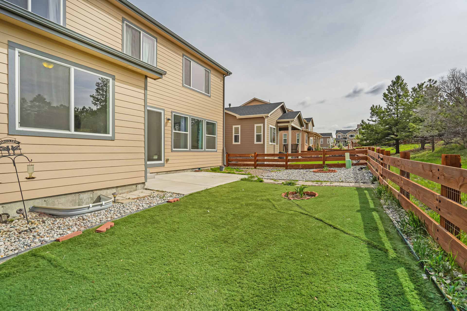 Stunning, nearly new 4 bedroom, 3 bath home in the beautiful Lake of the Rockies area in Monument! Wonderful bright and light open concept on the main level with extensive LVP flooring, office, mudroom from 3-car tandem garage with extra space, huge kitchen, and great room space with walk out to low maintenance backyard that backs to open space within the neighborhood. Kitchen with large island and bar seating, double ovens and plenty of prep & storage space. Upstairs is a large loft space, oversized primary suite with large bathroom, walk-in closet, and beautiful views. Three additional generous-sized bedrooms, a large full bath and laundry space that connects to the hall and to primary closet complete the upper level. The huge unfinished basement space has endless possibilities to be whatever you need it to be - it already has the plumbing rough in for the 4th bath! The landscape is complete, and this immaculate home is just a short walk to Monument Lake and historic downtown Monument shops and restaurants. Excellent location close to D38 schools, hiking, easy commute north to Denver or south to Springs! Enjoy newer modern construction in a very Colorado feel community!
