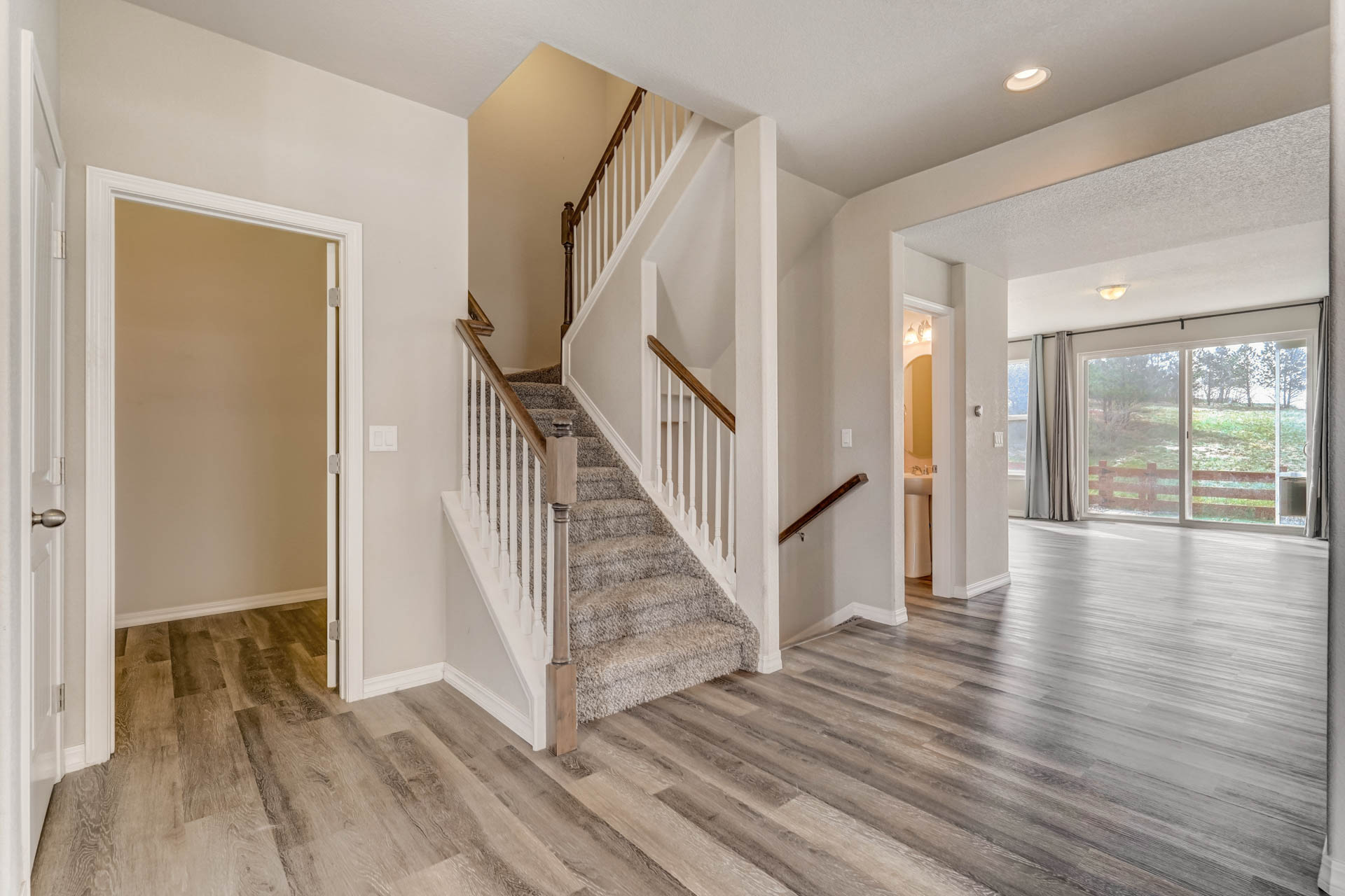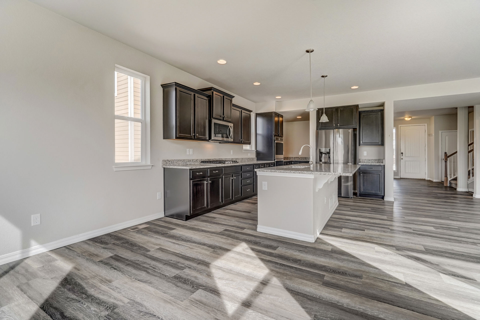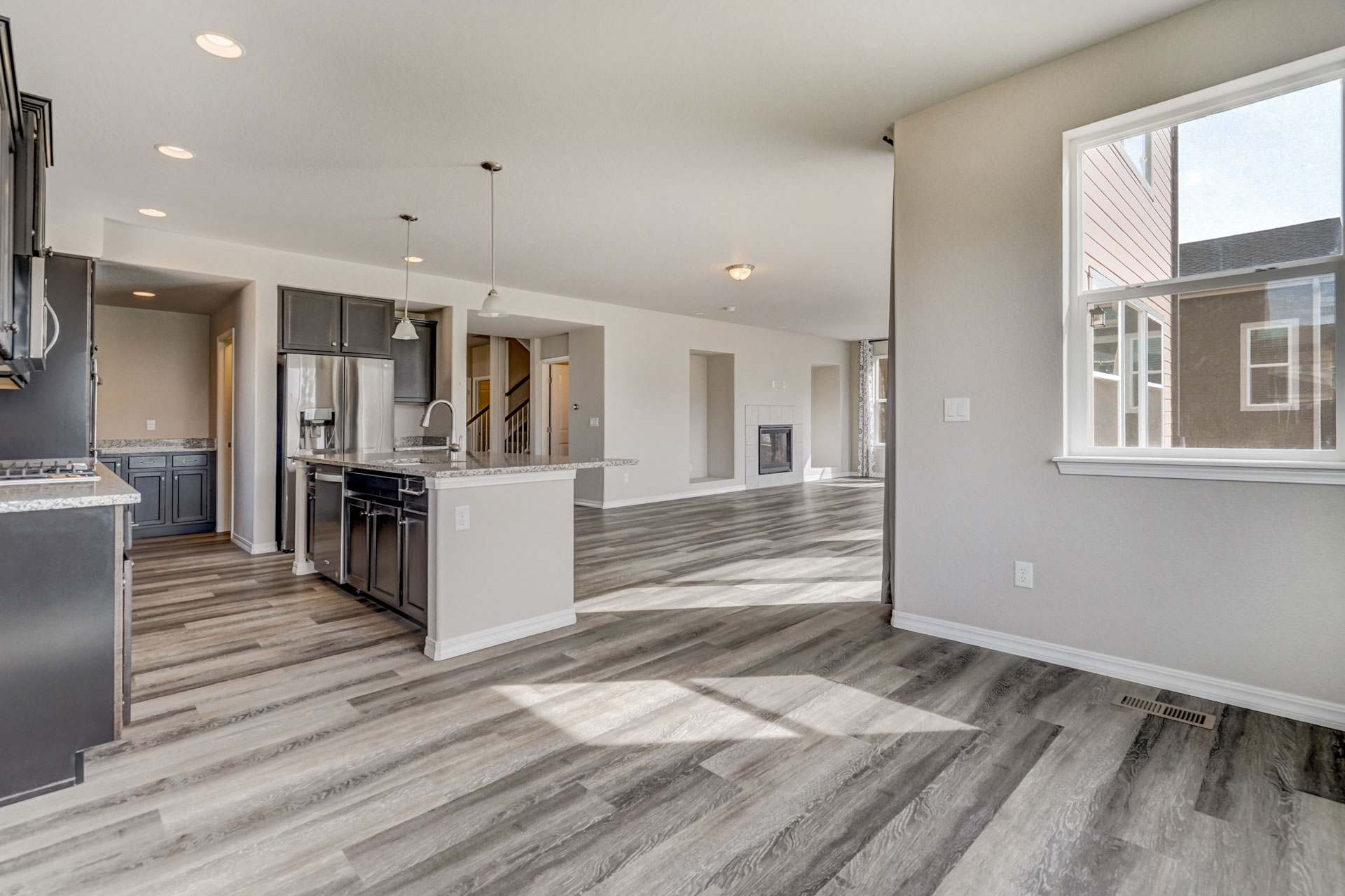 Stunning, nearly new 4 bedroom, 3 bath home in the beautiful Lake of the Rockies area in Monument! Wonderful bright and light open concept on the main level with extensive LVP flooring, office, mudroom from 3-car tandem garage with extra space, huge kitchen, and great room space with walk out to low maintenance backyard that backs to open space within the neighborhood. Kitchen with large island and bar seating, double ovens and plenty of prep & storage space. Upstairs is a large loft space, oversized primary suite with large bathroom, walk-in closet, and beautiful views. Three additional generous-sized bedrooms, a large full bath and laundry space that connects to the hall and to primary closet complete the upper level. The huge unfinished basement space has endless possibilities to be whatever you need it to be - it already has the plumbing rough in for the 4th bath! The landscape is complete, and this immaculate home is just a short walk to Monument Lake and historic downtown Monument shops and restaurants. Excellent location close to D38 schools, hiking, easy commute north to Denver or south to Springs! Enjoy newer modern construction in a very Colorado feel community!