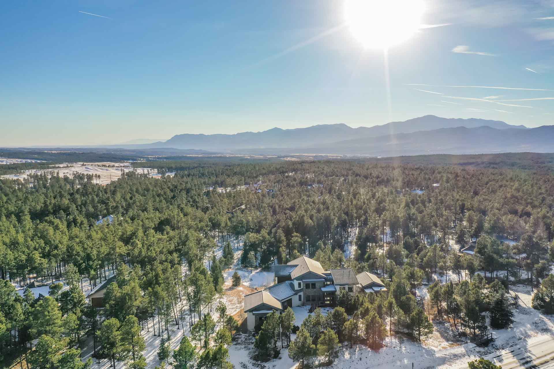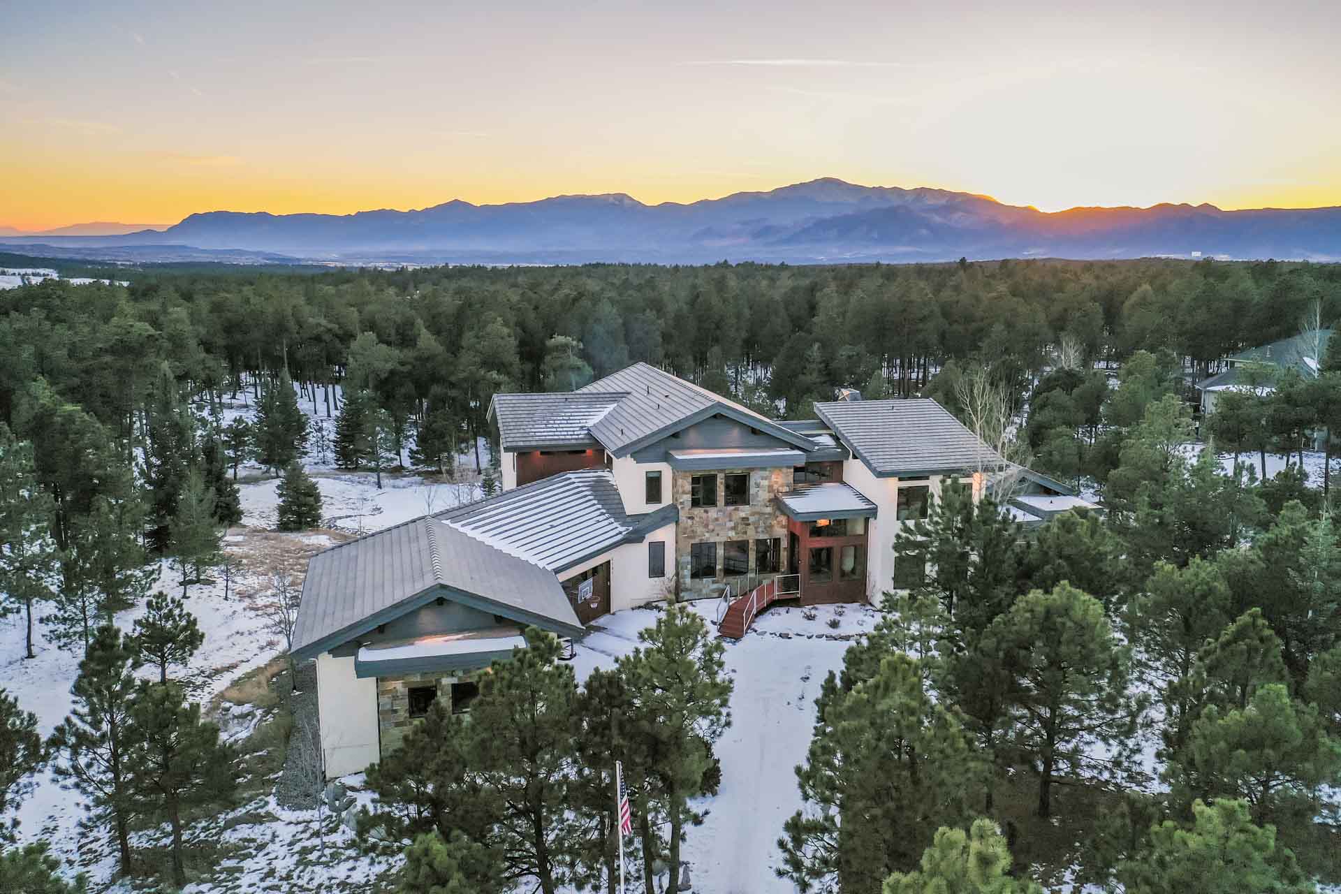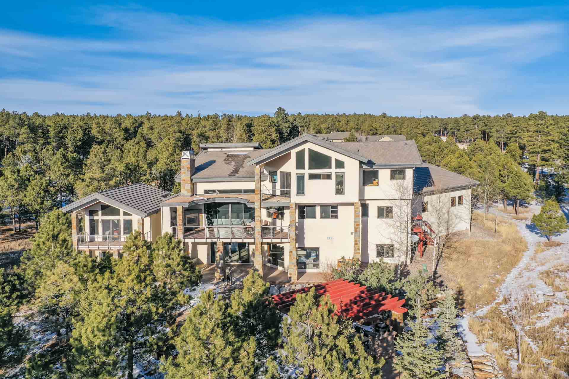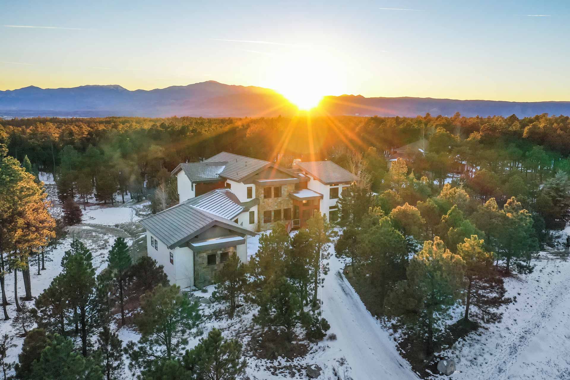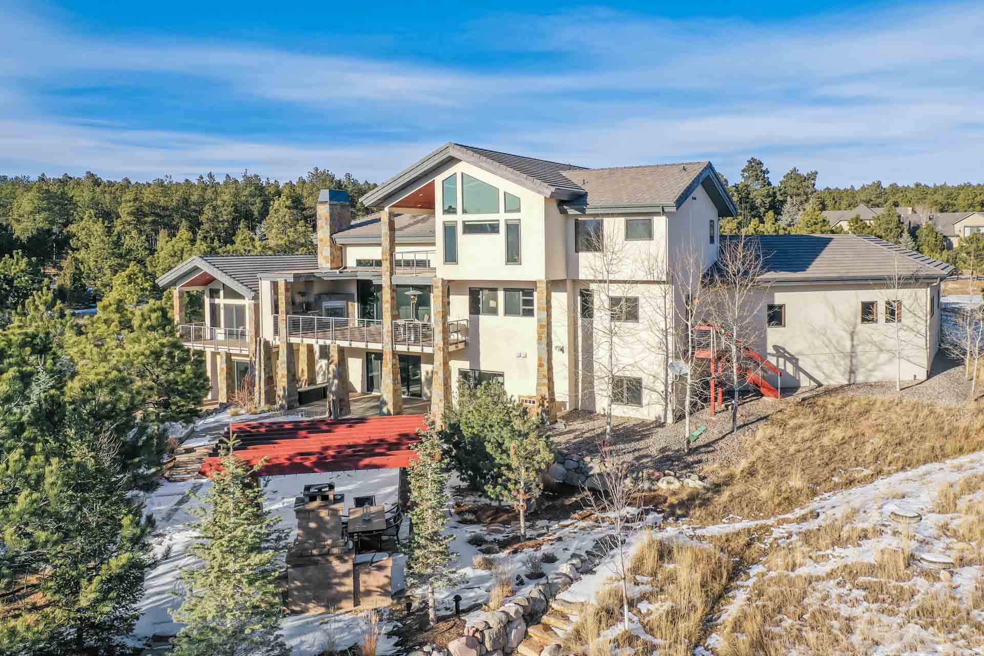 This exquisite and timeless mountain contemporary estate in the prestigious gated community of High Forest Ranch awaits new owners. Showcasing 5 bedrooms, 7 baths and oversized 4-car garage, this stunning home blends style and design with the sought-after combination of wooded privacy and Pikes Peak/Front Range Mountain views on nearly a 3-acre lot. The large open interior spaces to entertain with all bedrooms complete with private en-suite, spa-like baths make this home unique and viable for multi-generational living. Luxury appliances grace the gourmet kitchen and your outdoor living spaces will have you enjoying this home and property year-round. Features of this amazing home includes a Lutron system, radiant heat, home theater, custom wine room off dining area, primary suite with waterfall wall and soaking tub, covered deck off kitchen area with access to the outdoor kitchen, lower level with wet bar, rec room, theatre room, a FLEX space room/suite is accessed from the lower level and is perfect for a workout facility/additional suite/office with full bath attached. A must-see-to-believe property for sure with attention to detail everywhere you turn. Do not miss this opportunity to own a one-of-a-kind estate in one of the most desirable locations in the Pikes Peak region.