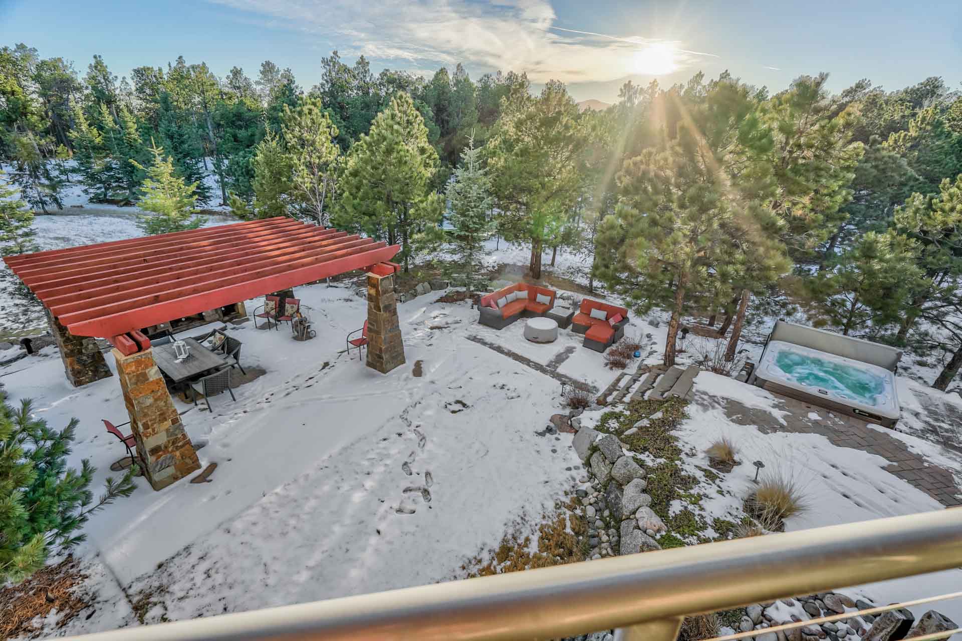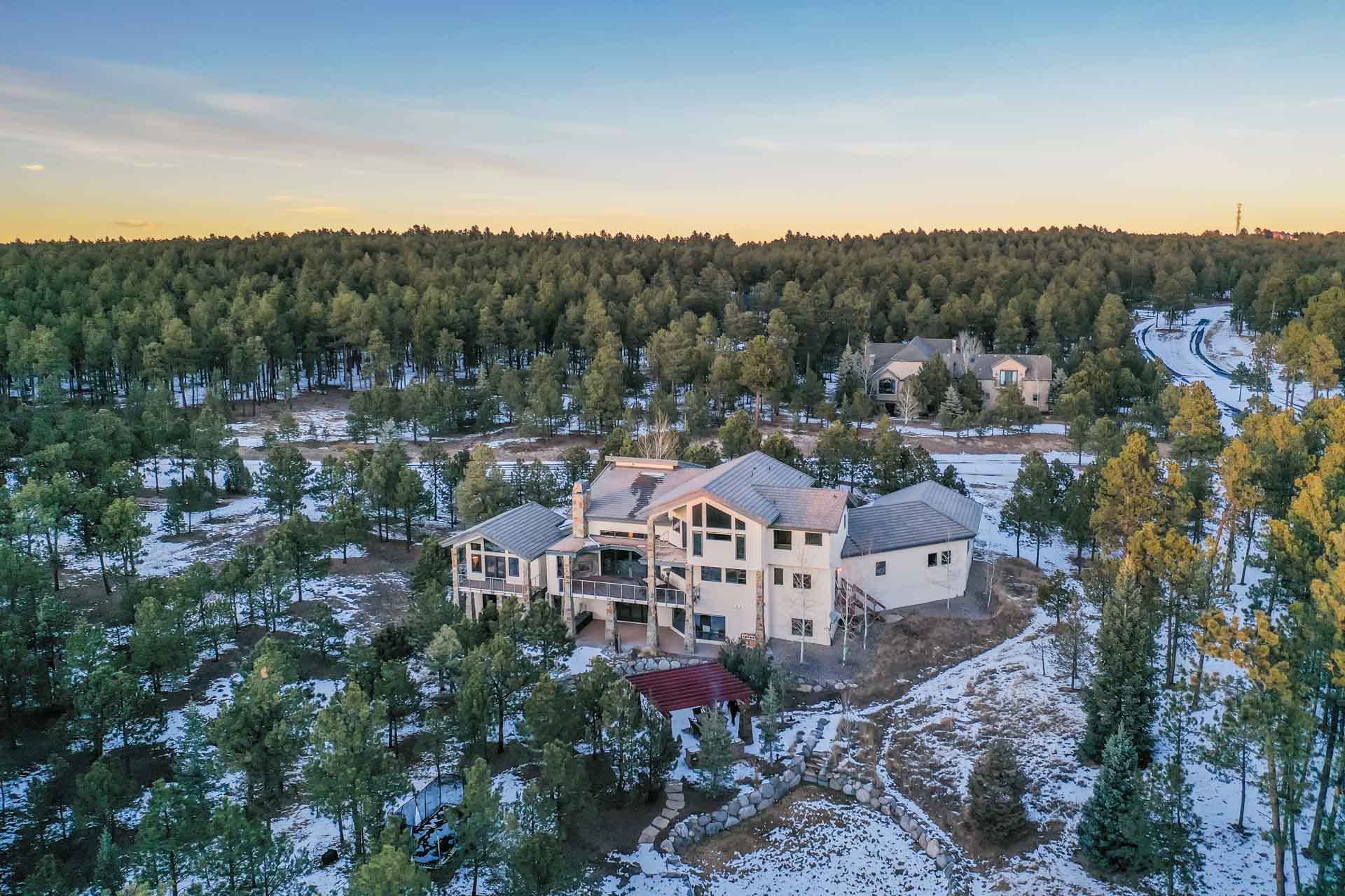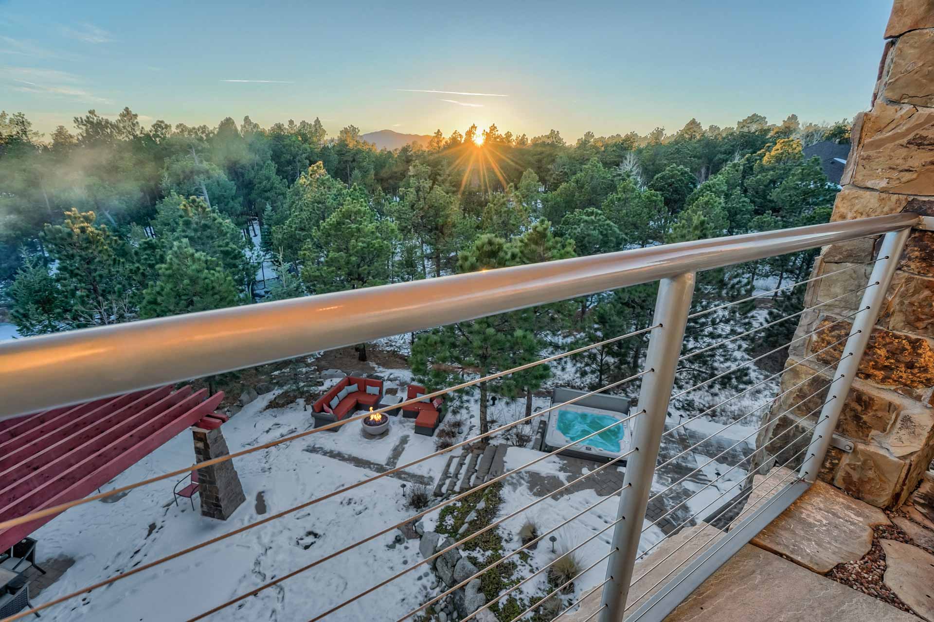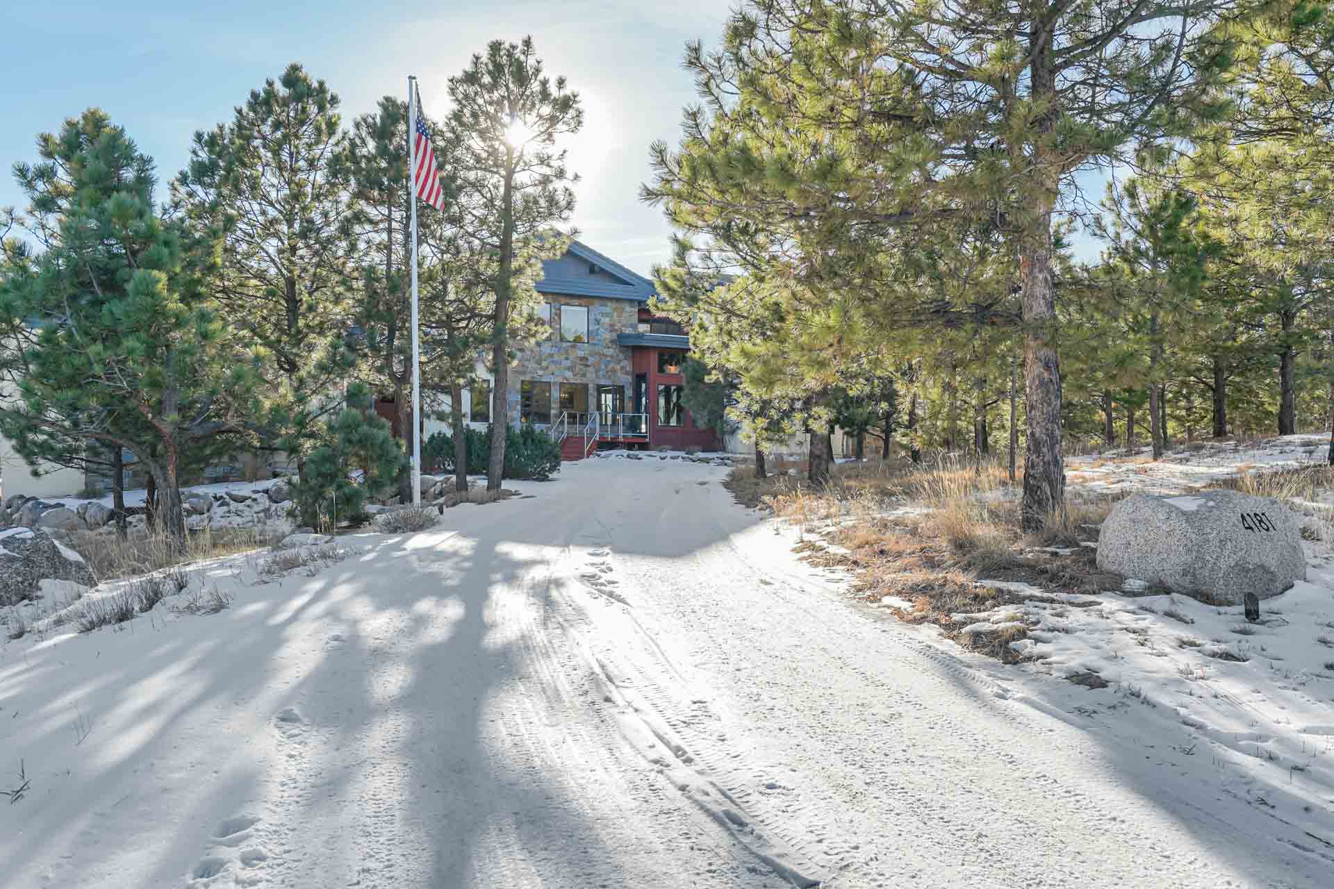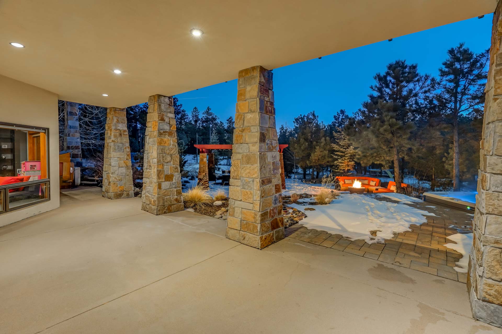 This exquisite and timeless mountain contemporary estate in the prestigious gated community of High Forest Ranch awaits new owners. Showcasing 5 bedrooms, 7 baths and oversized 4-car garage, this stunning home blends style and design with the sought-after combination of wooded privacy and Pikes Peak/Front Range Mountain views on nearly a 3-acre lot. The large open interior spaces to entertain with all bedrooms complete with private en-suite, spa-like baths make this home unique and viable for multi-generational living. Luxury appliances grace the gourmet kitchen and your outdoor living spaces will have you enjoying this home and property year-round. Features of this amazing home includes a Lutron system, radiant heat, home theater, custom wine room off dining area, primary suite with waterfall wall and soaking tub, covered deck off kitchen area with access to the outdoor kitchen, lower level with wet bar, rec room, theatre room, a FLEX space room/suite is accessed from the lower level and is perfect for a workout facility/additional suite/office with full bath attached. A must-see-to-believe property for sure with attention to detail everywhere you turn. Do not miss this opportunity to own a one-of-a-kind estate in one of the most desirable locations in the Pikes Peak region.