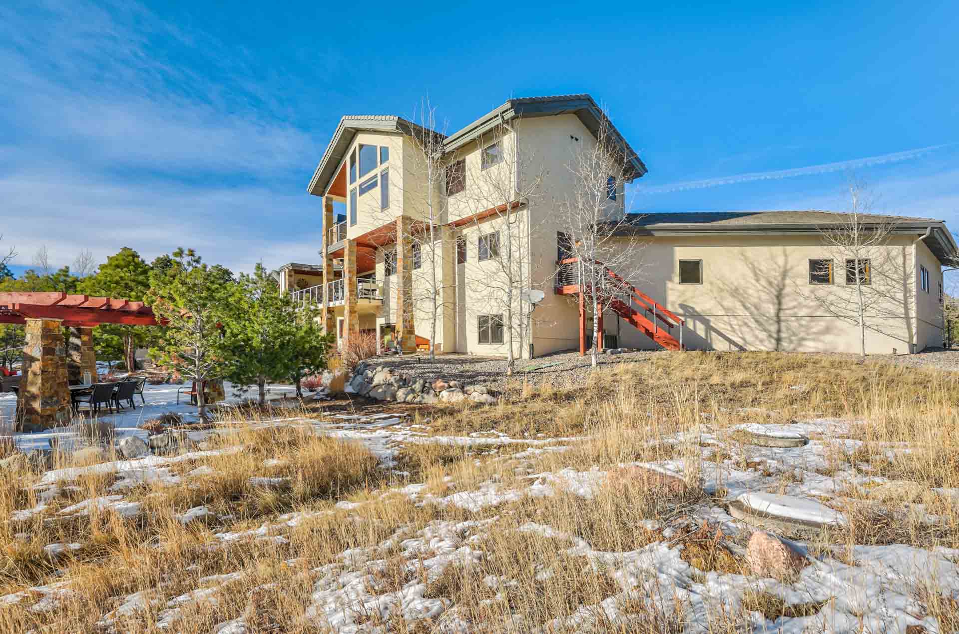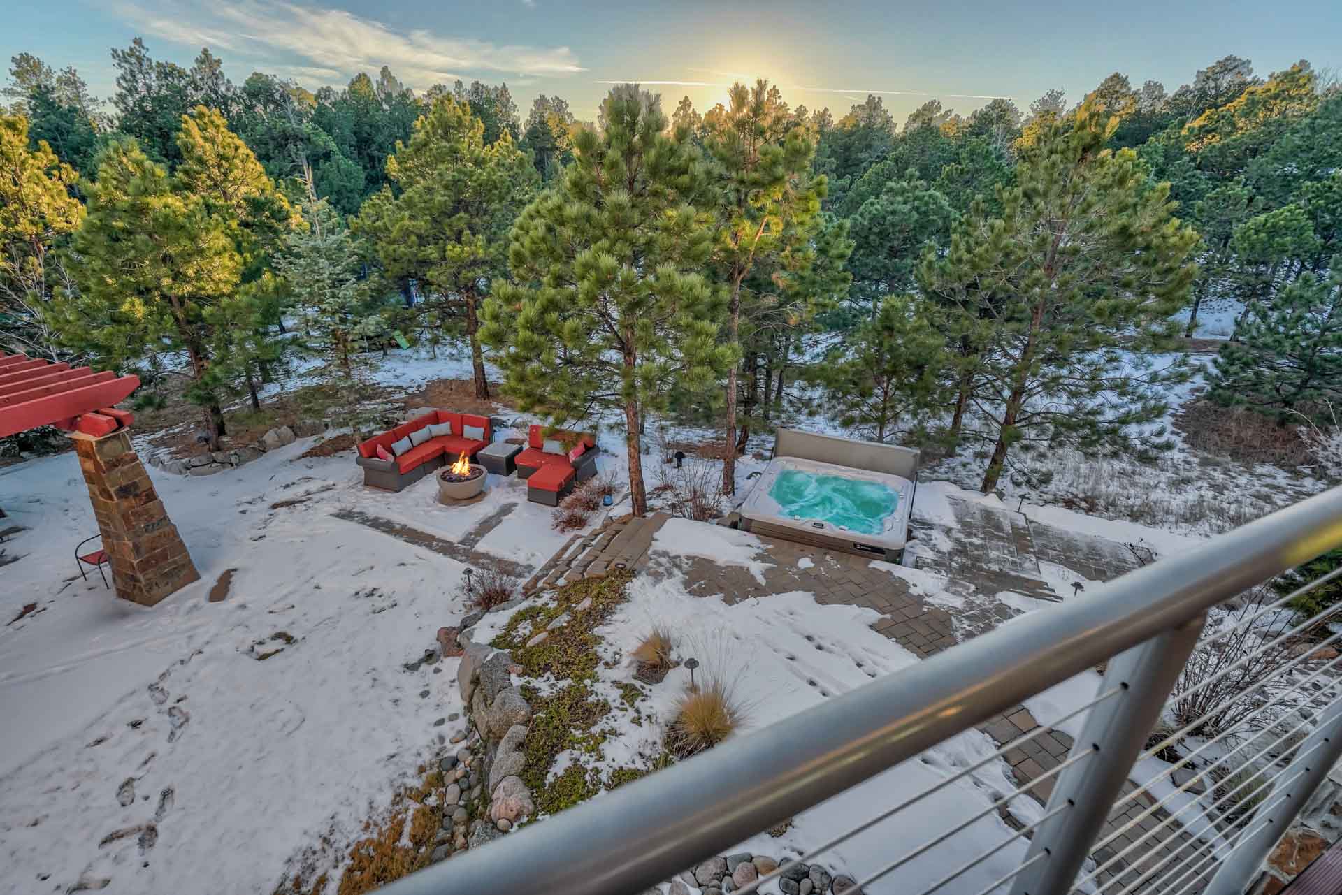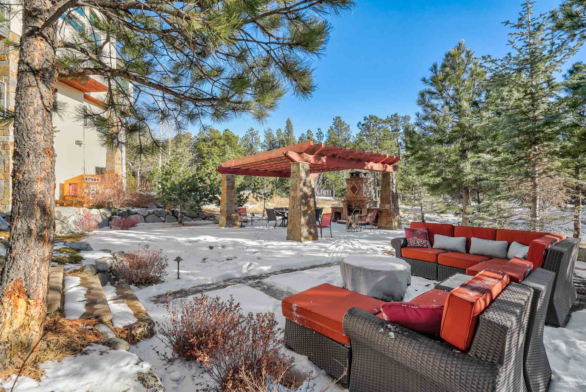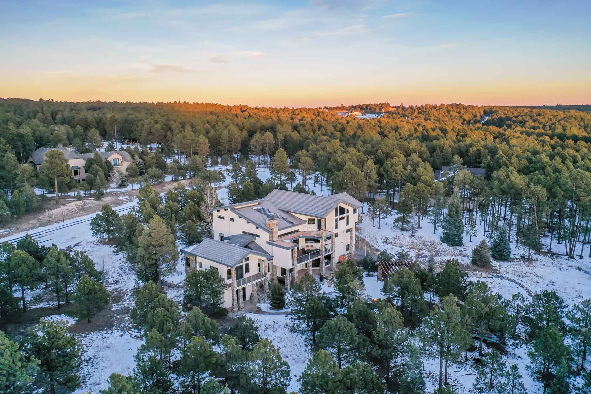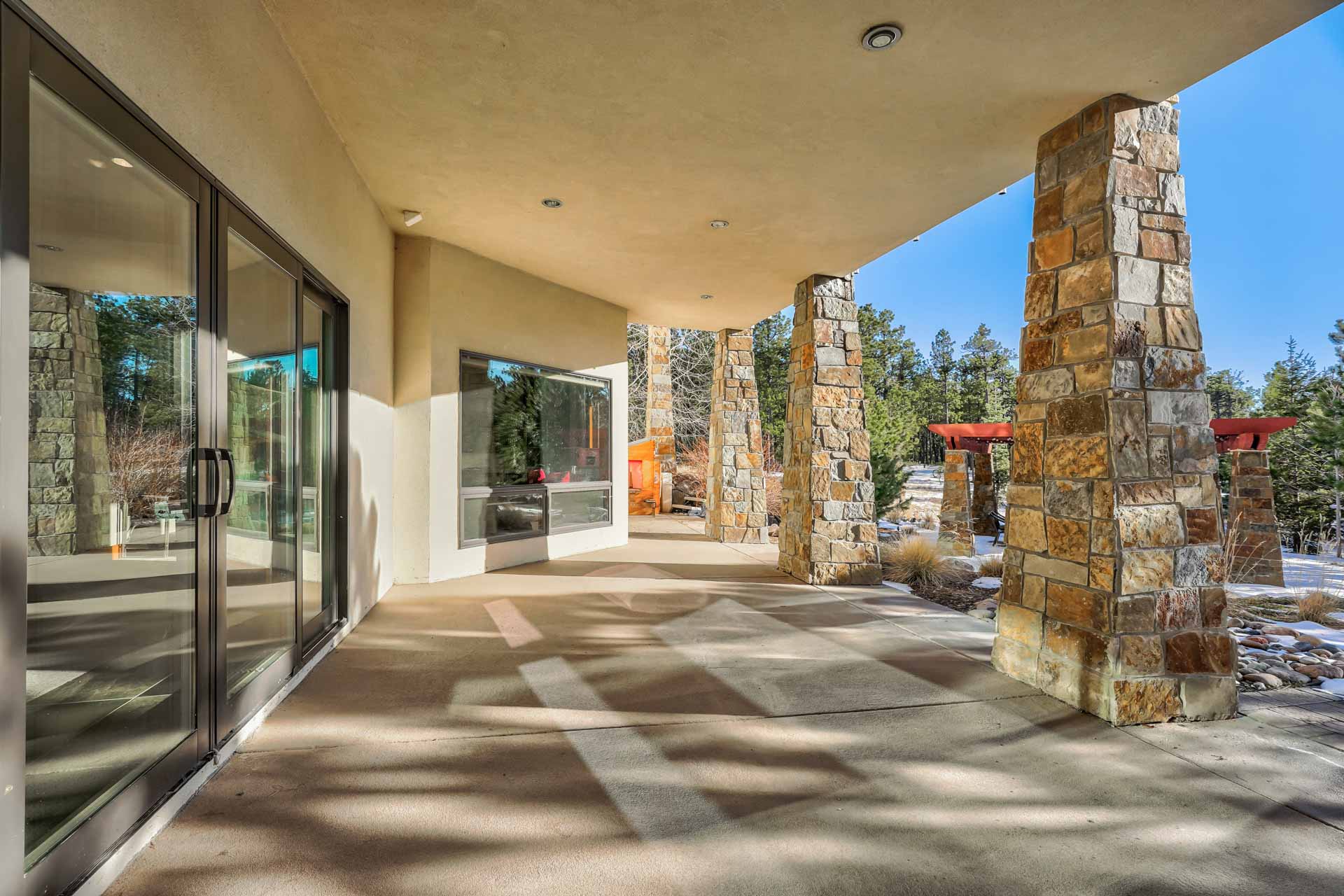 This exquisite and timeless mountain contemporary estate in the prestigious gated community of High Forest Ranch awaits new owners. Showcasing 5 bedrooms, 7 baths and oversized 4-car garage, this stunning home blends style and design with the sought-after combination of wooded privacy and Pikes Peak/Front Range Mountain views on nearly a 3-acre lot. The large open interior spaces to entertain with all bedrooms complete with private en-suite, spa-like baths make this home unique and viable for multi-generational living. Luxury appliances grace the gourmet kitchen and your outdoor living spaces will have you enjoying this home and property year-round. Features of this amazing home includes a Lutron system, radiant heat, home theater, custom wine room off dining area, primary suite with waterfall wall and soaking tub, covered deck off kitchen area with access to the outdoor kitchen, lower level with wet bar, rec room, theatre room, a FLEX space room/suite is accessed from the lower level and is perfect for a workout facility/additional suite/office with full bath attached. A must-see-to-believe property for sure with attention to detail everywhere you turn. Do not miss this opportunity to own a one-of-a-kind estate in one of the most desirable locations in the Pikes Peak region.