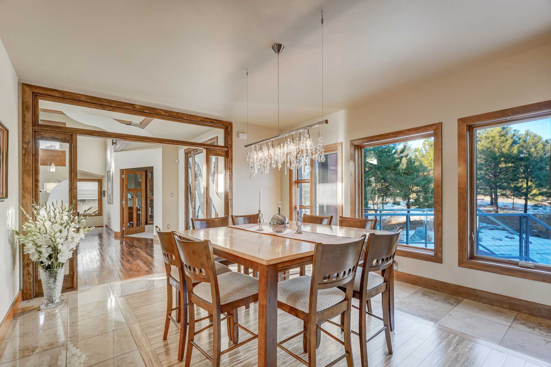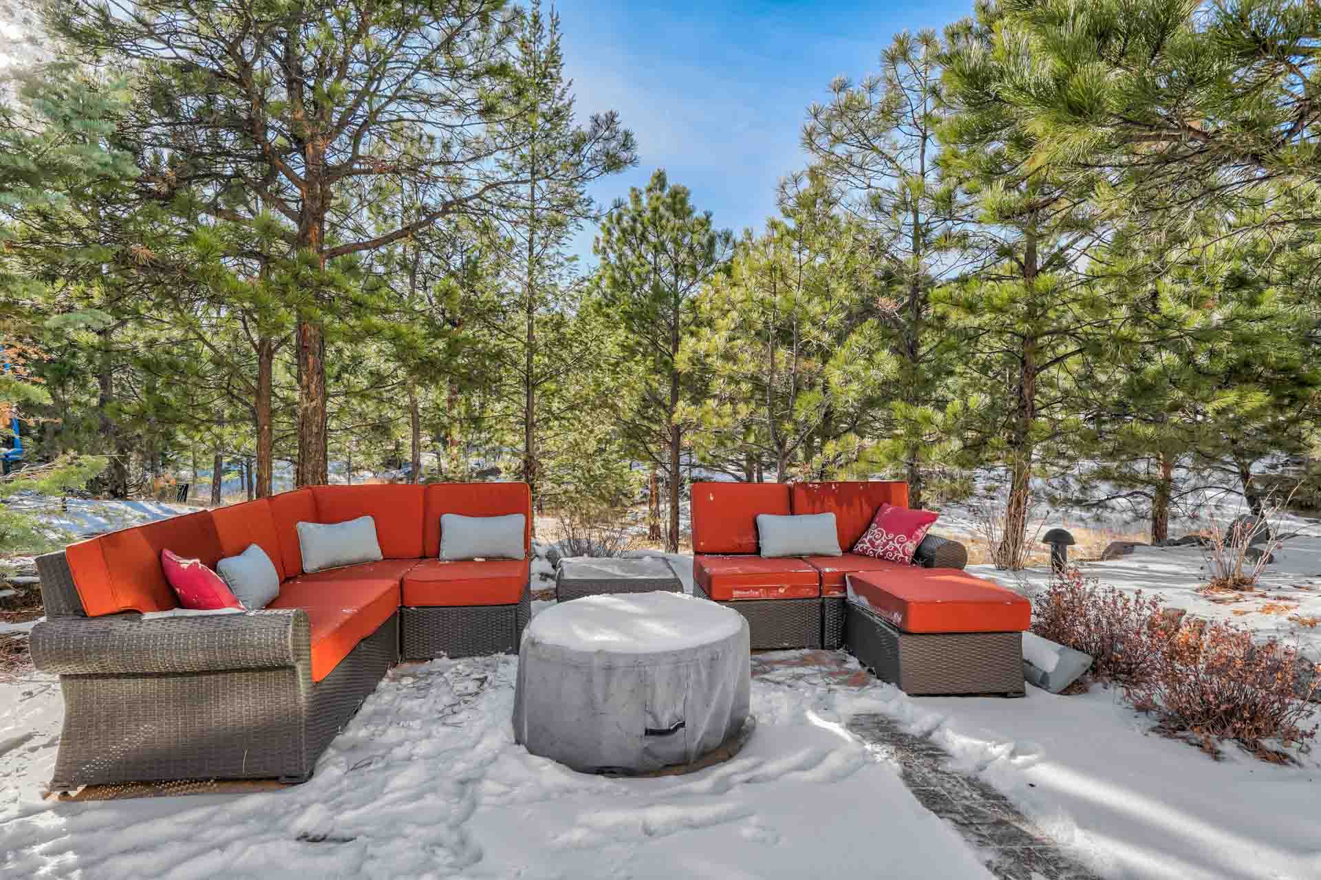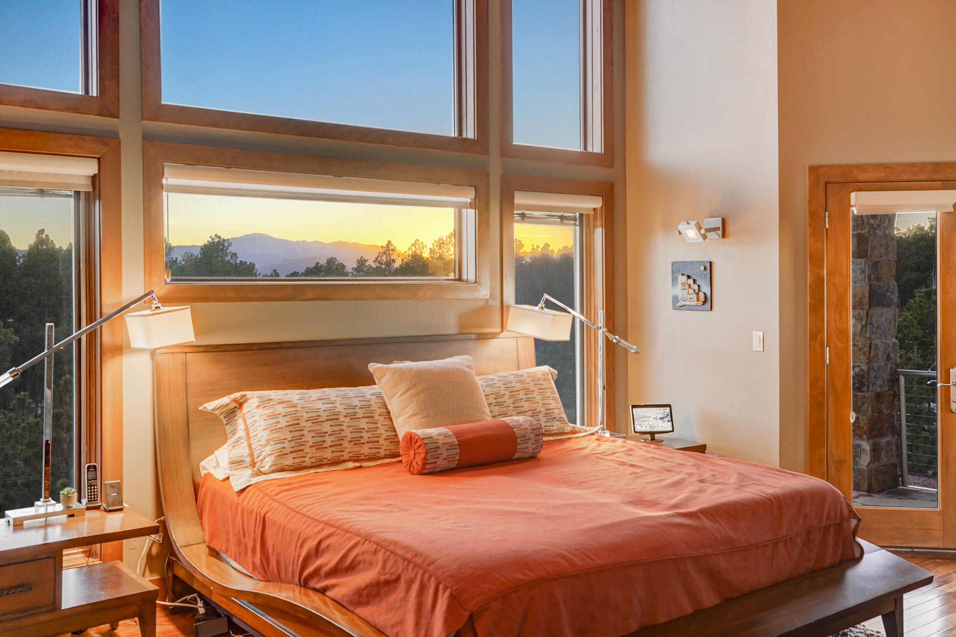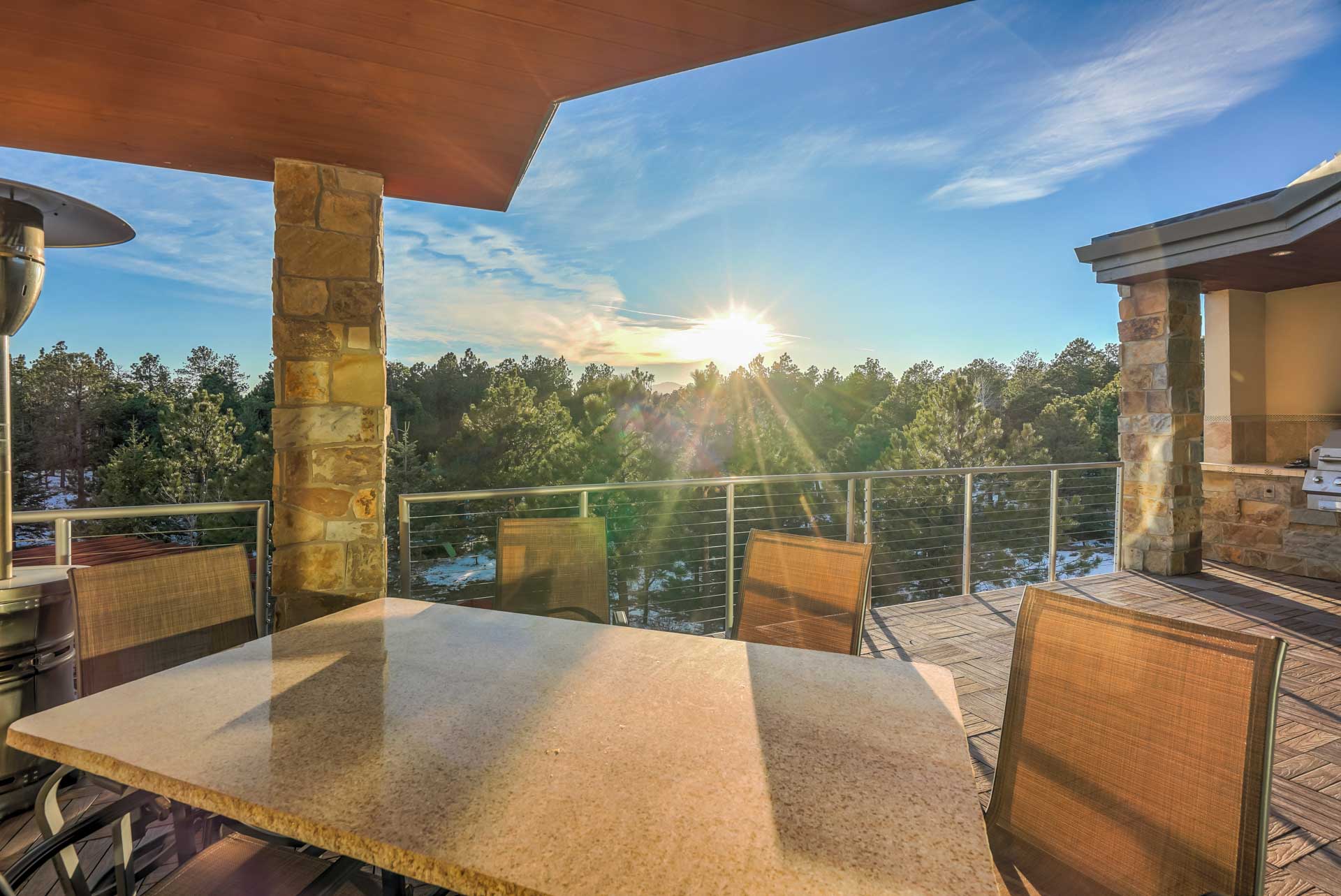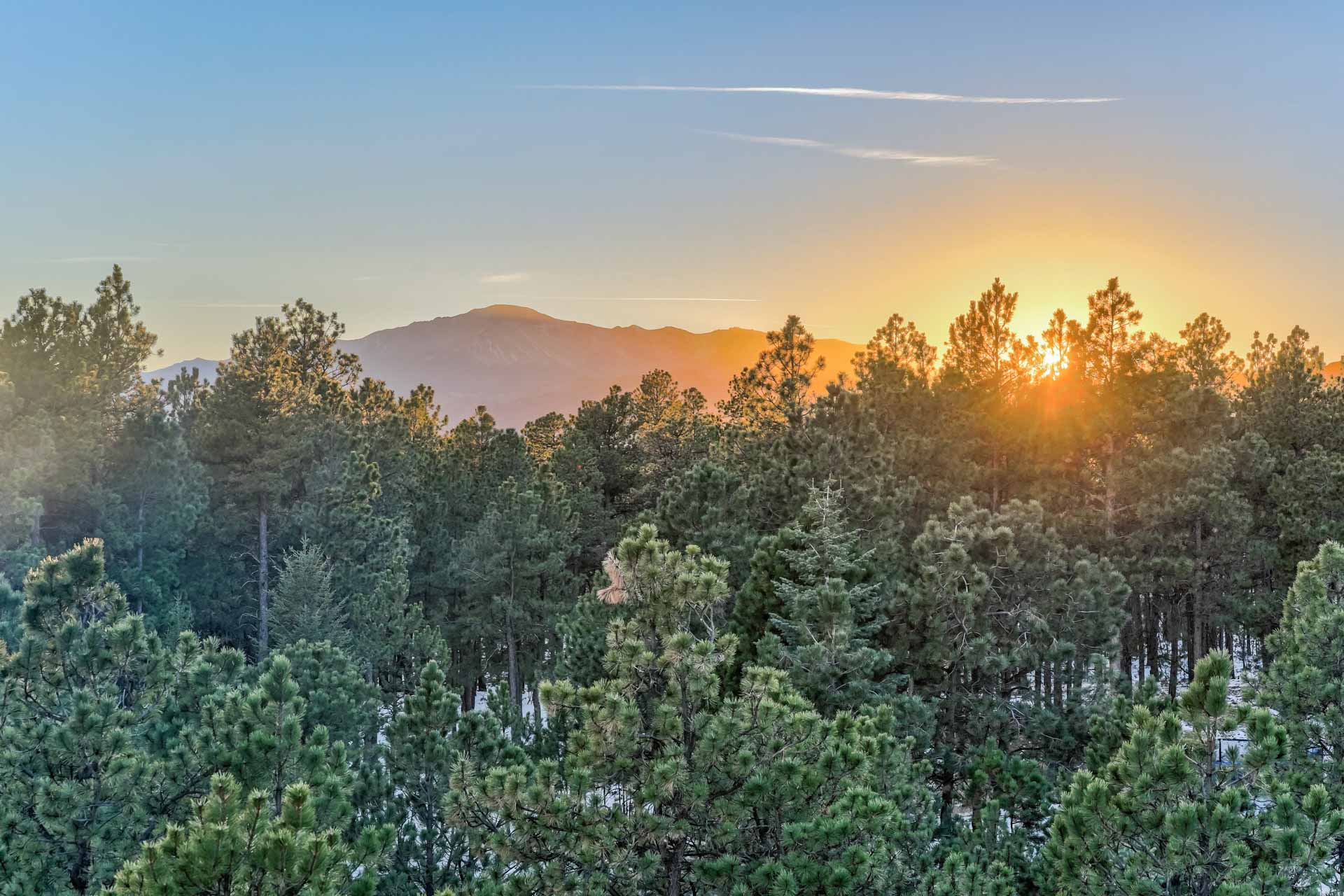This exquisite and timeless mountain contemporary estate in the prestigious gated community of High Forest Ranch awaits new owners. Showcasing 5 bedrooms, 7 baths and oversized 4-car garage, this stunning home blends style and design with the sought-after combination of wooded privacy and Pikes Peak/Front Range Mountain views on nearly a 3-acre lot. The large open interior spaces to entertain with all bedrooms complete with private en-suite, spa-like baths make this home unique and viable for multi-generational living. Luxury appliances grace the gourmet kitchen and your outdoor living spaces will have you enjoying this home and property year-round. Features of this amazing home includes a Lutron system, radiant heat, home theater, custom wine room off dining area, primary suite with waterfall wall and soaking tub, covered deck off kitchen area with access to the outdoor kitchen, lower level with wet bar, rec room, theatre room, a FLEX space room/suite is accessed from the lower level and is perfect for a workout facility/additional suite/office with full bath attached. A must-see-to-believe property for sure with attention to detail everywhere you turn. Do not miss this opportunity to own a one-of-a-kind estate in one of the most desirable locations in the Pikes Peak region.