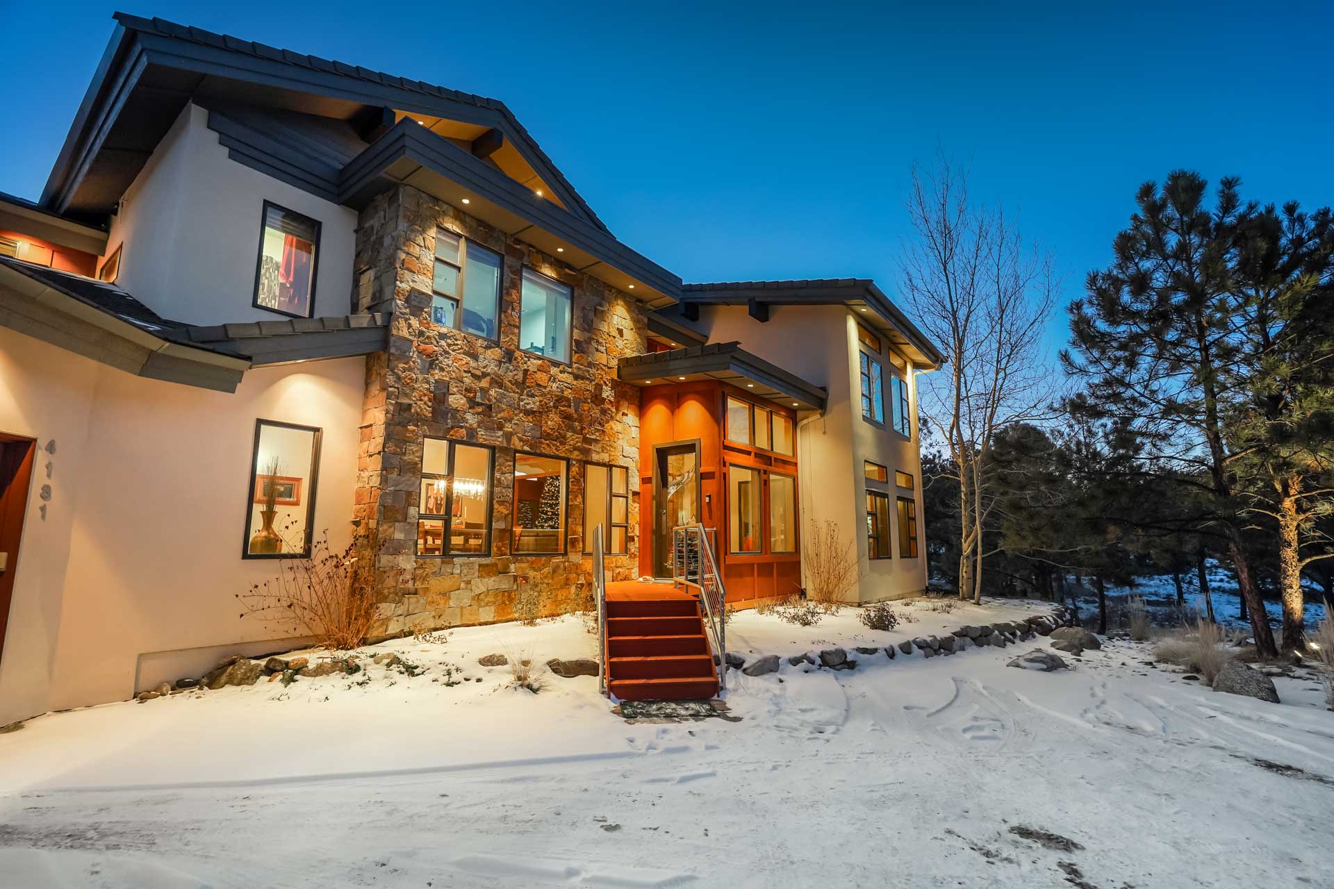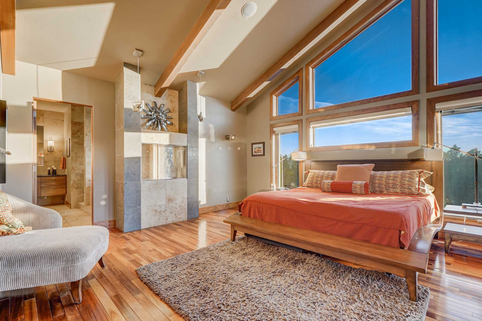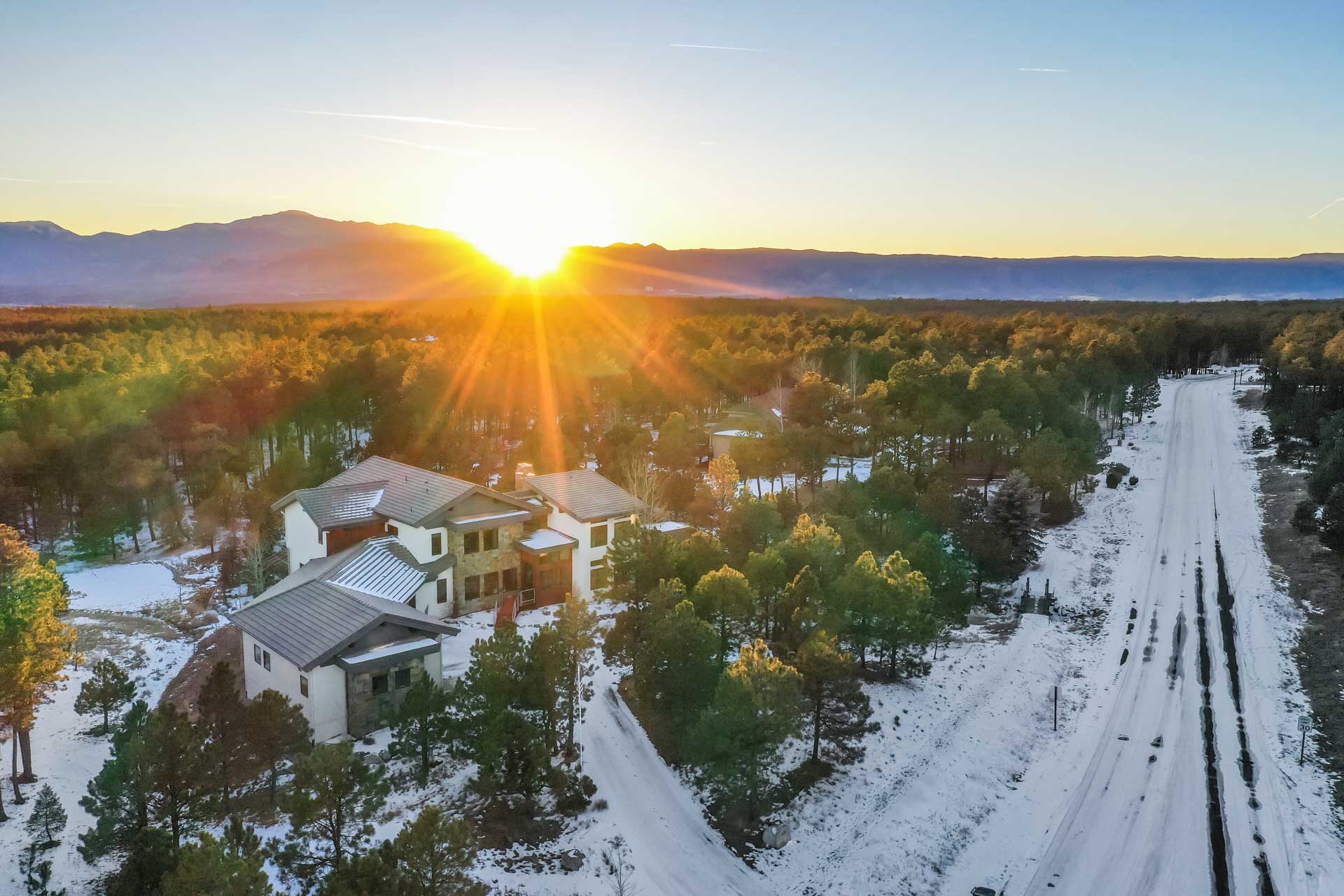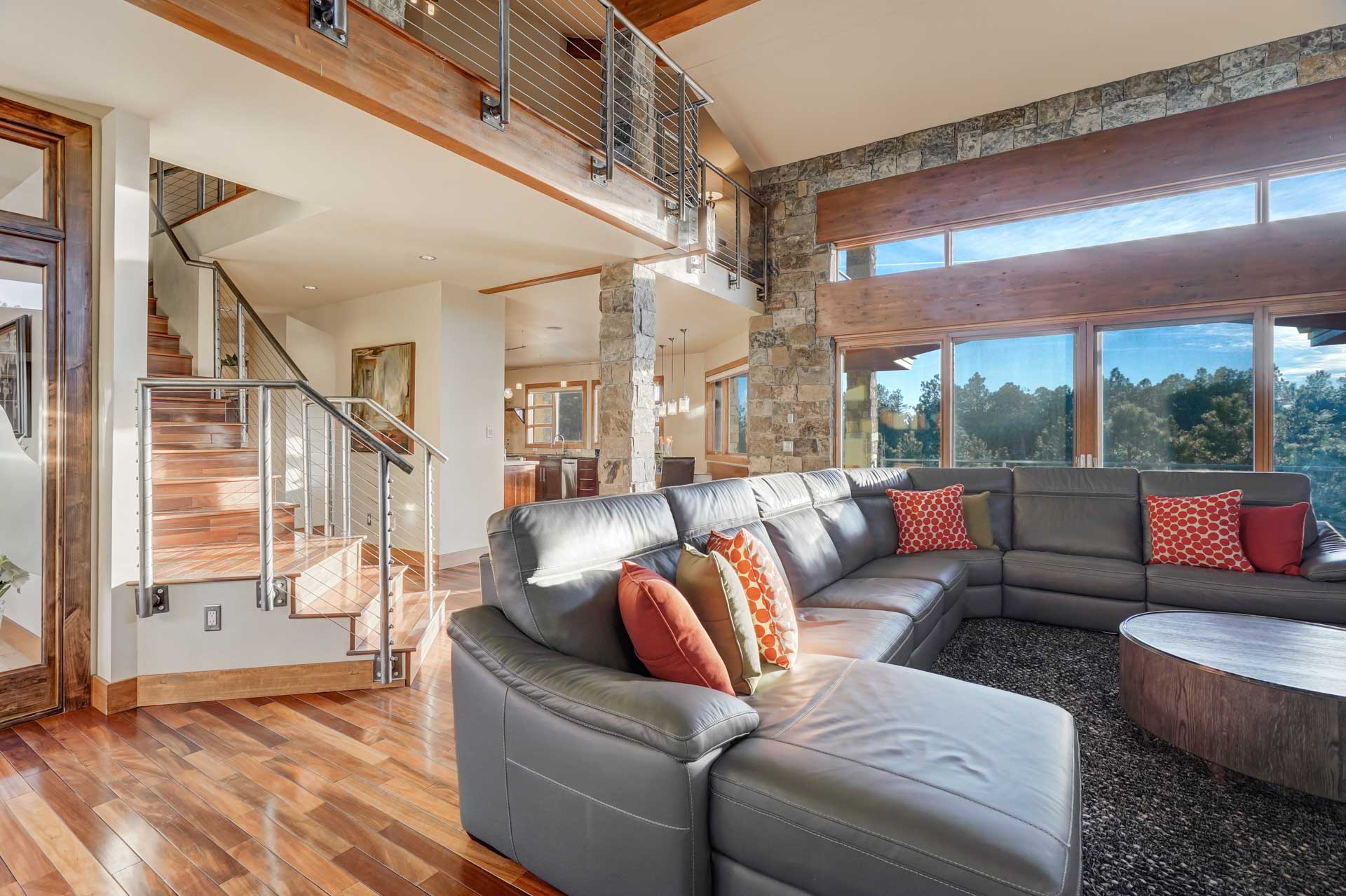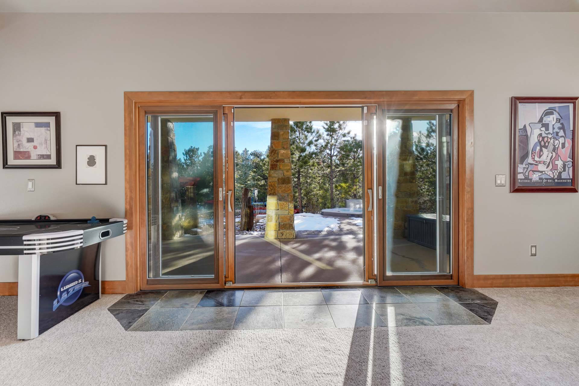 This exquisite and timeless mountain contemporary estate in the prestigious gated community of High Forest Ranch awaits new owners. Showcasing 5 bedrooms, 7 baths and oversized 4-car garage, this stunning home blends style and design with the sought-after combination of wooded privacy and Pikes Peak/Front Range Mountain views on nearly a 3-acre lot. The large open interior spaces to entertain with all bedrooms complete with private en-suite, spa-like baths make this home unique and viable for multi-generational living. Luxury appliances grace the gourmet kitchen and your outdoor living spaces will have you enjoying this home and property year-round. Features of this amazing home includes a Lutron system, radiant heat, home theater, custom wine room off dining area, primary suite with waterfall wall and soaking tub, covered deck off kitchen area with access to the outdoor kitchen, lower level with wet bar, rec room, theatre room, a FLEX space room/suite is accessed from the lower level and is perfect for a workout facility/additional suite/office with full bath attached. A must-see-to-believe property for sure with attention to detail everywhere you turn. Do not miss this opportunity to own a one-of-a-kind estate in one of the most desirable locations in the Pikes Peak region.