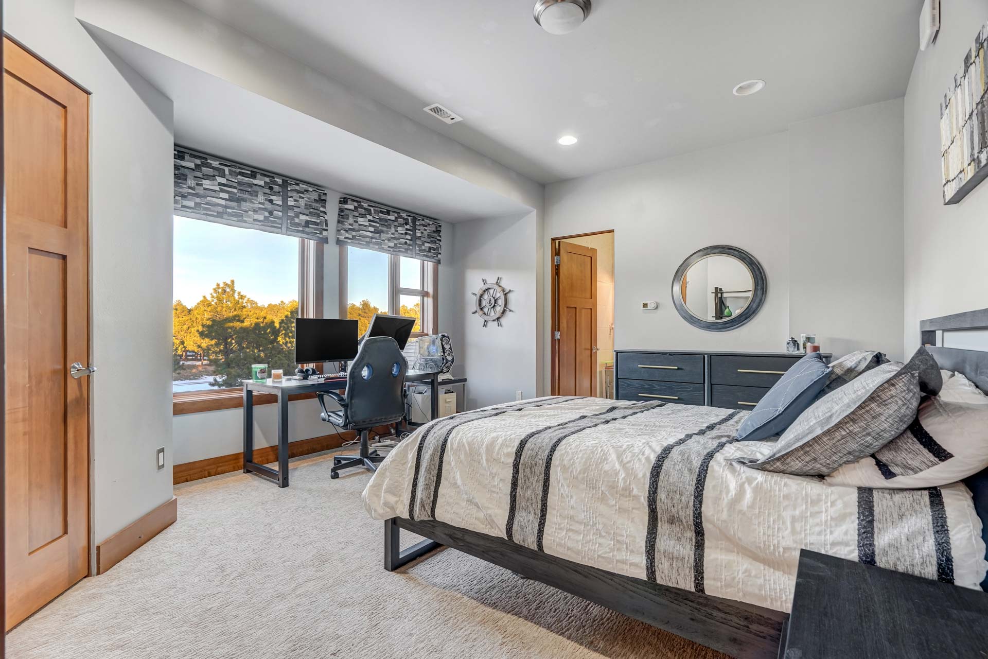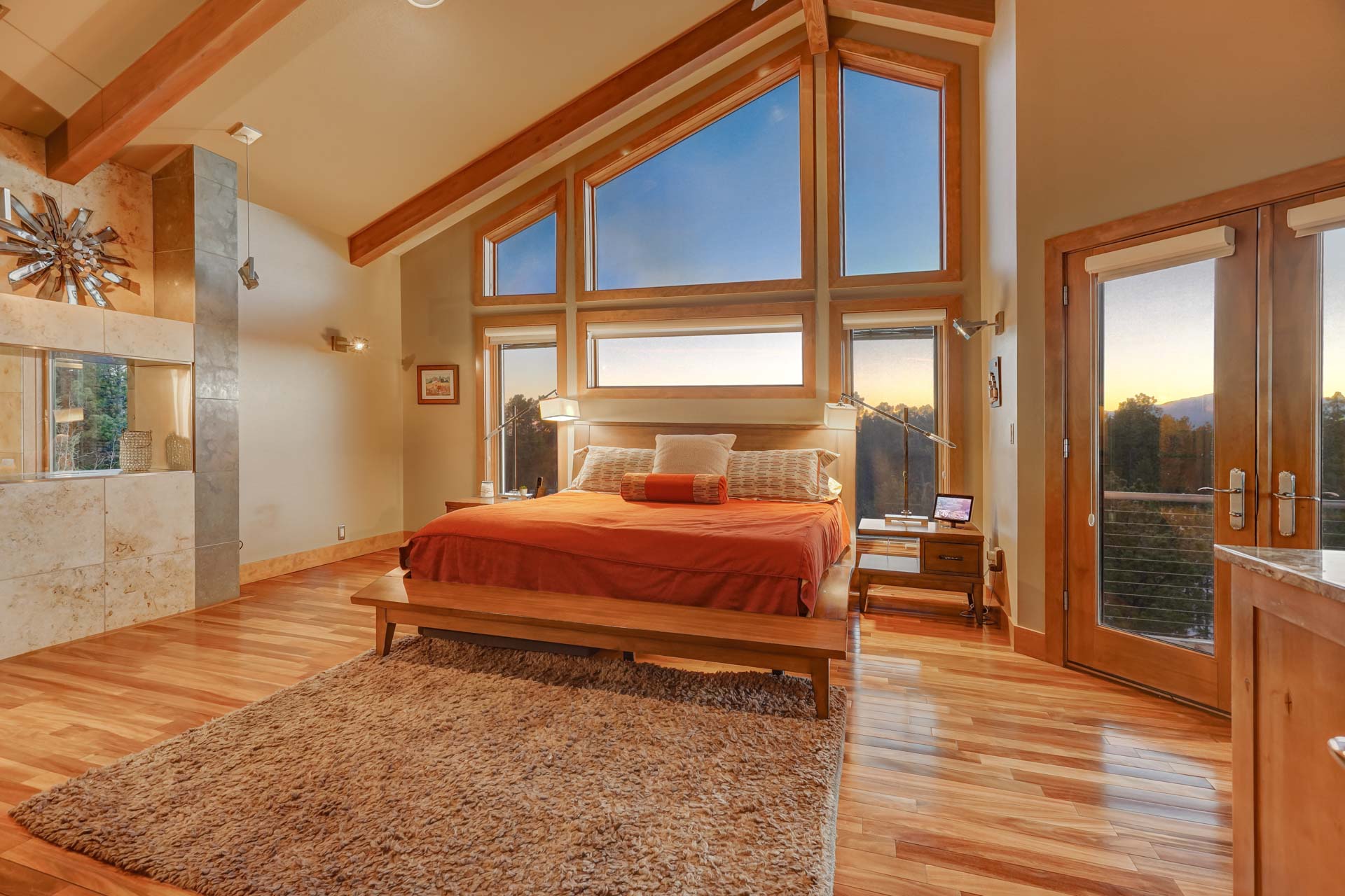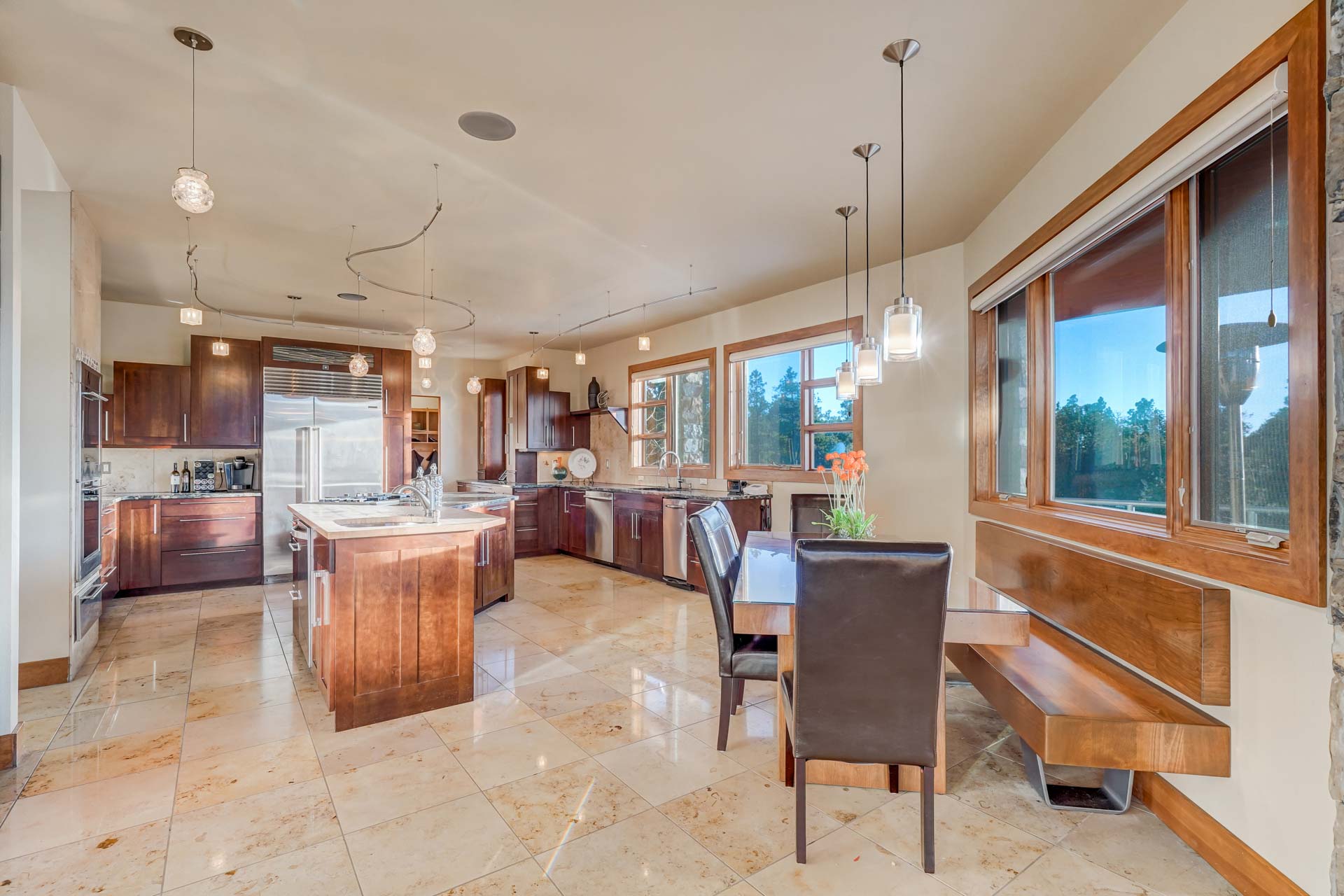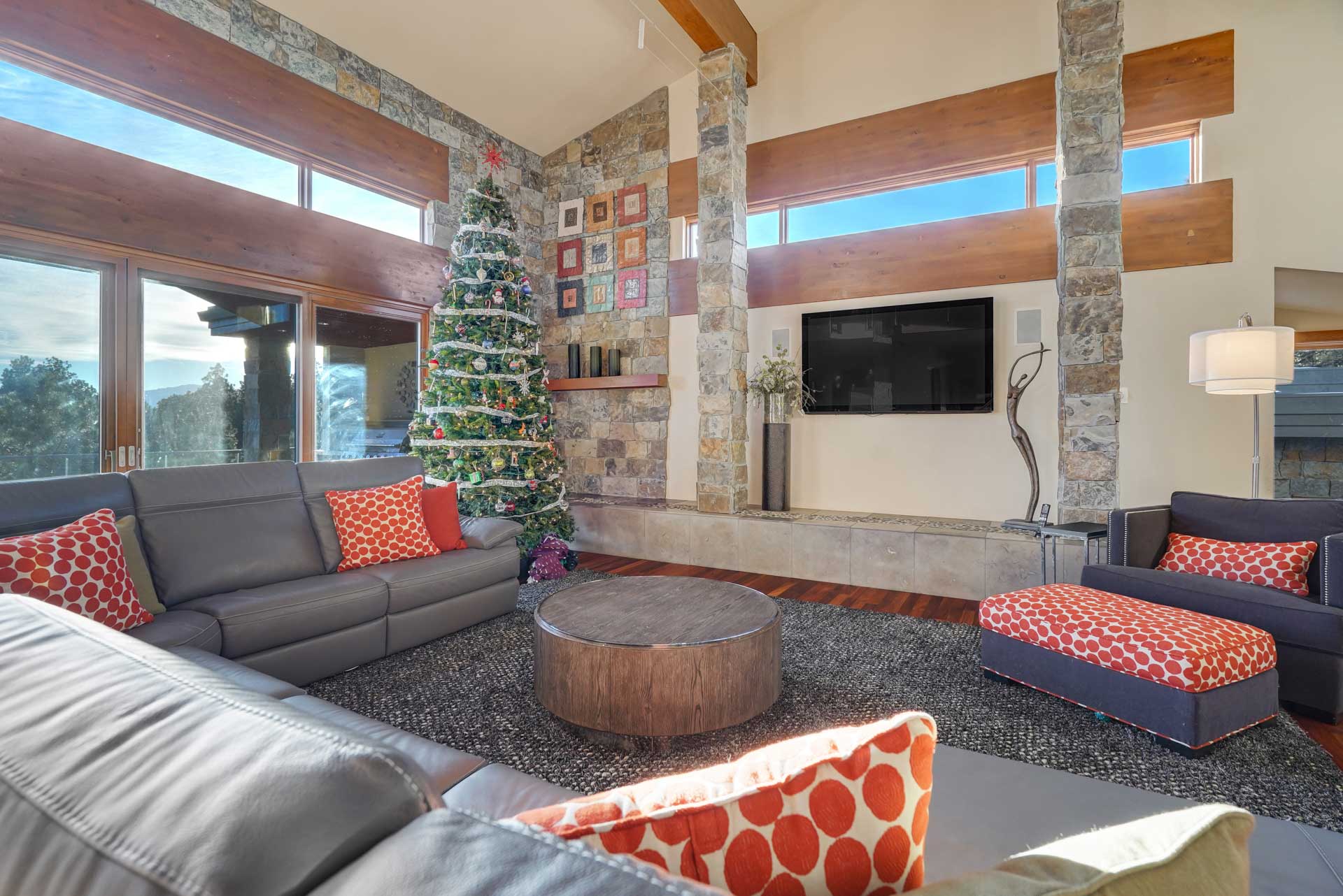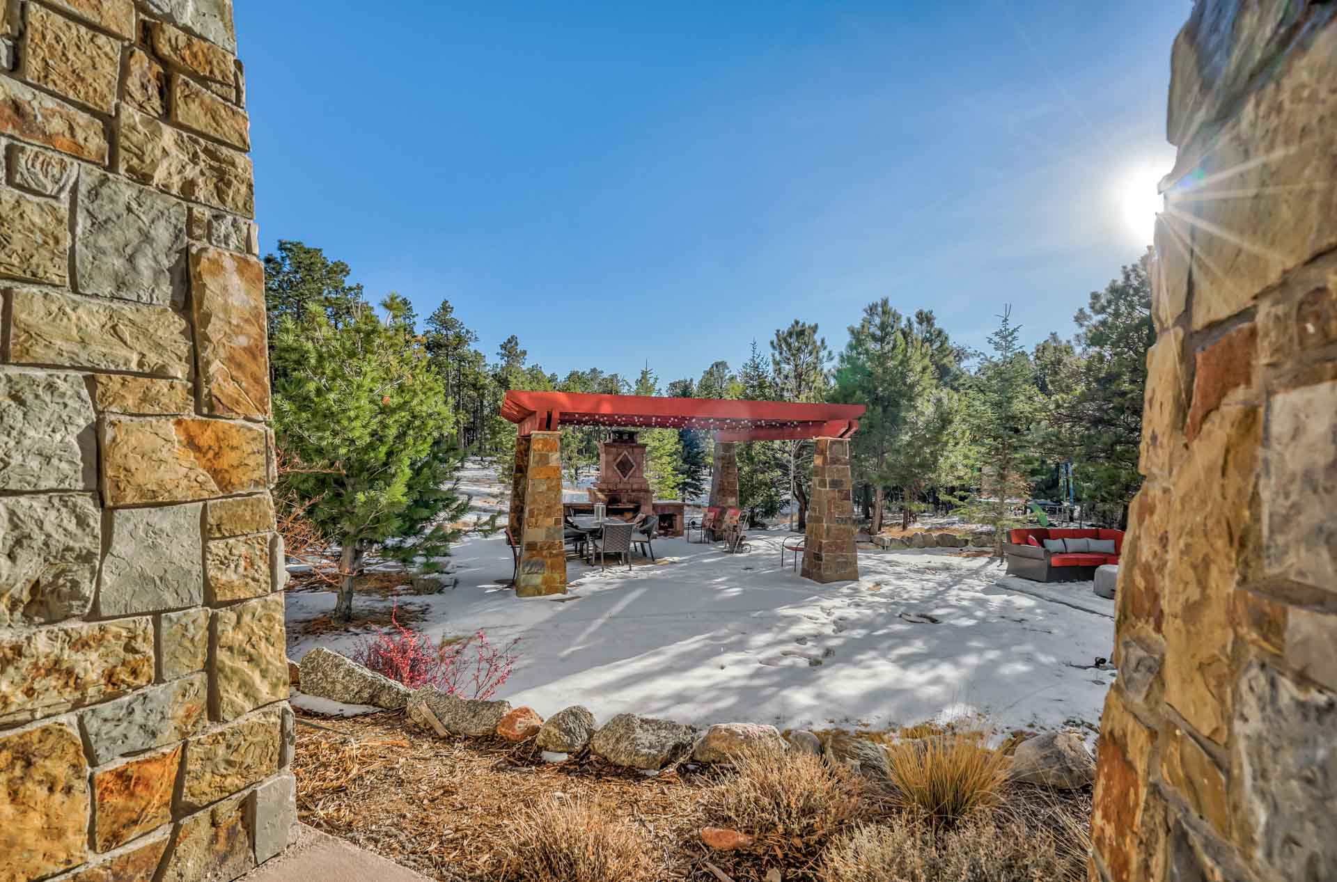 This exquisite and timeless mountain contemporary estate in the prestigious gated community of High Forest Ranch awaits new owners. Showcasing 5 bedrooms, 7 baths and oversized 4-car garage, this stunning home blends style and design with the sought-after combination of wooded privacy and Pikes Peak/Front Range Mountain views on nearly a 3-acre lot. The large open interior spaces to entertain with all bedrooms complete with private en-suite, spa-like baths make this home unique and viable for multi-generational living. Luxury appliances grace the gourmet kitchen and your outdoor living spaces will have you enjoying this home and property year-round. Features of this amazing home includes a Lutron system, radiant heat, home theater, custom wine room off dining area, primary suite with waterfall wall and soaking tub, covered deck off kitchen area with access to the outdoor kitchen, lower level with wet bar, rec room, theatre room, a FLEX space room/suite is accessed from the lower level and is perfect for a workout facility/additional suite/office with full bath attached. A must-see-to-believe property for sure with attention to detail everywhere you turn. Do not miss this opportunity to own a one-of-a-kind estate in one of the most desirable locations in the Pikes Peak region.