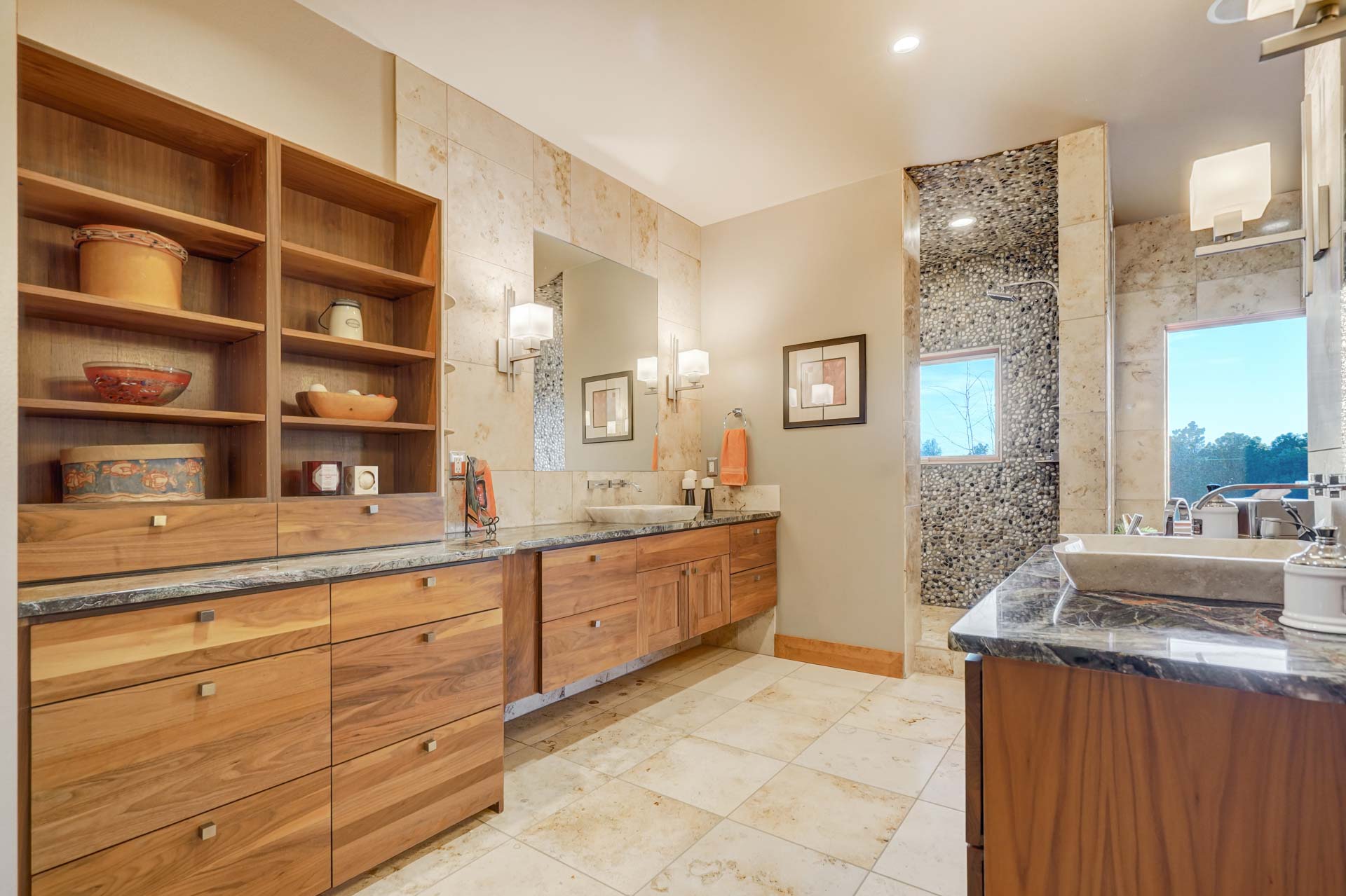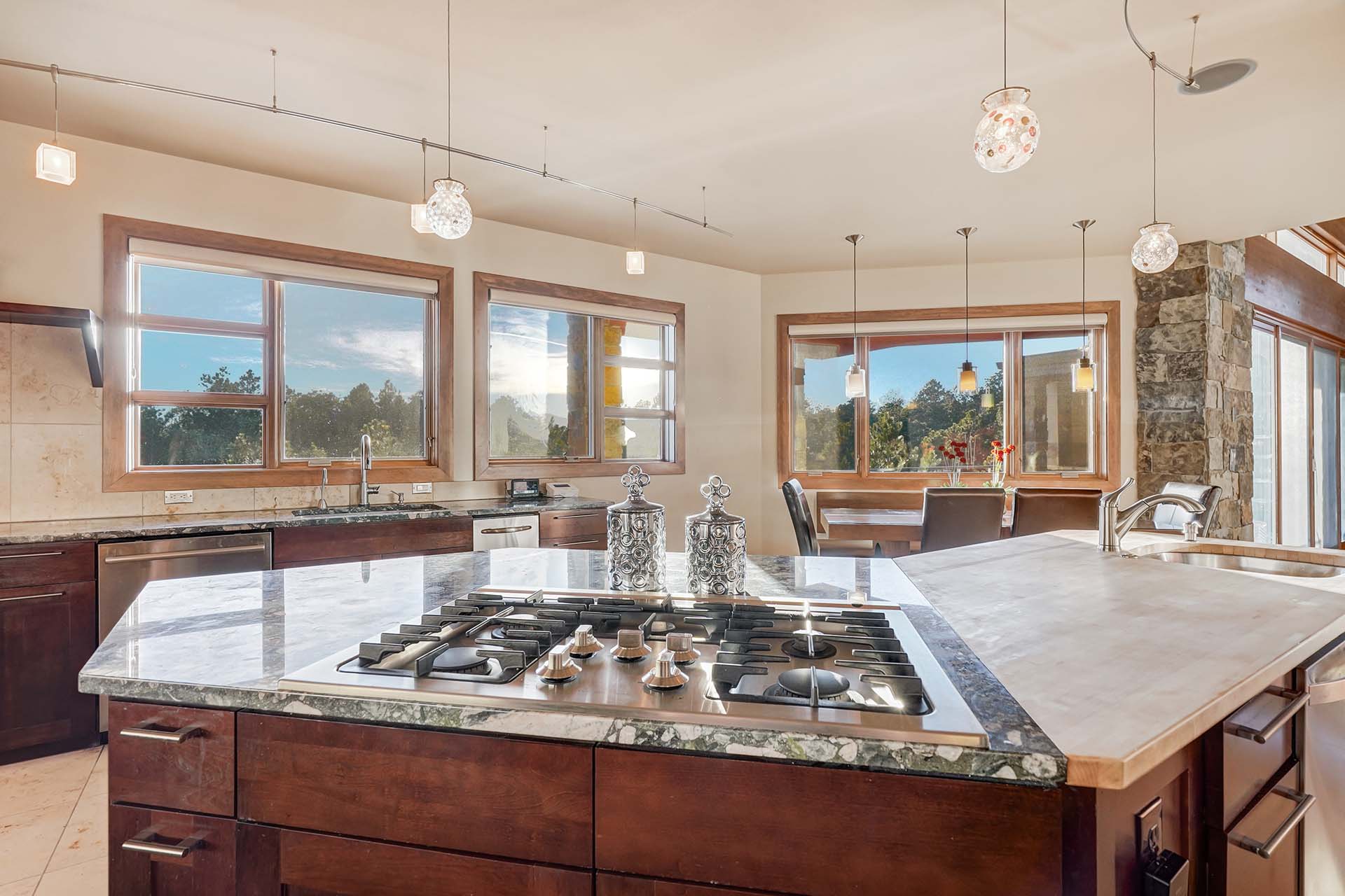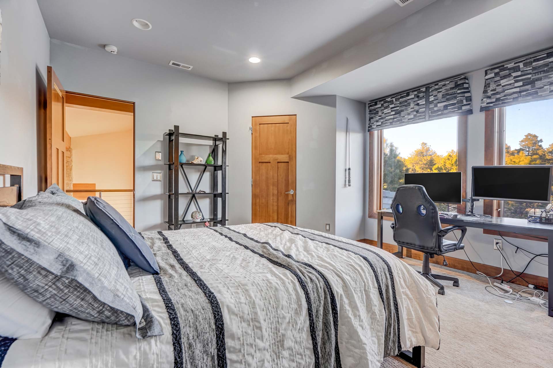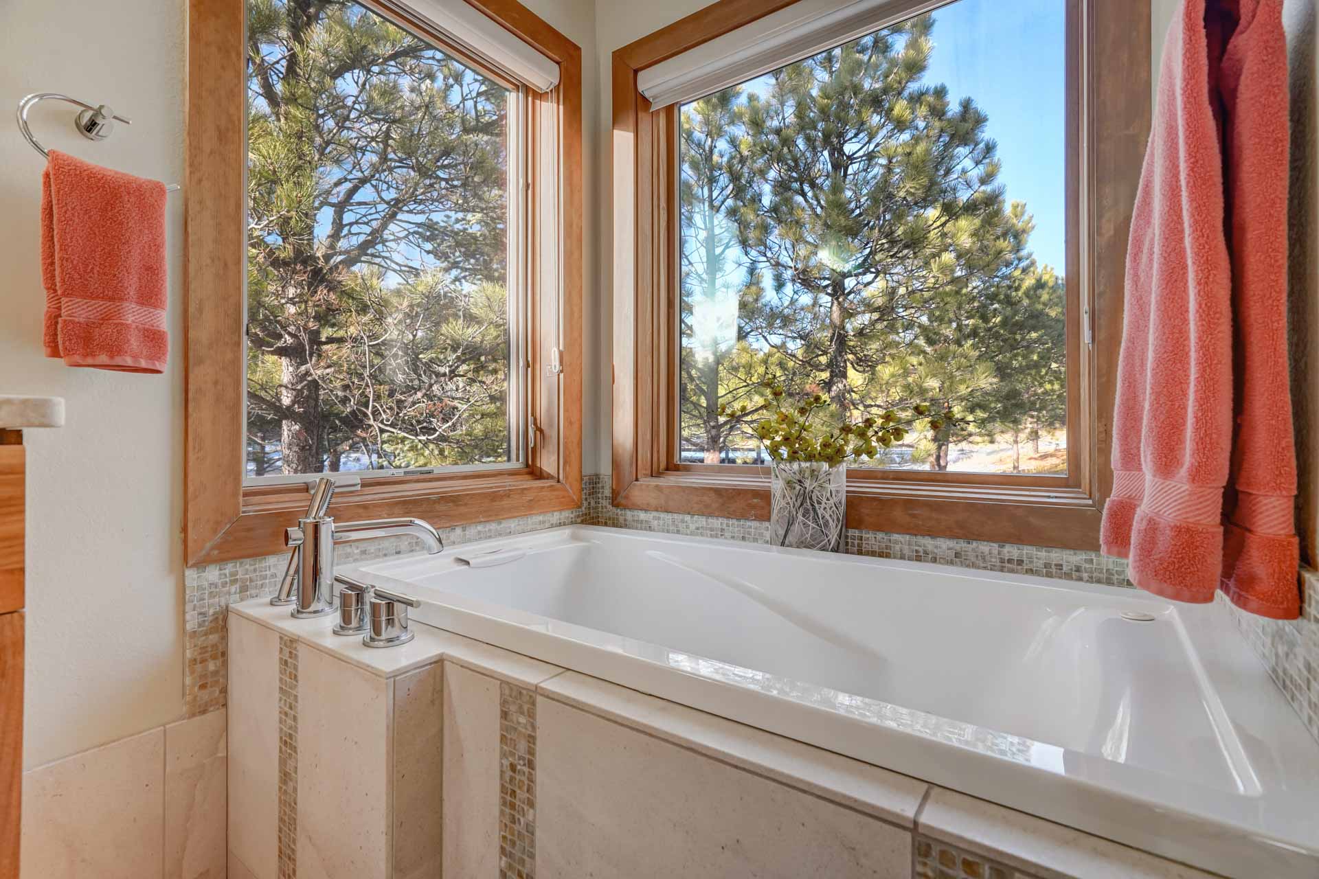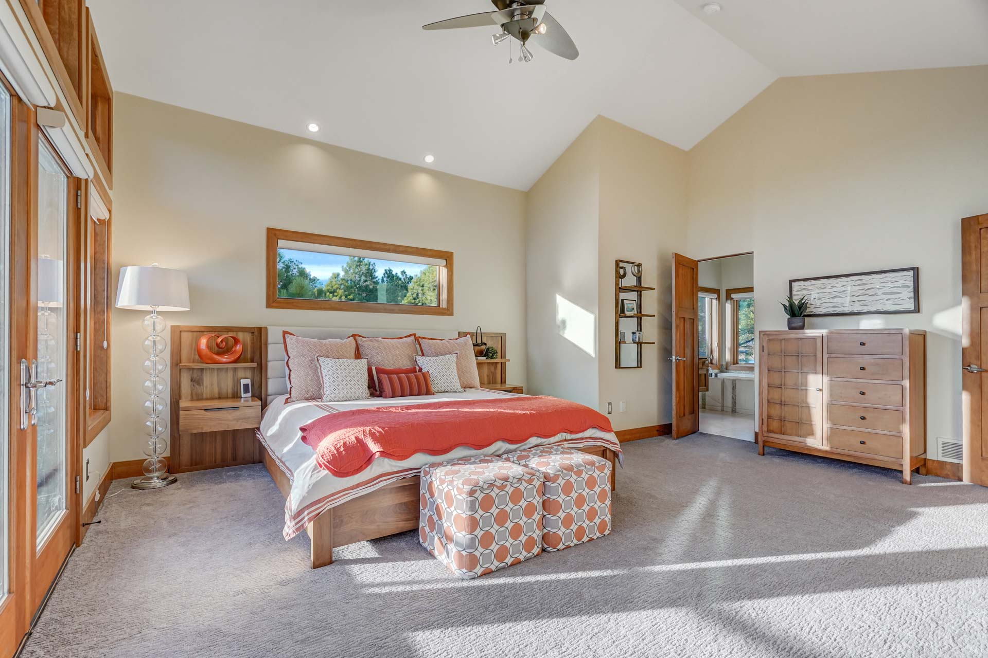 This exquisite and timeless mountain contemporary estate in the prestigious gated community of High Forest Ranch awaits new owners. Showcasing 5 bedrooms, 7 baths and oversized 4-car garage, this stunning home blends style and design with the sought-after combination of wooded privacy and Pikes Peak/Front Range Mountain views on nearly a 3-acre lot. The large open interior spaces to entertain with all bedrooms complete with private en-suite, spa-like baths make this home unique and viable for multi-generational living. Luxury appliances grace the gourmet kitchen and your outdoor living spaces will have you enjoying this home and property year-round. Features of this amazing home includes a Lutron system, radiant heat, home theater, custom wine room off dining area, primary suite with waterfall wall and soaking tub, covered deck off kitchen area with access to the outdoor kitchen, lower level with wet bar, rec room, theatre room, a FLEX space room/suite is accessed from the lower level and is perfect for a workout facility/additional suite/office with full bath attached. A must-see-to-believe property for sure with attention to detail everywhere you turn. Do not miss this opportunity to own a one-of-a-kind estate in one of the most desirable locations in the Pikes Peak region.