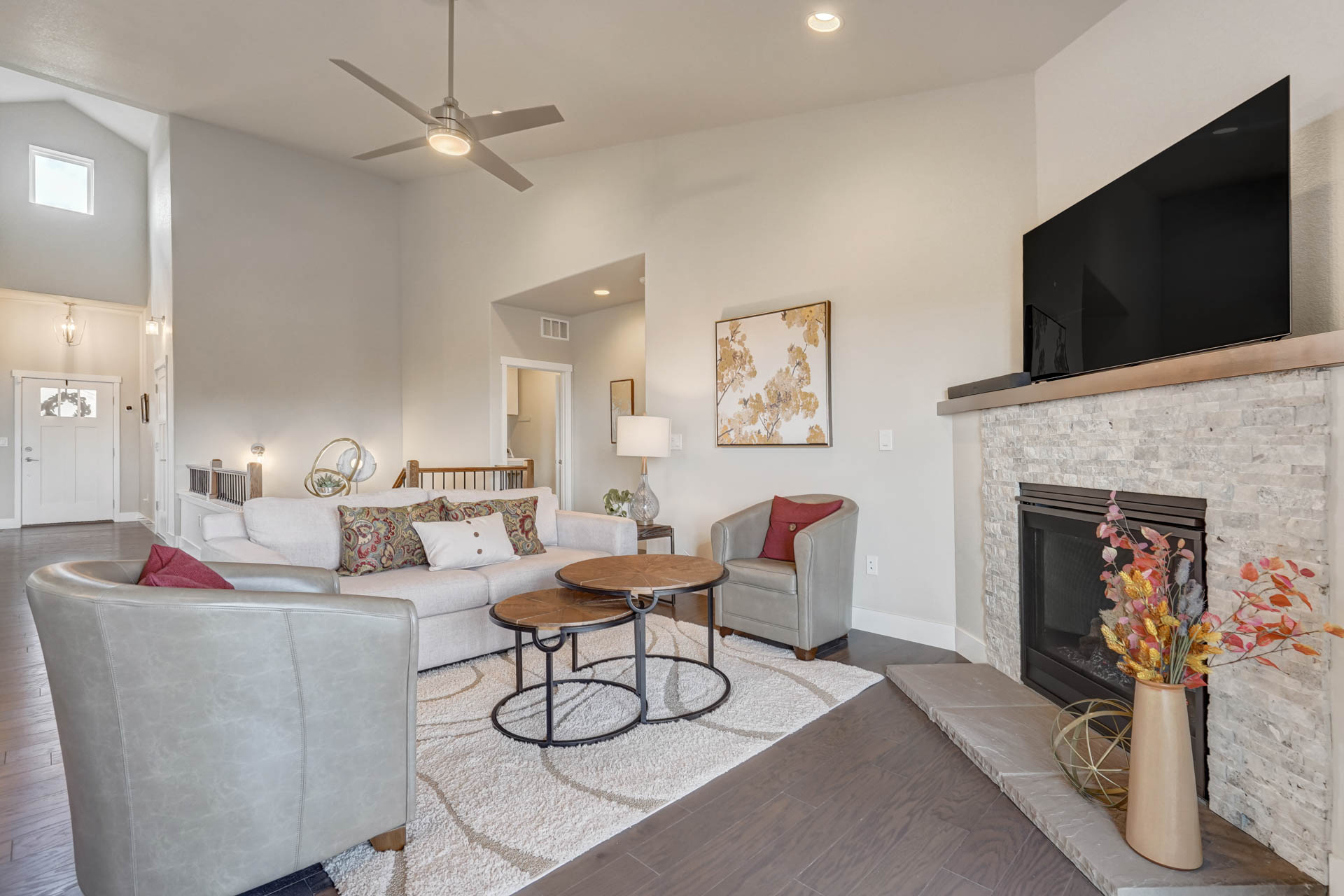 Welcome to your Westside luxury patio home located in the highly desirable Tuscan Foothills Community. This location provides quick access to a multitude of parks and trails and GORGEOUS mountain AND city views! In addition, the cul de sac lot provides for extra privacy. As you enter the home, you will immediately notice the beauty this home offers. The highly upgraded gourmet kitchen features an oversized custom kitchen island perfect for entertaining. The great room boasts vaulted ceilings, stone fireplace, and a walkout covered deck. The city views at night are spectacular! The master retreat features a spa shower, dual sinks, and a walk in closet which connects to the main level laundry. Down the staircase is a fully finished walkout basement featuring 2 additional bedrooms and a full bath. There is also an oversized rec room and a full wet bar with custom cabinetry. The back yard is fenced in for a safe space for pets or children to play.