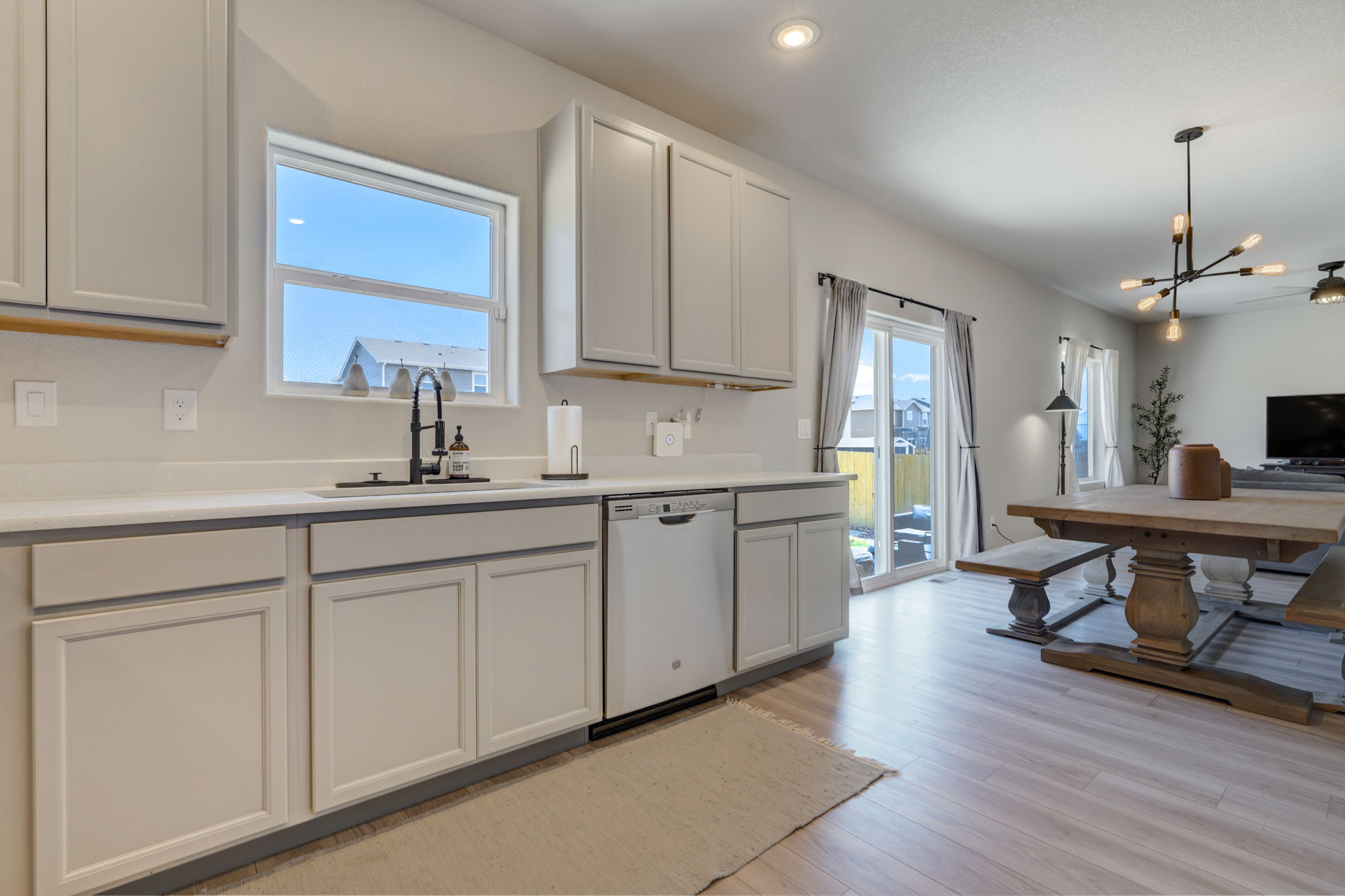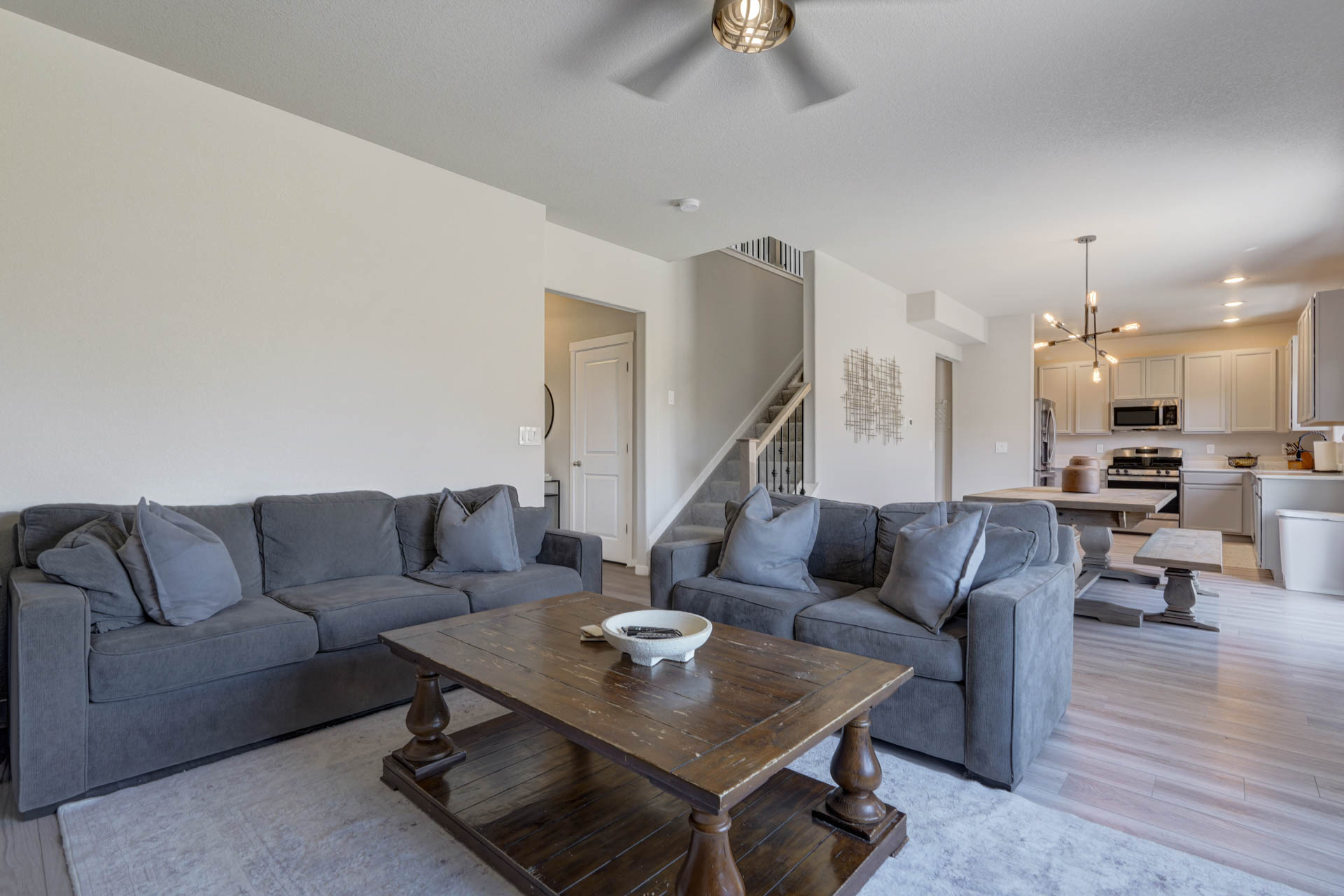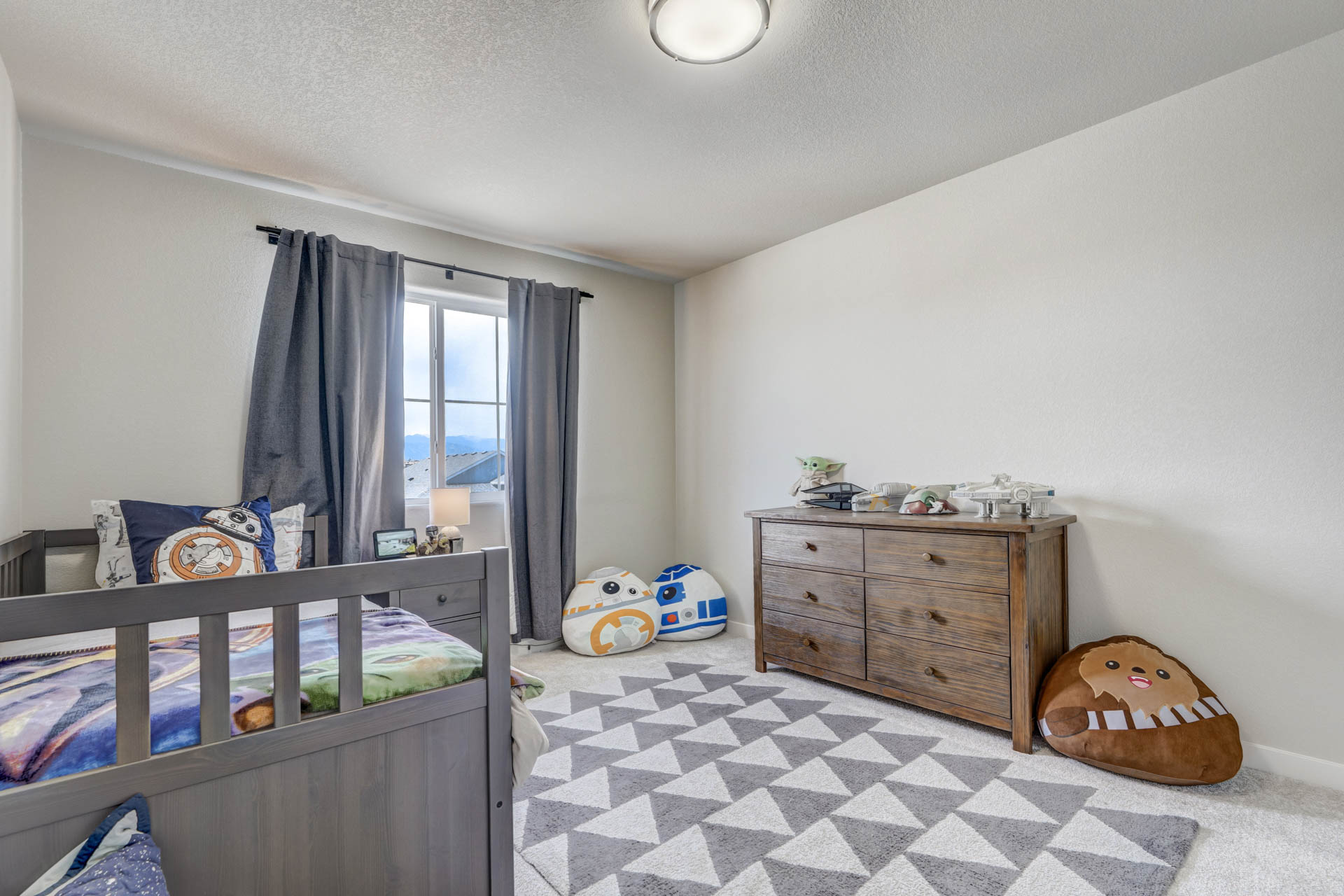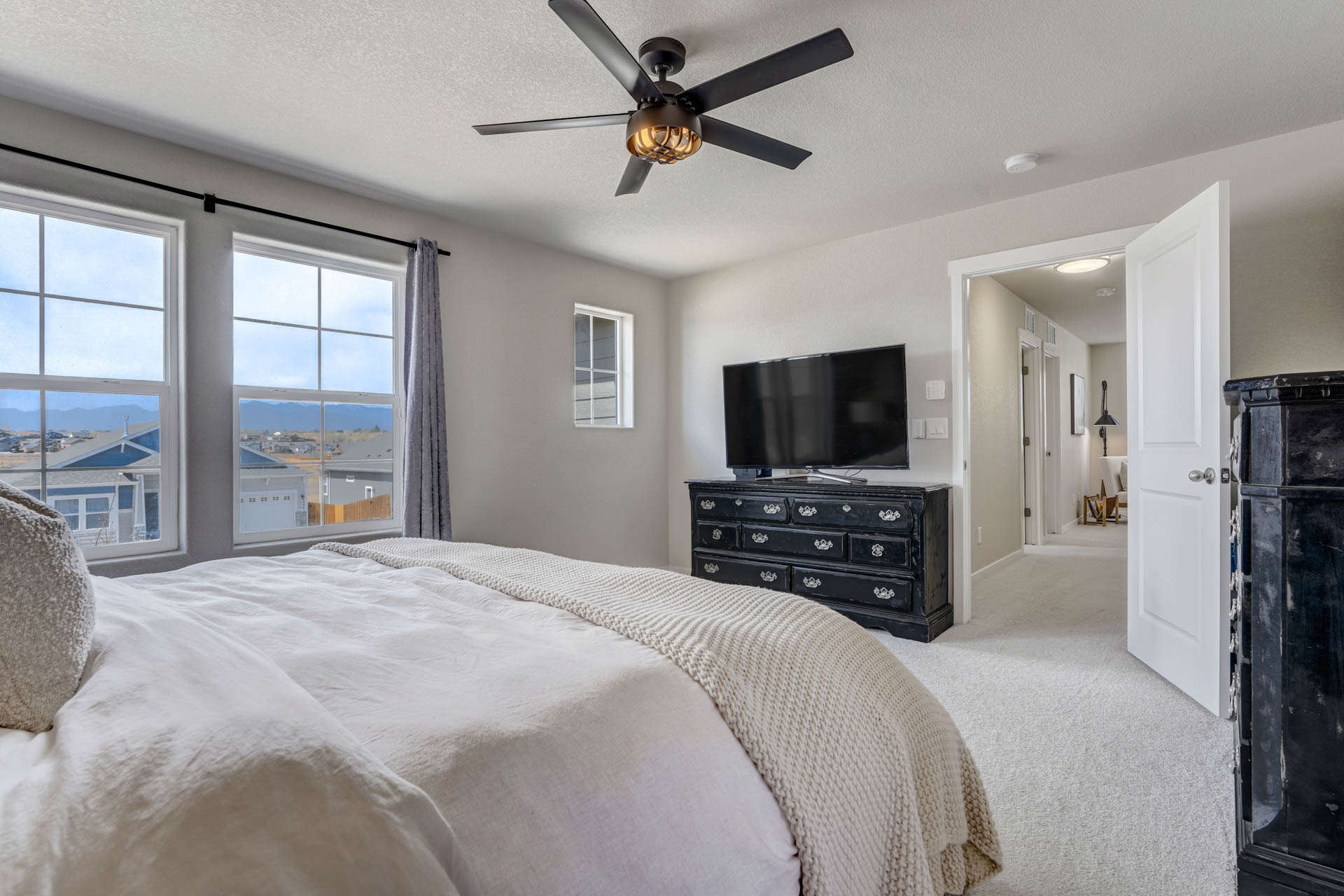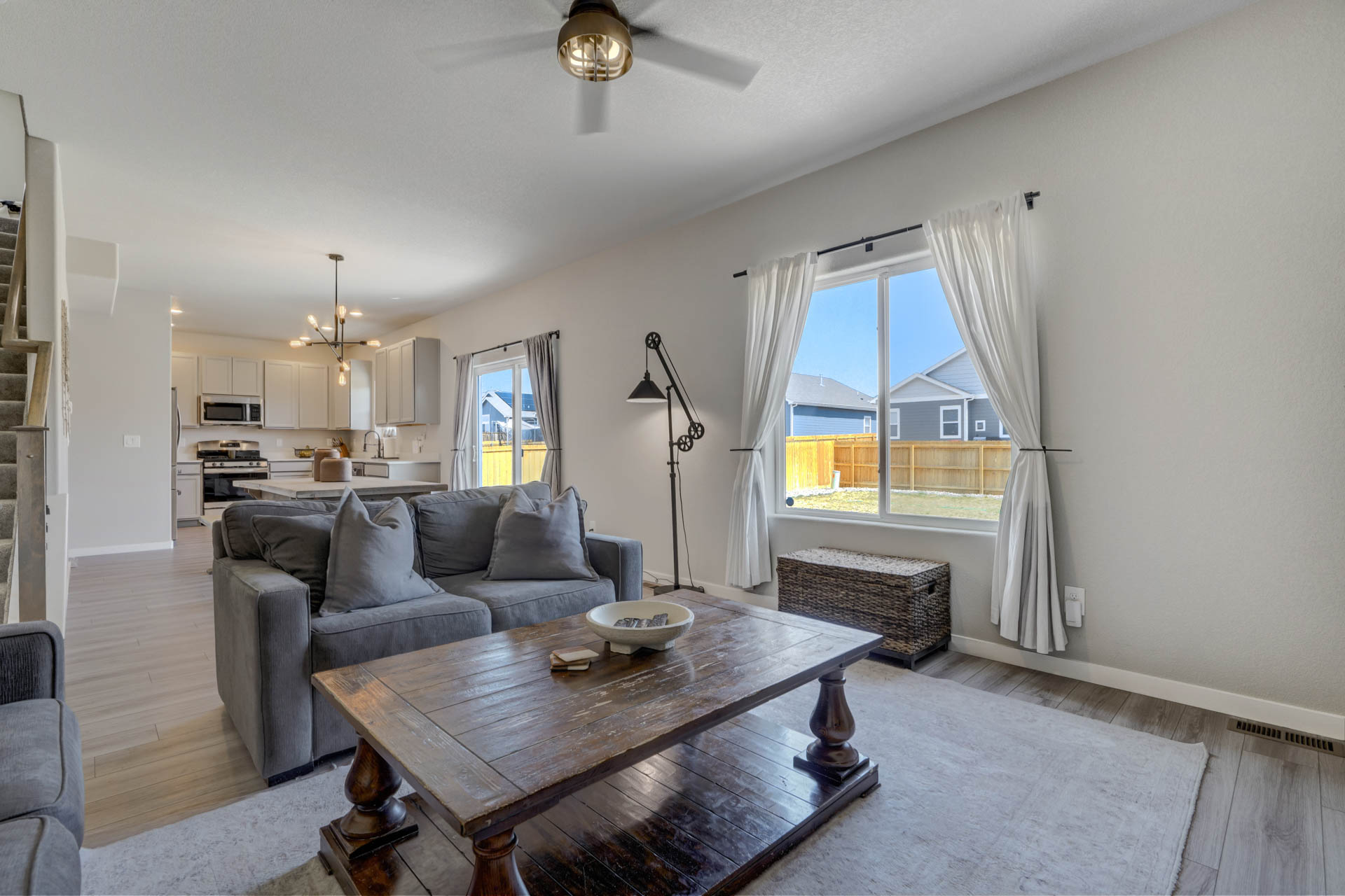 Welcome home to this stunning 2-story home w/gorgeous panoramic mountain views. The front porch is covered & walking into the front door you're greeted w/natural lighting & luxury laminate wood flooring throughout the main level. To the right is an office that could easily be converted to a bedroom w/dual sliding barn doors & mountain views. The kitchen offers quartz countertops, an updated refrigerator, pantry & a gas stove. The gas line can be tapped into if you want a gas line for the exterior. The kitchen is an open concept that allows you to entertain while others are in the living room. The dining room is an adjoining dining w/a walk-out to a 28x10 extended concrete patio & a huge back yard. There's also a 1/2 bath on the main which completes this level. Making your way upstairs you'll love the open railing that leads you to a 10x8 loft with 4 bedrooms, full bath & laundry room. The master & 2 of the bedrooms have panoramic mountain views. The master bath is a 5-piece w/a free standing shower, soaking tub, walk-in closet, large linen, deep drawer vanity w/2 sinks & outlets installed where they make sense. This home is a must see w/tons of extras to include taller base cabs throughout w/quartz countertops, extended patio, fully landscaped, whole house fan, AC, oversized garage w/service door to backyard, bottom freezer refrigerator, outlets w/standard cable, ethernet, standard 110 power plug, wall outlet in living room, additional outlets installed, W/D, radon system, updated LED light fixtures w/matching window rods & pull backs, Security System w/Ring Doorbell, solar spotlight cameras, motion detectors & window sensors on entire main level windows & on the 2nd level front side of home windows. There's also an emergency shut off in the closet under the stairs & extra storage space in the crawl space w/sump pump. Close to shops, groceries & restaurants & only 1 block away from tons of open space w/parks & walking trails plus there's a pond & a gazebo!