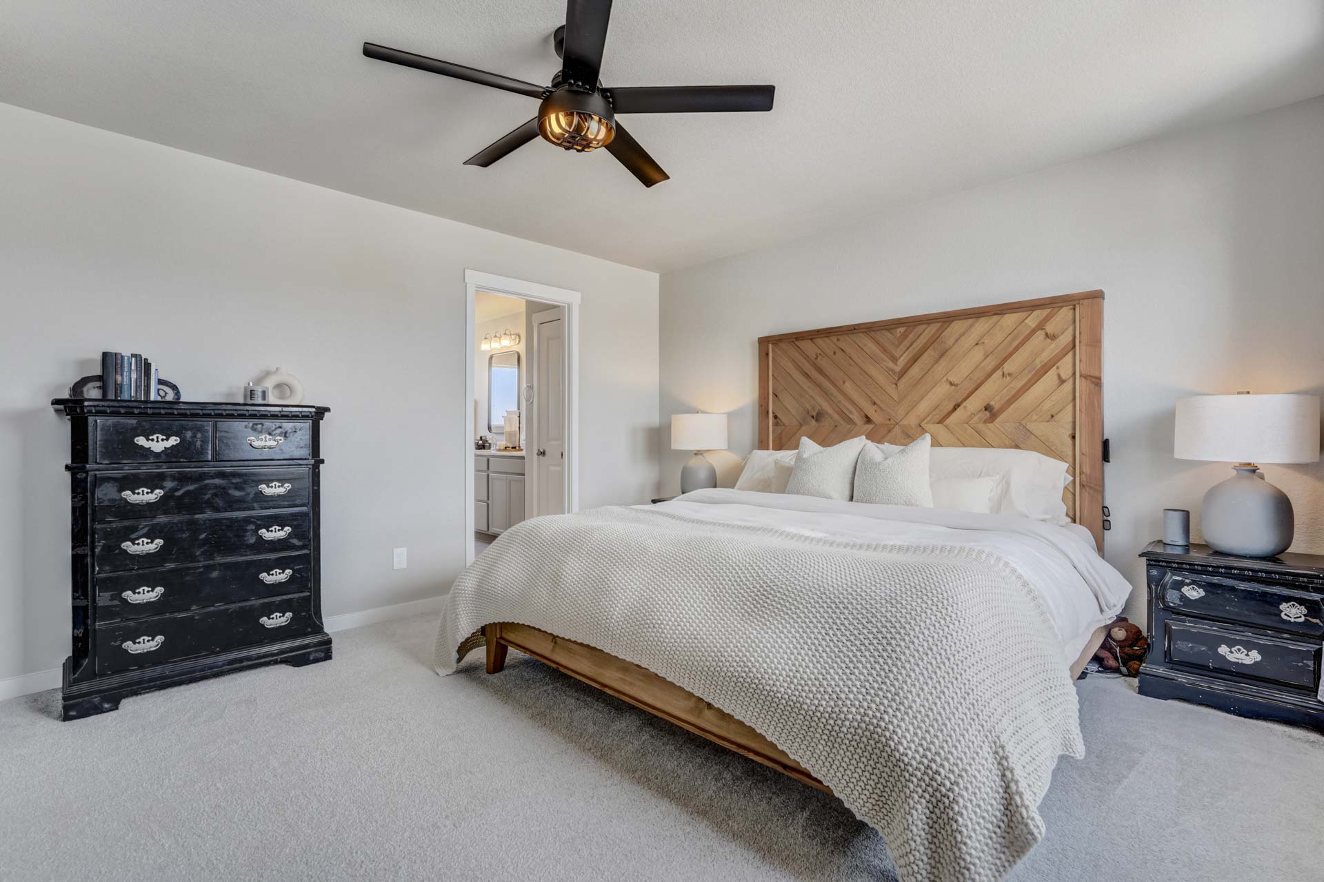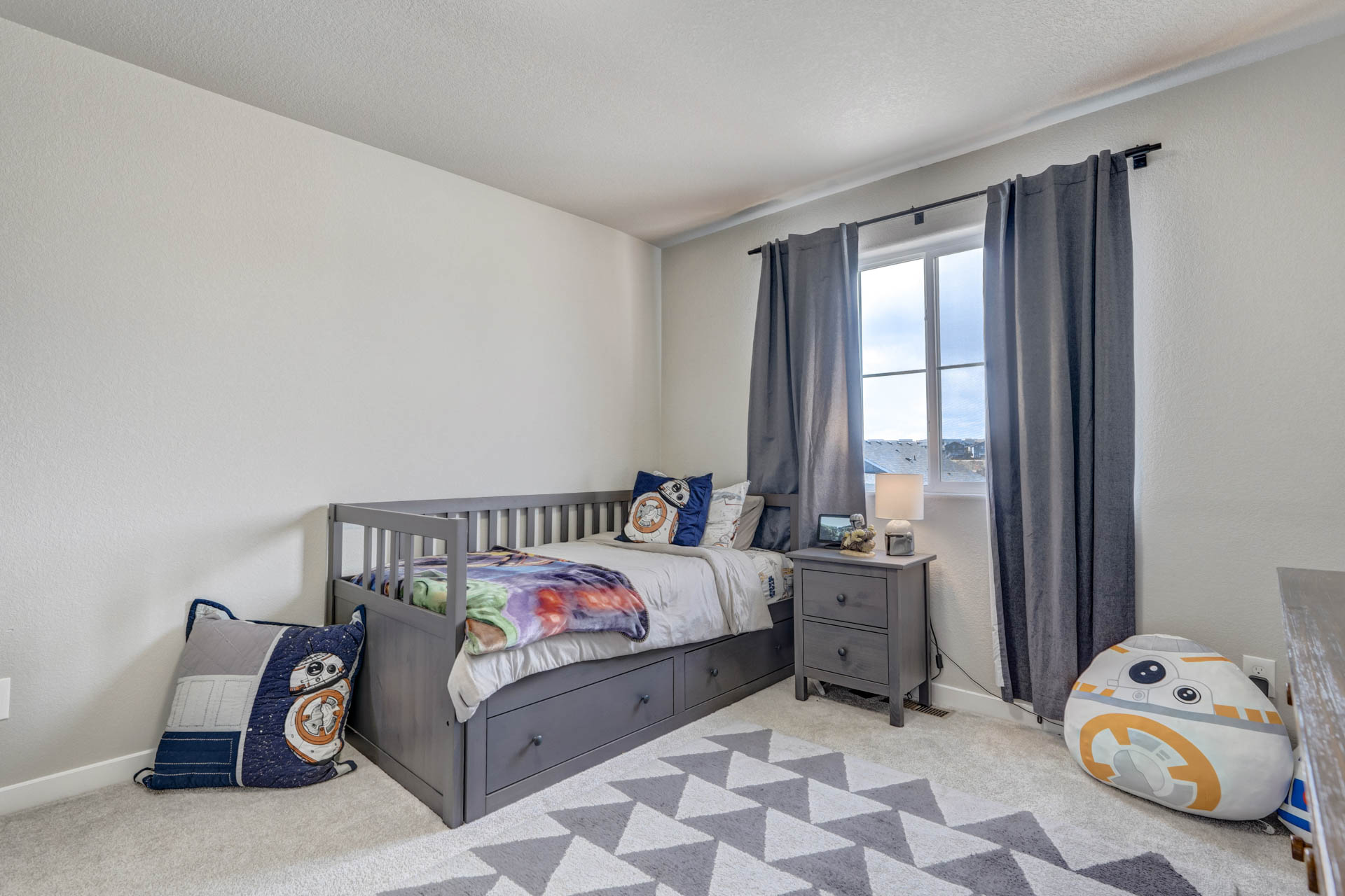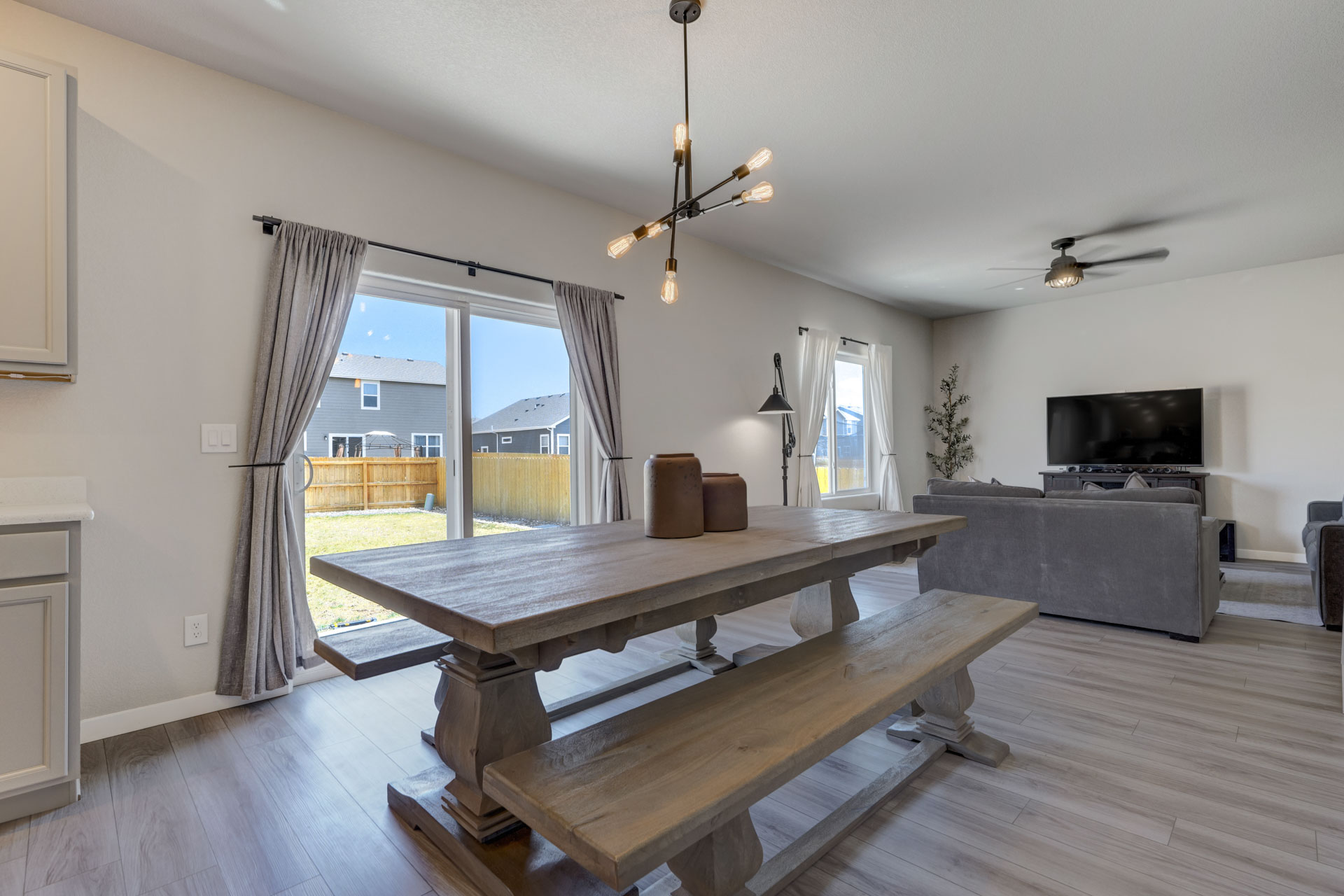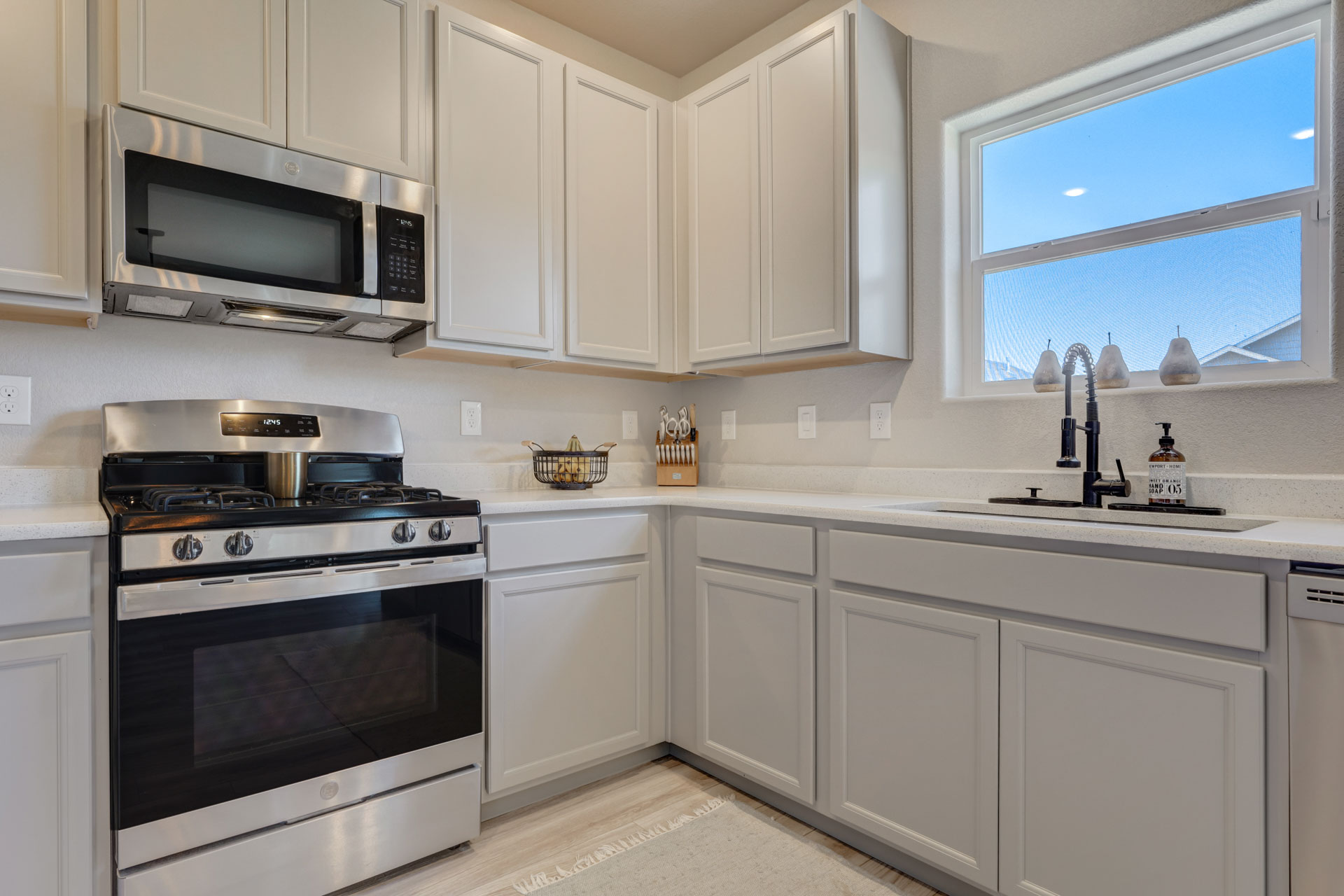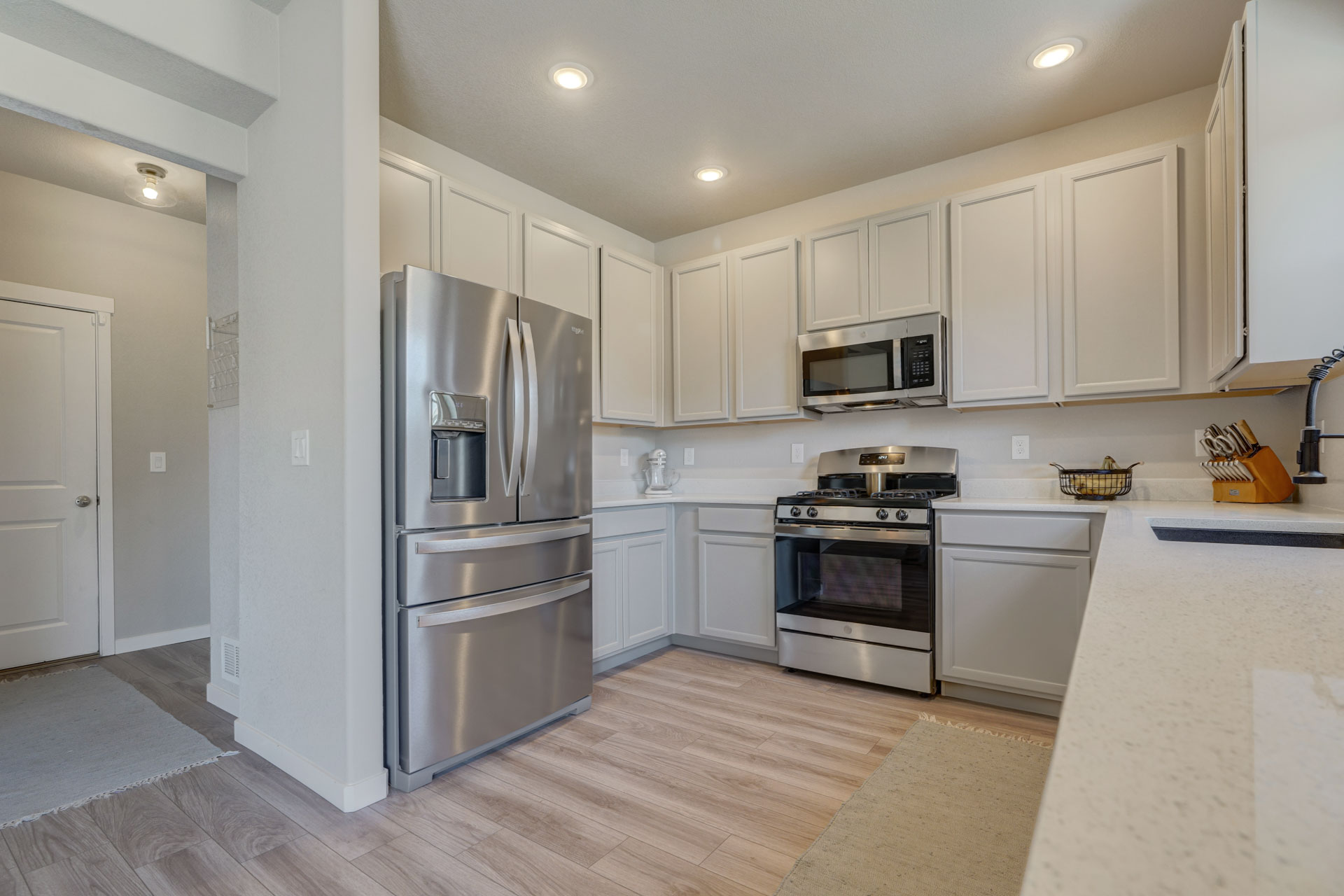 Welcome home to this stunning 2-story home w/gorgeous panoramic mountain views. The front porch is covered & walking into the front door you're greeted w/natural lighting & luxury laminate wood flooring throughout the main level. To the right is an office that could easily be converted to a bedroom w/dual sliding barn doors & mountain views. The kitchen offers quartz countertops, an updated refrigerator, pantry & a gas stove. The gas line can be tapped into if you want a gas line for the exterior. The kitchen is an open concept that allows you to entertain while others are in the living room. The dining room is an adjoining dining w/a walk-out to a 28x10 extended concrete patio & a huge back yard. There's also a 1/2 bath on the main which completes this level. Making your way upstairs you'll love the open railing that leads you to a 10x8 loft with 4 bedrooms, full bath & laundry room. The master & 2 of the bedrooms have panoramic mountain views. The master bath is a 5-piece w/a free standing shower, soaking tub, walk-in closet, large linen, deep drawer vanity w/2 sinks & outlets installed where they make sense. This home is a must see w/tons of extras to include taller base cabs throughout w/quartz countertops, extended patio, fully landscaped, whole house fan, AC, oversized garage w/service door to backyard, bottom freezer refrigerator, outlets w/standard cable, ethernet, standard 110 power plug, wall outlet in living room, additional outlets installed, W/D, radon system, updated LED light fixtures w/matching window rods & pull backs, Security System w/Ring Doorbell, solar spotlight cameras, motion detectors & window sensors on entire main level windows & on the 2nd level front side of home windows. There's also an emergency shut off in the closet under the stairs & extra storage space in the crawl space w/sump pump. Close to shops, groceries & restaurants & only 1 block away from tons of open space w/parks & walking trails plus there's a pond & a gazebo!
